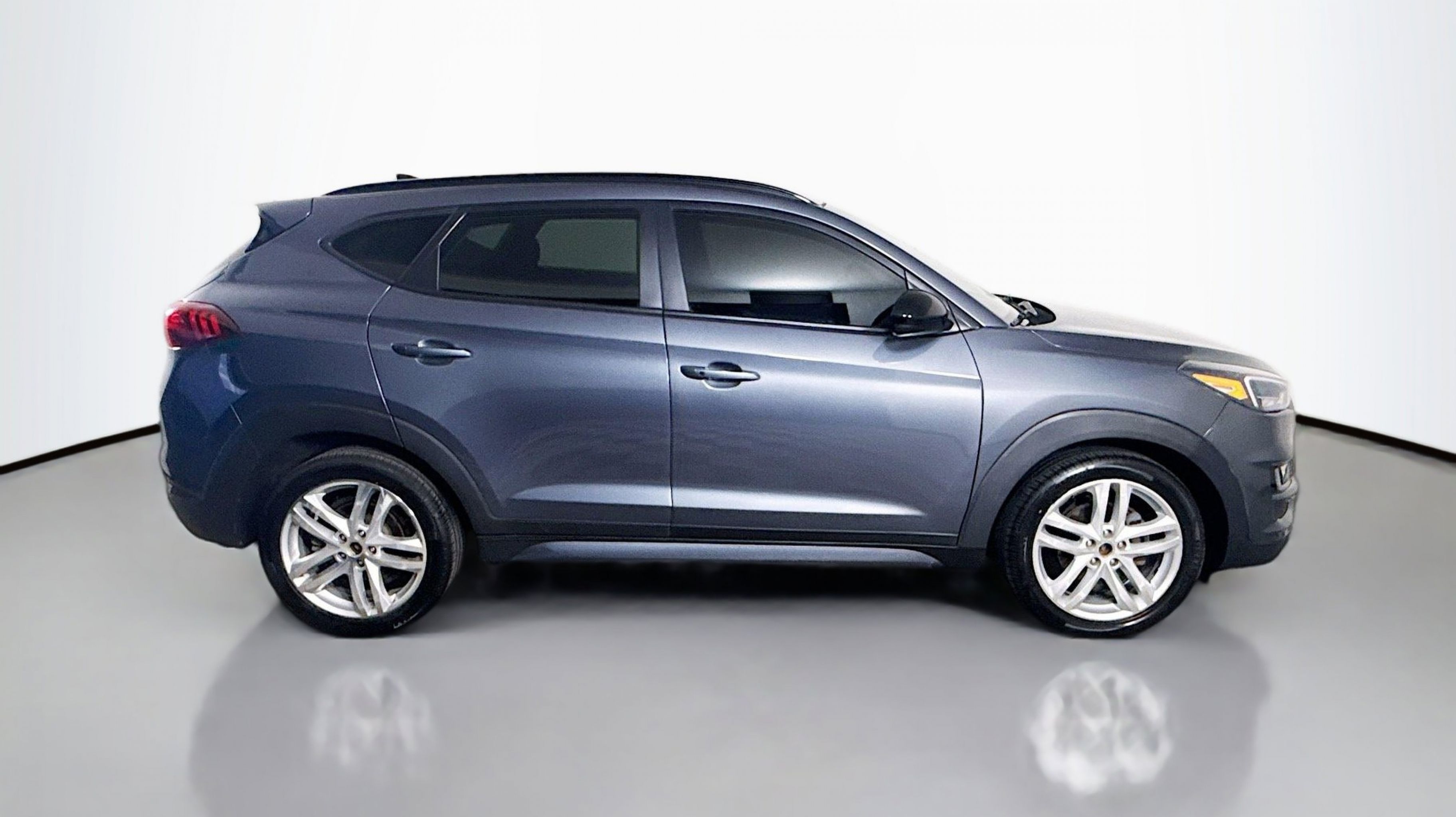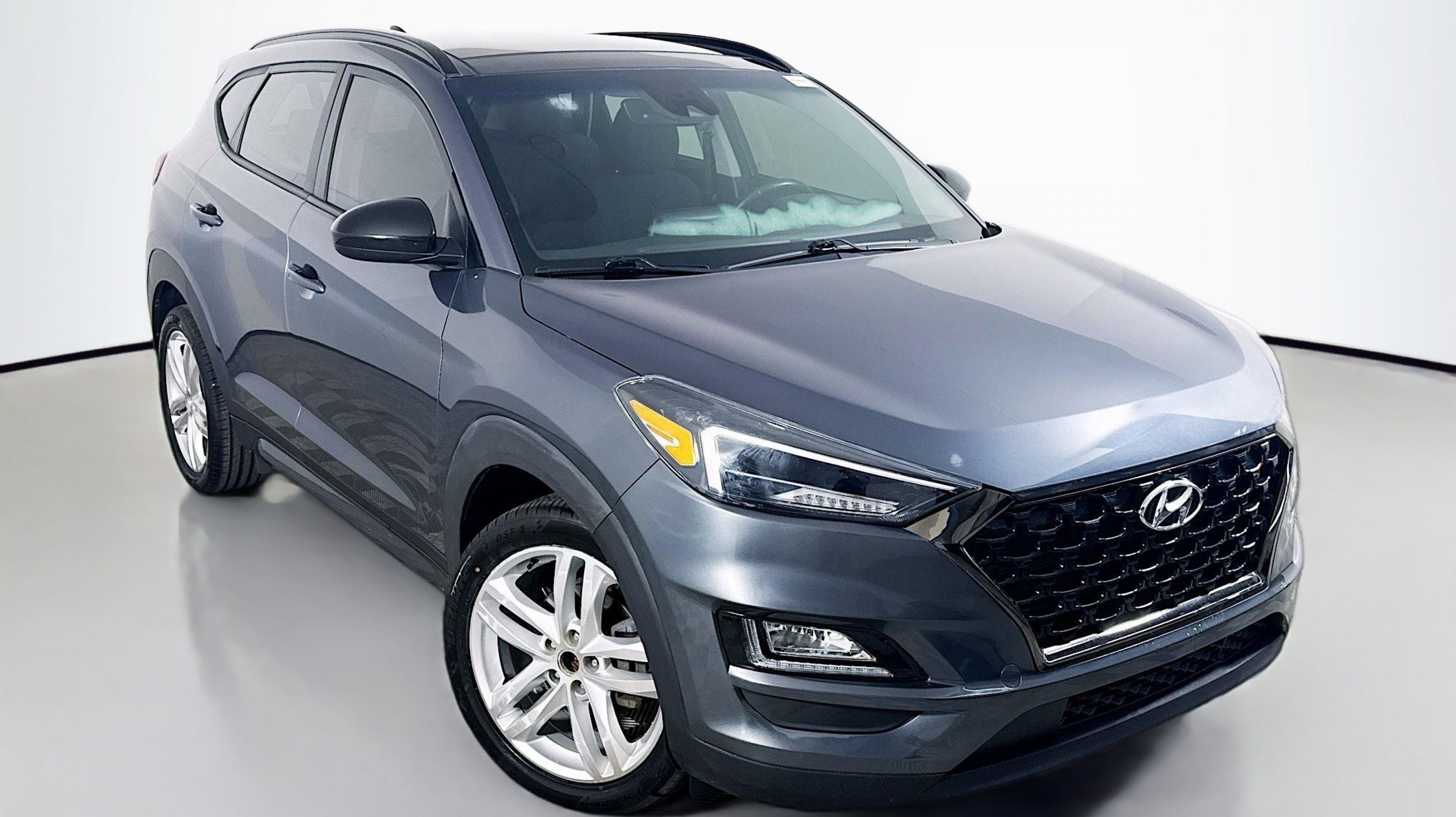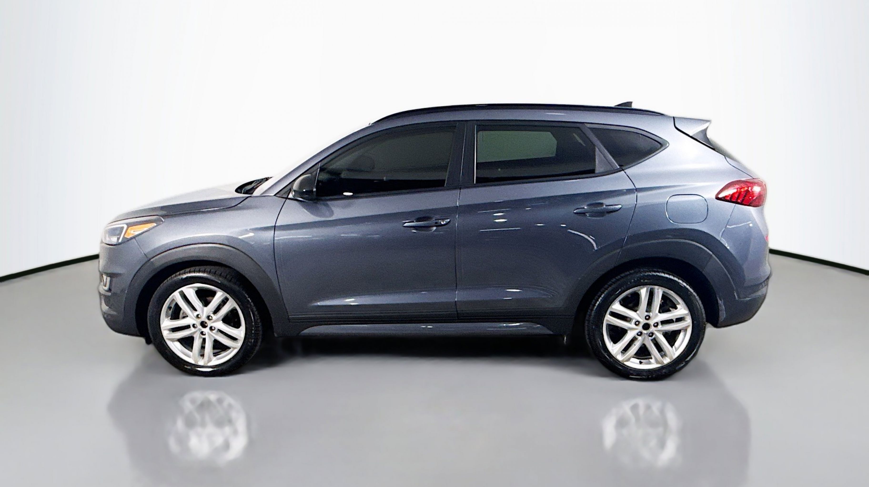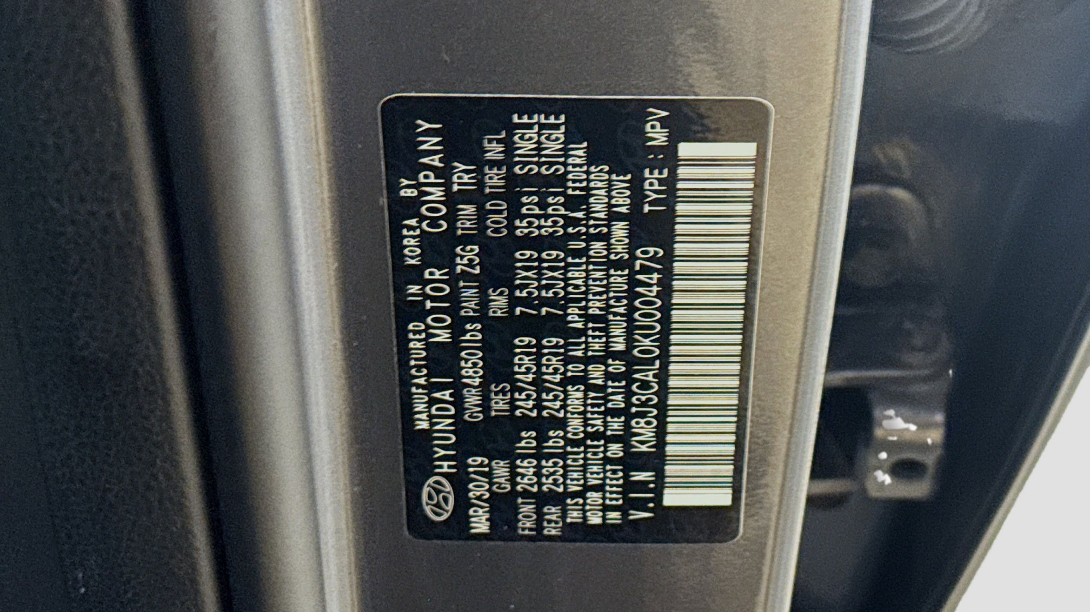 Coliseum Gray 2019 Hyundai Tucson Night AWD 6-Speed Automatic with Shiftronic 2.4L I4 DGI DOHC 16V AWD, Option Group 01, 4-Wheel Disc Brakes, 8 Speakers, ABS brakes, Air Conditioning, Alloy wheels, AM/FM radio: SiriusXM, Apple CarPlay & Android Auto, Auto High-beam Headlights, Auto-dimming Rear-View mirror, Automatic temperature control, Axle Ratio: 3.195, Brake assist, Bumpers: body-color, Cargo Net, Carpeted Floor Mats, Cloth Seat Trim, Delay-off headlights, Driver door bin, Driver vanity mirror, Dual front impact airbags, Dual front side impact airbags, Electronic Stability Control, Emergency communication system: Blue Link, Exterior Parking Camera Rear, First Aid Kit, Four wheel independent suspension, Front anti-roll bar, Front Bucket Seats, Front Center Armrest, Front dual zone A/C, Front fog lights, Front reading lights, Fully automatic headlights, Garage door transmitter: HomeLink, Heated door mirrors, Heated Front Bucket Seats, Heated front seats, Illuminated entry, Leather Shift Knob, Low tire pressure warning, Occupant sensing airbag, Outside temperature display, Overhead airbag, Overhead console, Panic alarm, PANORAMA SUNROOF, Passenger door bin, Passenger vanity mirror, Power door mirrors, Power driver seat, Power Liftgate, Power steering, Power windows, Radio: Infinity Audio System, Rear anti-roll bar, Rear seat center armrest, Rear window defroster, Rear window wiper, Remote keyless entry, Reversible Cargo Tray, Roof rack: rails only, Security system, Speed control, Speed-sensing steering, Split folding rear seat, Spoiler, Steering wheel mounted audio controls, Tachometer, Telescoping steering wheel, Tilt steering wheel, Traction control, Trip computer, Variably intermittent wipers, Wheels: 19 BBS Alloy w/Black Satin-Finish, AWD, Option Group 01.