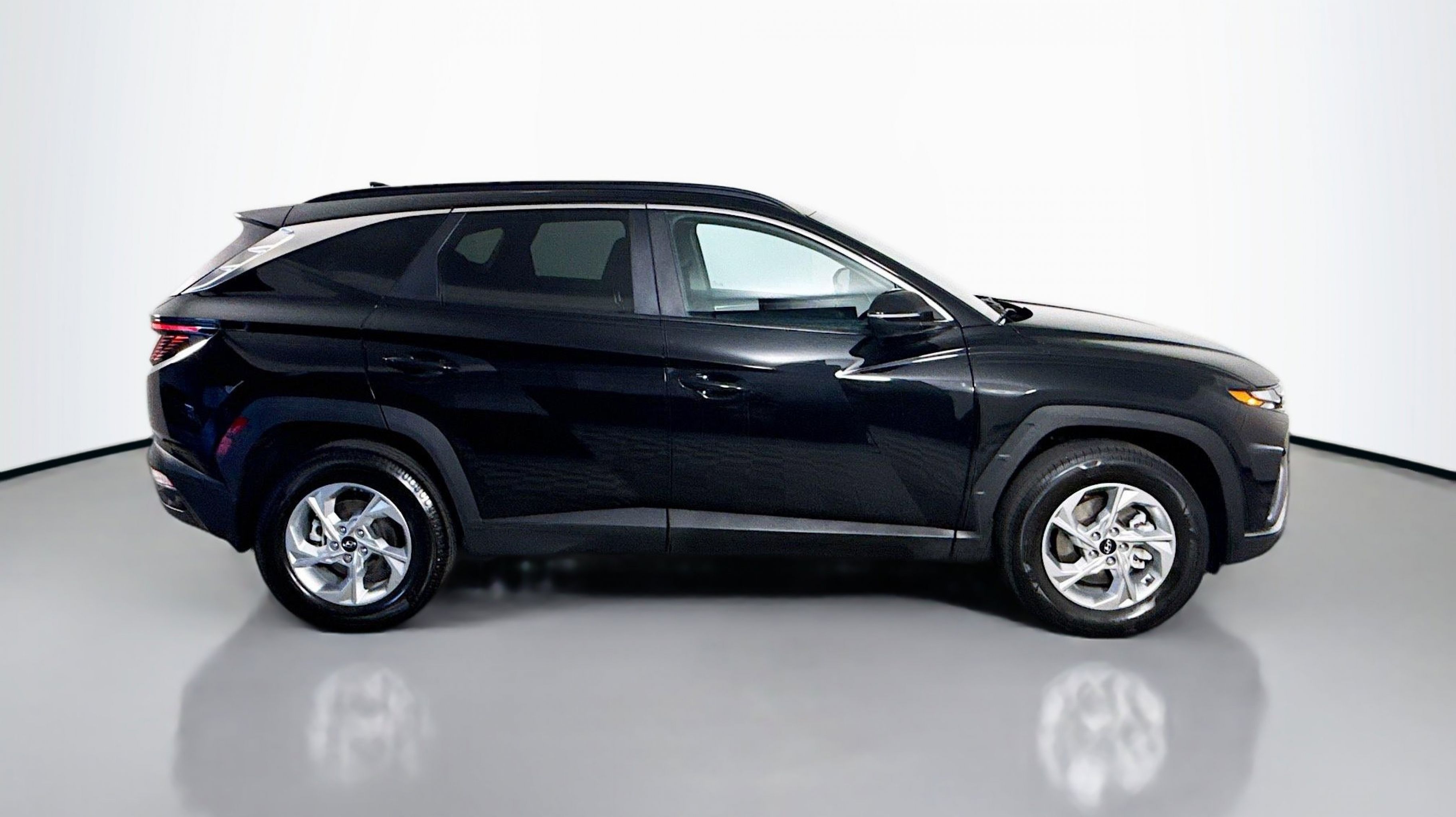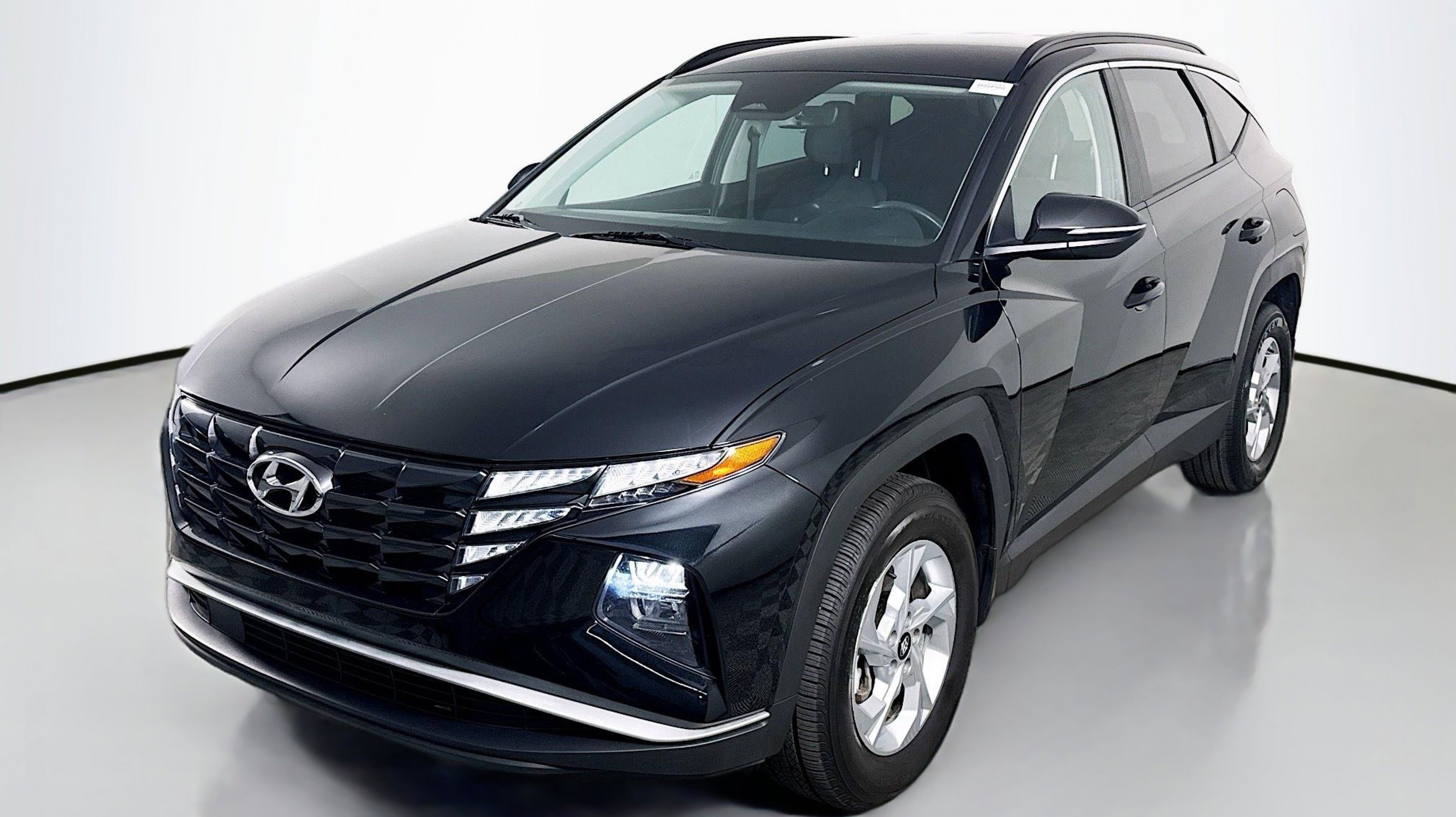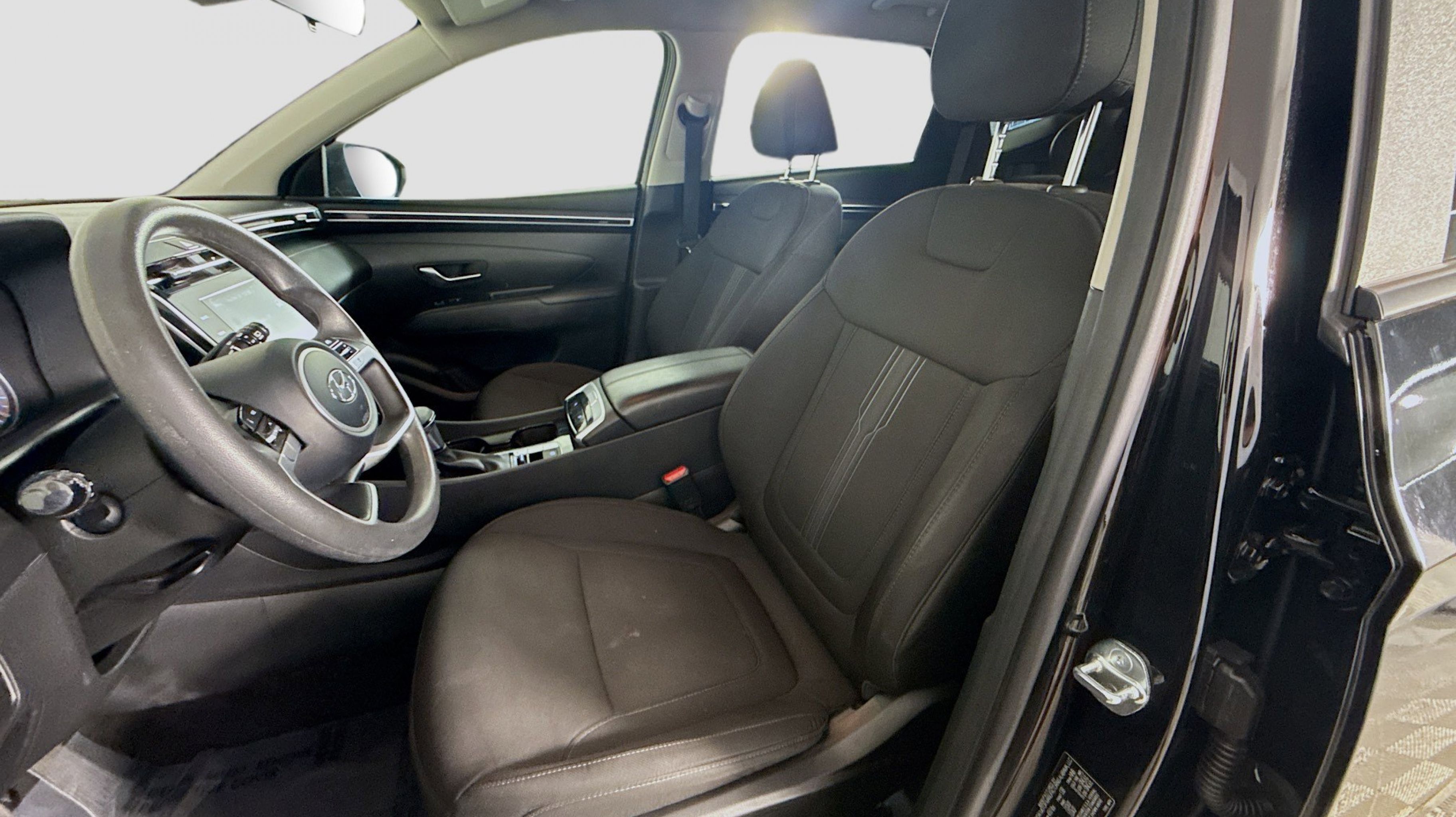 Phantom Black 2023 Hyundai Tucson SEL AWD 8-Speed Automatic with SHIFTRONIC 2.5L I4 DGI DOHC 16V LEV3-ULEV70 187hp AWD, Option Group 01, 3.648 Axle Ratio, 4-Wheel Disc Brakes, 6 Speakers, ABS brakes, Air Conditioning, Alloy wheels, AM/FM radio: SiriusXM, Apple CarPlay & Android Auto, Auto High-beam Headlights, Brake assist, Bumpers: body-color, Cargo Net, Cargo Tray, Carpeted Floor Mats, Delay-off headlights, Driver door bin, Driver vanity mirror, Dual front impact airbags, Dual front side impact airbags, Electronic Stability Control, Emergency communication system: Blue Link Connected Car Service (3-year complimentary subscription), First Aid Kit, Four wheel independent suspension, Front and Rear Mudguards, Front anti-roll bar, Front Bucket Seats, Front Center Armrest, Front reading lights, Fully automatic headlights, H-Tex Seat Trim, Heated door mirrors, Heated Front Bucket Seats, Heated front seats, Illuminated entry, Low tire pressure warning, Occupant sensing airbag, Outside temperature display, Overhead airbag, Overhead console, Panic alarm, Passenger door bin, Passenger vanity mirror, Power door mirrors, Power driver seat, Power Liftgate, Power steering, Power windows, Radio data system, Radio: AM/FM/HD/SiriusXM Audio System, Rear anti-roll bar, Rear Bumper APPLIQUE, Rear seat center armrest, Rear window defroster, Rear window wiper, Remote keyless entry, Roof rack: rails only, Security system, Speed control, Split folding rear seat, Spoiler, Stain & Odor Resistant Cloth Seat Trim, Steering wheel mounted audio controls, Tachometer, Telescoping steering wheel, Tilt steering wheel, Traction control, Trip computer, Turn signal indicator mirrors, Variably intermittent wipers, Wheels: 17 x 7.0J Alloy, AWD, Option Group 01.