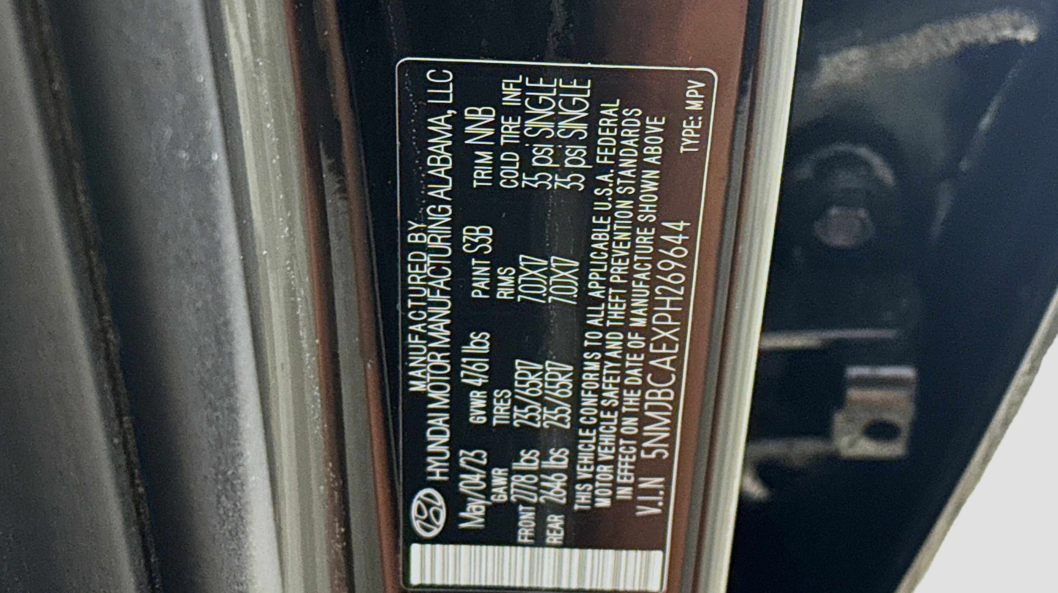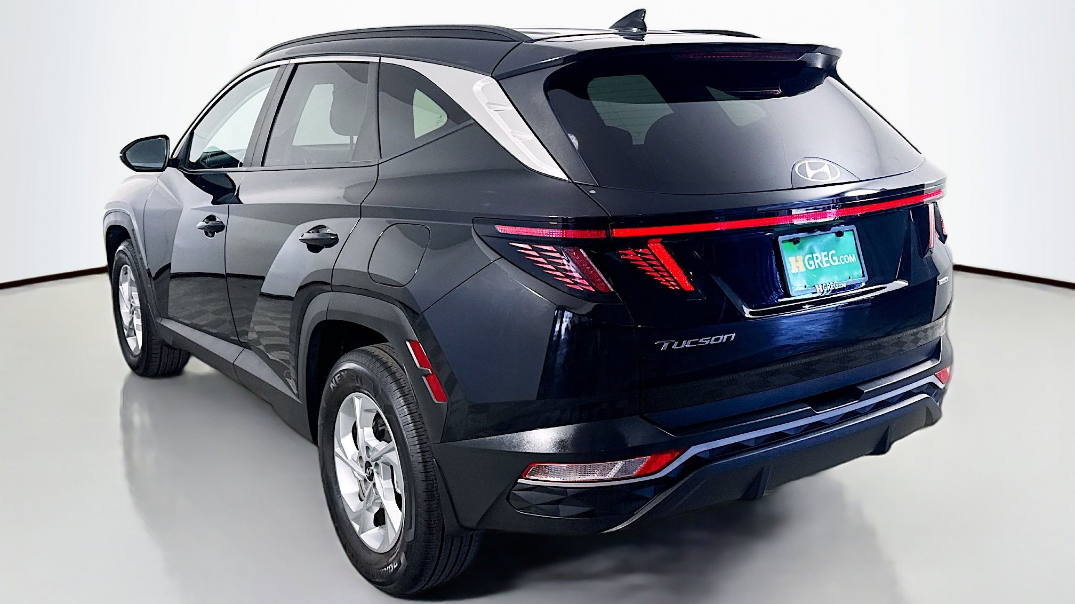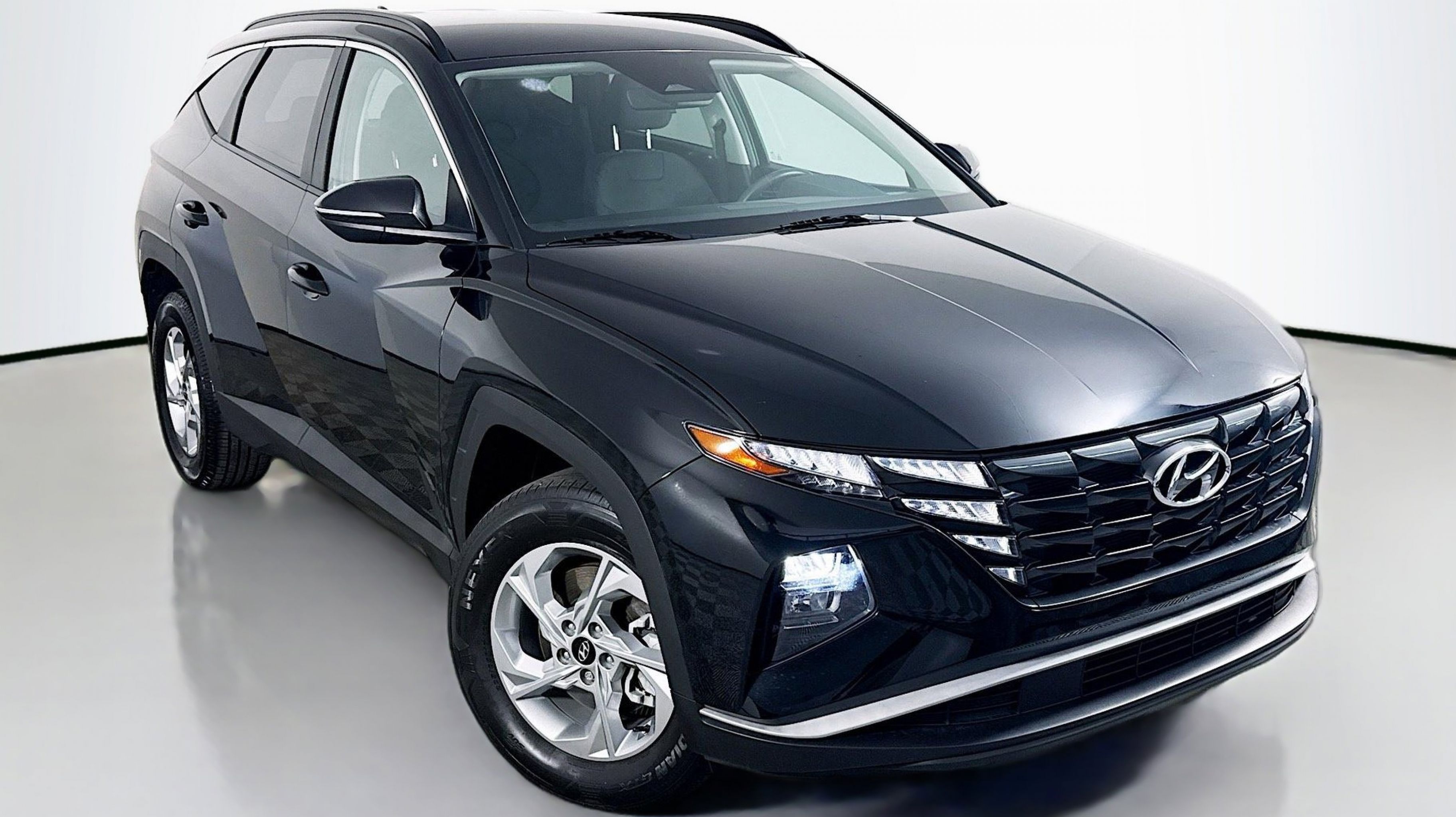 Phantom Black 2023 Hyundai Tucson SEL AWD 8-Speed Automatic with SHIFTRONIC 2.5L I4 DGI DOHC 16V LEV3-ULEV70 187hp AWD, Option Group 01, 3.648 Axle Ratio, 4-Wheel Disc Brakes, 6 Speakers, ABS brakes, Air Conditioning, Alloy wheels, AM/FM radio: SiriusXM, Apple CarPlay & Android Auto, Auto High-beam Headlights, Brake assist, Bumpers: body-color, Cargo Net, Cargo Tray, Carpeted Floor Mats, Delay-off headlights, Driver door bin, Driver vanity mirror, Dual front impact airbags, Dual front side impact airbags, Electronic Stability Control, Emergency communication system: Blue Link Connected Car Service (3-year complimentary subscription), First Aid Kit, Four wheel independent suspension, Front and Rear Mudguards, Front anti-roll bar, Front Bucket Seats, Front Center Armrest, Front reading lights, Fully automatic headlights, H-Tex Seat Trim, Heated door mirrors, Heated Front Bucket Seats, Heated front seats, Illuminated entry, Low tire pressure warning, Occupant sensing airbag, Outside temperature display, Overhead airbag, Overhead console, Panic alarm, Passenger door bin, Passenger vanity mirror, Power door mirrors, Power driver seat, Power Liftgate, Power steering, Power windows, Radio data system, Radio: AM/FM/HD/SiriusXM Audio System, Rear anti-roll bar, Rear Bumper APPLIQUE, Rear seat center armrest, Rear window defroster, Rear window wiper, Remote keyless entry, Roof rack: rails only, Security system, Speed control, Split folding rear seat, Spoiler, Stain & Odor Resistant Cloth Seat Trim, Steering wheel mounted audio controls, Tachometer, Telescoping steering wheel, Tilt steering wheel, Traction control, Trip computer, Turn signal indicator mirrors, Variably intermittent wipers, Wheels: 17 x 7.0J Alloy, AWD, Option Group 01.
