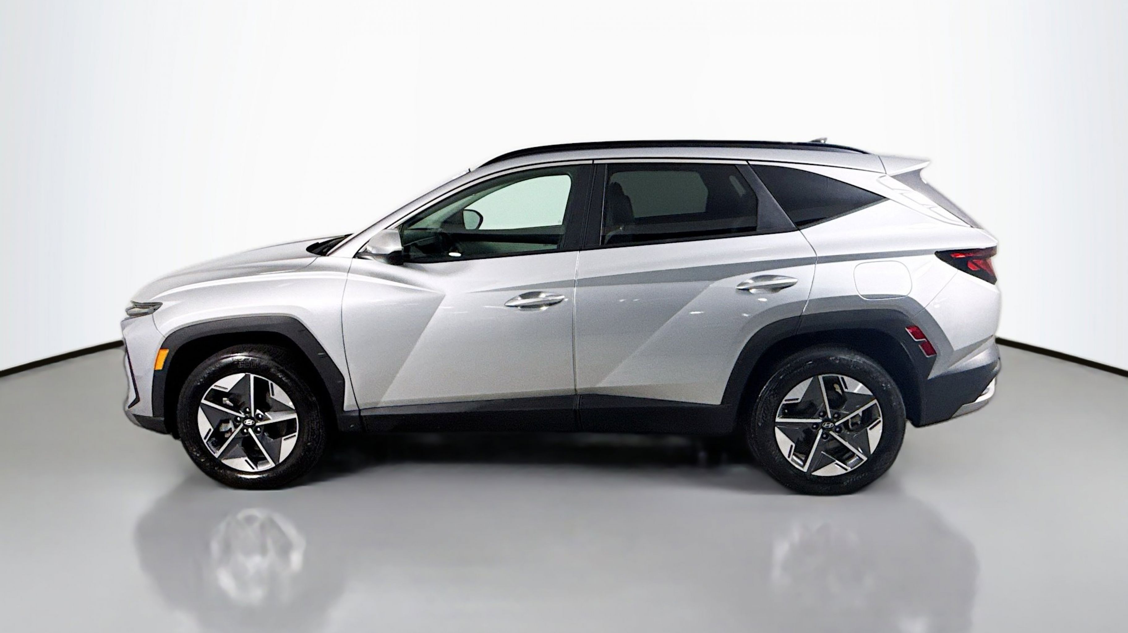 Shimmering Silver 2025 Hyundai Tucson SEL AWD 8-Speed Automatic with SHIFTRONIC 2.5L I4 DGI DOHC 16V LEV3-SULEV30 187hp AWD, Option Group 01, 18 Alloy Wheels, 4-Wheel Disc Brakes, 6 Speakers, ABS brakes, Air Conditioning, Alloy wheels, AM/FM radio: SiriusXM, Apple CarPlay & Android Auto, Auto High-beam Headlights, Automatic temperature control, Brake assist, Bumpers: body-color, Delay-off headlights, Driver door bin, Driver vanity mirror, Dual front impact airbags, Dual front side impact airbags, Electronic Stability Control, Emergency communication system: Bluelink+, Four wheel independent suspension, Front anti-roll bar, Front Bucket Seats, Front Center Armrest, Front dual zone A/C, Front reading lights, Fully automatic headlights, Heated door mirrors, Heated Front Bucket Seats, Heated front seats, Illuminated entry, Low tire pressure warning, Occupant sensing airbag, Outside temperature display, Overhead airbag, Overhead console, Panic alarm, Passenger door bin, Passenger vanity mirror, Power door mirrors, Power driver seat, Power Liftgate, Power steering, Power windows, Radio data system, Radio: AM/FM/HD Audio System, Rear anti-roll bar, Rear reading lights, Rear seat center armrest, Rear side impact airbag, Rear window defroster, Rear window wiper, Remote keyless entry, Security system, Speed control, Split folding rear seat, Spoiler, Stain & Odor Resistant Cloth Seat Trim, Steering wheel mounted audio controls, Tachometer, Telescoping steering wheel, Tilt steering wheel, Traction control, Trip computer, Variably intermittent wipers, AWD, Option Group 01.