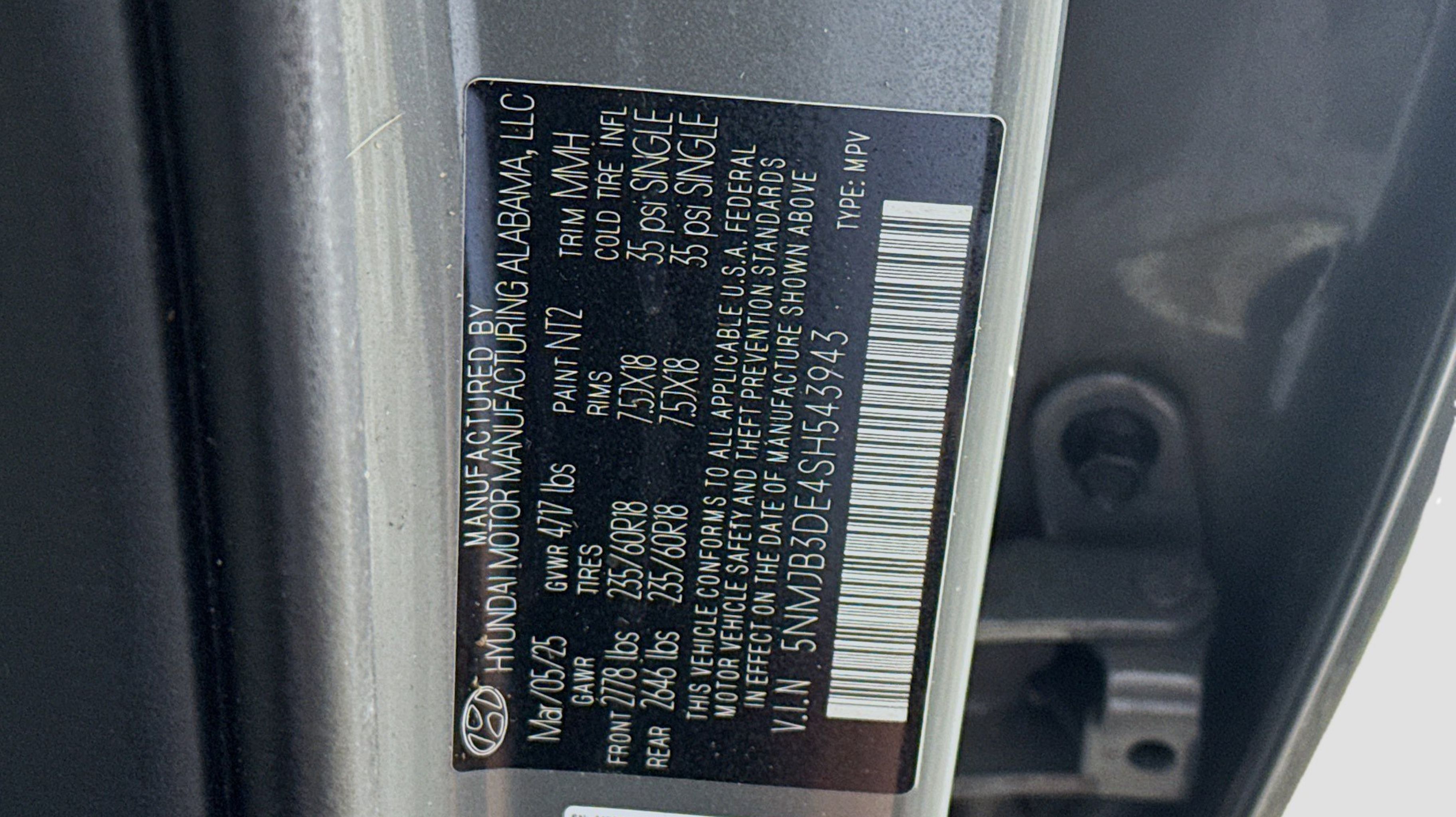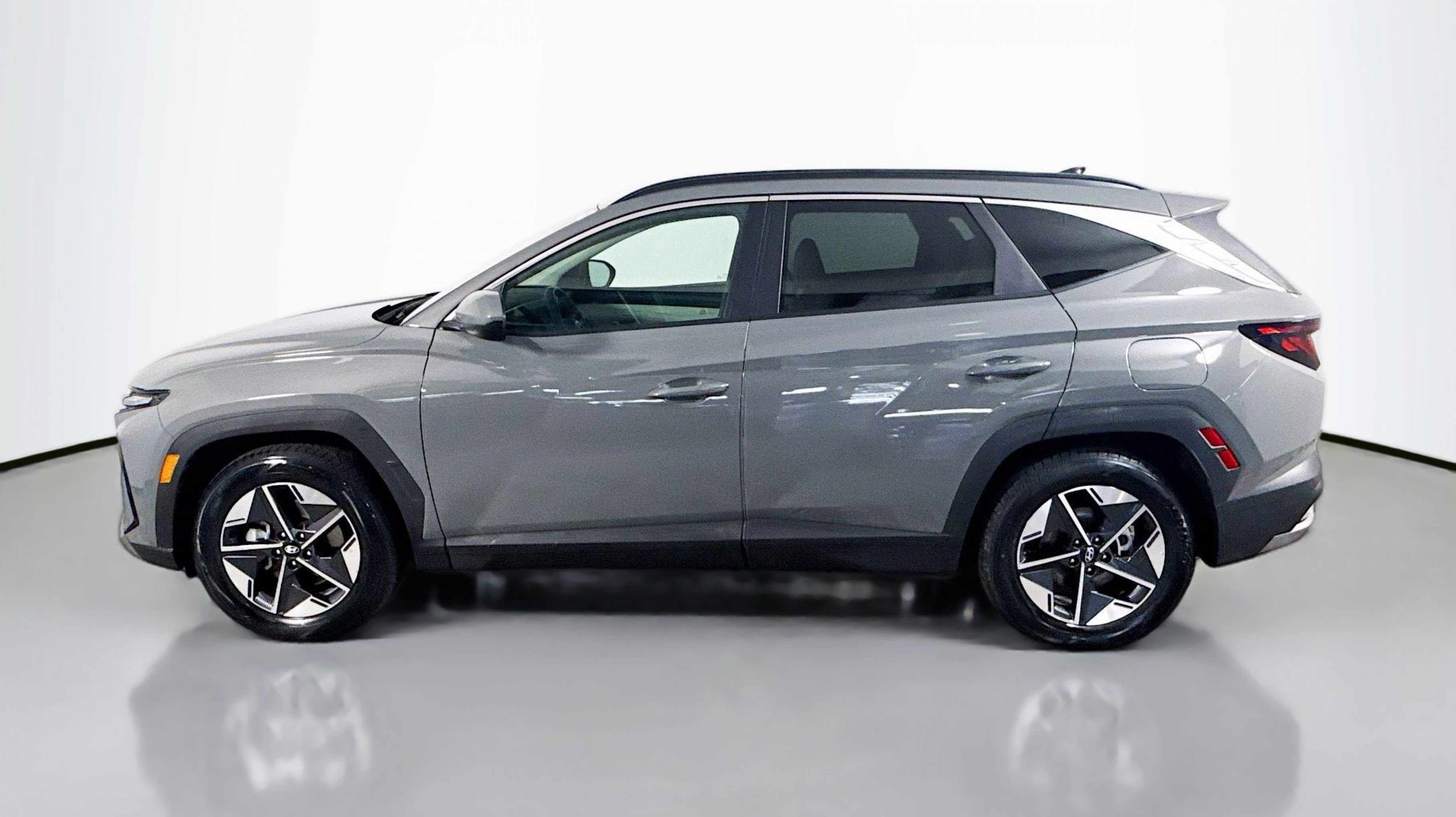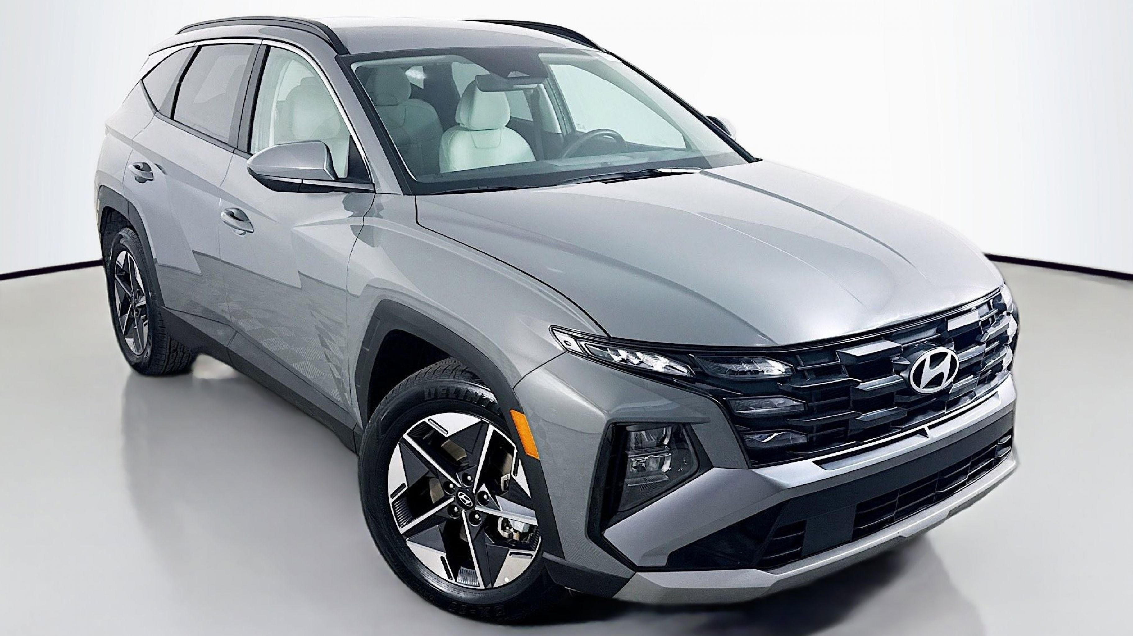 Hampton Gray 2025 Hyundai Tucson SEL FWD 8-Speed Automatic with SHIFTRONIC 2.5L I4 DGI DOHC 16V LEV3-SULEV30 187hp Option Group 01, 18 Alloy Wheels, 4-Wheel Disc Brakes, 6 Speakers, ABS brakes, Air Conditioning, Alloy wheels, AM/FM radio: SiriusXM, Apple CarPlay & Android Auto, Auto High-beam Headlights, Automatic temperature control, Brake assist, Bumpers: body-color, Carpeted Floor Mats, Delay-off headlights, Driver door bin, Driver vanity mirror, Dual front impact airbags, Dual front side impact airbags, Electronic Stability Control, Emergency communication system: Bluelink+, First Aid Kit, Four wheel independent suspension, Front anti-roll bar, Front Bucket Seats, Front Center Armrest, Front dual zone A/C, Front reading lights, Fully automatic headlights, Heated door mirrors, Heated Front Bucket Seats, Heated front seats, Illuminated entry, Low tire pressure warning, Occupant sensing airbag, Outside temperature display, Overhead airbag, Overhead console, Panic alarm, Passenger door bin, Passenger vanity mirror, Power door mirrors, Power driver seat, Power Liftgate, Power steering, Power windows, Radio data system, Radio: AM/FM/HD Audio System, Rear anti-roll bar, Rear reading lights, Rear seat center armrest, Rear side impact airbag, Rear window defroster, Rear window wiper, Remote keyless entry, Security system, Speed control, Split folding rear seat, Spoiler, Stain & Odor Resistant Cloth Seat Trim, Steering wheel mounted audio controls, Tachometer, Telescoping steering wheel, Tilt steering wheel, Tow Hitch, Traction control, Trip computer, Variably intermittent wipers, Option Group 01.