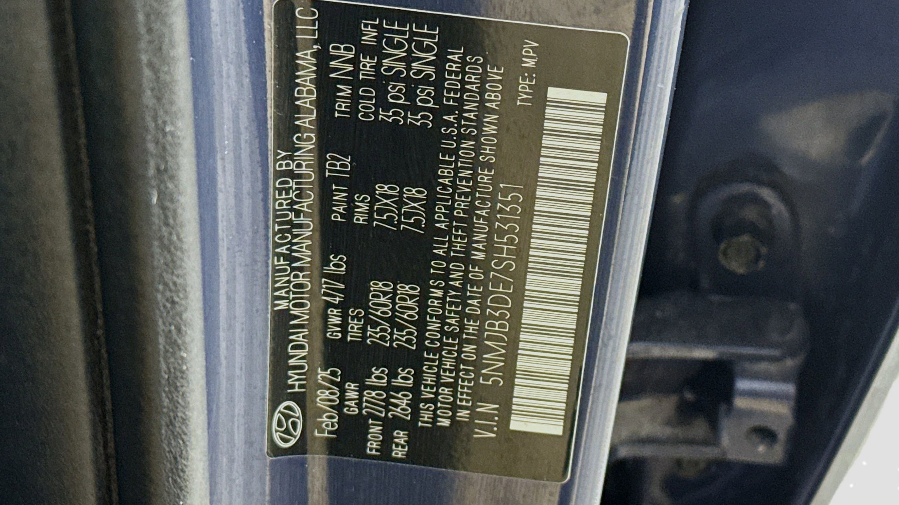 Atlantis Blue 2025 Hyundai Tucson SEL FWD 8-Speed Automatic with SHIFTRONIC 2.5L I4 DGI DOHC 16V LEV3-SULEV30 187hp Option Group 01, 18 Alloy Wheels, 4-Wheel Disc Brakes, 6 Speakers, ABS brakes, Air Conditioning, Alloy wheels, AM/FM radio: SiriusXM, Apple CarPlay & Android Auto, Auto High-beam Headlights, Automatic temperature control, Brake assist, Bumpers: body-color, Cargo Tray, Carpeted Floor Mats, Delay-off headlights, Driver door bin, Driver vanity mirror, Dual front impact airbags, Dual front side impact airbags, Electronic Stability Control, Emergency communication system: Bluelink+, First Aid Kit, Four wheel independent suspension, Front anti-roll bar, Front Bucket Seats, Front Center Armrest, Front dual zone A/C, Front reading lights, Fully automatic headlights, Heated door mirrors, Heated Front Bucket Seats, Heated front seats, Illuminated entry, Low tire pressure warning, Occupant sensing airbag, Outside temperature display, Overhead airbag, Overhead console, Panic alarm, Passenger door bin, Passenger vanity mirror, Power door mirrors, Power driver seat, Power Liftgate, Power steering, Power windows, Radio data system, Radio: AM/FM/HD Audio System, Rear anti-roll bar, Rear reading lights, Rear seat center armrest, Rear side impact airbag, Rear window defroster, Rear window wiper, Remote keyless entry, Security system, Speed control, Split folding rear seat, Spoiler, Stain & Odor Resistant Cloth Seat Trim, Steering wheel mounted audio controls, Tachometer, Telescoping steering wheel, Tilt steering wheel, Tow Hitch, Traction control, Trip computer, Variably intermittent wipers, Option Group 01.
