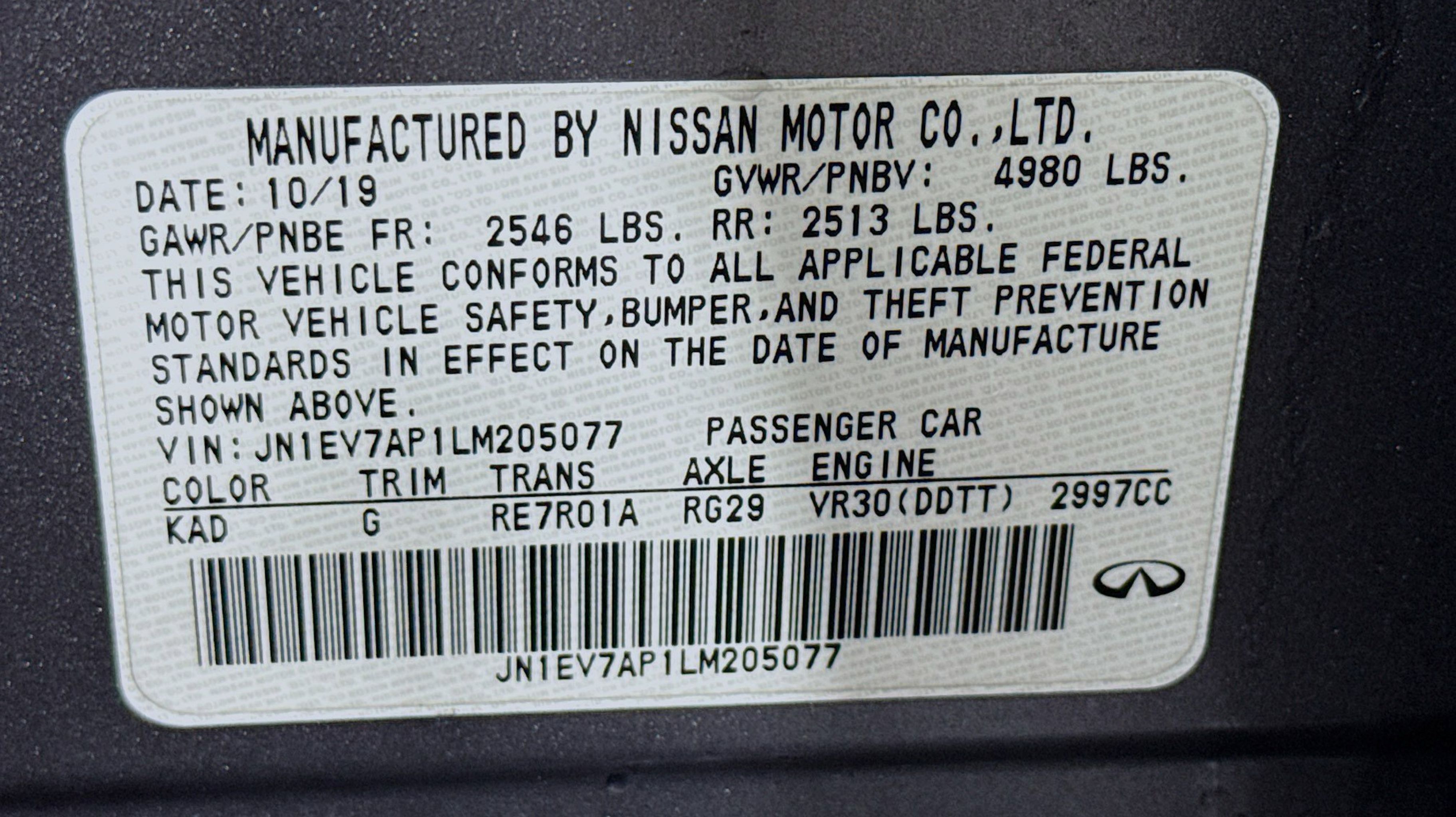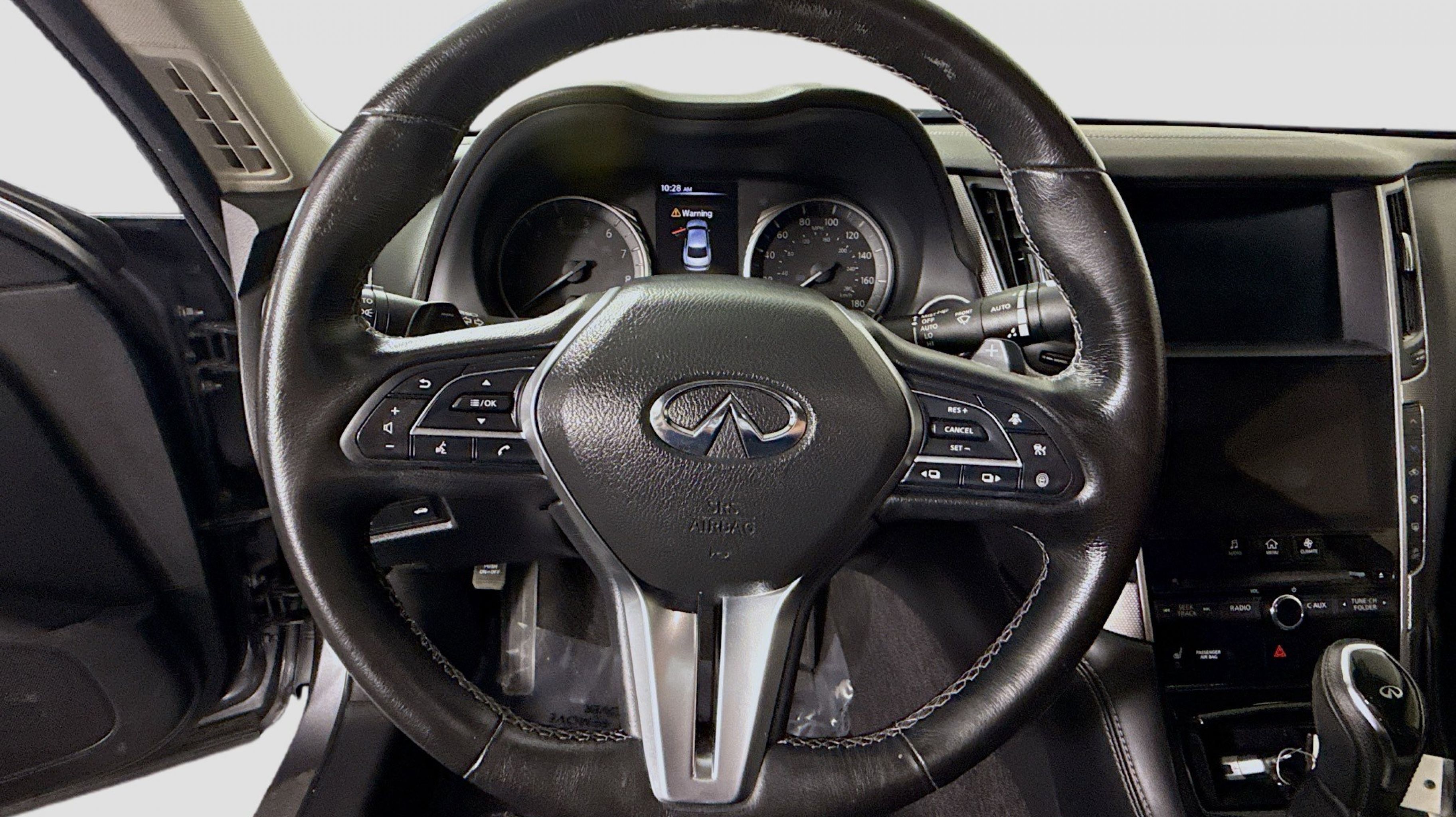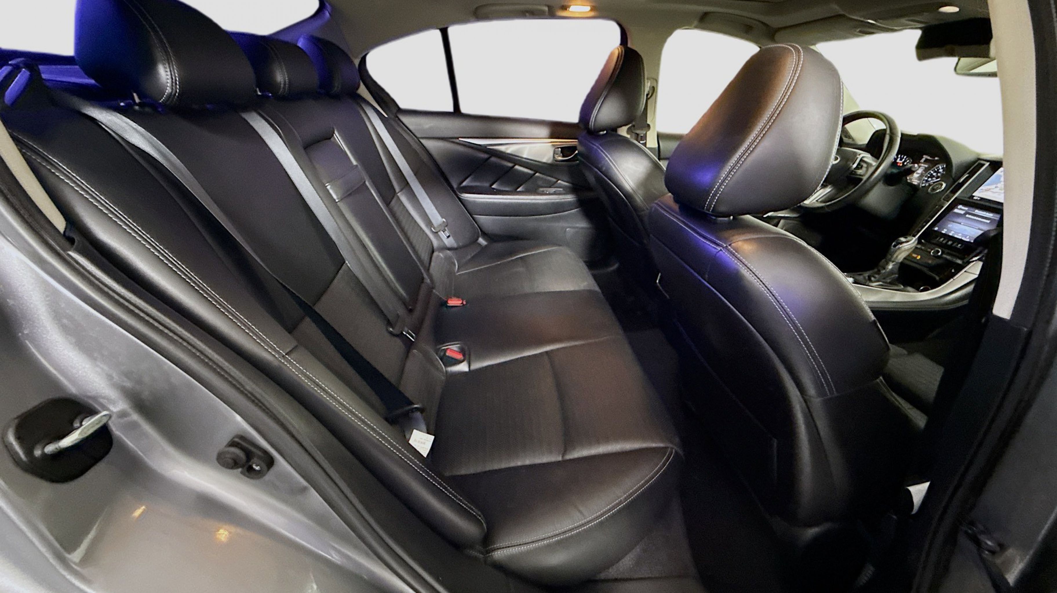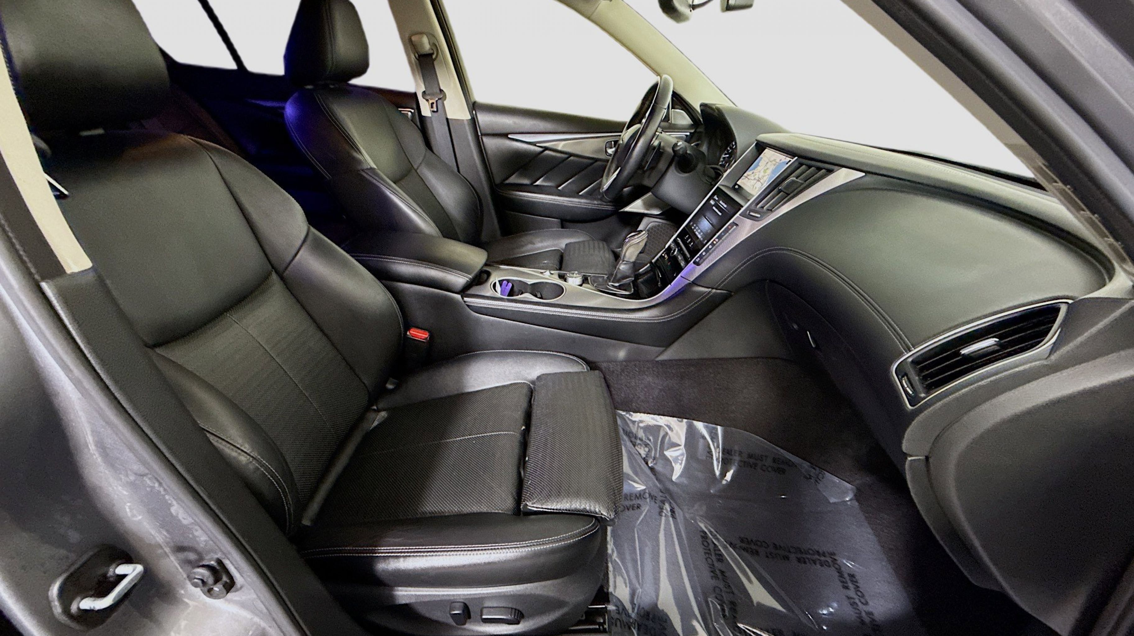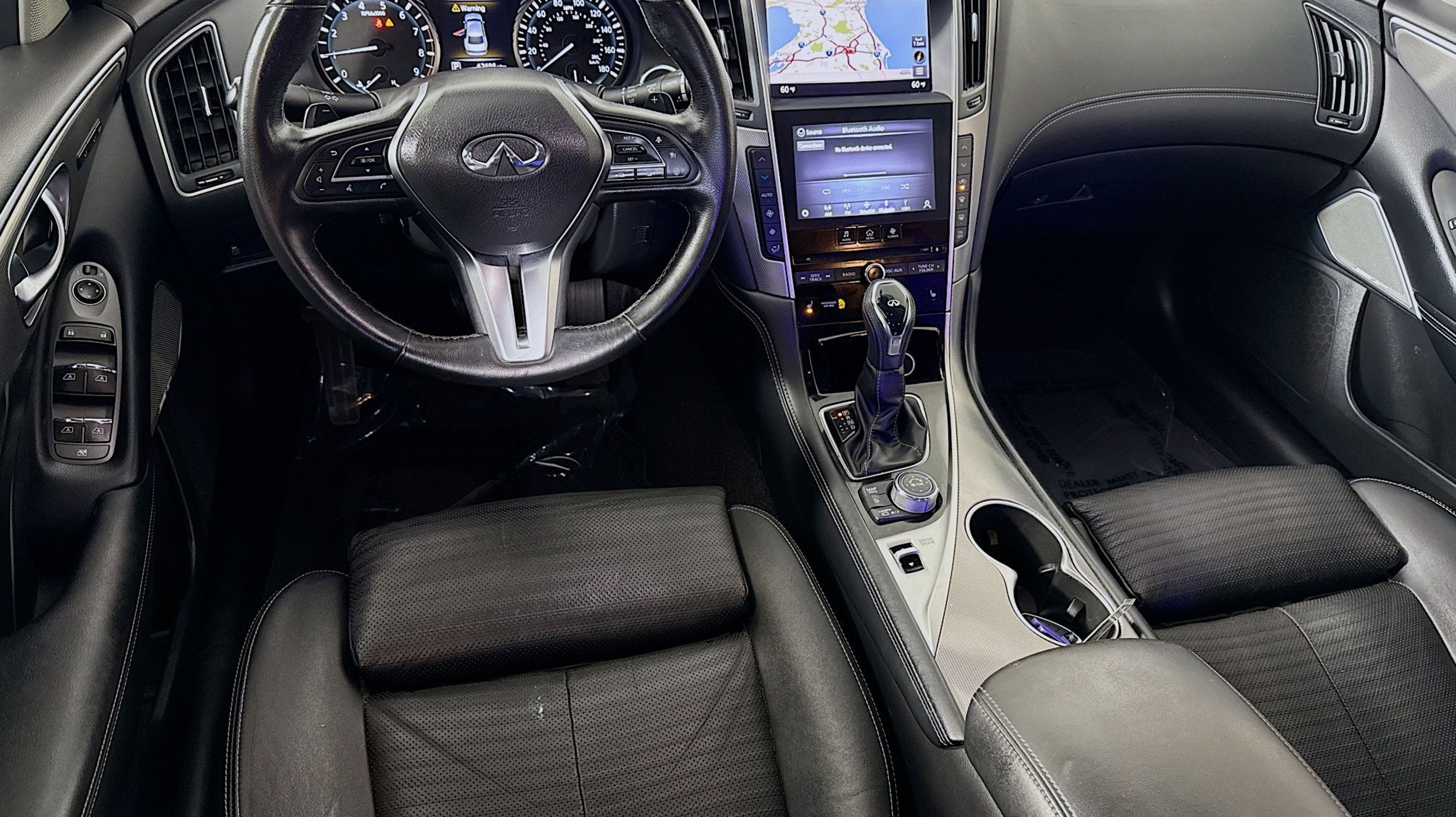 Clean CARFAX. Adaptive Front Lighting System, Blind-Spot Intervention (BSI), Direct Adaptive Steering, Distance Control Assist, ECO Pedal, Front Seat Pre-Crash Seat Belts, High Beam Assist (HBA), Intelligent Cruise Control, Lane Departure Prevention (LDP), ProACTIVE Package, 16 Speakers, 4-Wheel Disc Brakes, ABS brakes, Adaptive suspension, Air Conditioning, Alloy wheels, AM/FM radio: SiriusXM, Apple CarPlay/Android Auto, Auto tilt-away steering wheel, Auto-dimming door mirrors, Auto-dimming Rear-View mirror, Automatic temperature control, Blind Spot Warning, Brake assist, Bumpers: body-color, CD player, Compass, Delay-off headlights, Driver door bin, Driver vanity mirror, Dual front impact airbags, Dual front side impact airbags, Electronic Stability Control, Emergency communication system: INFINITI Connection, Four wheel independent suspension, Front anti-roll bar, Front Bucket Seats, Front Center Armrest, Front dual zone A/C, Front fog lights, Front reading lights, Fully automatic headlights, Garage door transmitter: HomeLink, Heated door mirrors, Heated front seats, Heated Front Sport Seats, Heated steering wheel, Illuminated entry, Leather Shift Knob, Leather steering wheel, Leather-Appointed Seating Surfaces, Literature Kit, Low tire pressure warning, Memory seat, Navigation system: INFINITI InTouch Navigation, Occupant sensing airbag, Outside temperature display, Overhead airbag, Overhead console, Panic alarm, Passenger door bin, Passenger vanity mirror, Power door mirrors, Power driver seat, Power moonroof, Power passenger seat, Power steering, Power windows, Radio data system, Radio: INFINITI InTouch w/Navigation, Rain sensing wipers, Rear anti-roll bar, Rear reading lights, Rear seat center armrest, Rear window defroster, Remote keyless entry, Security system, Speed control, Speed-Sensitive Wipers, Split folding rear seat, Steering wheel memory, Steering wheel mounted audio controls, Tachometer, Telescoping steering wheel, Tilt steering wheel, Traction control, Trip computer, Turn signal indicator mirrors, Variably intermittent wipers, Wheels: 19 x 8.5 Aluminum-Alloy, Adaptive Front Lighting System, Blind-Spot Intervention (BSI), Direct Adaptive Steering, Distance Control Assist, ECO Pedal, Front Seat Pre-Crash Seat Belts, High Beam Assist (HBA), Intelligent Cruise Control, Lane Departure Prevention (LDP), ProACTIVE Package.