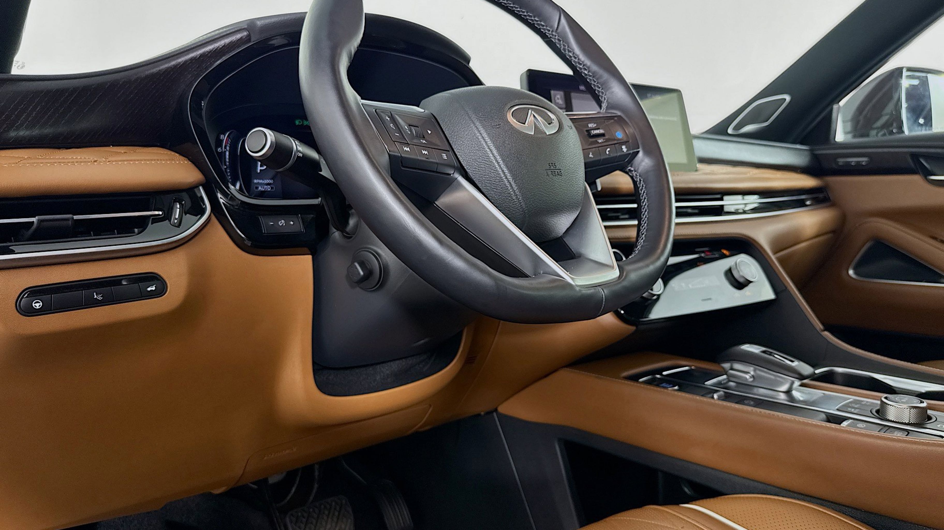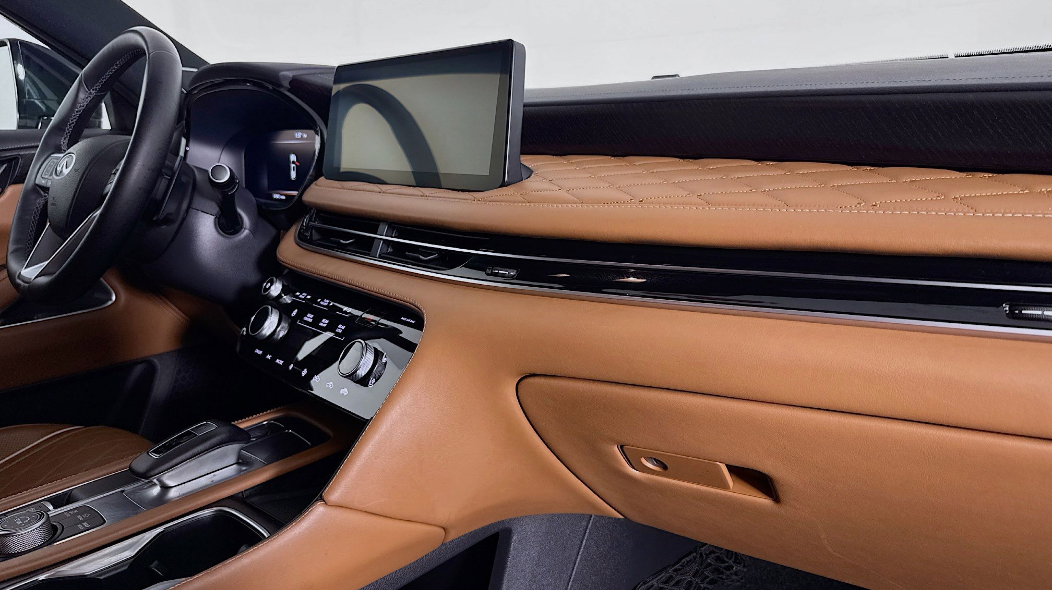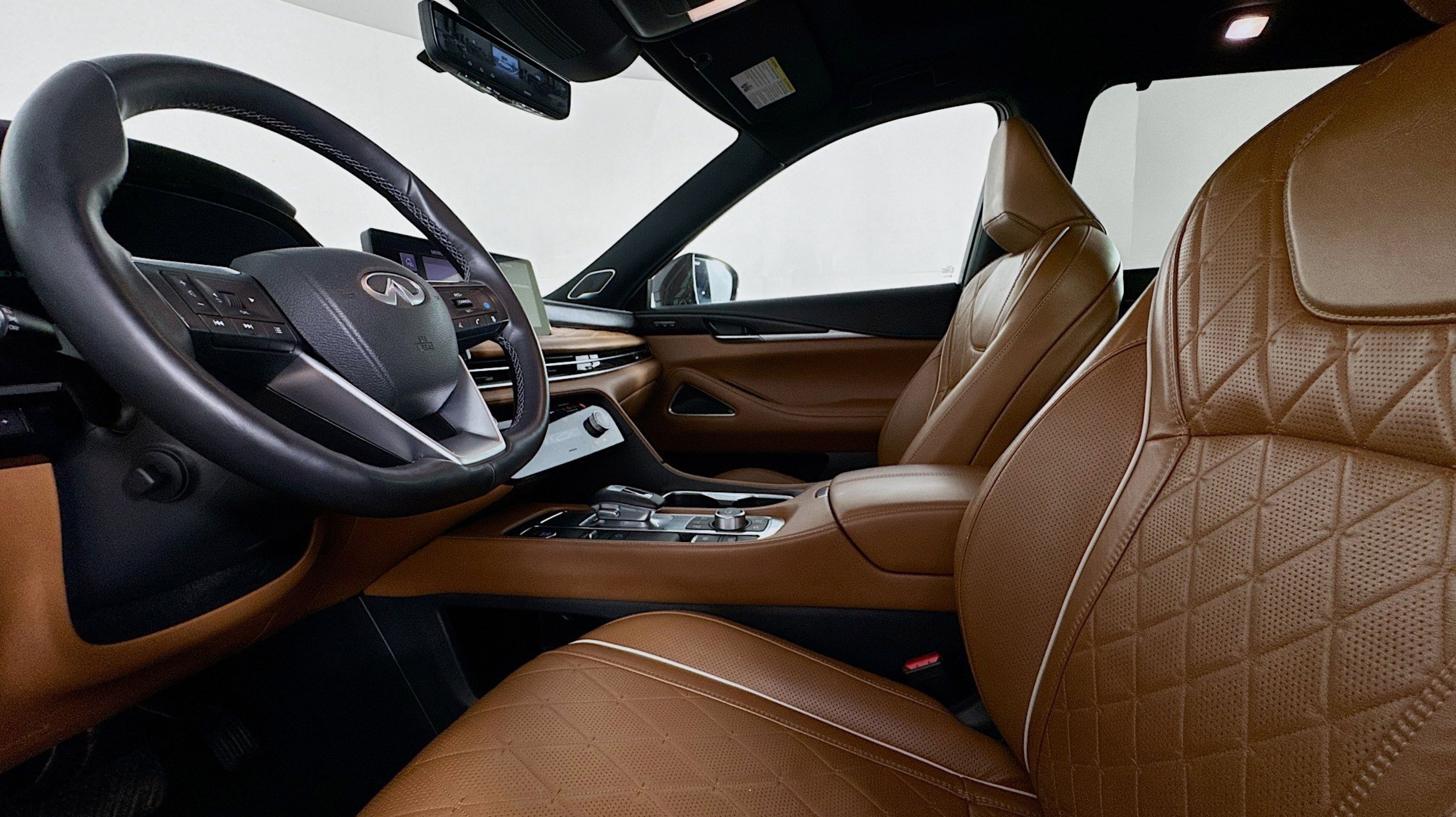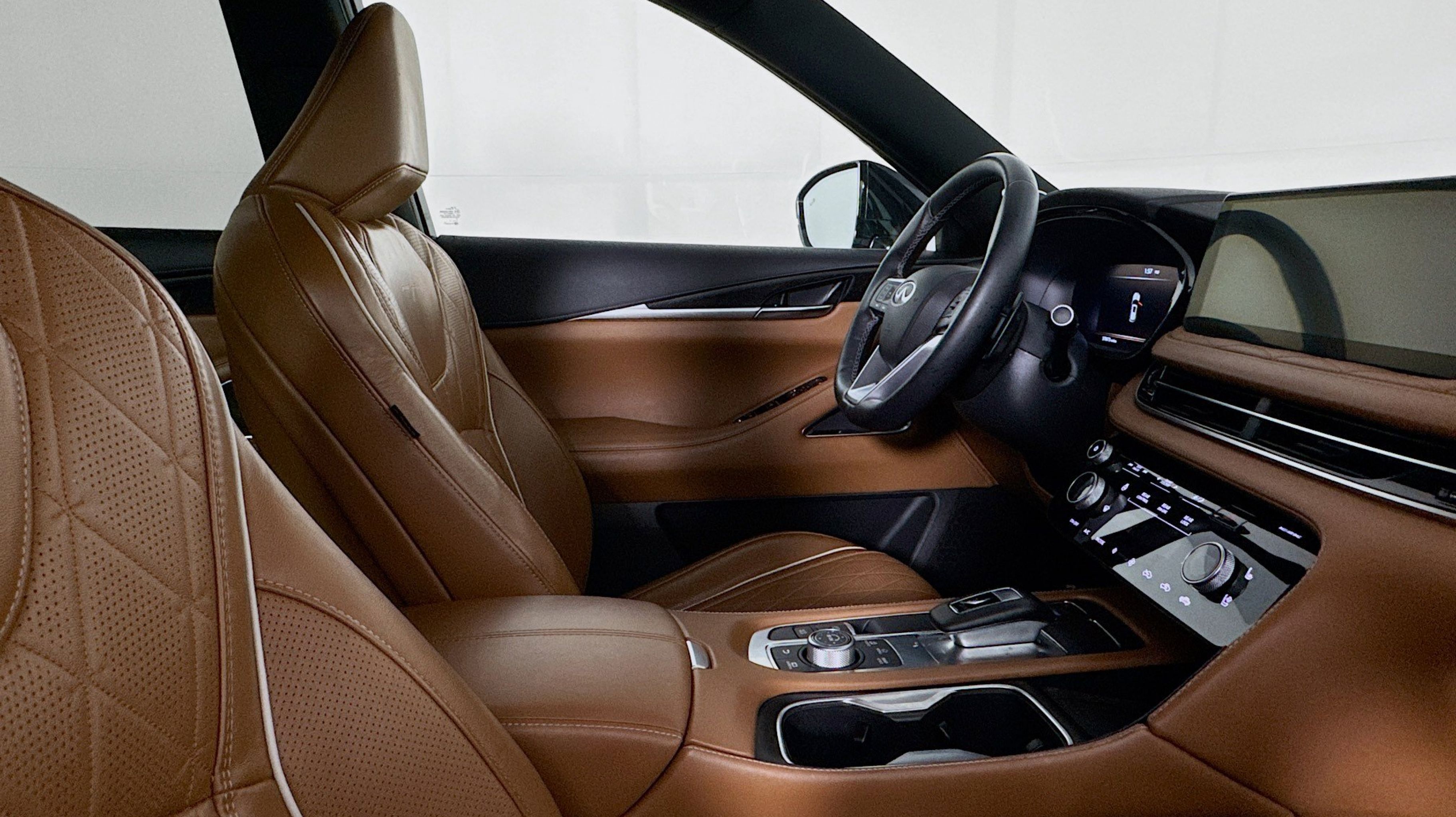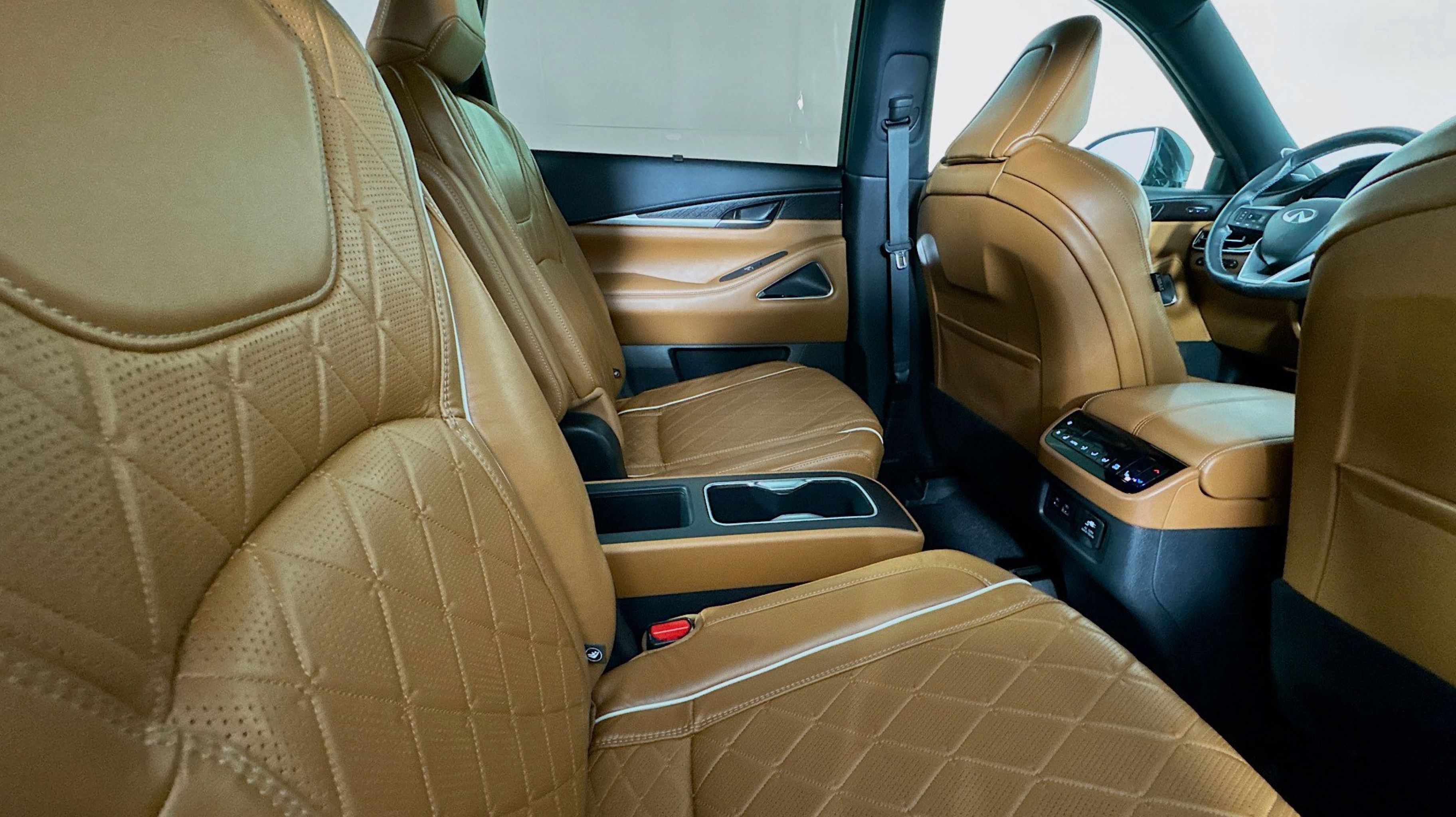 - SADDLE BROWN SEMI ANILINE LEATHER SEATING SURFACES -inc: quilting perforation and contrast stitch and piping