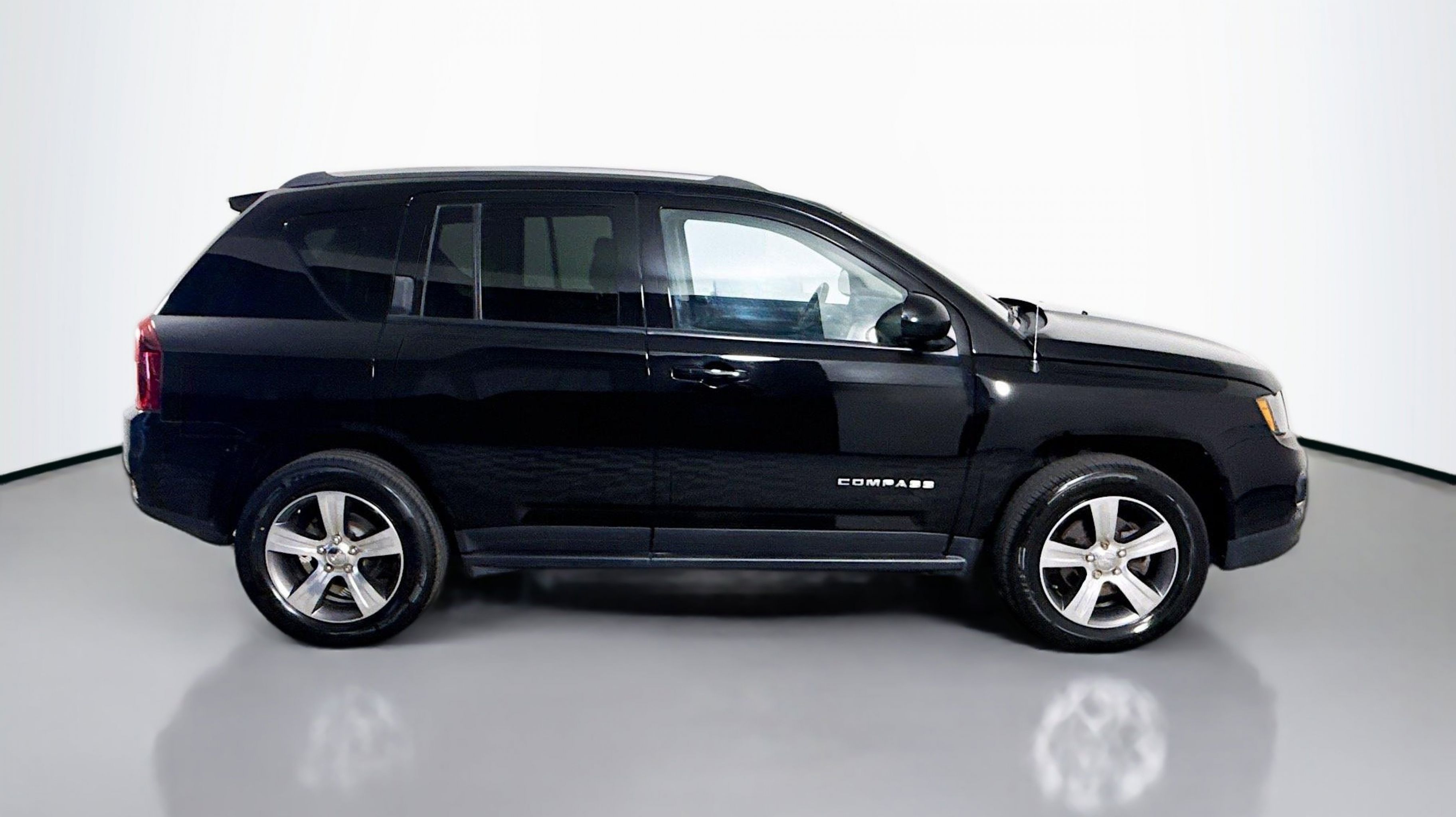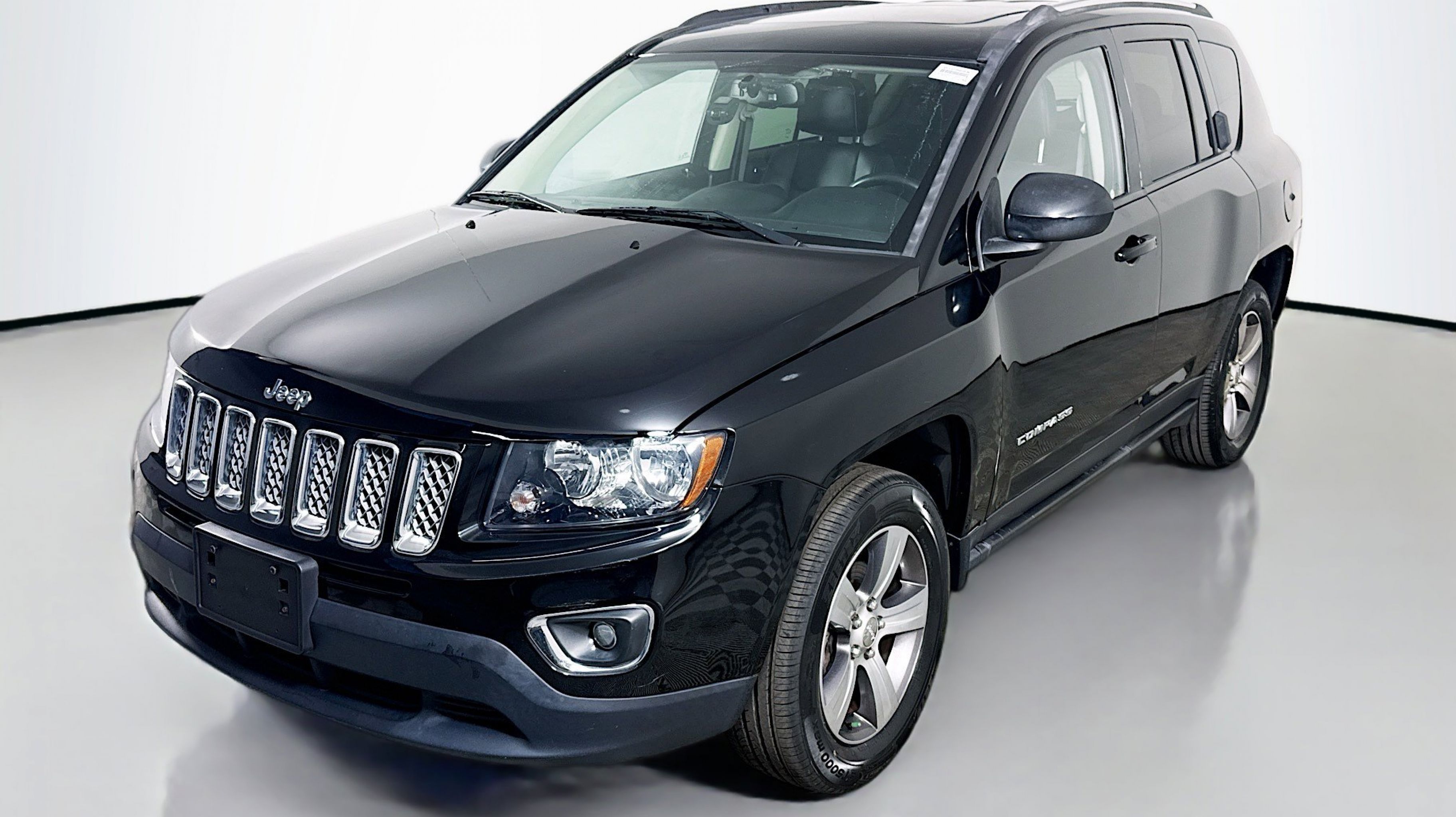 Black Clearcoat 2017 Jeep Compass High Altitude 4WD 6-Speed Automatic 2.4L I4 DOHC 16V Dual VVT 4WD, Body Color Fascias w/Bright Insert, Bright Exhaust Tip, Bright Side Roof Rails, Leather Trimmed Bucket Seats, Manual Driver Lumbar Adjust, Power 6-Way Driver Seat, Power Express Open/Close Sunroof, Quick Order Package 23P High Altitude, Remote Start System, Wheels: 17 x 6.5 Granite Painted Pocket, 17 x 6.5 Aluminum Wheels, 3.37 Axle Ratio, 4 Speakers, 4-Wheel Disc Brakes, ABS brakes, Air Conditioning, Alloy wheels, AM/FM radio: SiriusXM, Anti-whiplash front head restraints, Audio Jack Input for Mobile Devices, Auto-dimming Rear-View mirror, AutoStick Automatic Transmission, Brake assist, Bumpers: body-color, CD player, Cloth/Vinyl Low-Back Bucket Seats, Driver door bin, Driver vanity mirror, Dual front impact airbags, Dual front side impact airbags, Electronic Stability Control, Four wheel independent suspension, Front anti-roll bar, Front Bucket Seats, Front Center Armrest w/Storage, Front fog lights, Front reading lights, Fully automatic headlights, Heated door mirrors, Heated front seats, Illuminated entry, Low tire pressure warning, Occupant sensing airbag, Outside temperature display, Overhead airbag, Panic alarm, Passenger door bin, Passenger vanity mirror, Power door mirrors, Power steering, Power windows, Radio: 130, Rear anti-roll bar, Rear window defroster, Rear window wiper, Remote keyless entry, Roof rack: rails only, Speed control, Split folding rear seat, Spoiler, Steering wheel mounted audio controls, Tachometer, Tilt steering wheel, Tip Start, Traction control, Variably intermittent wipers, 4WD, Body Color Fascias w/Bright Insert, Bright Exhaust Tip, Bright Side Roof Rails, Leather Trimmed Bucket Seats, Manual Driver Lumbar Adjust, Power 6-Way Driver Seat, Power Express Open/Close Sunroof, Quick Order Package 23P High Altitude, Remote Start System, Wheels: 17 x 6.5 Granite Painted Pocket.