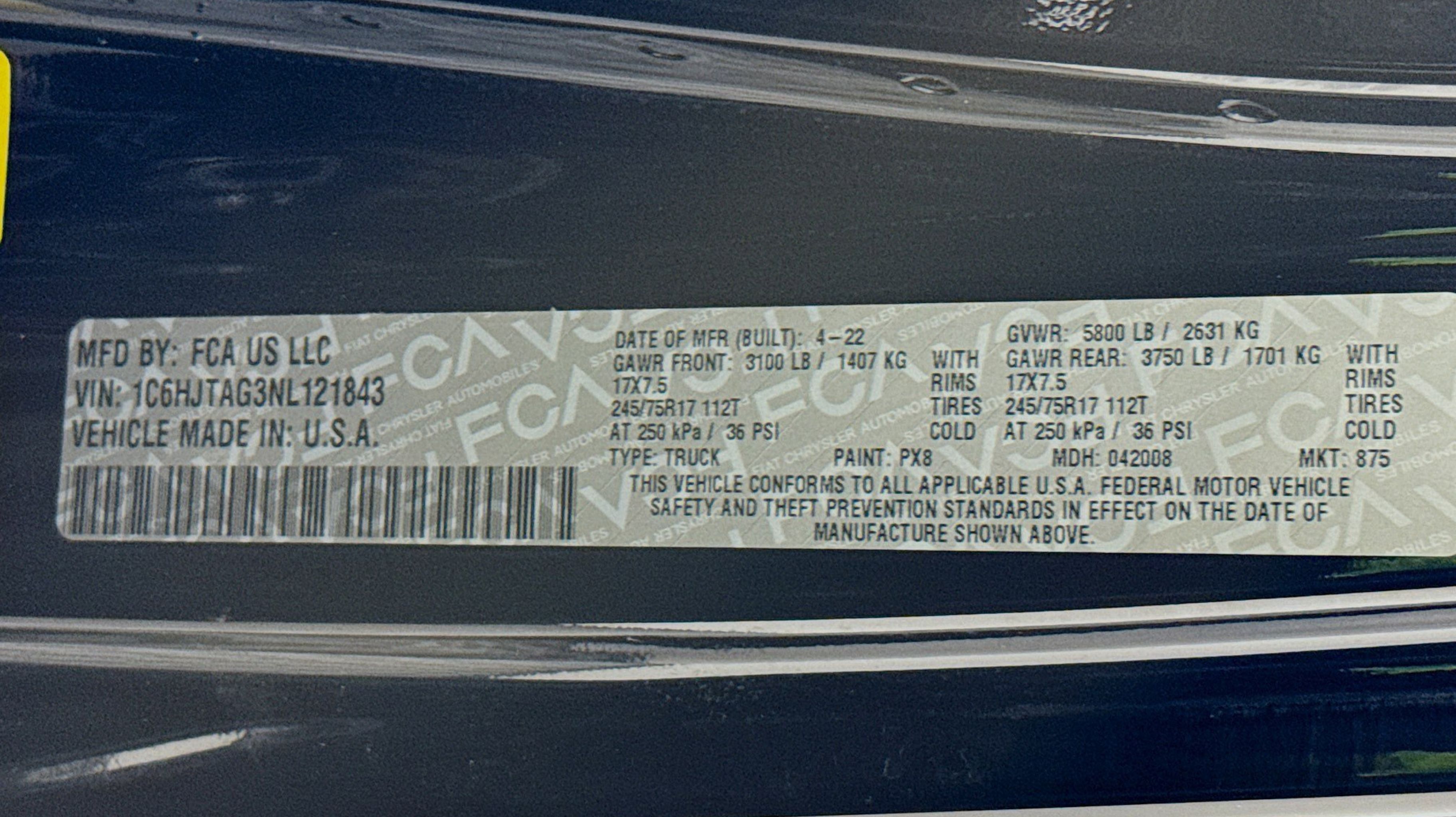 - TIRES: 245/75R17 H/T (STD)