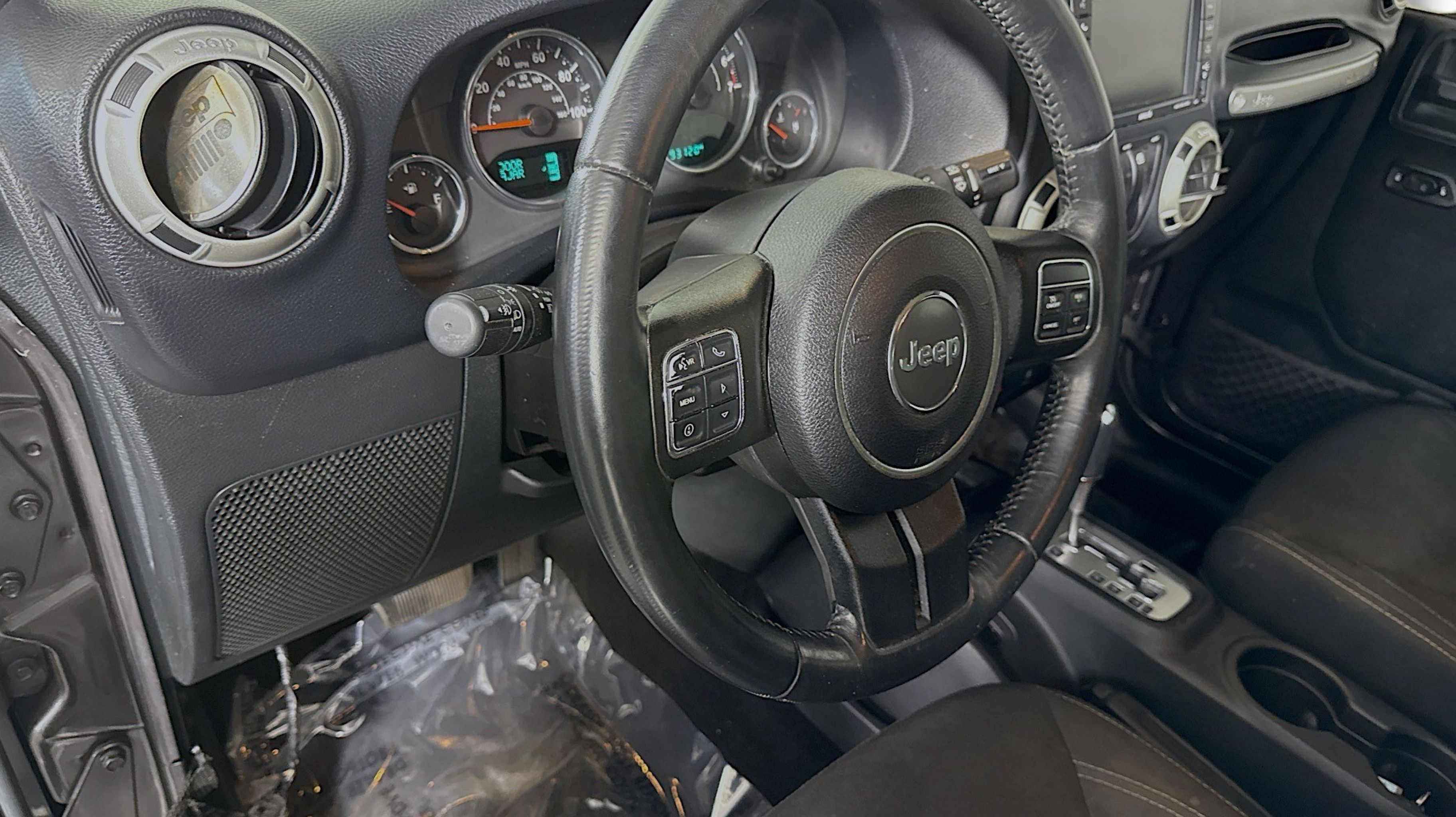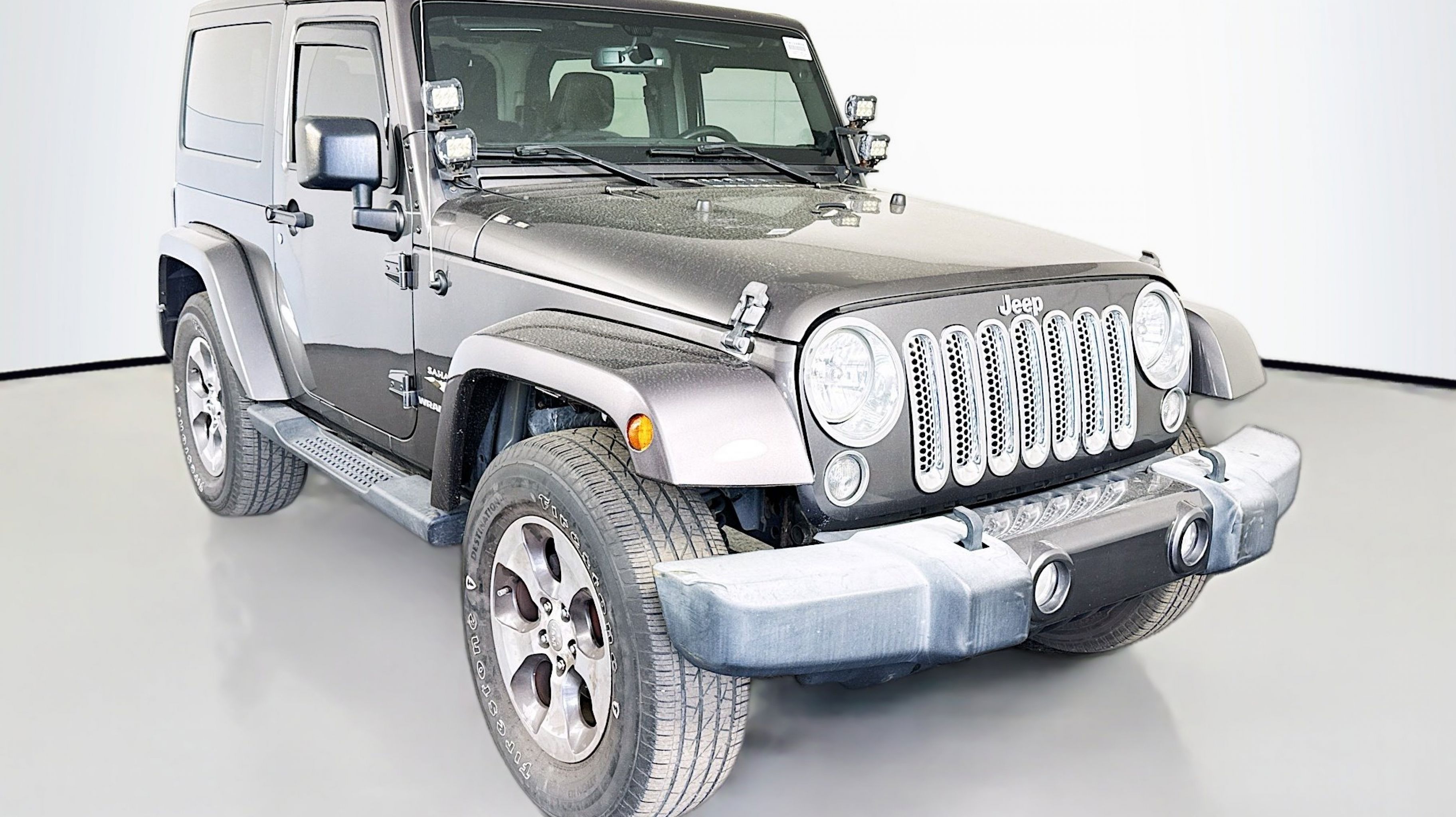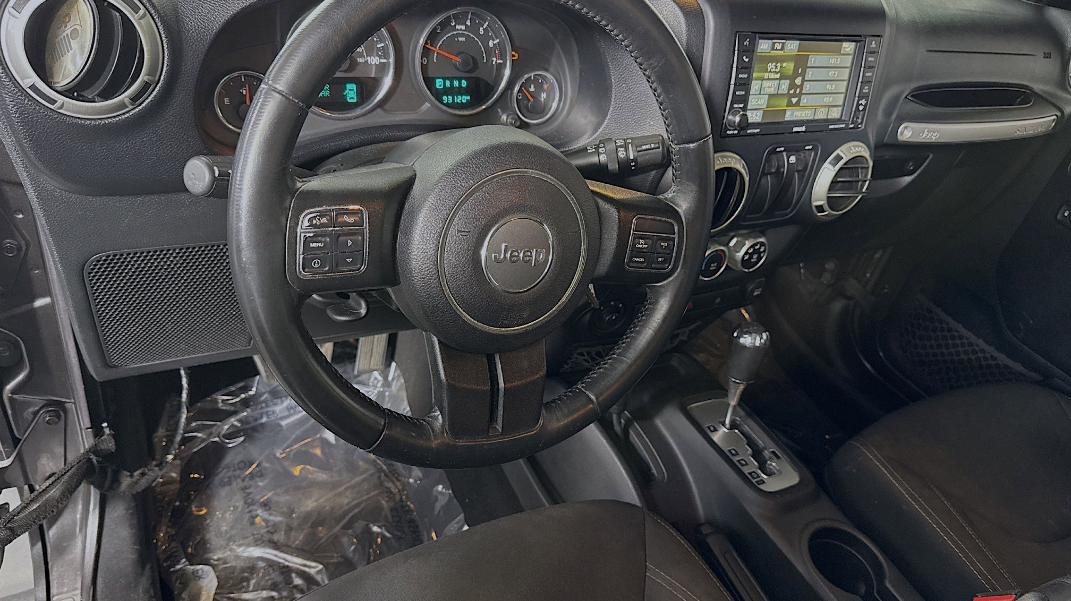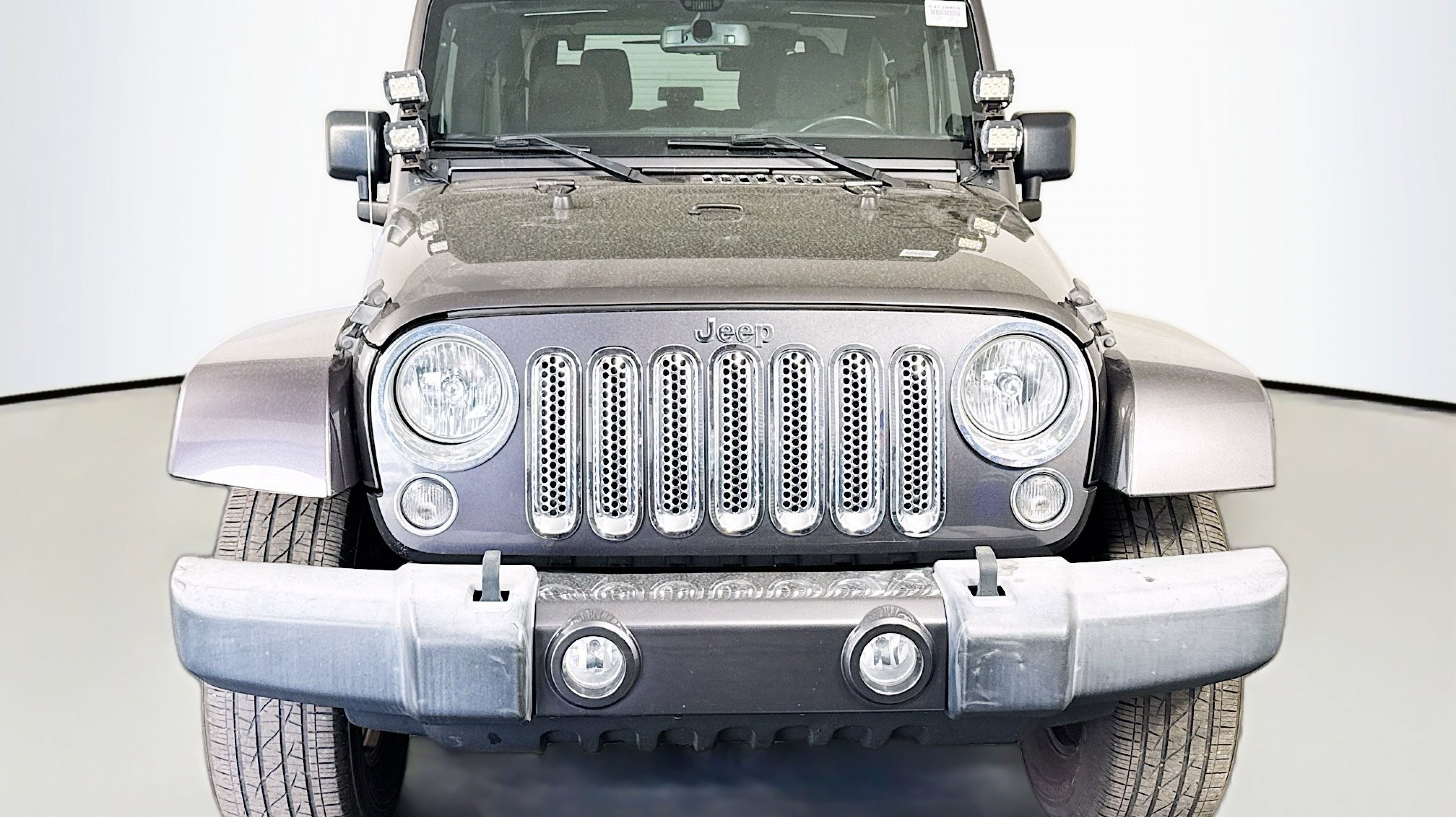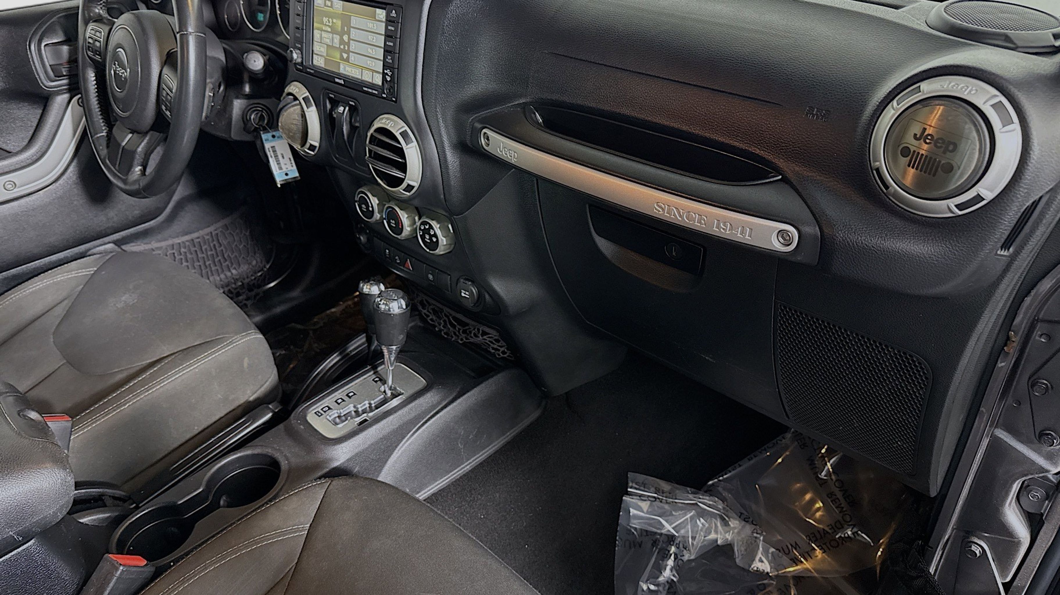 18 x 7.5 Polished Satin Carbon Wheels, 3.21 Rear Axle Ratio, 4-Wheel Disc Brakes, 40GB Hard Drive w/28GB Available, 5-Year SiriusXM Travel Link Service, 6.5 Touchscreen Display, 8 Speakers, ABS brakes, Air Conditioning, Alloy wheels, AM/FM radio: SiriusXM, Audio Jack Input for Mobile Devices, Auto-dimming Rear-View mirror, Black 3-Piece Hard Top, Body Color Appliques Front Bumper, Body Color Appliques Rear Bumper, Body Color/Accent Color Grille, Brake assist, CD player, Class II Receiver Hitch, Cloth Seats w/Adjustable Head Restraints, Compass, Connectivity Group, Driver door bin, Driver vanity mirror, Dual front impact airbags, Electronic Stability Control, Freedom Panel Storage Bag, Front anti-roll bar, Front Bucket Seats, Front fog lights, Front reading lights, Fully automatic headlights, GPS Navigation, Heated door mirrors, Heavy Duty Suspension w/Gas Shocks, Illuminated entry, Integrated roll-over protection, Leather steering wheel, Leather Wrapped Steering Wheel, Low tire pressure warning, Occupant sensing airbag, Outside temperature display, Panic alarm, Passenger door bin, Passenger vanity mirror, Power door mirrors, Power steering, Power windows, Quick Order Package 24G, Radio data system, Radio: 130, Radio: 430N, Rear anti-roll bar, REAR SEAT Center Armrest w/Storage, Rear Window Defroster, Rear Window Wiper/Washer, Remote keyless entry, Remote USB Port, Security system, SiriusXM Travel Link, Speed control, Steering wheel mounted audio controls, Sunrider Soft Top, Tachometer, Tilt steering wheel, Tire Pressure Monitoring Display, Traction control, Trailer Tow Group, Trailer Tow w/4-Pin Connector Wiring, Trip computer, Tubular Side Steps (DISC), Uconnect Voice Command w/Bluetooth, Variably intermittent wipers, Vehicle Information Center.