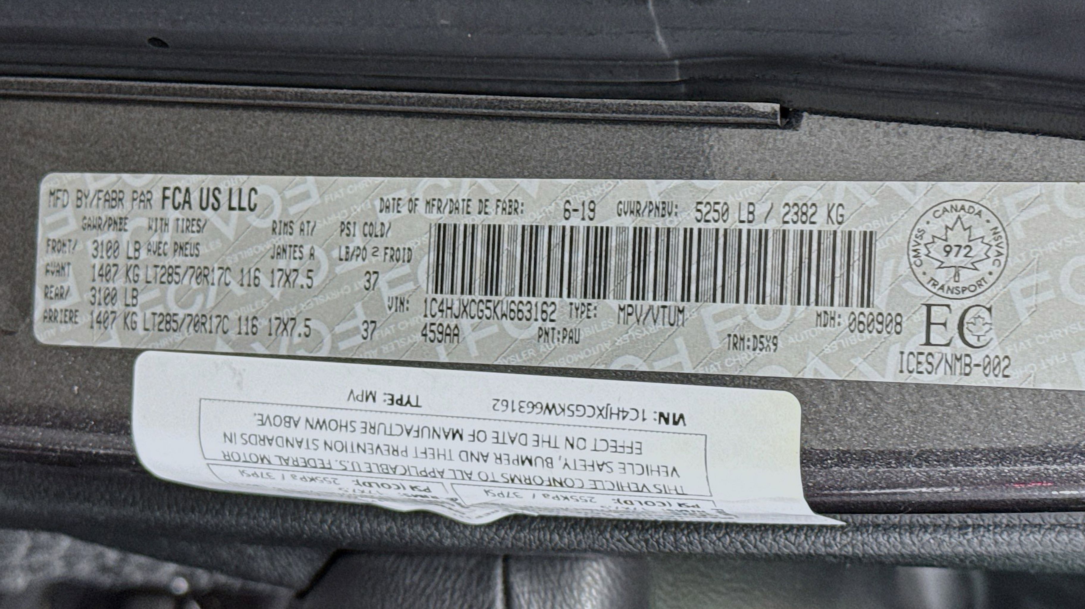 - GVWR: 5 250 LBS (STD)
