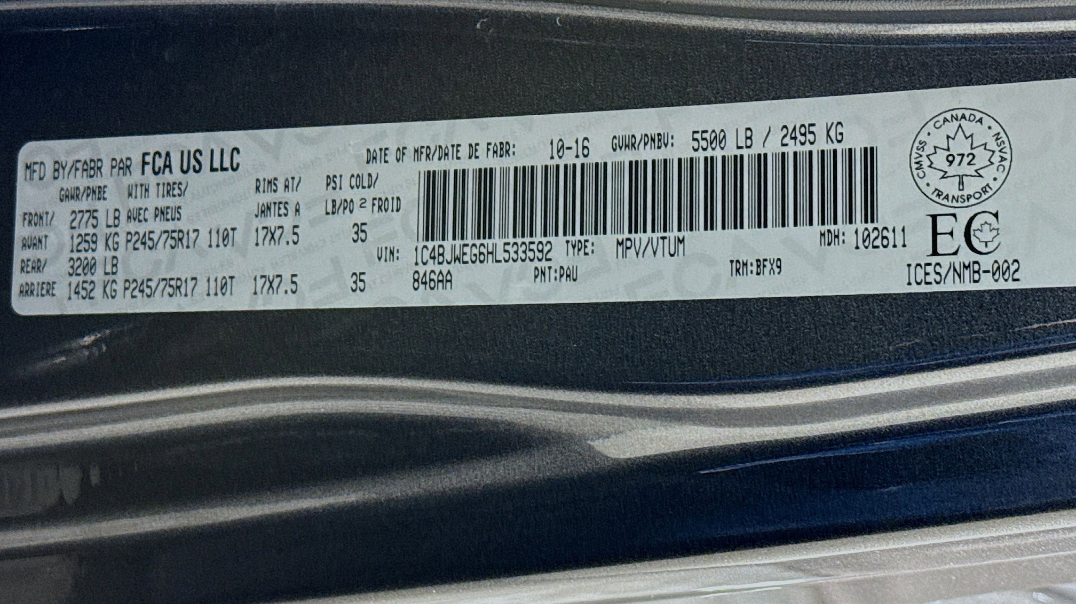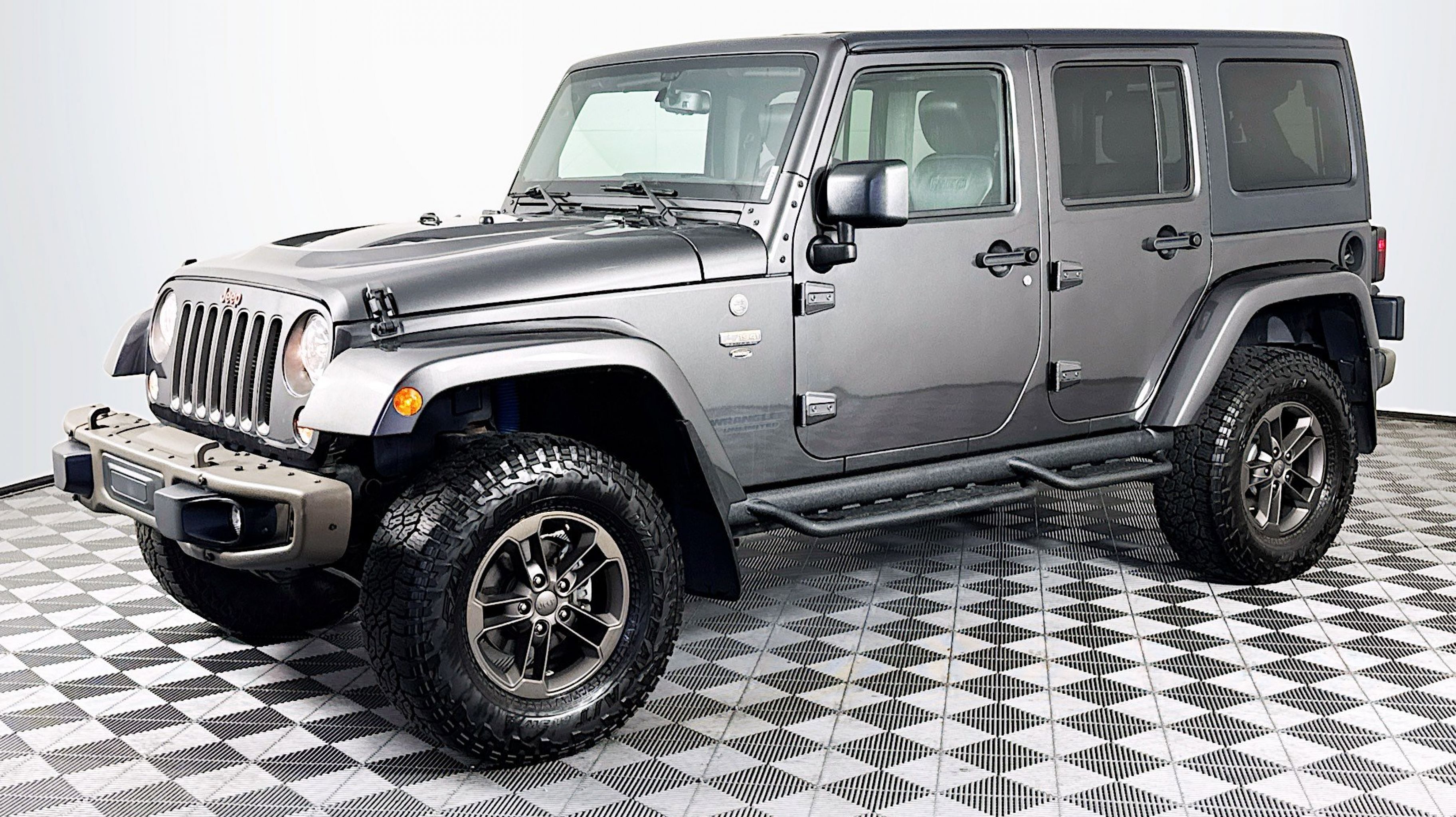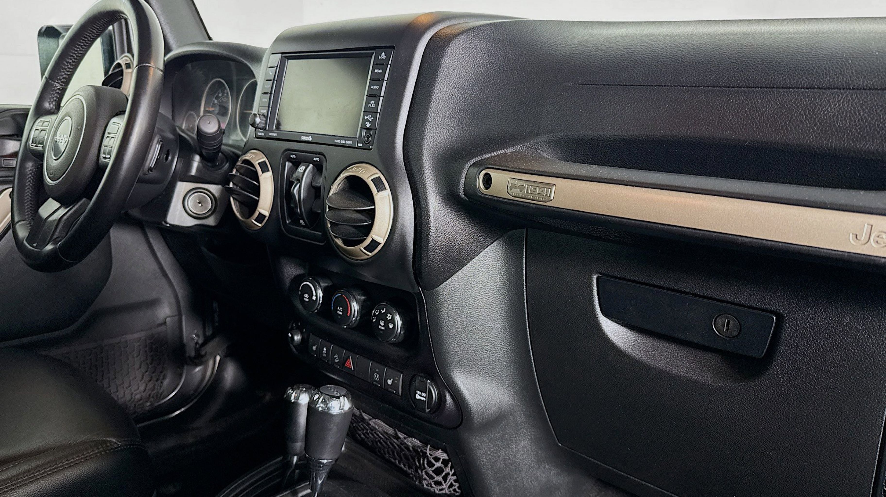 - QUICK ORDER PACKAGE 24H 75TH ANNIVERSARY -inc: Engine: 3.6L V6 24V VVT Transmission: 5-Speed Automatic (W5A580) 2 Front & 1 Rear Bronze Tow Hook Bronze Jeep Grille Badge Bronze Trail Rated Badge Low Gloss Black Wrangler Decal Moroccan Sun Instrument Panel Bezel Bronze Steel Rear Bumper Sunrider Soft Top Bronze Steel Front Bumper Jeep 75th Anniversary Package Moroccan Sun Interior Accents Vehicle Information Center Remote USB Port Uconnect Voice Command w/Bluetooth Tire Pressure Monitoring Display 75th Anniversary Badge Rock Rails Chrome/Leather Wrapped Shift Knob IP Grab Handle w/75th Anniversary Logo Hood w/Power Dome Goodyear Brand Tires Body Color Grille w/Bronze Accent