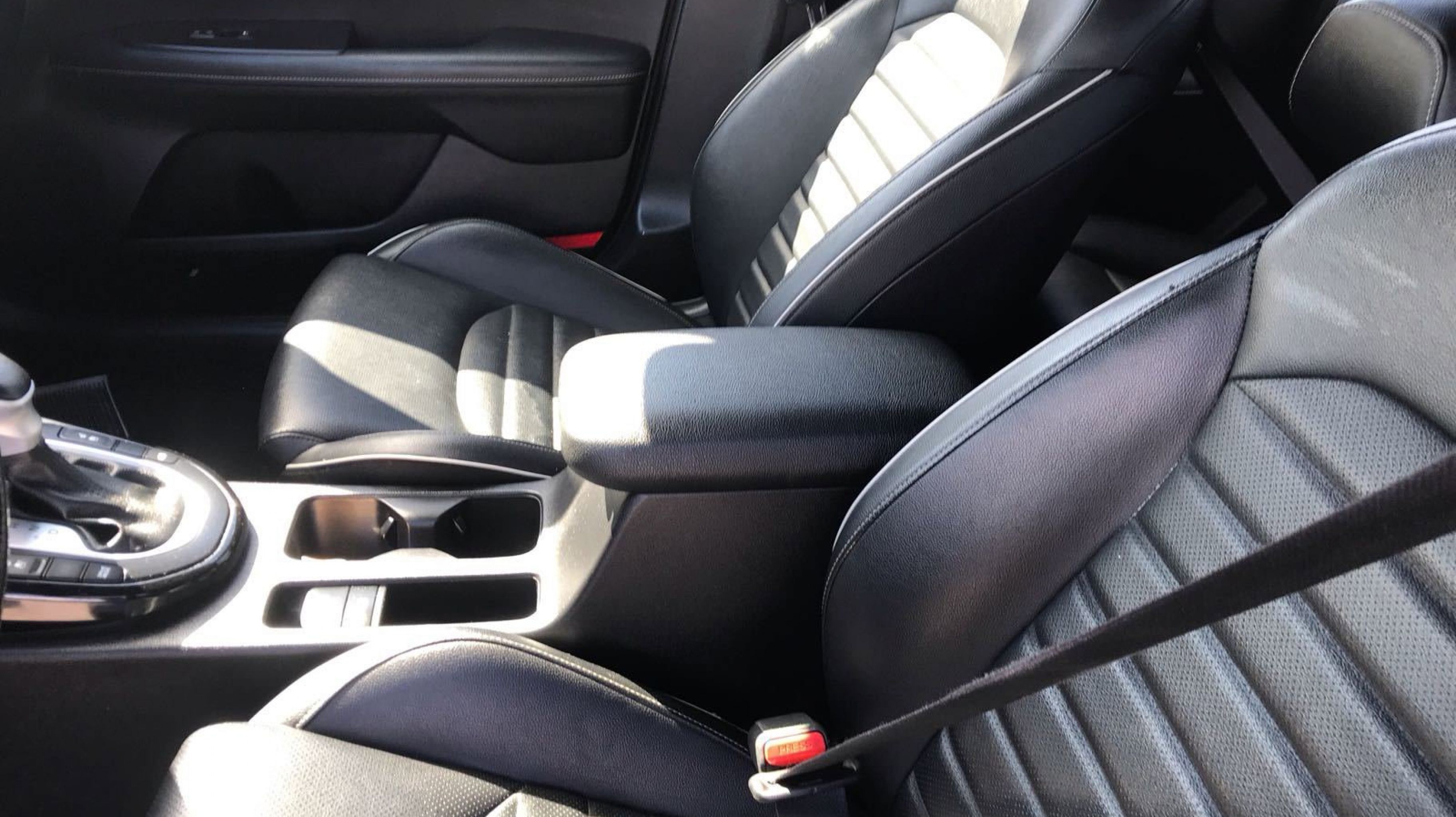 - BLACK CLOTH & LEATHERETTE SEAT TRIM -inc: white contrast stitching
