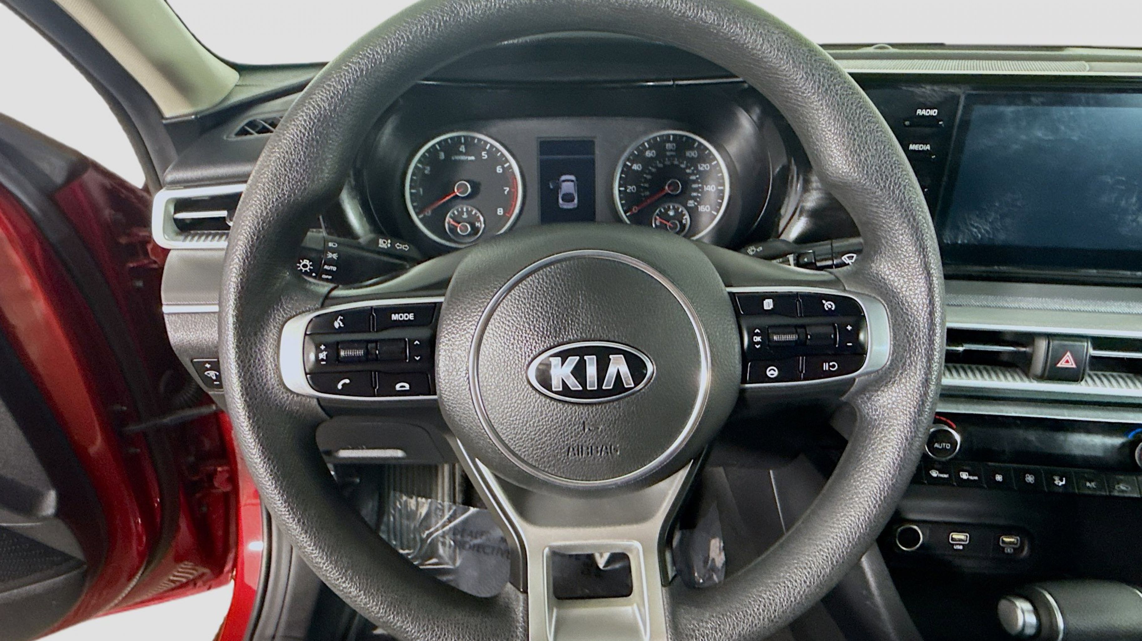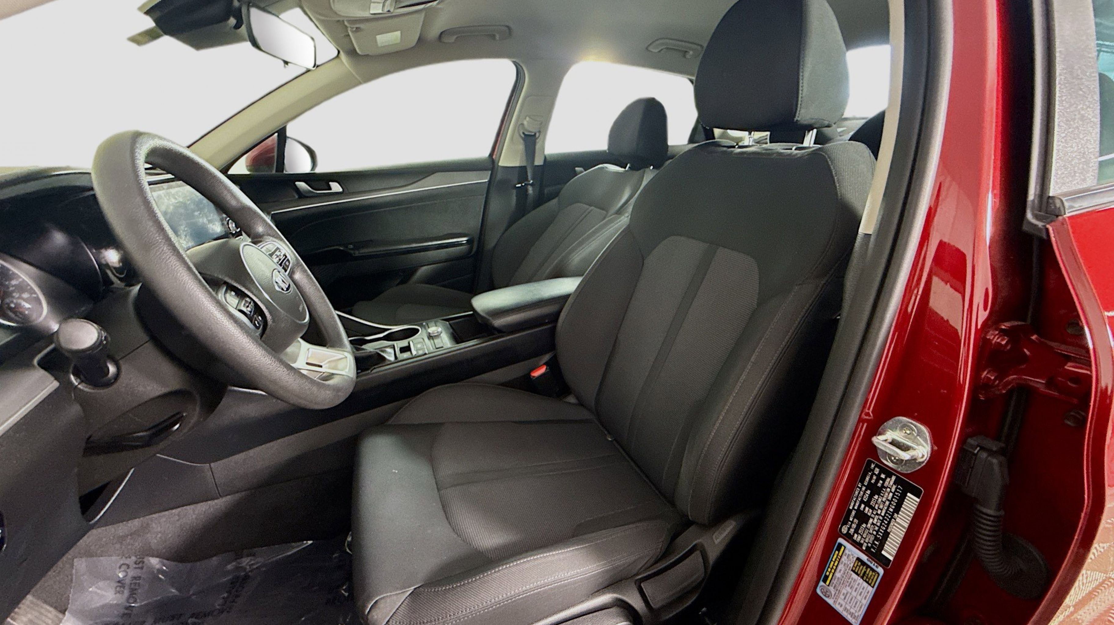 Passion Red 2021 Kia K5 LX FWD 8-Speed Automatic 1.6L I4 DGI 4-Wheel Disc Brakes, 6 Speakers, ABS brakes, Air Conditioning, Alloy wheels, AM/FM radio, Apple CarPlay & Android Auto, Auto High-beam Headlights, Automatic temperature control, Brake assist, Bumpers: body-color, Cargo Mat, Carpeted Floor Mats, Cloth Seat Trim, Delay-off headlights, Driver door bin, Driver vanity mirror, Dual front impact airbags, Dual front side impact airbags, Electronic Stability Control, Four wheel independent suspension, Front anti-roll bar, Front Bucket Seats, Front Center Armrest, Front dual zone A/C, Front reading lights, Fully automatic headlights, Heated door mirrors, Illuminated entry, Knee airbag, Low tire pressure warning, Occupant sensing airbag, Outside temperature display, Overhead airbag, Overhead console, Panic alarm, Passenger door bin, Passenger vanity mirror, Power door mirrors, Power steering, Power windows, Radio data system, Radio: AM/FM/MP3 Audio System, Rear anti-roll bar, Rear side impact airbag, Rear window defroster, Remote keyless entry, Security system, Speed control, Speed-sensing steering, Steering wheel mounted audio controls, Tachometer, Telescoping steering wheel, Tilt steering wheel, Traction control, Trip computer, Variably intermittent wipers, Wheels: 6.5J x 16 Machined Finish Alloy.