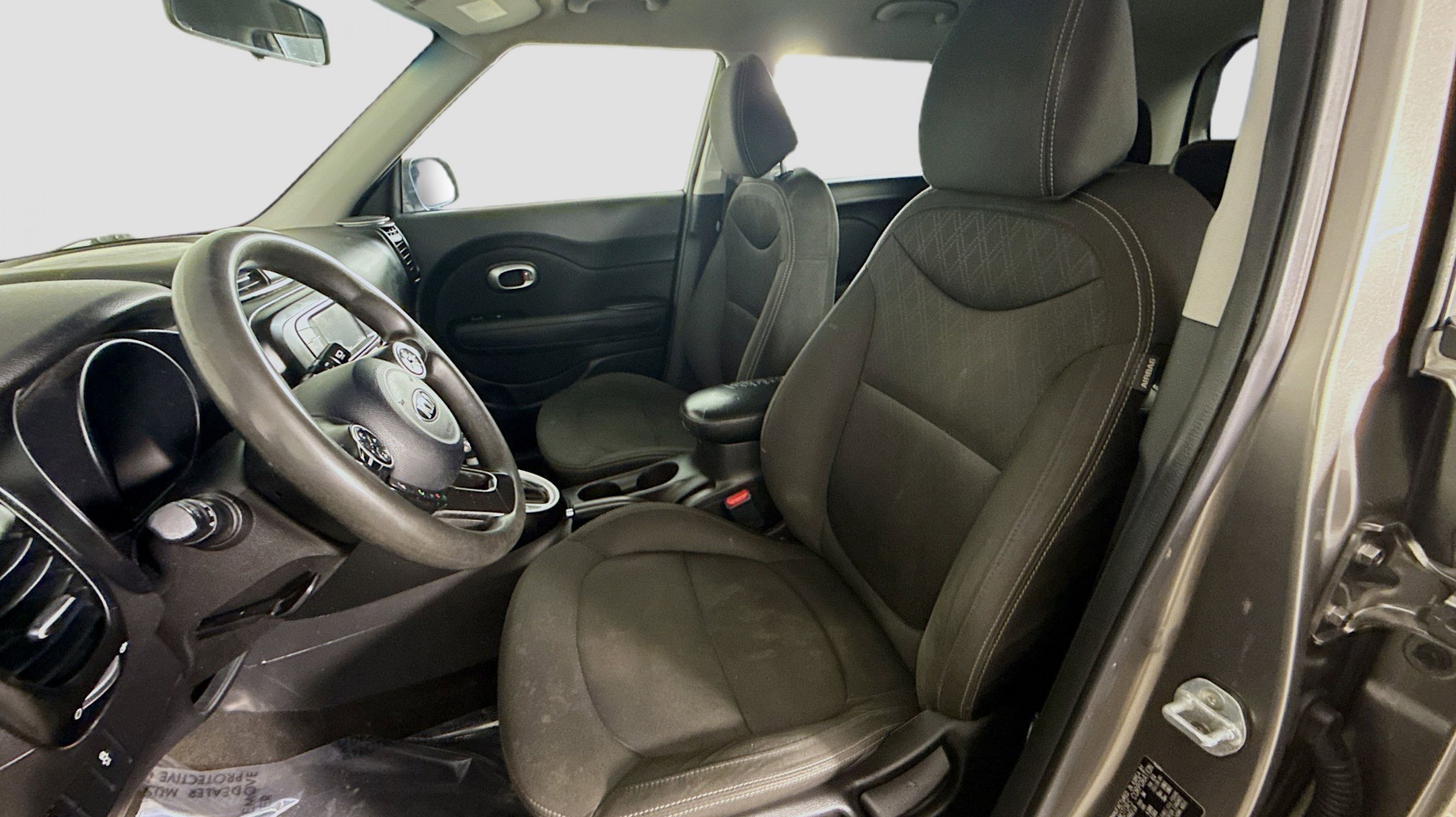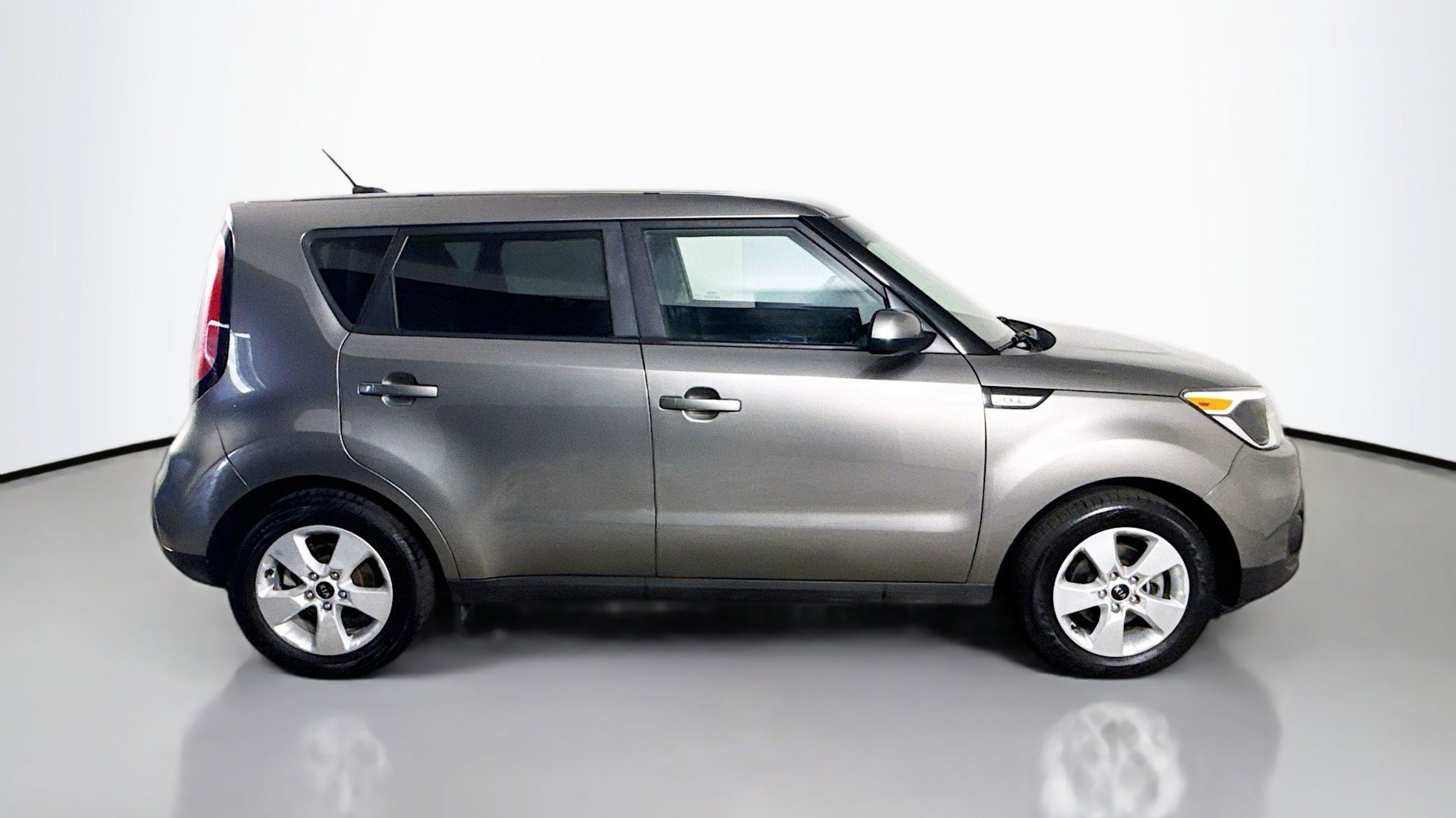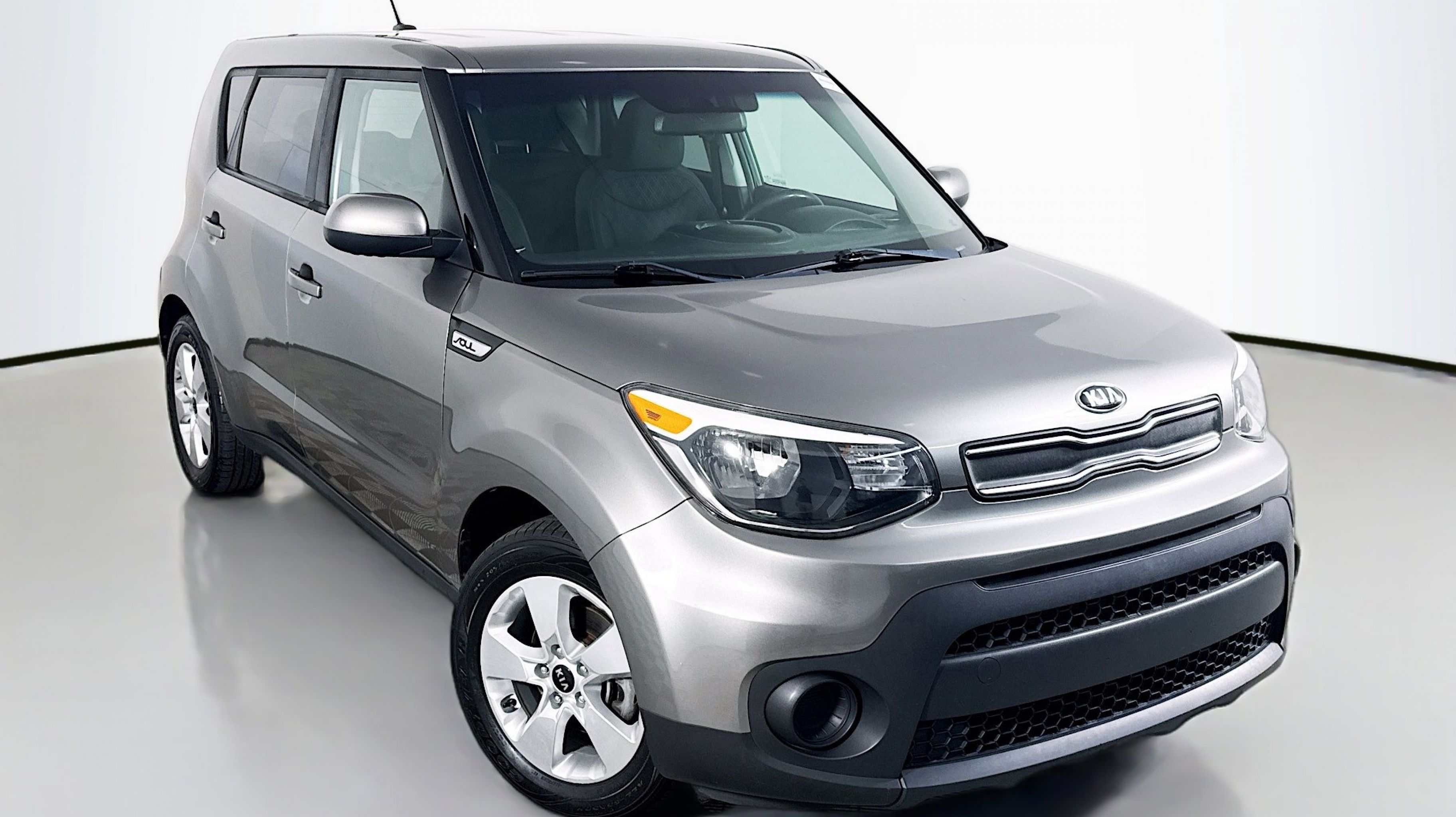 Titanium Gray 2019 Kia Soul FWD 6-Speed Automatic with Sportmatic I4 16 Alloy Wheels, 4-Wheel Disc Brakes, 6 Speakers, 6-Way Adjustable Driver's Seat, ABS brakes, Air Conditioning, Alloy wheels, AM/FM radio: SiriusXM, Brake assist, Bumpers: body-color, Cargo Tray, Carpeted Floor Mat, Cloth Seat Trim, Driver door bin, Driver vanity mirror, Dual front impact airbags, Dual front side impact airbags, Electronic Stability Control, Exterior Parking Camera Rear, Front anti-roll bar, Front Bucket Seats, Front Center Armrest, Front reading lights, Front wheel independent suspension, Fully automatic headlights, Illuminated entry, Low tire pressure warning, Occupant sensing airbag, Outside temperature display, Overhead airbag, Overhead console, Panic alarm, Passenger door bin, Passenger vanity mirror, Power door mirrors, Power steering, Power windows, Radio: AM/FM/MP3 Audio System, Rear window defroster, Rear window wiper, Remote keyless entry, Speed control, Speed-sensing steering, Split folding rear seat, Steering wheel mounted audio controls, Tachometer, Telescoping steering wheel, Tilt steering wheel, Traction control, Trip computer, Variably intermittent wipers.