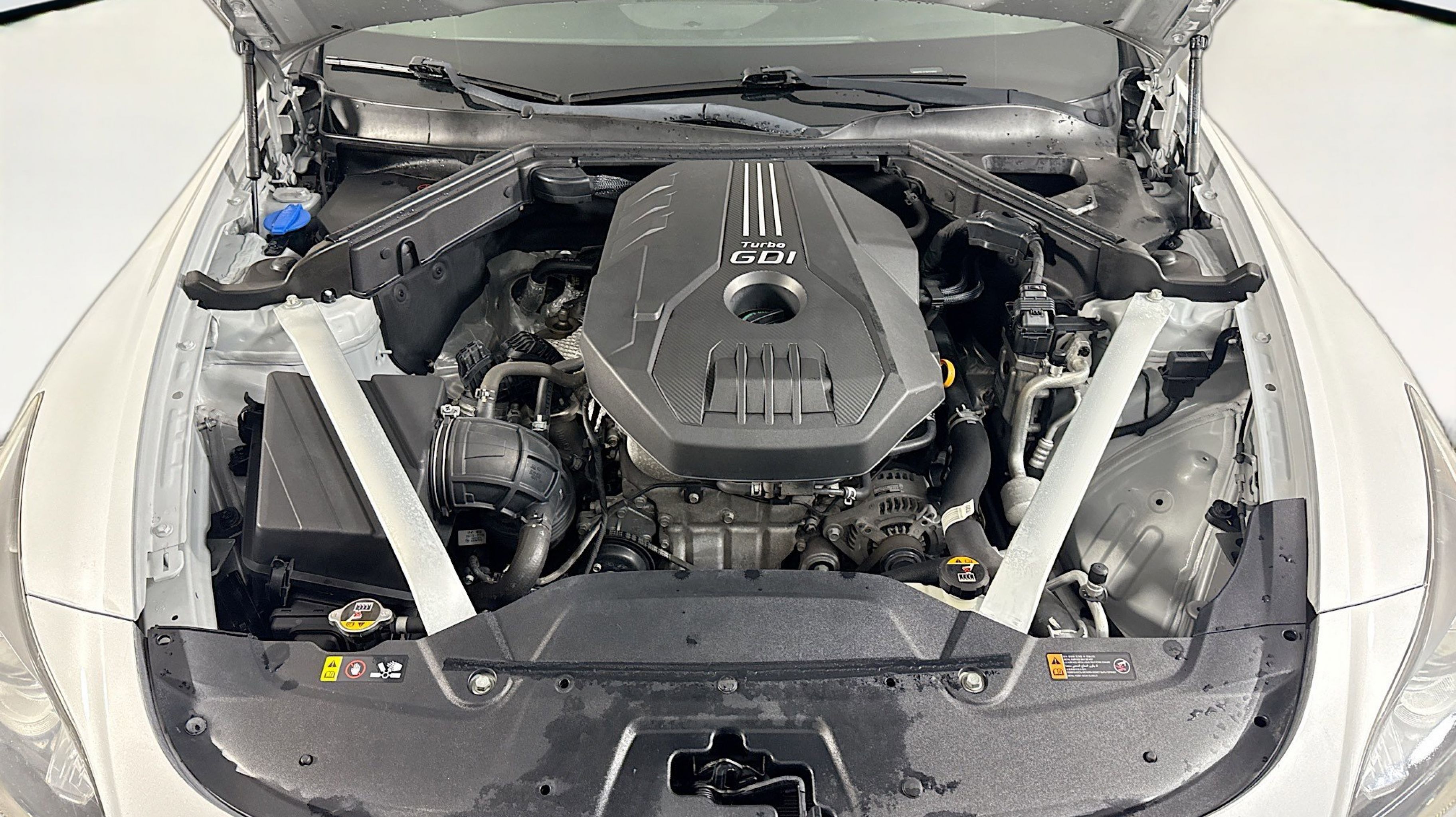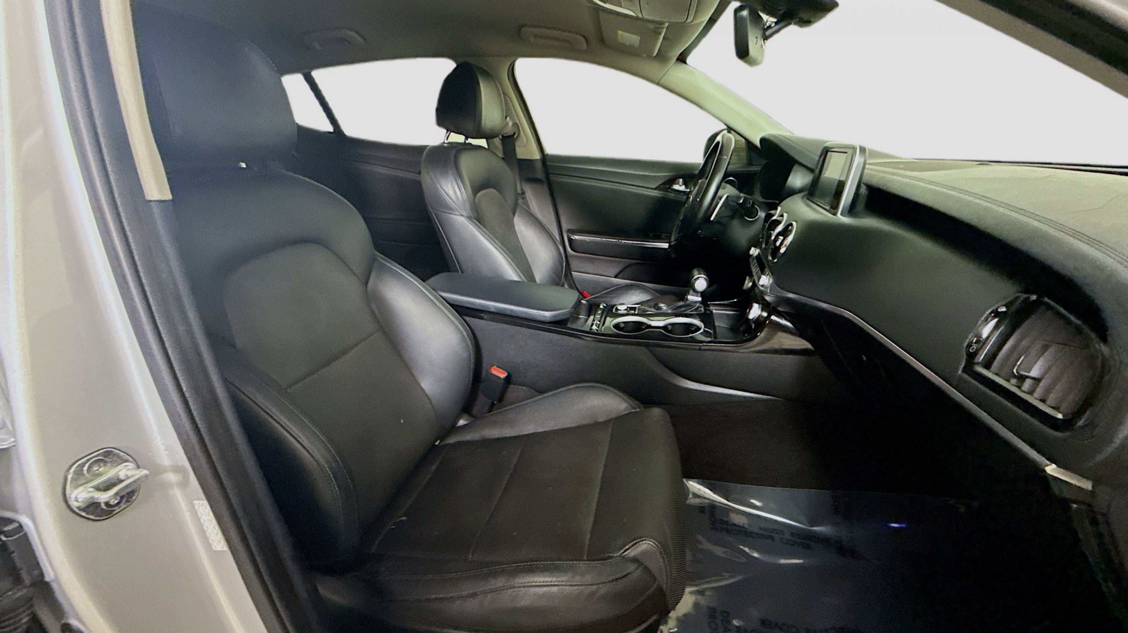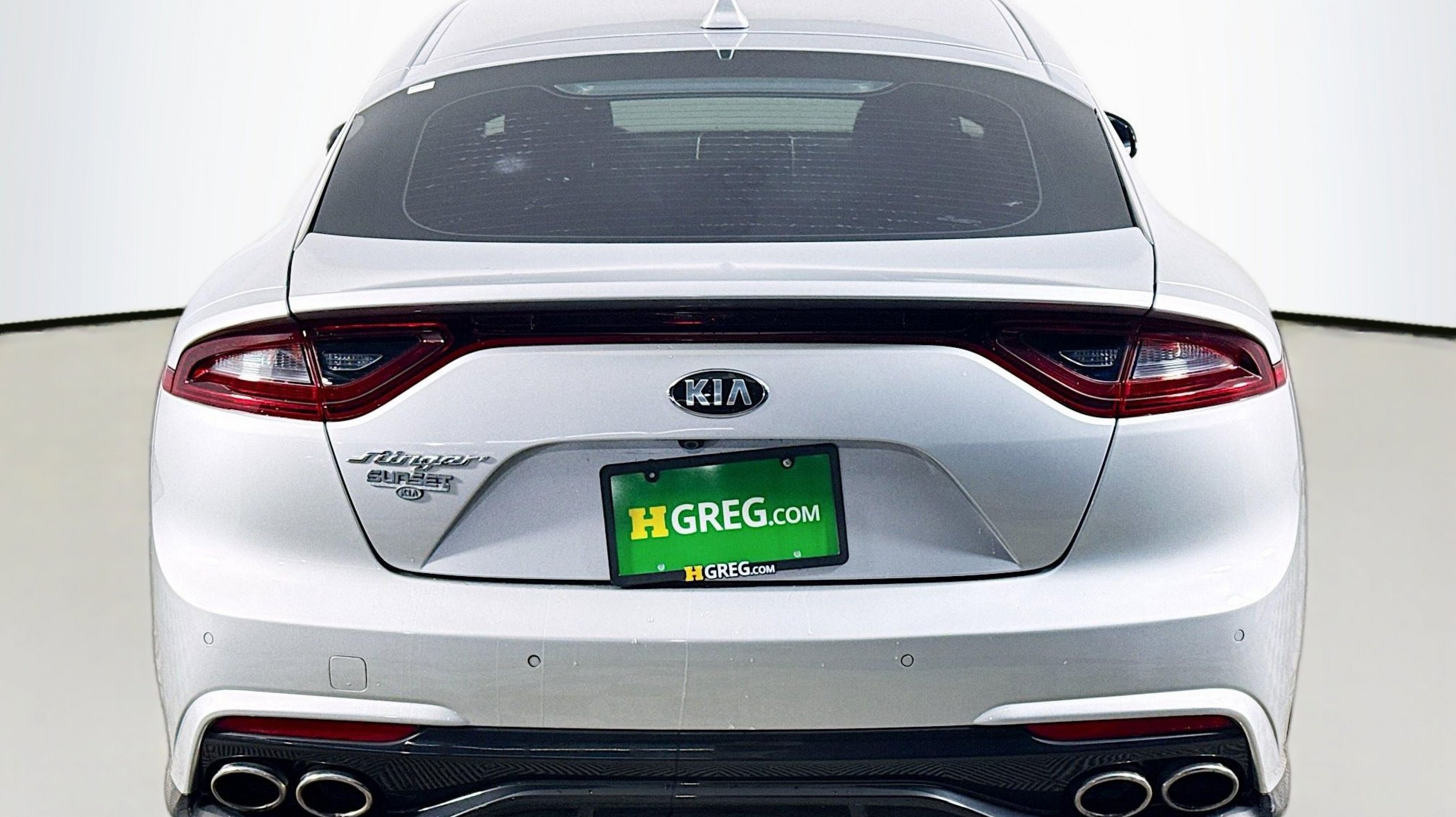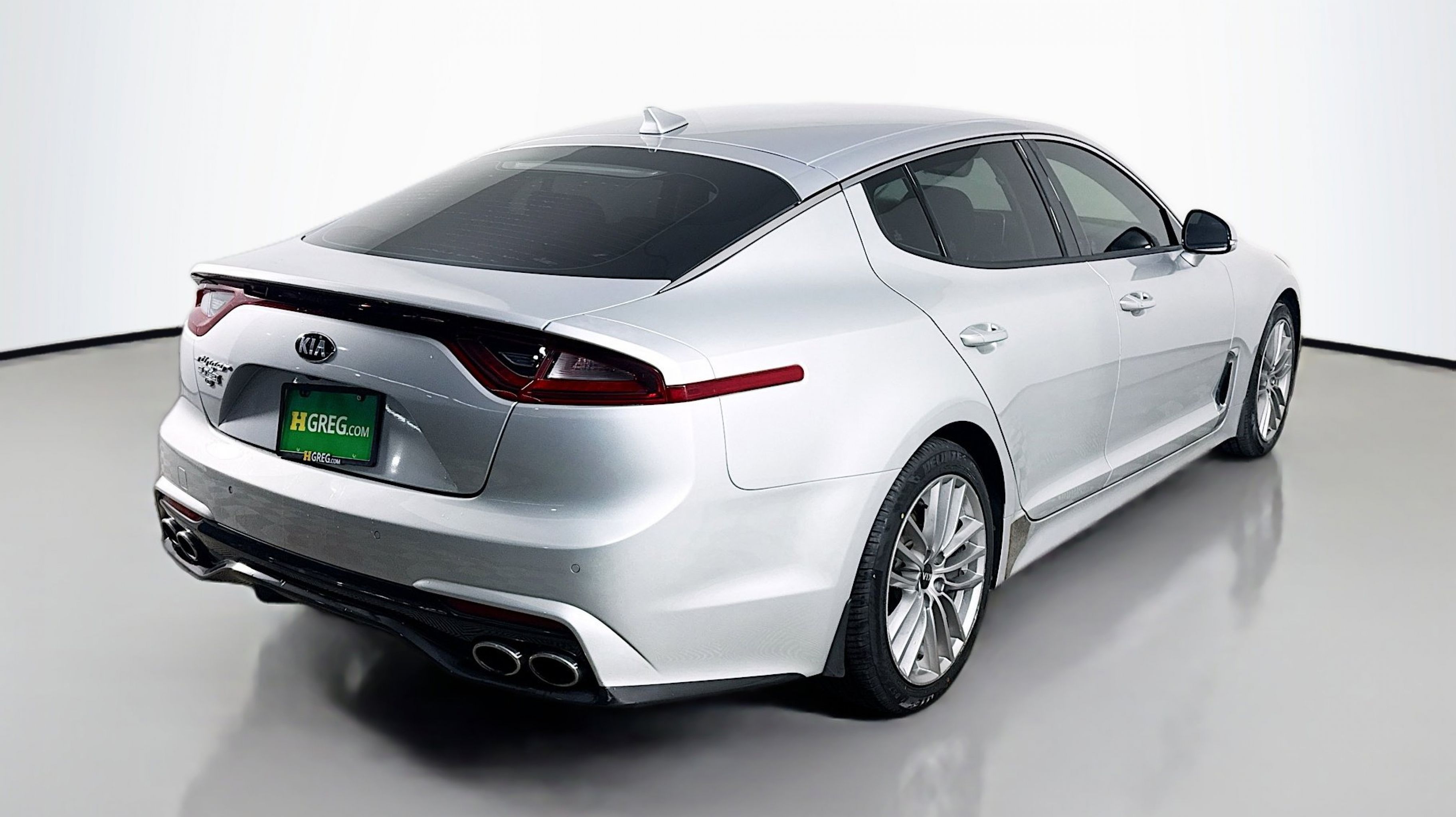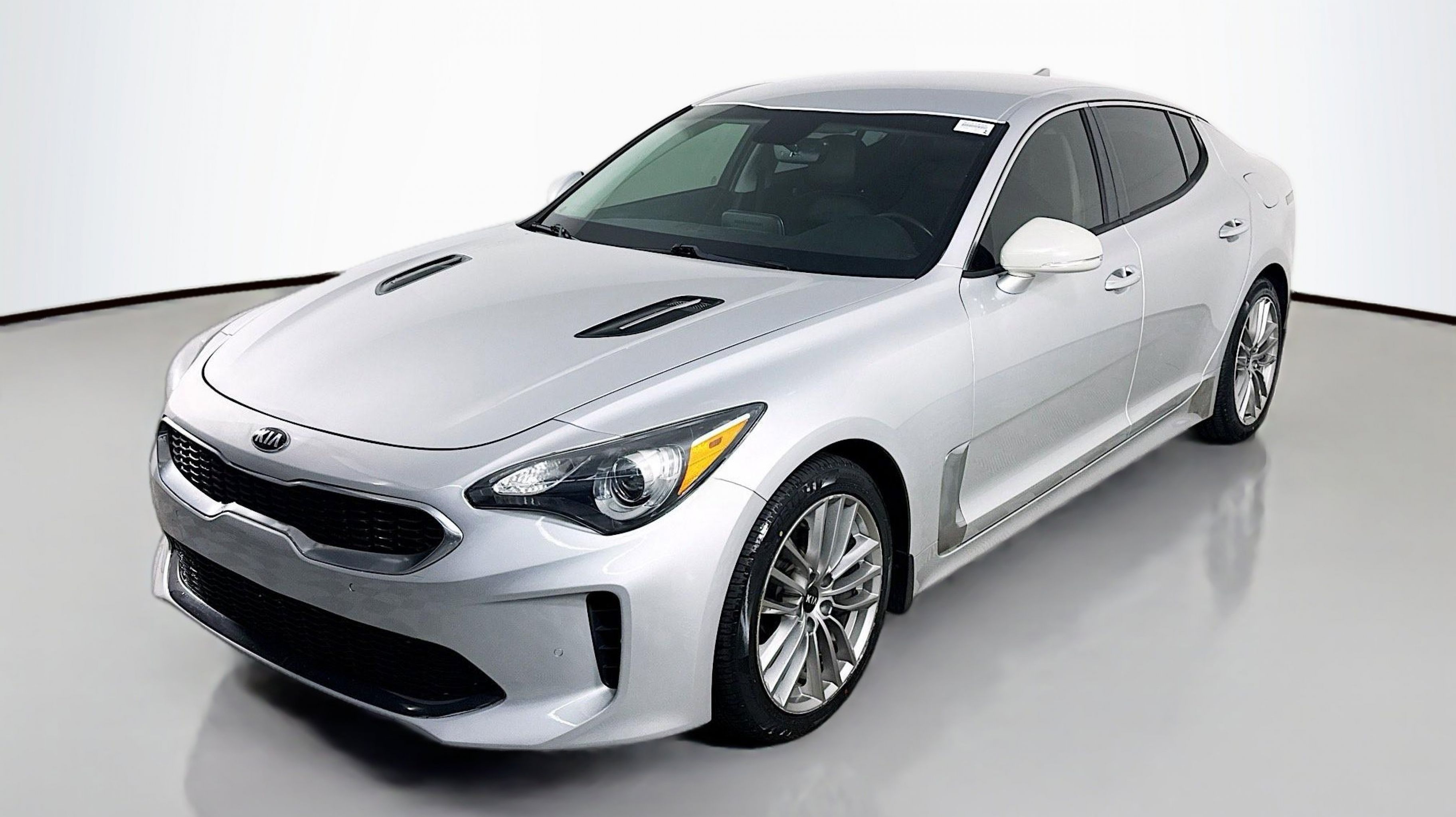 Silky Silver 2018 Kia Stinger RWD 8-Speed Automatic 2.0L I4 Turbocharged DOHC 16V LEV3-ULEV125 255hp 4-Wheel Disc Brakes, 6 Speakers, ABS brakes, Air Conditioning, Alloy wheels, AM/FM radio: SiriusXM, Anti-whiplash front head restraints, Apple CarPlay & Android Auto, Auto-dimming Rear-View mirror, Automatic temperature control, Brake assist, Bumpers: body-color, Cargo Net, Cargo Tray, Delay-off headlights, Driver door bin, Driver vanity mirror, Dual front impact airbags, Dual front side impact airbags, EC Mirror w/Compass & HomeLink, Electronic Stability Control, Emergency communication system: UVO eServices, Exterior Parking Camera Rear, Four wheel independent suspension, Front anti-roll bar, Front Bucket Seats, Front Center Armrest, Front dual zone A/C, Front reading lights, Fully automatic headlights, Heated door mirrors, Heated Front Bucket Seats, Heated front seats, Illuminated entry, Knee airbag, Leather Seat Trim, Low tire pressure warning, Occupant sensing airbag, Outside temperature display, Overhead airbag, Overhead console, Panic alarm, Passenger door bin, Passenger vanity mirror, Power door mirrors, Power driver seat, Power passenger seat, Power steering, Power windows, Radio: AM/FM/MP3/HD/SiriusXM Audio System, Rear air conditioning, Rear anti-roll bar, Rear reading lights, Rear seat center armrest, Rear window defroster, Remote keyless entry, Security system, Speed control, Speed-Sensitive Wipers, Split folding rear seat, Spoiler, Steering wheel mounted audio controls, Tachometer, Telescoping steering wheel, Tilt steering wheel, Traction control, Trip computer, Turn signal indicator mirrors, Variably intermittent wipers, Wheels: 18 x 8J Painted Finish Alloy.