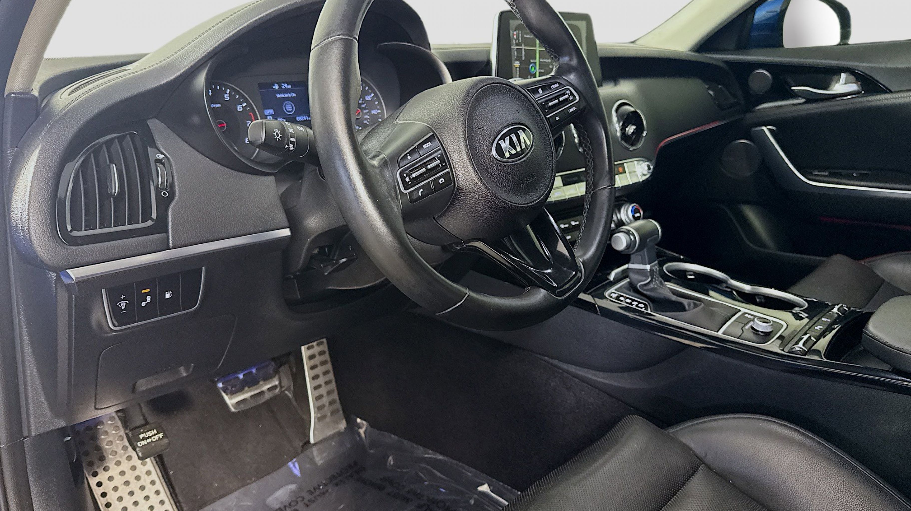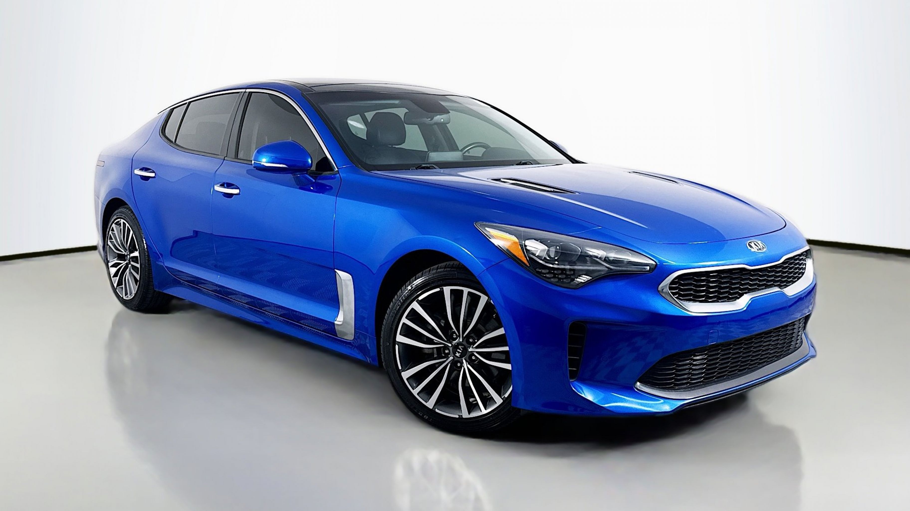 Micro Blue 2019 Kia Stinger RWD 8-Speed Automatic 2.0L I4 Turbocharged DOHC 16V LEV3-ULEV125 255hp LED Headlights & Rear Turn Signals, Power Sunroof, Radio: AM/FM/MP3/HD/SiriusXM harmon/kardon Audio, Sun & Sound Package, 4-Wheel Disc Brakes, 6 Speakers, ABS brakes, Air Conditioning, Alloy wheels, AM/FM radio: SiriusXM, Anti-whiplash front head restraints, Apple CarPlay & Android Auto, Auto-dimming Rear-View mirror, Automatic temperature control, Brake assist, Bumper Applique, Bumpers: body-color, Cargo Mat, Cargo Net, Delay-off headlights, Driver door bin, Driver vanity mirror, Dual front impact airbags, Dual front side impact airbags, Electronic Stability Control, Emergency communication system: UVO eServices, Exterior Parking Camera Rear, Four wheel independent suspension, Front anti-roll bar, Front Bucket Seats, Front Center Armrest, Front dual zone A/C, Front reading lights, Fully automatic headlights, Heated door mirrors, Heated Front Bucket Seats, Heated front seats, Illuminated entry, Knee airbag, Leather Seat Trim, Low tire pressure warning, Occupant sensing airbag, Outside temperature display, Overhead airbag, Overhead console, Panic alarm, Passenger door bin, Passenger vanity mirror, Power door mirrors, Power driver seat, Power passenger seat, Power steering, Power windows, Radio: AM/FM/MP3/HD/SiriusXM Audio System, Rear air conditioning, Rear anti-roll bar, Rear reading lights, Rear seat center armrest, Rear window defroster, Remote keyless entry, Security system, Speed control, Speed-Sensitive Wipers, Split folding rear seat, Spoiler, Steering wheel mounted audio controls, Tachometer, Telescoping steering wheel, Tilt steering wheel, Traction control, Trip computer, Turn signal indicator mirrors, Variably intermittent wipers, Wheels: 18 x 8J Machined Finish Alloy, LED Headlights & Rear Turn Signals, Power Sunroof, Radio: AM/FM/MP3/HD/SiriusXM harmon/kardon Audio, Sun & Sound Package.