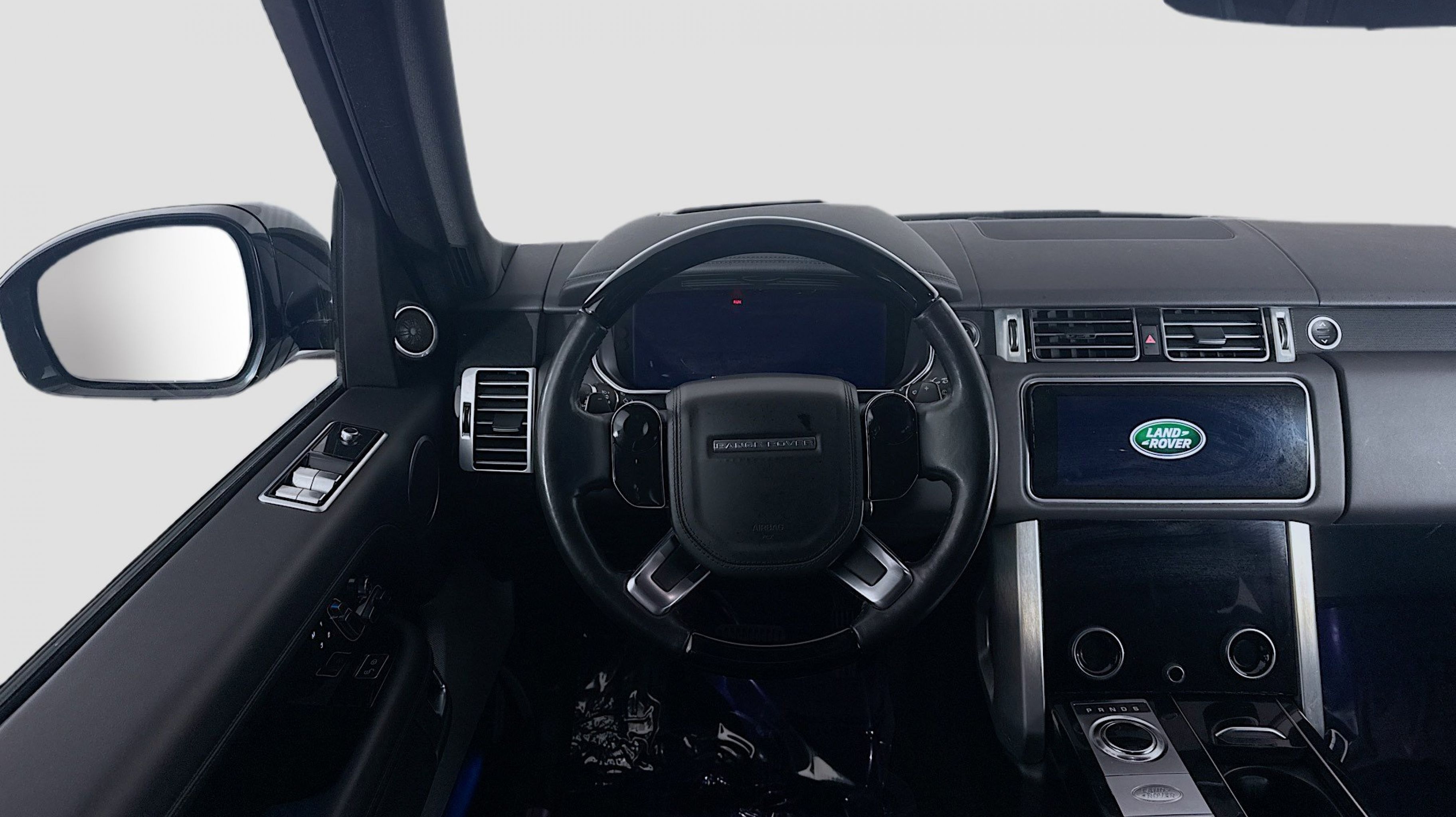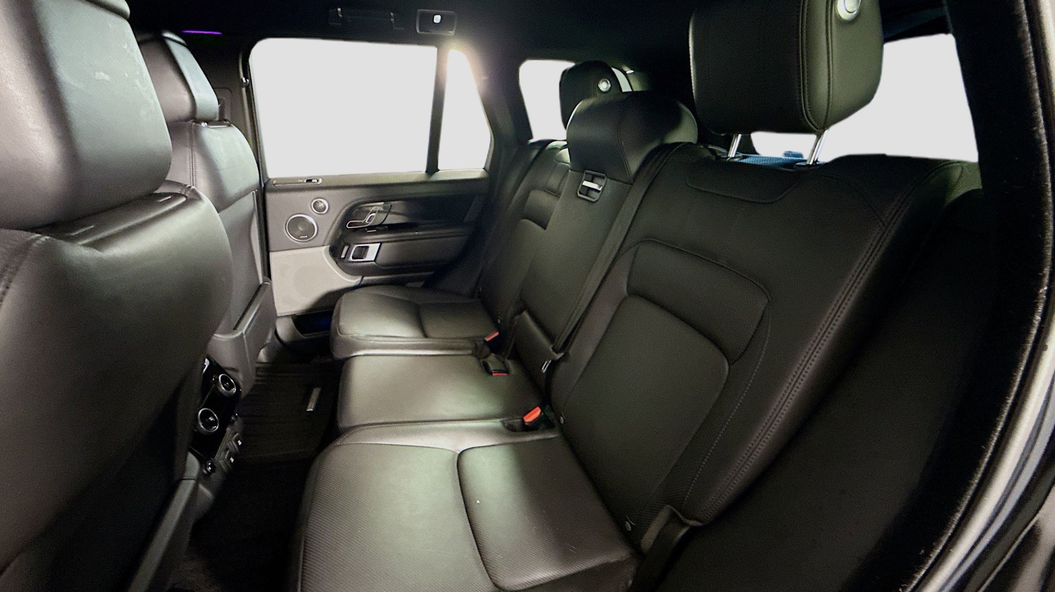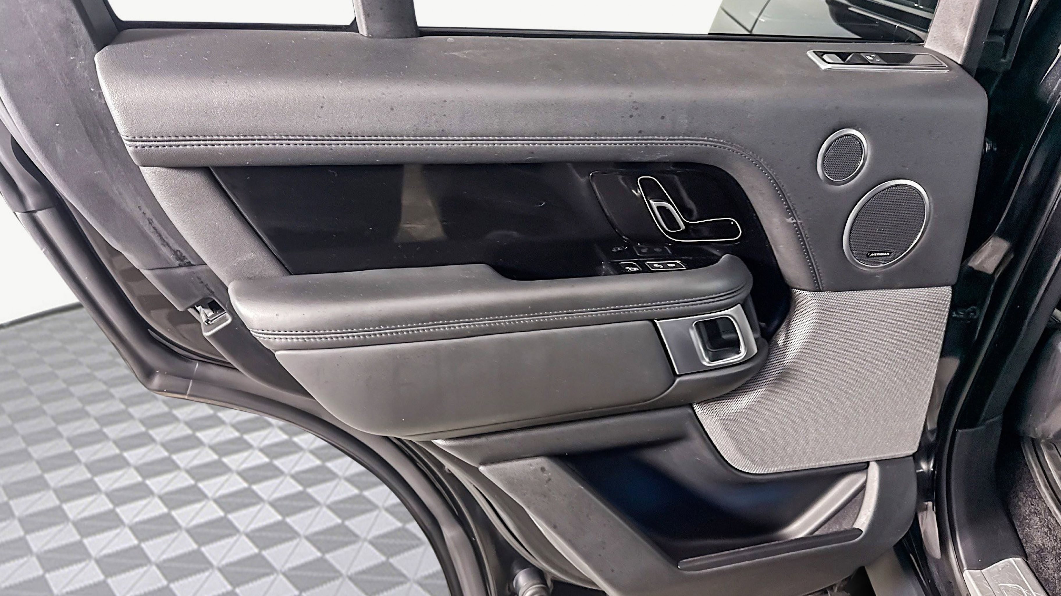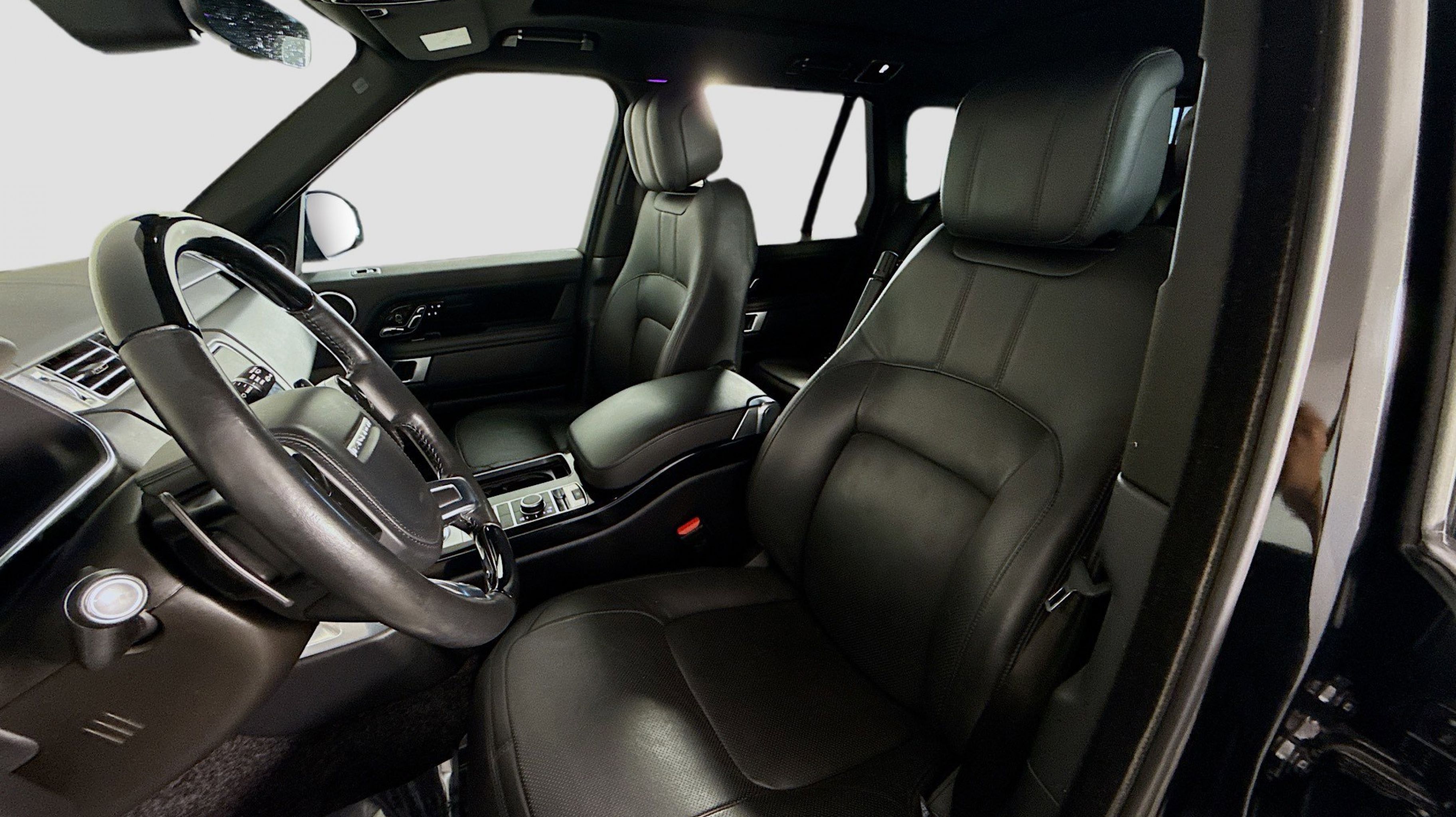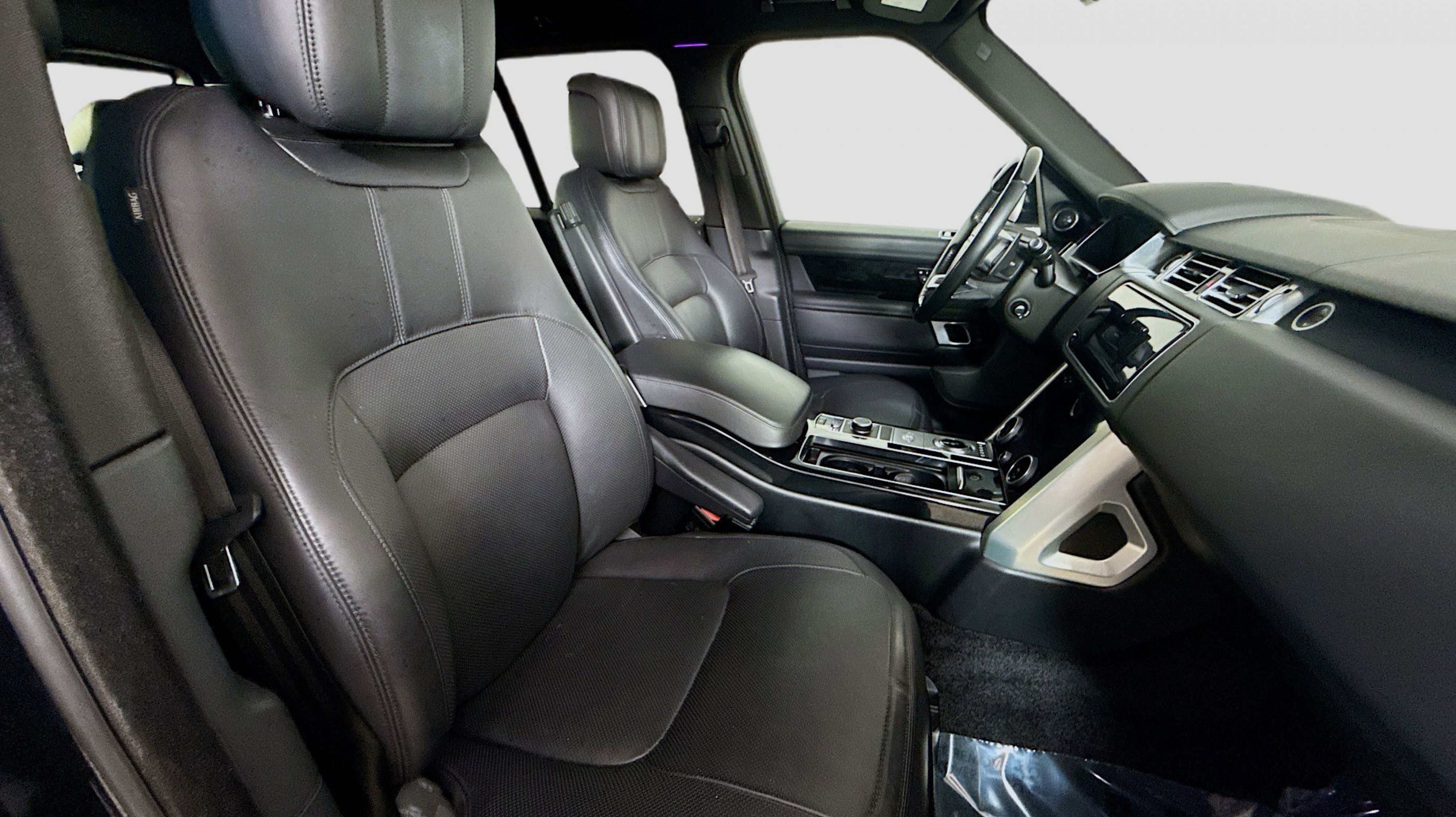 Santorini Black Metallic 2019 Land Rover Range Rover 3.0L V6 Supercharged HSE 4WD ZF 8-Speed Automatic 3.0L V6 Supercharged Ebony/Ebony/Ebony/Ebony w/Grained Leather Seat Trim, 13 Speakers, 20-Way Power Heated Front Bucket Seats, 20 Wheels, 3.73 Axle Ratio, 360 Parking Aid, 4-Wheel Disc Brakes, ABS brakes, Adaptive suspension, Air Conditioning, Alloy wheels, AM/FM radio, Anti-whiplash front head restraints, Auto tilt-away steering wheel, Auto-dimming door mirrors, Auto-dimming Rear-View mirror, Auto-leveling suspension, Automatic temperature control, Brake assist, Bumpers: body-color, Compass, Delay-off headlights, Door auto-latch, Driver door bin, Driver vanity mirror, Driver's Seat Mounted Armrest, Dual front impact airbags, Dual front side impact airbags, Electronic Stability Control, Emergency communication system: InControl Protect, Exterior Parking Camera Rear, Four wheel independent suspension, Front anti-roll bar, Front Bucket Seats, Front Center Armrest w/Storage, Front dual zone A/C, Front reading lights, Fully automatic headlights, Garage door transmitter: HomeLink, Genuine wood console insert, Genuine wood dashboard insert, Genuine wood door panel insert, Head restraints memory, Headlight cleaning, Heated door mirrors, Heated front seats, Heated rear seats, Heated steering wheel, Illuminated entry, Low tire pressure warning, Memory seat, Navigation system: Touch Pro Navigation System, Occupant sensing airbag, Outside temperature display, Overhead airbag, Overhead console, Panic alarm, PANORAMA SUNROOF, Passenger door bin, Passenger seat mounted armrest, Passenger vanity mirror, Perforated Windsor Leather Seat Trim, Power adjustable front head restraints, Power door mirrors, Power driver seat, Power passenger seat, Power steering, Power windows, Premium audio system: Meridian, Radio data system, Radio: 380W Meridian Sound System w/Navigation Pro, Rain sensing wipers, Rear air conditioning, Rear anti-roll bar, Rear fog lights, Rear reading lights, Rear seat center armrest, Rear window defroster, Rear window wiper, Remote keyless entry, Security system, Speed control, Speed-sensing steering, Speed-Sensitive Wipers, Split folding rear seat, Steering wheel memory, Steering wheel mounted A/C controls, Steering wheel mounted audio controls, Tachometer, Telescoping steering wheel, Tilt steering wheel, Traction control, Trip computer, Turn signal indicator mirrors, Variably intermittent wipers, Weather band radio, Wheels: 20 12 Spoke, Ebony/Ebony/Ebony/Ebony w/Grained Leather Seat Trim.