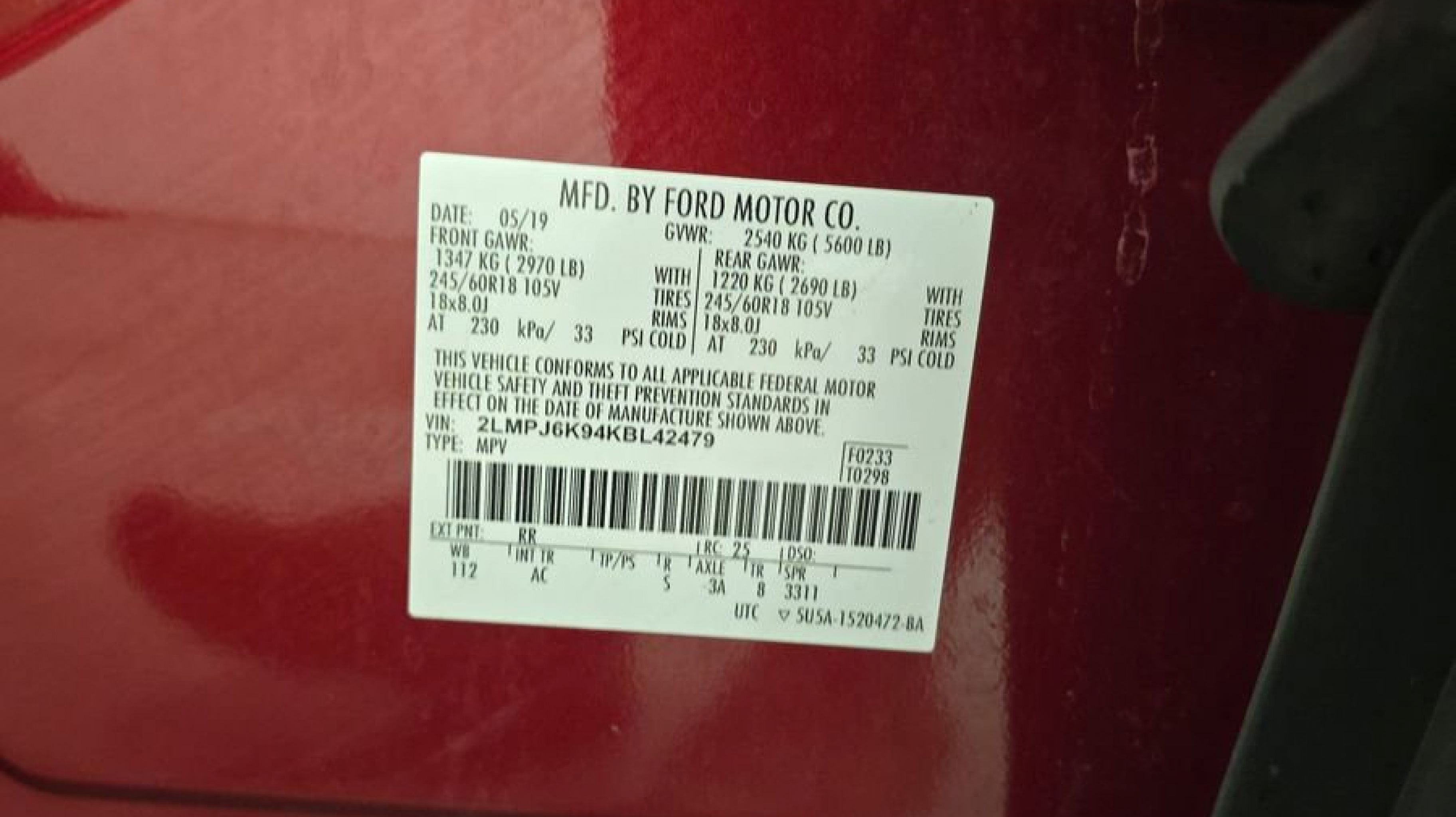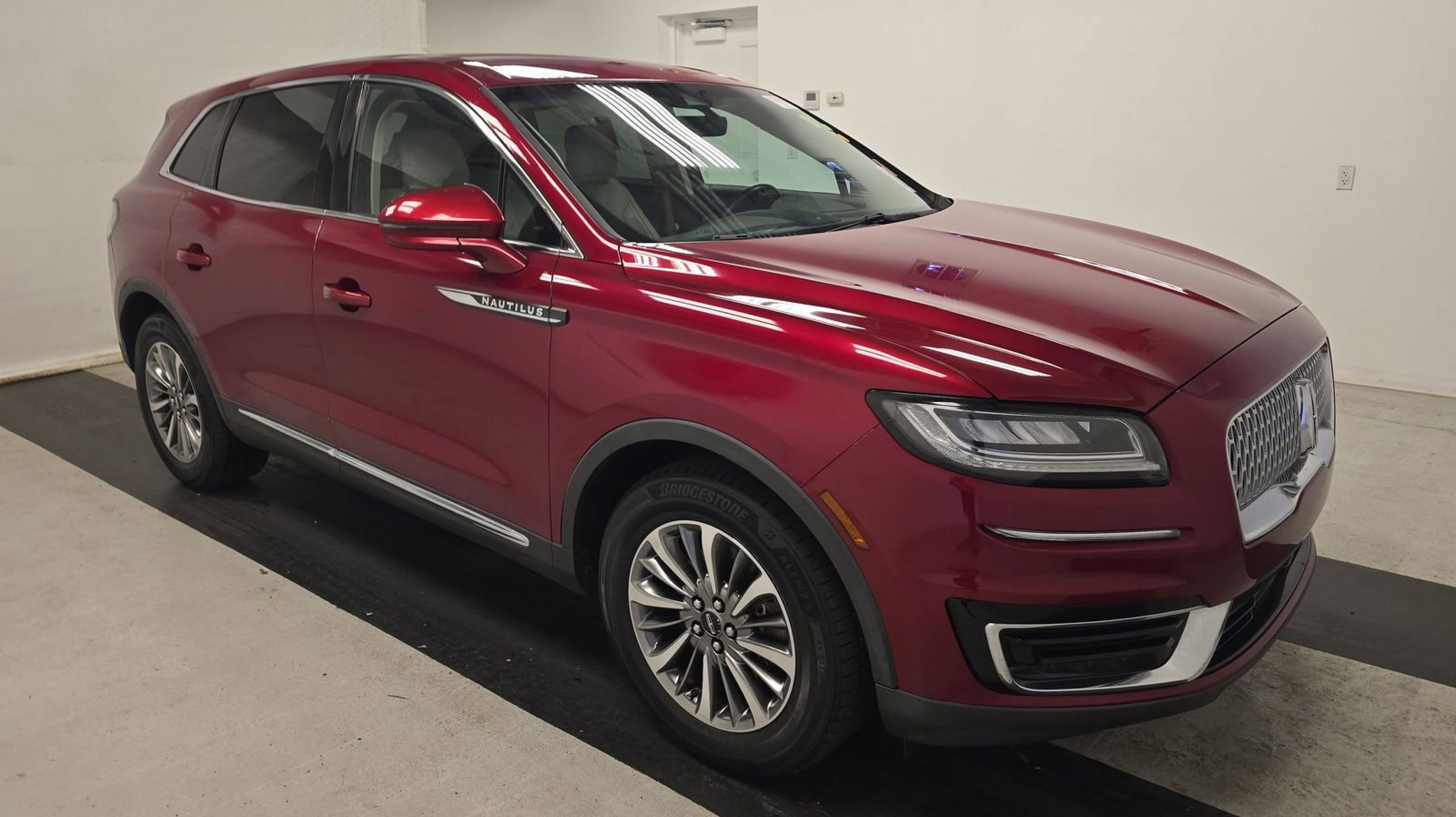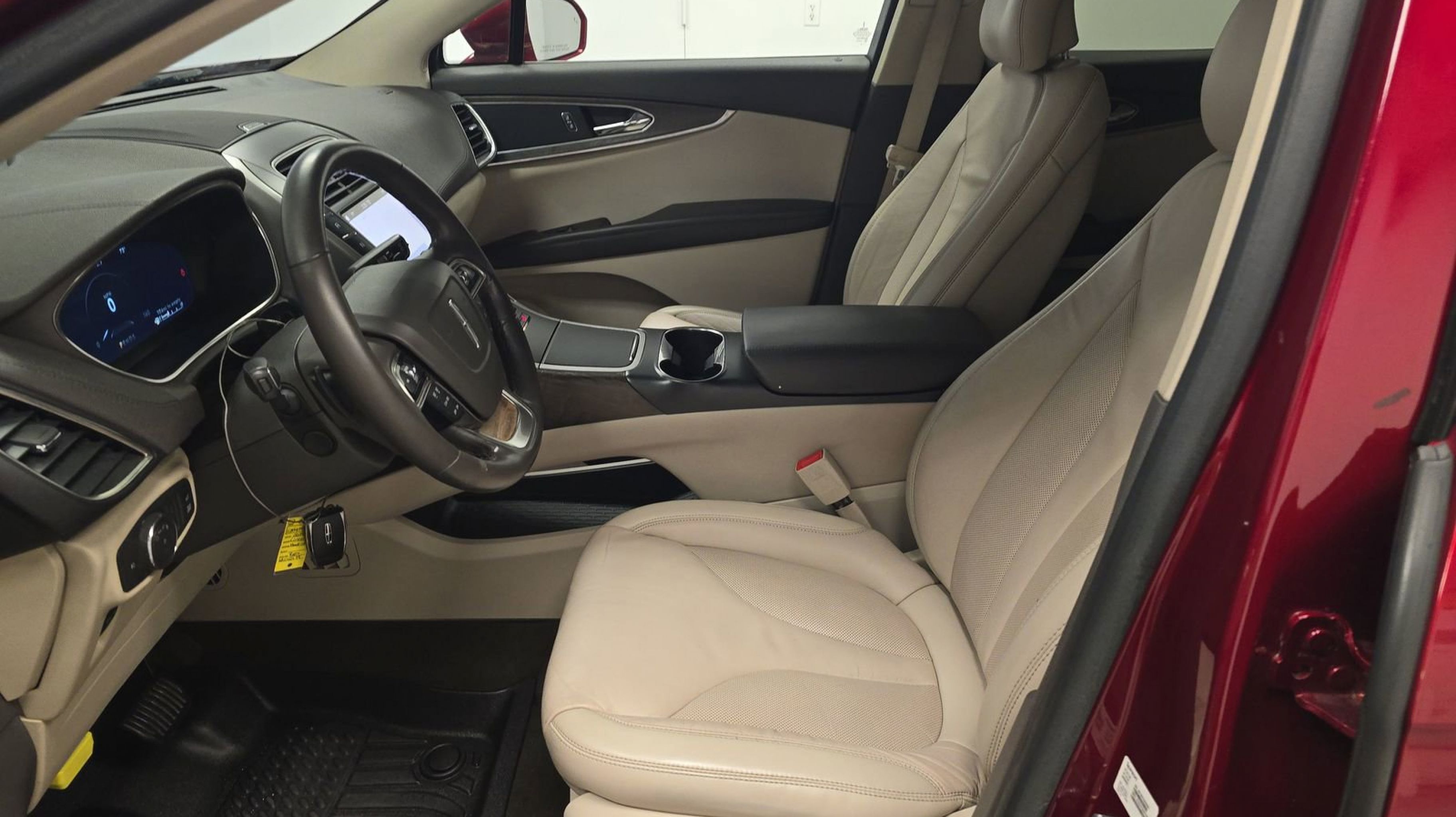 Ruby Red Metallic Tinted Clearcoat 2019 Lincoln Nautilus Select FWD 8-Speed Automatic 2.0L Turbocharged Equipment Group 200A, 11 Speakers, 3.80 Axle Ratio, 4-Wheel Disc Brakes, ABS brakes, Air Conditioning, Alloy wheels, AM/FM radio: SiriusXM, AppLink/Apple CarPlay and Android Auto, Auto High-beam Headlights, Auto tilt-away steering wheel, Auto-dimming door mirrors, Auto-dimming Rear-View mirror, Automatic temperature control, Brake assist, Bumpers: body-color, CD player, Compass, Delay-off headlights, Driver door bin, Driver vanity mirror, Dual front impact airbags, Dual front side impact airbags, Electronic Stability Control, Emergency communication system: 911 Assist, Espresso Ash Swirl Interior Trim, Exterior Parking Camera Rear, Four wheel independent suspension, Front anti-roll bar, Front Bucket Seats, Front Center Armrest w/Storage, Front dual zone A/C, Front fog lights, Front reading lights, Fully automatic headlights, Garage door transmitter: HomeLink, Genuine wood console insert, Genuine wood door panel insert, Heated door mirrors, Heated front seats, Illuminated entry, Knee airbag, Leather steering wheel, Low tire pressure warning, Memory seat, Navigation System, Occupant sensing airbag, Outside temperature display, Overhead airbag, Overhead console, Panic alarm, Passenger door bin, Passenger vanity mirror, Power door mirrors, Power driver seat, Power Liftgate, Power passenger seat, Power steering, Power windows, Premium Leather-Trimmed Heated Bucket Seats, Radio data system, Radio: Single-CD w/SiriusXM Radio & Navigation, Rear anti-roll bar, Rear reading lights, Rear seat center armrest, Rear window defroster, Rear window wiper, Remote keyless entry, Security system, Speed control, Speed-sensing steering, Speed-Sensitive Wipers, Split folding rear seat, Spoiler, Steering wheel memory, Steering wheel mounted A/C controls, Steering wheel mounted audio controls, SYNC 3 Communications & Entertainment System, Tachometer, Telescoping steering wheel, Tilt steering wheel, Traction control, Trip computer, Turn signal indicator mirrors, Variably intermittent wipers, Voice-Activated Touchscreen Navigation System, Wheels: 18 Prem Painted Ultra Bright Mach-Alum, Equipment Group 200A.