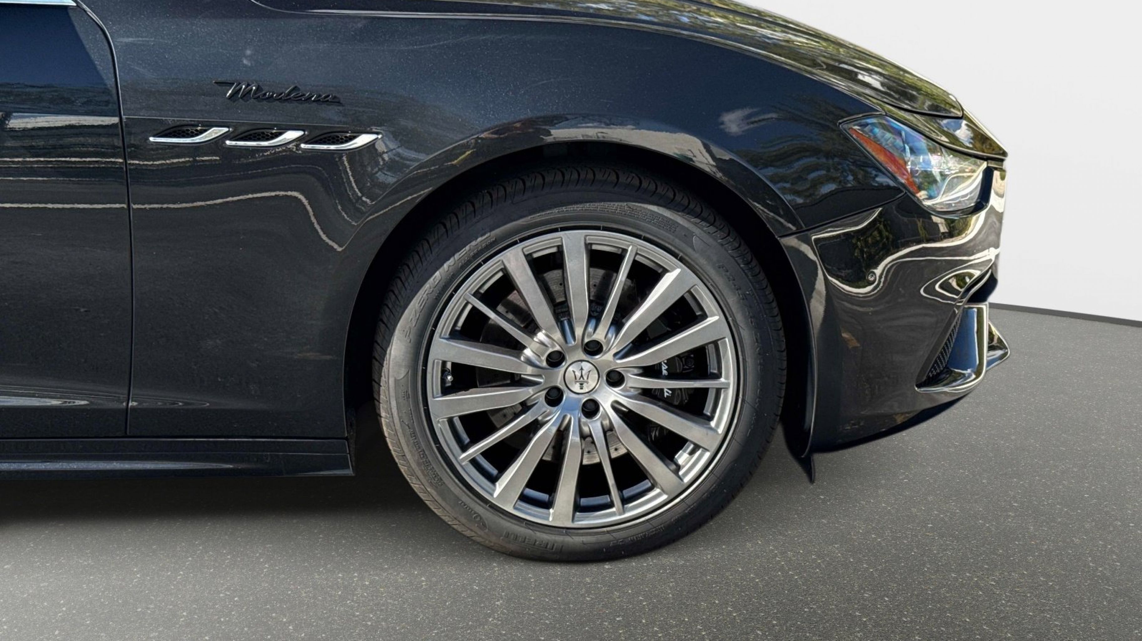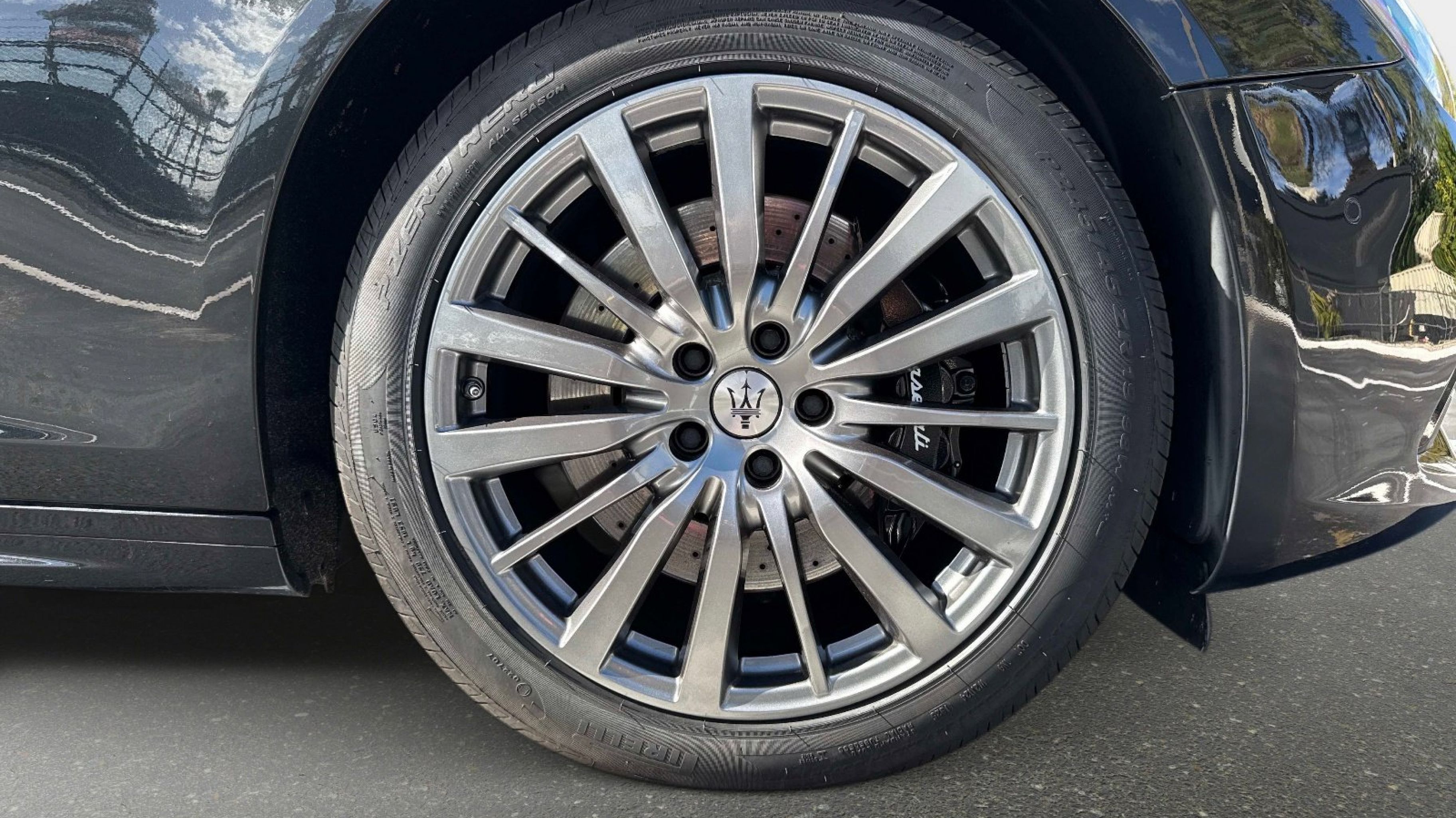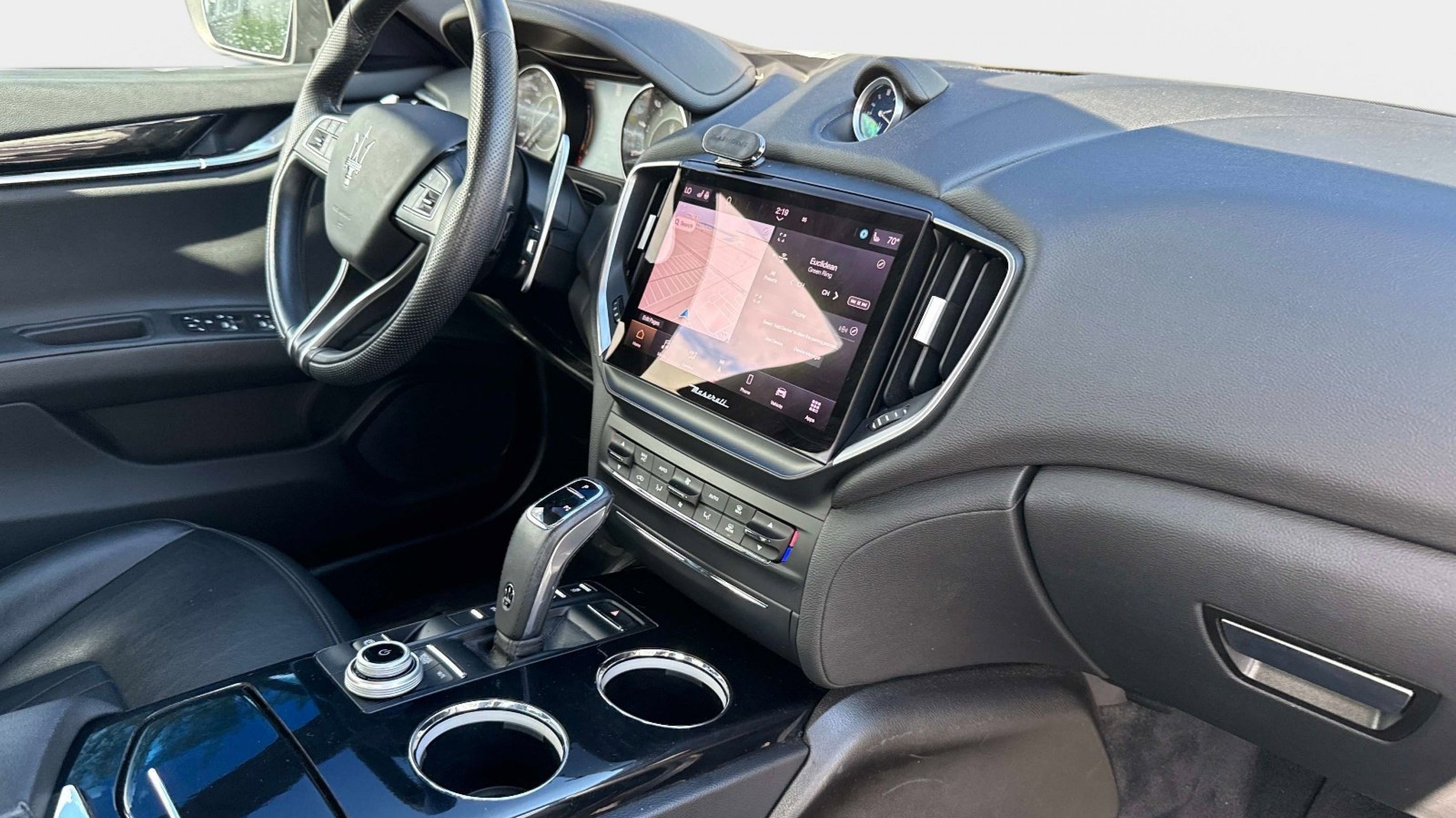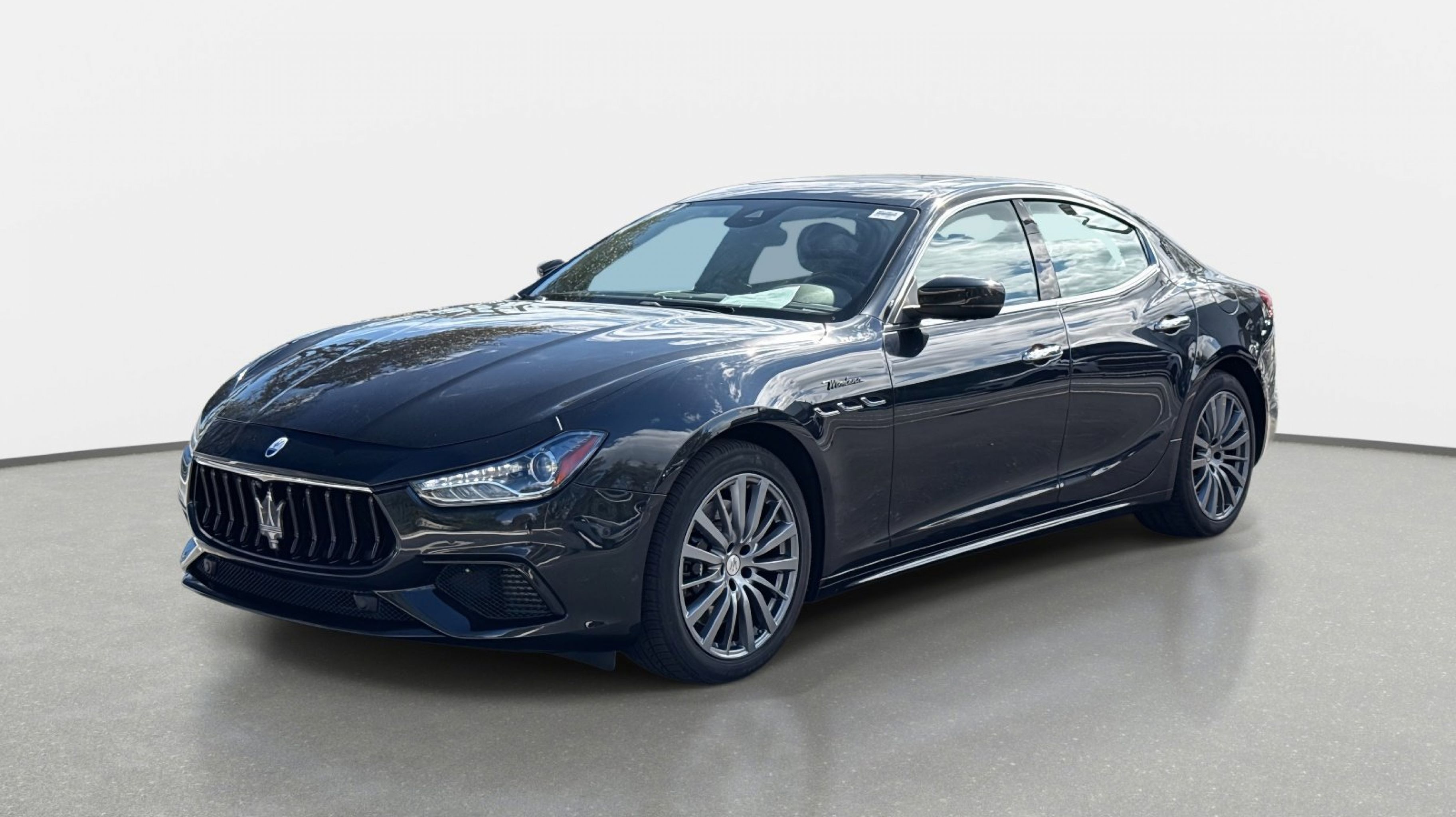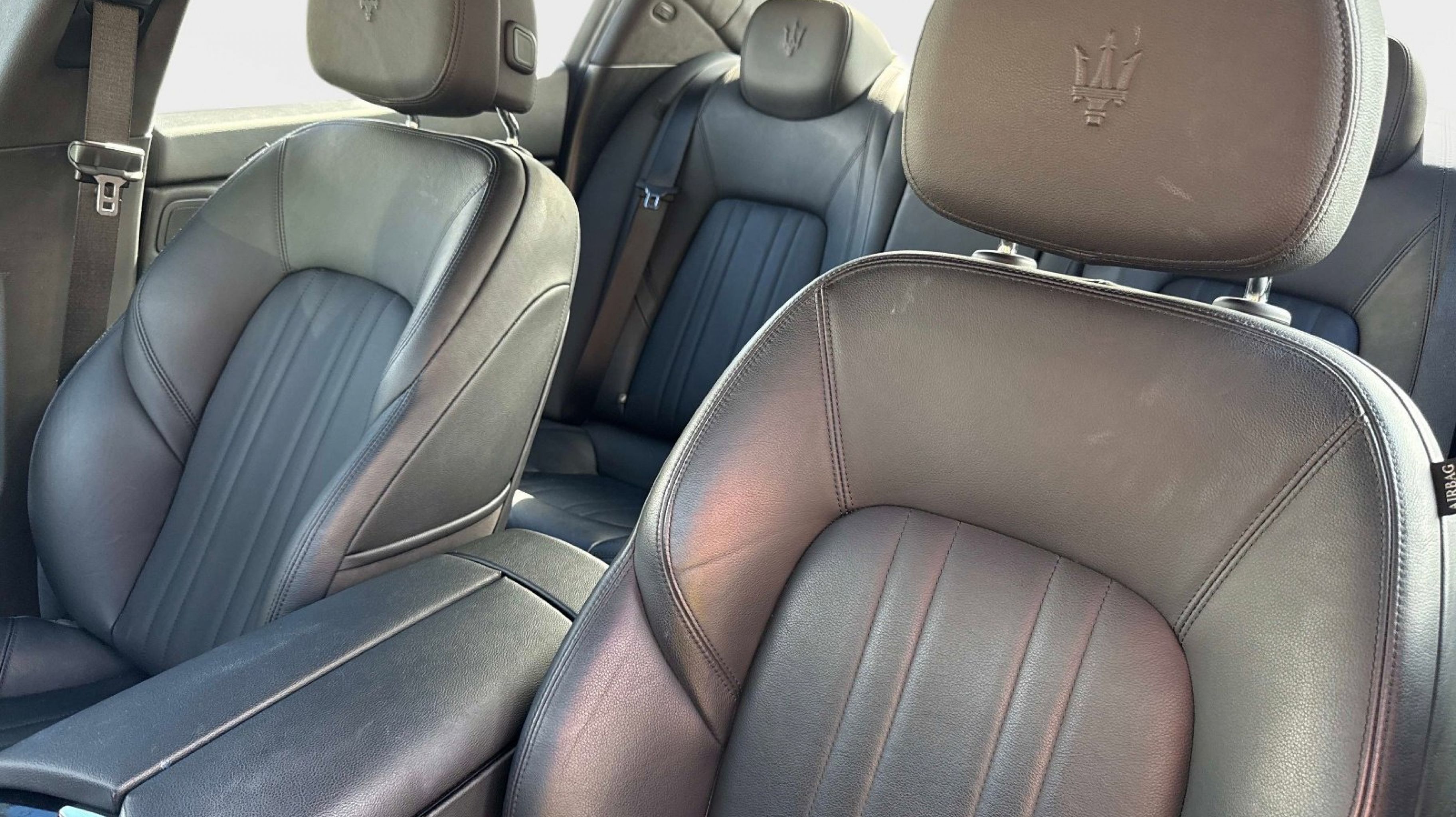 12-Way Power Heated Front Seats, 4-Wheel Disc Brakes, 8 Speakers, ABS brakes, Air Conditioning, Alloy wheels, Aluminum Column-Mounted Paddle Shifters, AM/FM radio: SiriusXM, Anti-whiplash front head restraints, Apple CarPlay/Android Auto, Auto-dimming door mirrors, Auto-dimming Rear-View mirror, Automatic temperature control, Brake assist, Bumpers: body-color, Compass, Delay-off headlights, Driver door bin, Driver vanity mirror, Dual front impact airbags, Dual front side impact airbags, Electronic Stability Control, Emergency communication system: Maserati Connect, Exterior Parking Camera Rear, Four wheel independent suspension, Front anti-roll bar, Front Bucket Seats, Front Center Armrest w/Storage, Front dual zone A/C, Front reading lights, Garage door transmitter: HomeLink, Heated door mirrors, Heated REAR seats, Heated steering wheel, High intensity discharge headlights: Bi-Xenon, Illuminated entry, Knee airbag, Leather Shift Knob, Leather steering wheel, Leather Upholstery, Low tire pressure warning, Memory seat, Navigation System, Occupant sensing airbag, Outside temperature display, Overhead airbag, Overhead console, Panic alarm, Passenger door bin, Passenger vanity mirror, Power door mirrors, Power driver seat, Power moonroof, Power passenger seat, Power steering, Power windows, Radio data system, Radio: AM/FM w/Maserati Intelligent Assistant, Rain sensing wipers, Rear anti-roll bar, Rear fog lights, Rear reading lights, Rear seat center armrest, Rear window defroster, Remote keyless entry, Security system, Speed control, Speed-sensing steering, Speed-Sensitive Wipers, Split folding rear seat, Sport steering wheel, Steering wheel memory, Steering wheel mounted audio controls, Tachometer, Telescoping steering wheel, Tilt steering wheel, Traction control, Trip computer, Turn signal indicator mirrors, Variably intermittent wipers, Voltmeter, Wheels: 19 Silver Poseidone.