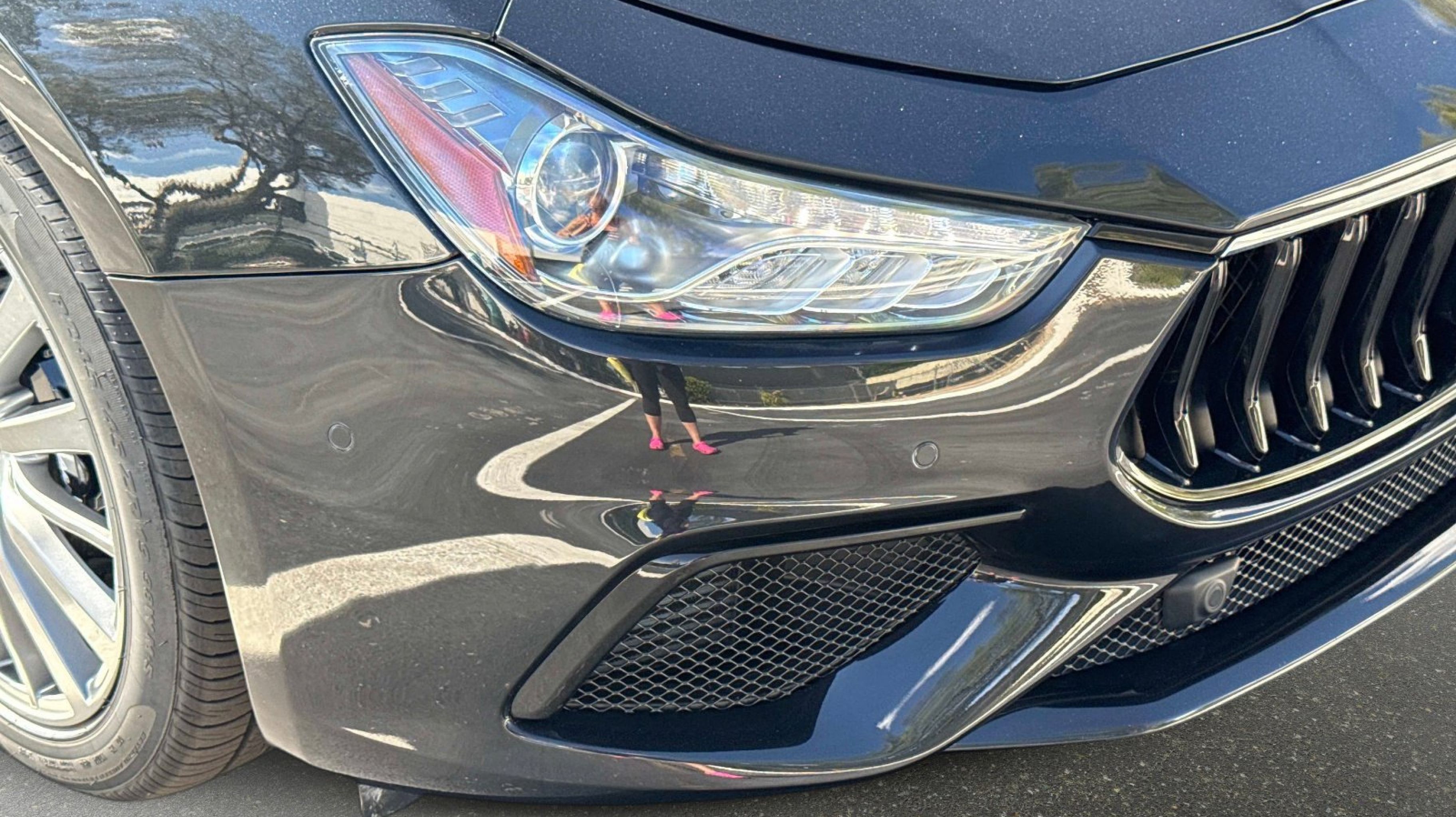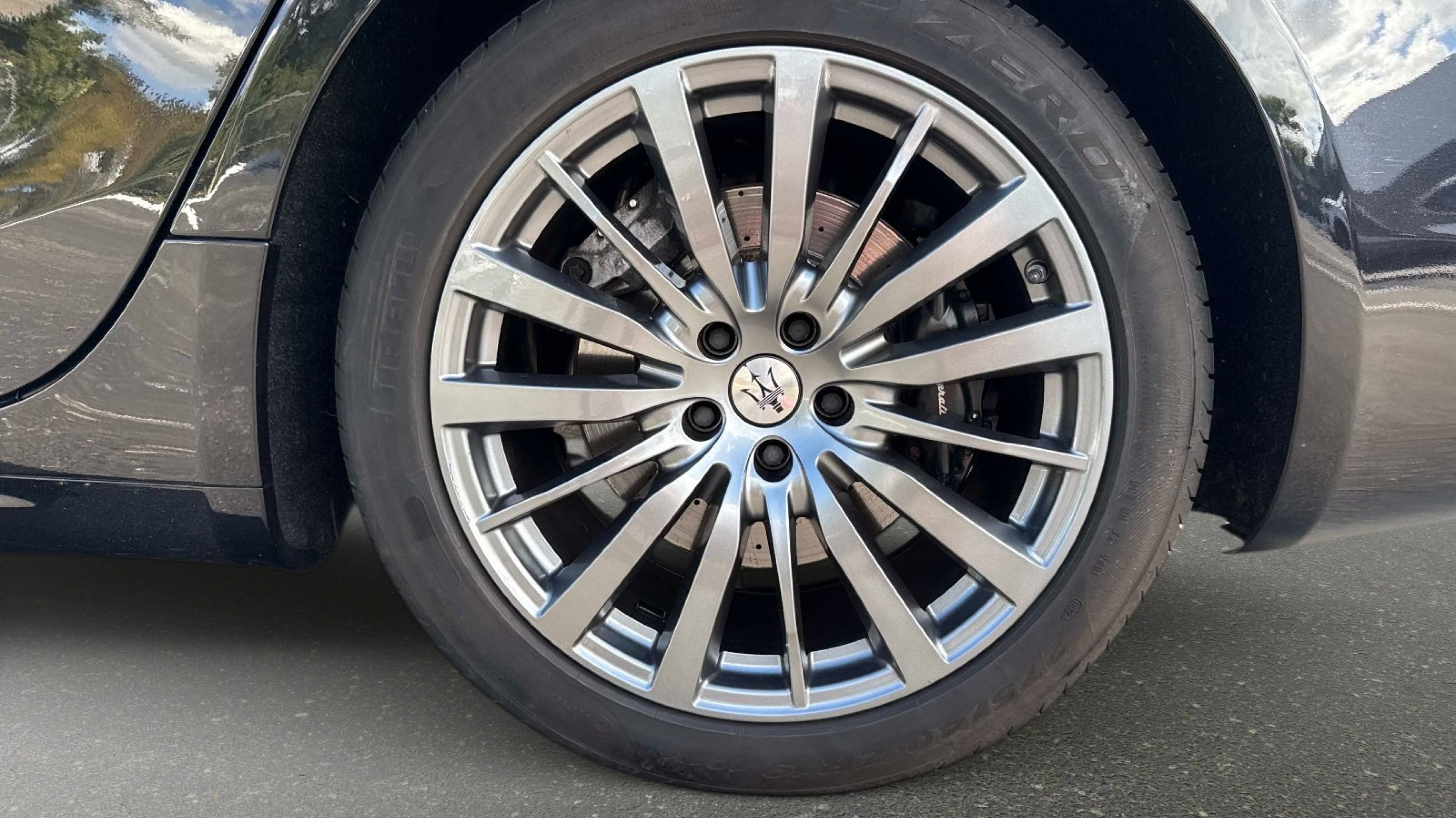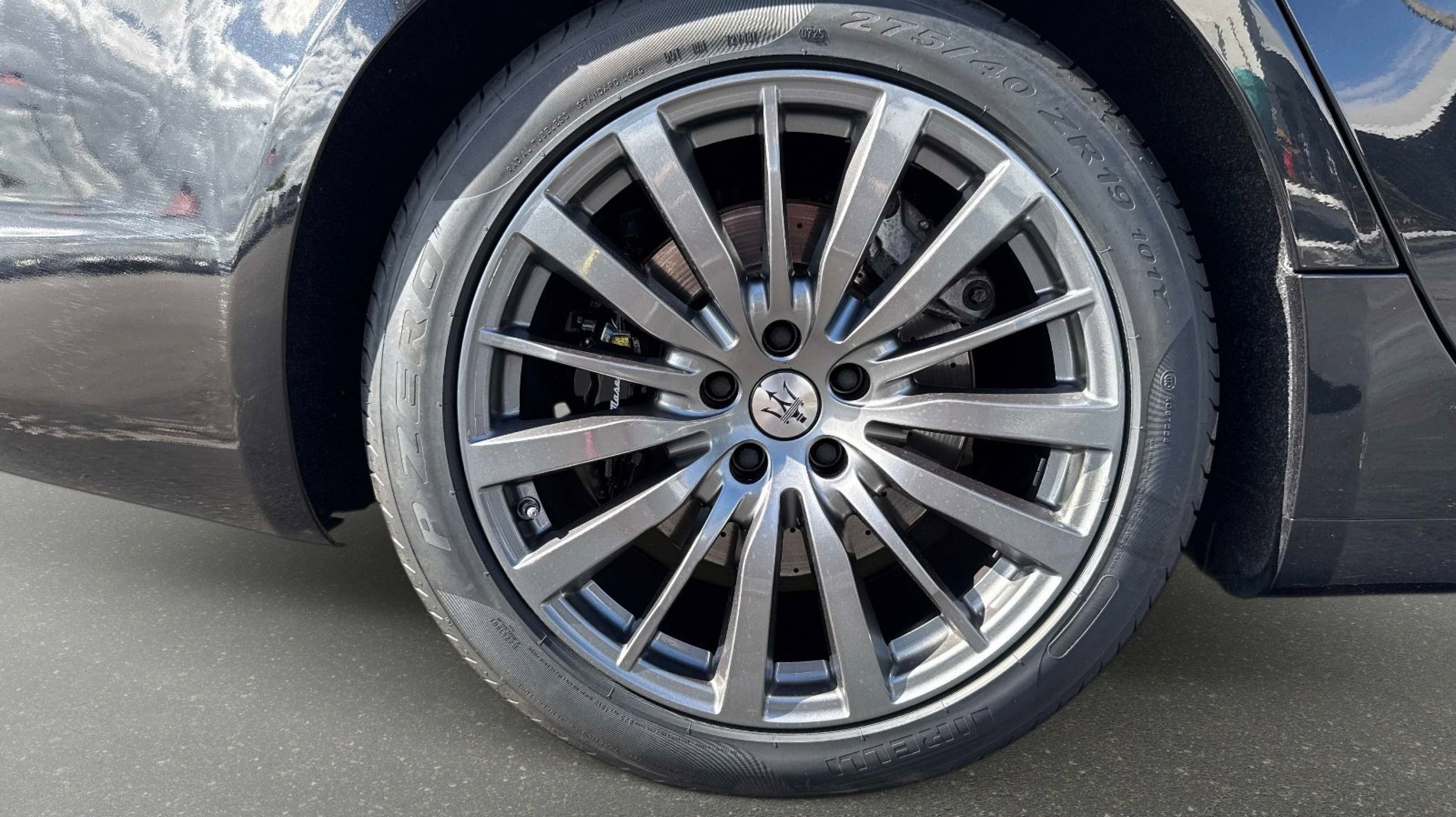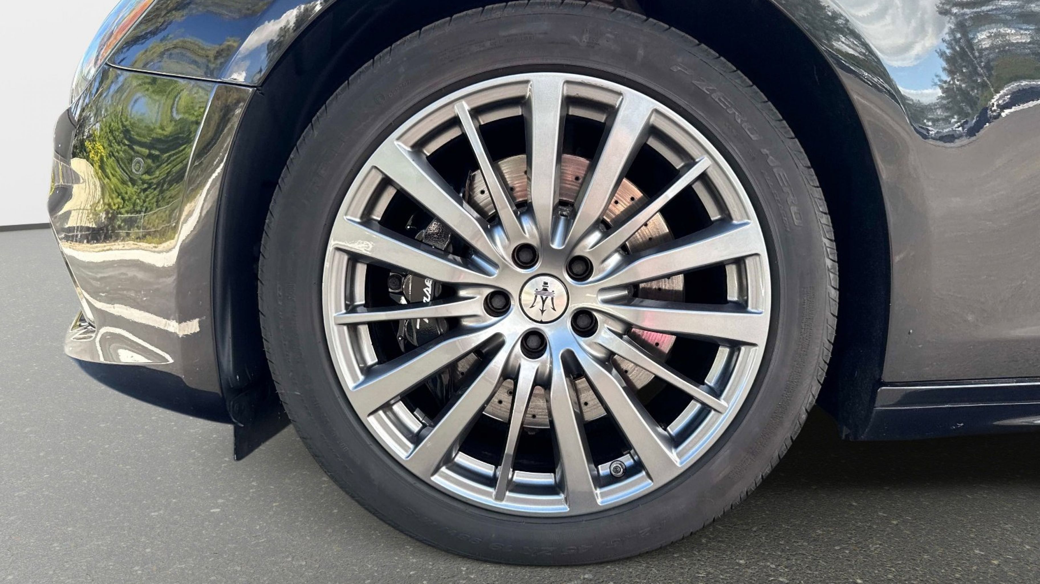 12-Way Power Heated Front Seats, 4-Wheel Disc Brakes, 8 Speakers, ABS brakes, Air Conditioning, Alloy wheels, Aluminum Column-Mounted Paddle Shifters, AM/FM radio: SiriusXM, Anti-whiplash front head restraints, Apple CarPlay/Android Auto, Auto-dimming door mirrors, Auto-dimming Rear-View mirror, Automatic temperature control, Brake assist, Bumpers: body-color, Compass, Delay-off headlights, Driver door bin, Driver vanity mirror, Dual front impact airbags, Dual front side impact airbags, Electronic Stability Control, Emergency communication system: Maserati Connect, Exterior Parking Camera Rear, Four wheel independent suspension, Front anti-roll bar, Front Bucket Seats, Front Center Armrest w/Storage, Front dual zone A/C, Front reading lights, Garage door transmitter: HomeLink, Heated door mirrors, Heated REAR seats, Heated steering wheel, High intensity discharge headlights: Bi-Xenon, Illuminated entry, Knee airbag, Leather Shift Knob, Leather steering wheel, Leather Upholstery, Low tire pressure warning, Memory seat, Navigation System, Occupant sensing airbag, Outside temperature display, Overhead airbag, Overhead console, Panic alarm, Passenger door bin, Passenger vanity mirror, Power door mirrors, Power driver seat, Power moonroof, Power passenger seat, Power steering, Power windows, Radio data system, Radio: AM/FM w/Maserati Intelligent Assistant, Rain sensing wipers, Rear anti-roll bar, Rear fog lights, Rear reading lights, Rear seat center armrest, Rear window defroster, Remote keyless entry, Security system, Speed control, Speed-sensing steering, Speed-Sensitive Wipers, Split folding rear seat, Sport steering wheel, Steering wheel memory, Steering wheel mounted audio controls, Tachometer, Telescoping steering wheel, Tilt steering wheel, Traction control, Trip computer, Turn signal indicator mirrors, Variably intermittent wipers, Voltmeter, Wheels: 19 Silver Poseidone.