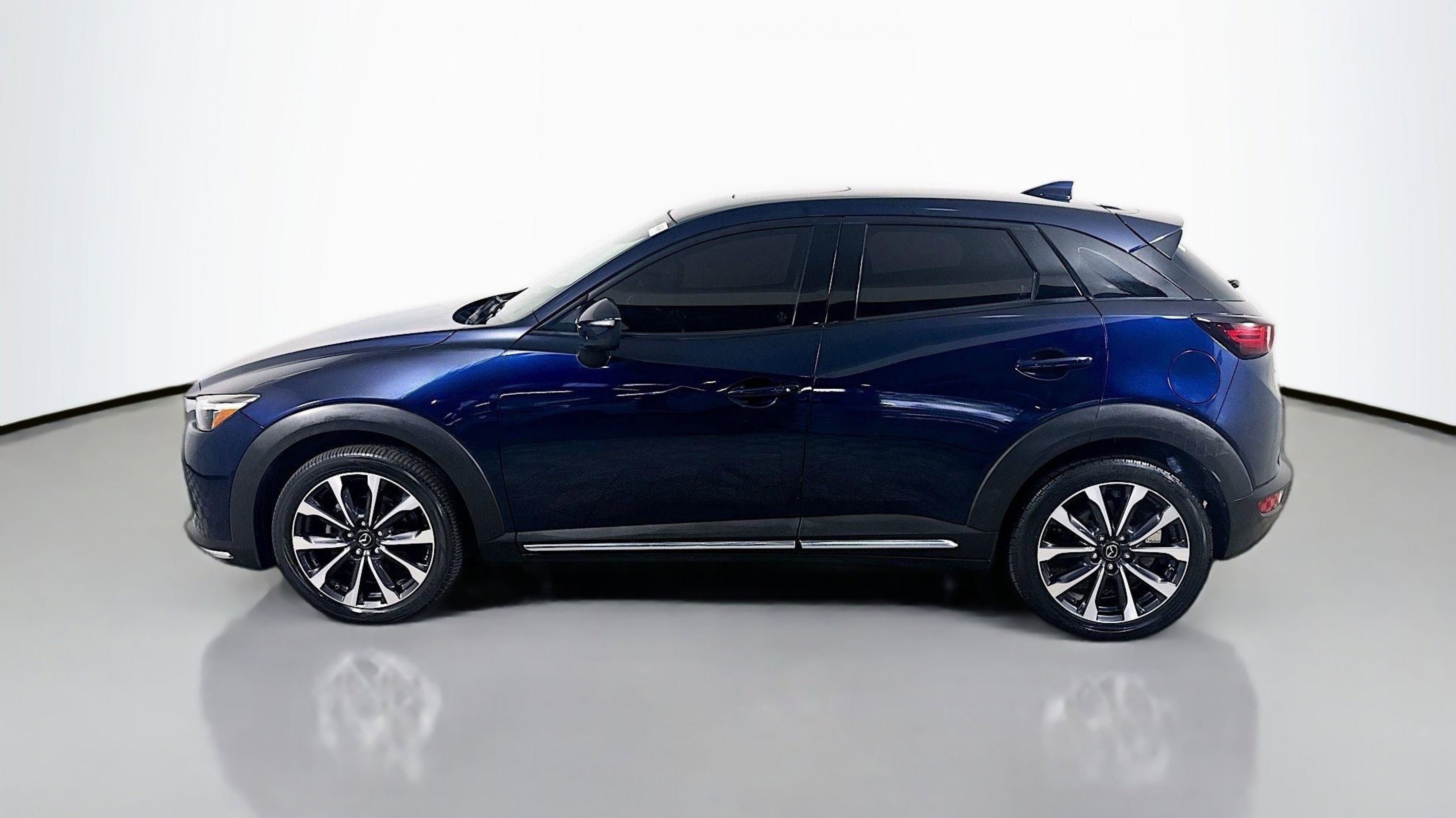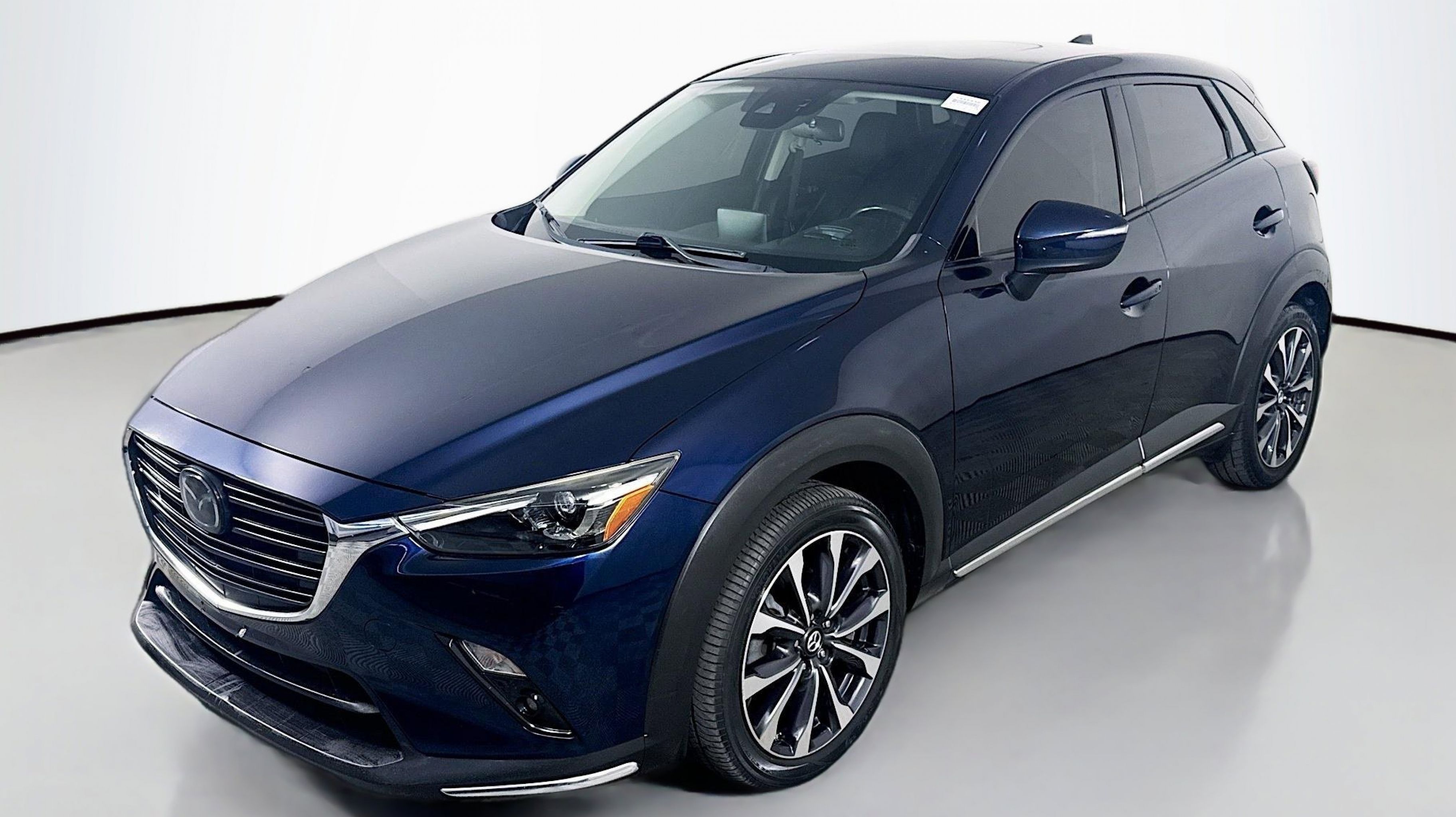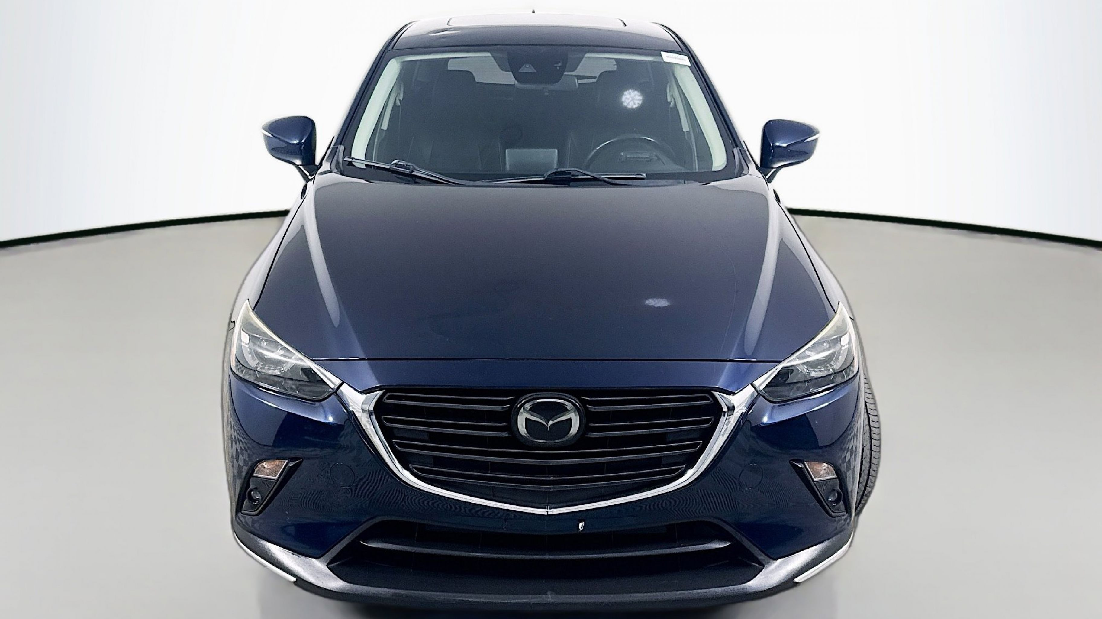 Deep Crystal Blue Mica 2019 Mazda CX-3 Grand Touring FWD 6-Speed Automatic SKYACTIV®-G 2.0L 4-Cylinder DOHC 16V 18 x 7 Aluminum Alloy Wheels, 4-Wheel Disc Brakes, 4.325 Axle Ratio, 7 Speakers, ABS brakes, Aha Internet Radio, Air Conditioning, Alloy wheels, AM/FM radio: SiriusXM, Auto High-beam Headlights, Automatic temperature control, BOSE 7-Speaker Audio Sound System, Brake assist, Bumpers: body-color, Delay-off headlights, Driver door bin, Driver vanity mirror, Dual front impact airbags, Dual front side impact airbags, E911 Automatic Emergency Notification, Electronic Stability Control, Emergency communication system: MAZDA CONNECT, Exterior Parking Camera Rear, Front anti-roll bar, Front Bucket Seats, Front Center Armrest, Front fog lights, Front reading lights, Front wheel independent suspension, Fully automatic headlights, Heads-Up Display, Heated door mirrors, Heated Front Bucket Seats, Heated front seats, Illuminated entry, Infotainment System Voice Command, Leather Shift Knob, Leather-Trimmed Upholstery, Low tire pressure warning, Navigation System, Occupant sensing airbag, Outside temperature display, Overhead airbag, Overhead console, Pandora Internet Radio, Panic alarm, PANORAMA SUNROOF, Passenger door bin, Passenger vanity mirror, Power door mirrors, Power steering, Power windows, Radio Broadcast Data System Program Information, Radio data system, Radio: AM/FM/HD Modular Audio System w/Bose, Rain sensing wipers, Rear seat center armrest, Rear window defroster, Rear window wiper, Remote keyless entry, SiriusXM Satellite Radio, SMS Text Msg Audio Delivery & Reply, Speed control, Speed-sensing steering, Split folding rear seat, Spoiler, Steering wheel mounted audio controls, Stitcher Internet Radio, Tachometer, Telescoping steering wheel, Tilt steering wheel, Traction control, Trip computer, Turn signal indicator mirrors, Variably intermittent wipers.