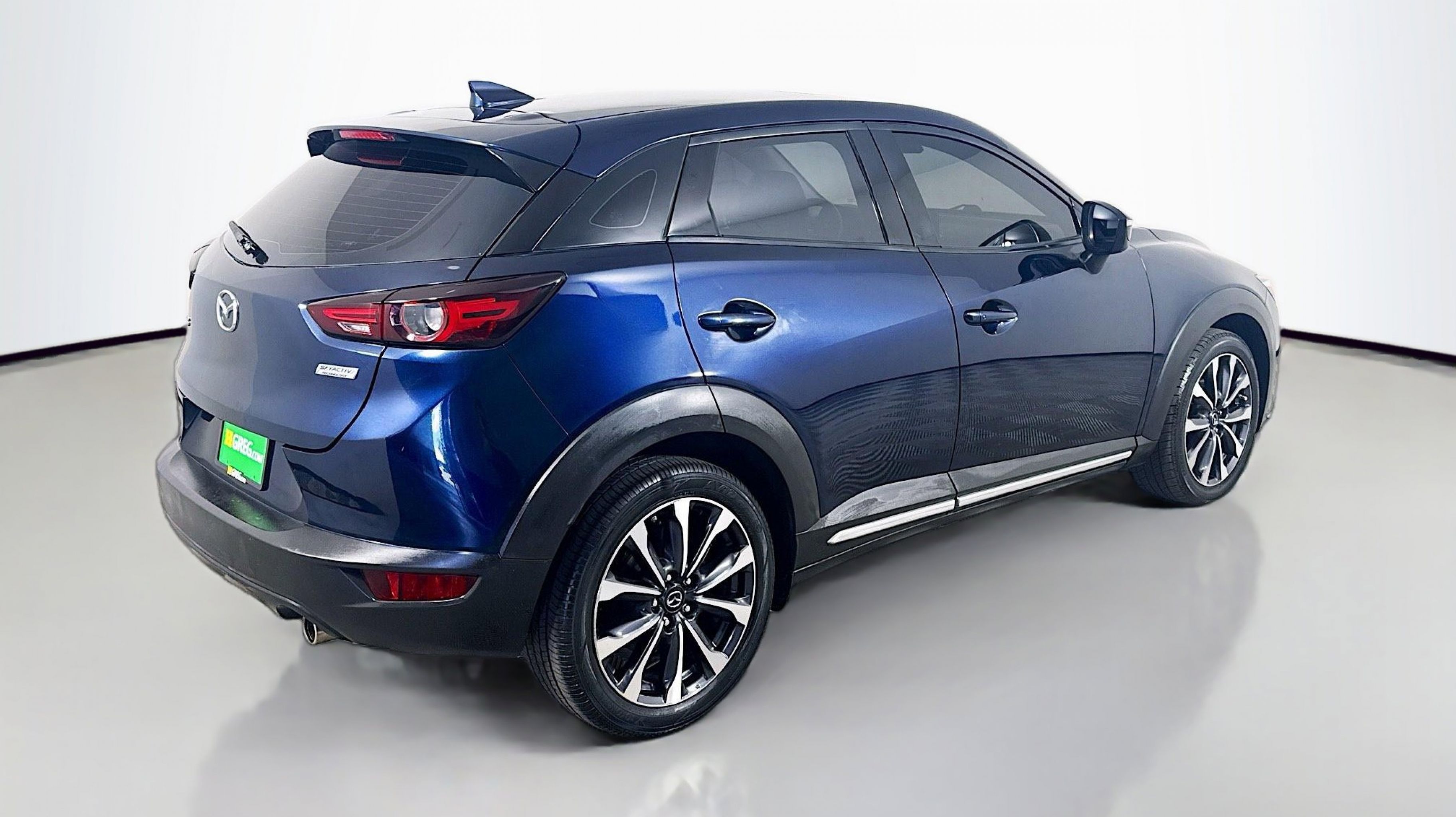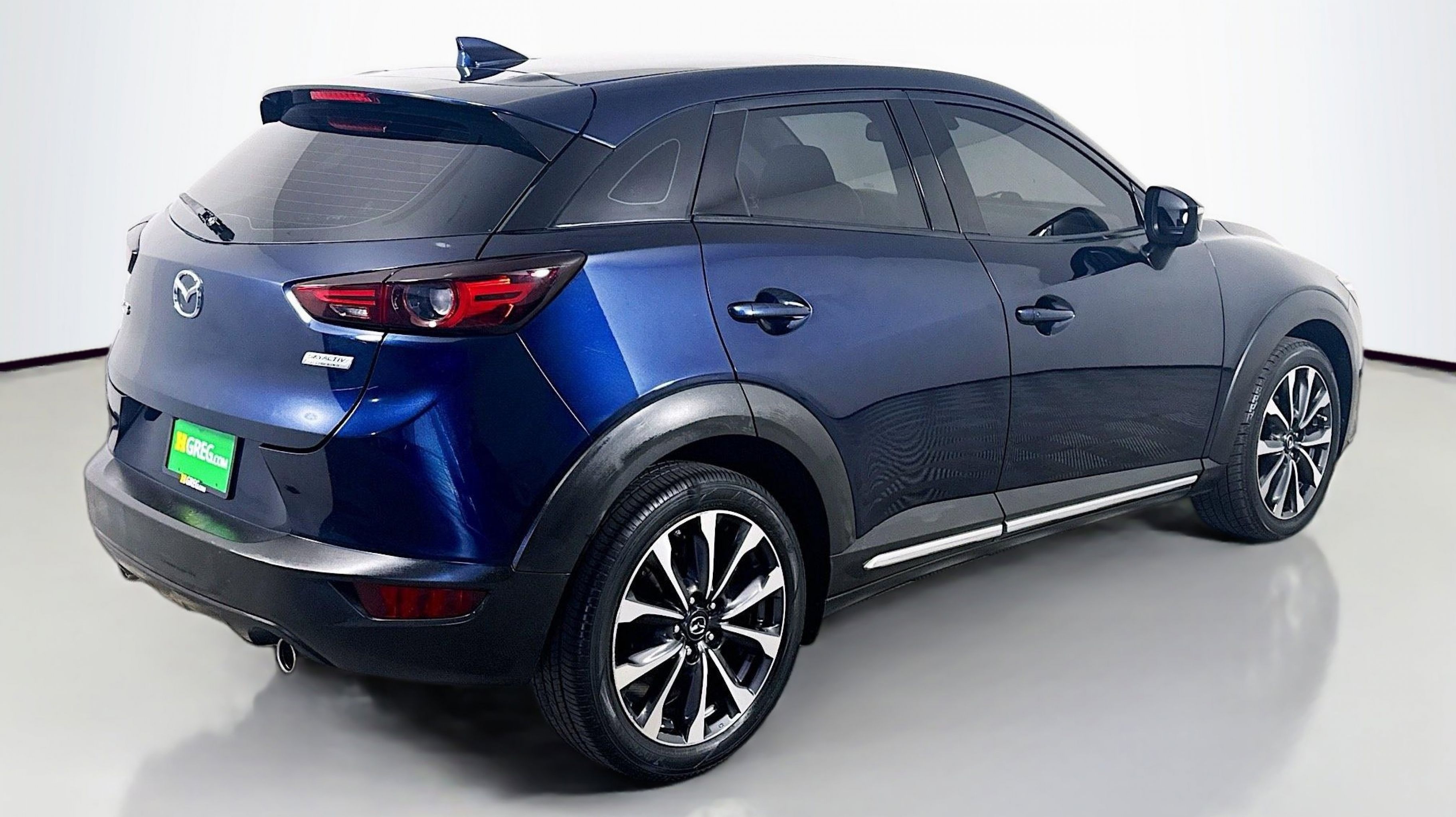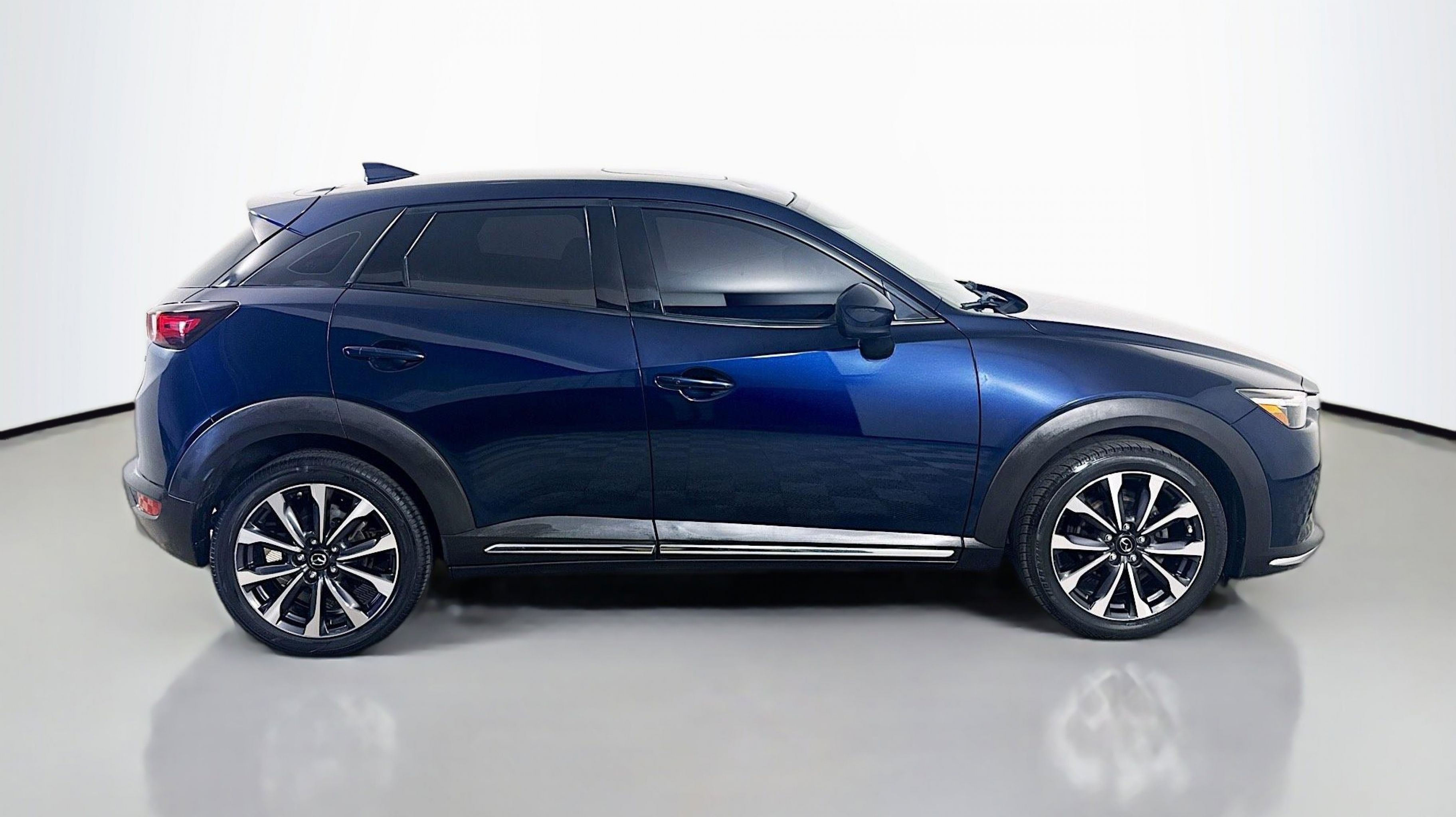 Deep Crystal Blue Mica 2019 Mazda CX-3 Grand Touring FWD 6-Speed Automatic SKYACTIV®-G 2.0L 4-Cylinder DOHC 16V 18 x 7 Aluminum Alloy Wheels, 4-Wheel Disc Brakes, 4.325 Axle Ratio, 7 Speakers, ABS brakes, Aha Internet Radio, Air Conditioning, Alloy wheels, AM/FM radio: SiriusXM, Auto High-beam Headlights, Automatic temperature control, BOSE 7-Speaker Audio Sound System, Brake assist, Bumpers: body-color, Delay-off headlights, Driver door bin, Driver vanity mirror, Dual front impact airbags, Dual front side impact airbags, E911 Automatic Emergency Notification, Electronic Stability Control, Emergency communication system: MAZDA CONNECT, Exterior Parking Camera Rear, Front anti-roll bar, Front Bucket Seats, Front Center Armrest, Front fog lights, Front reading lights, Front wheel independent suspension, Fully automatic headlights, Heads-Up Display, Heated door mirrors, Heated Front Bucket Seats, Heated front seats, Illuminated entry, Infotainment System Voice Command, Leather Shift Knob, Leather-Trimmed Upholstery, Low tire pressure warning, Navigation System, Occupant sensing airbag, Outside temperature display, Overhead airbag, Overhead console, Pandora Internet Radio, Panic alarm, PANORAMA SUNROOF, Passenger door bin, Passenger vanity mirror, Power door mirrors, Power steering, Power windows, Radio Broadcast Data System Program Information, Radio data system, Radio: AM/FM/HD Modular Audio System w/Bose, Rain sensing wipers, Rear seat center armrest, Rear window defroster, Rear window wiper, Remote keyless entry, SiriusXM Satellite Radio, SMS Text Msg Audio Delivery & Reply, Speed control, Speed-sensing steering, Split folding rear seat, Spoiler, Steering wheel mounted audio controls, Stitcher Internet Radio, Tachometer, Telescoping steering wheel, Tilt steering wheel, Traction control, Trip computer, Turn signal indicator mirrors, Variably intermittent wipers.