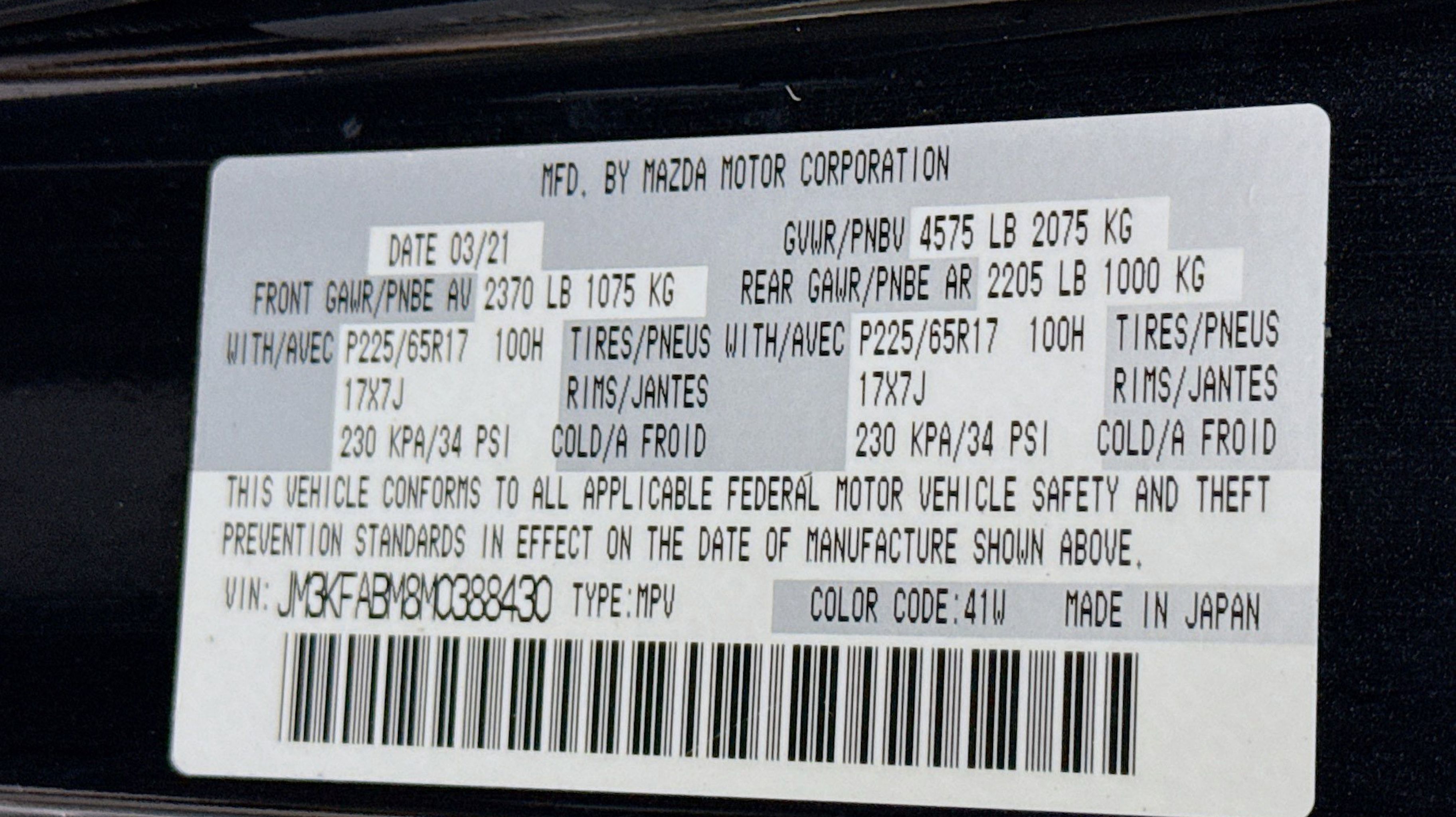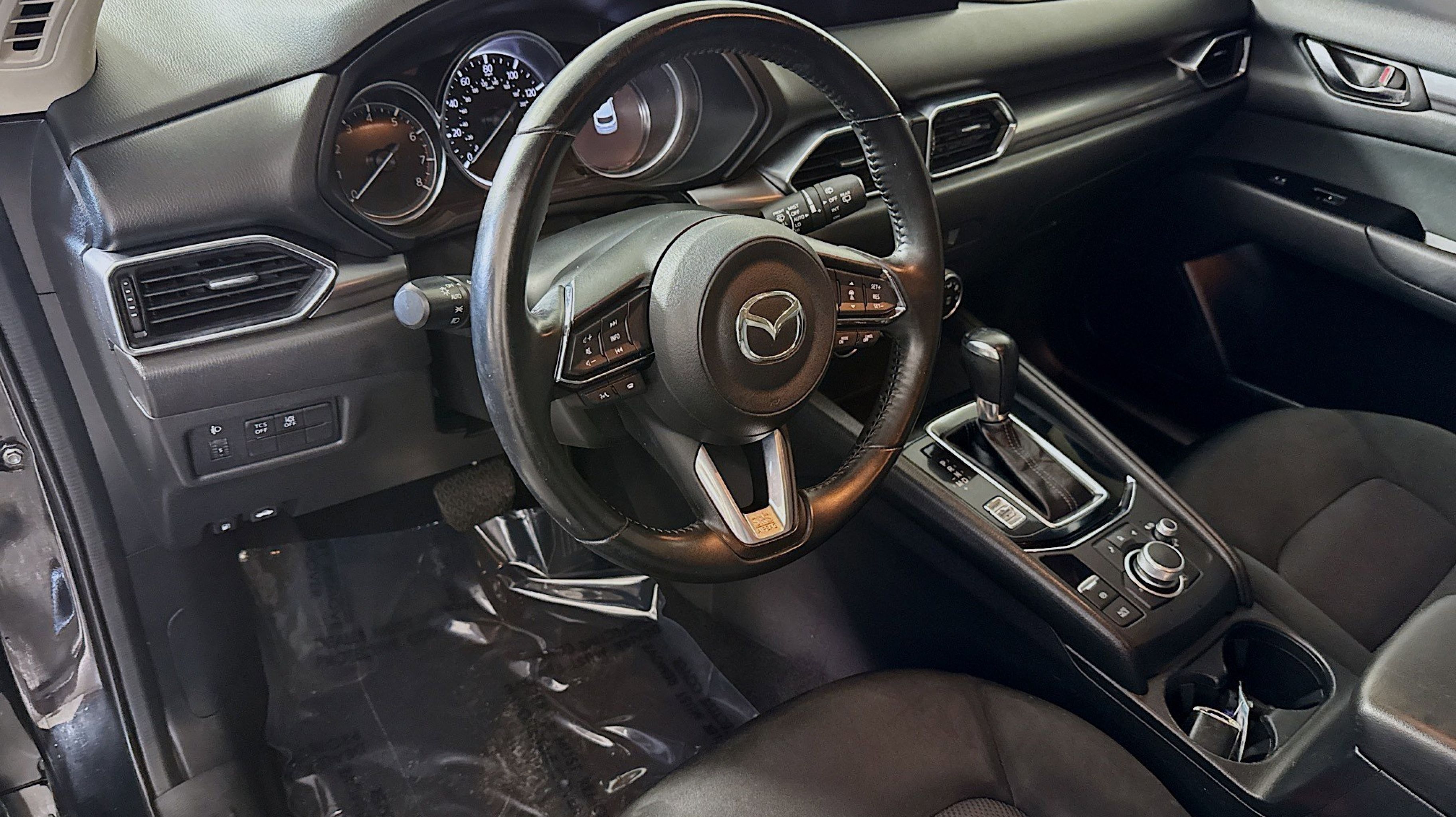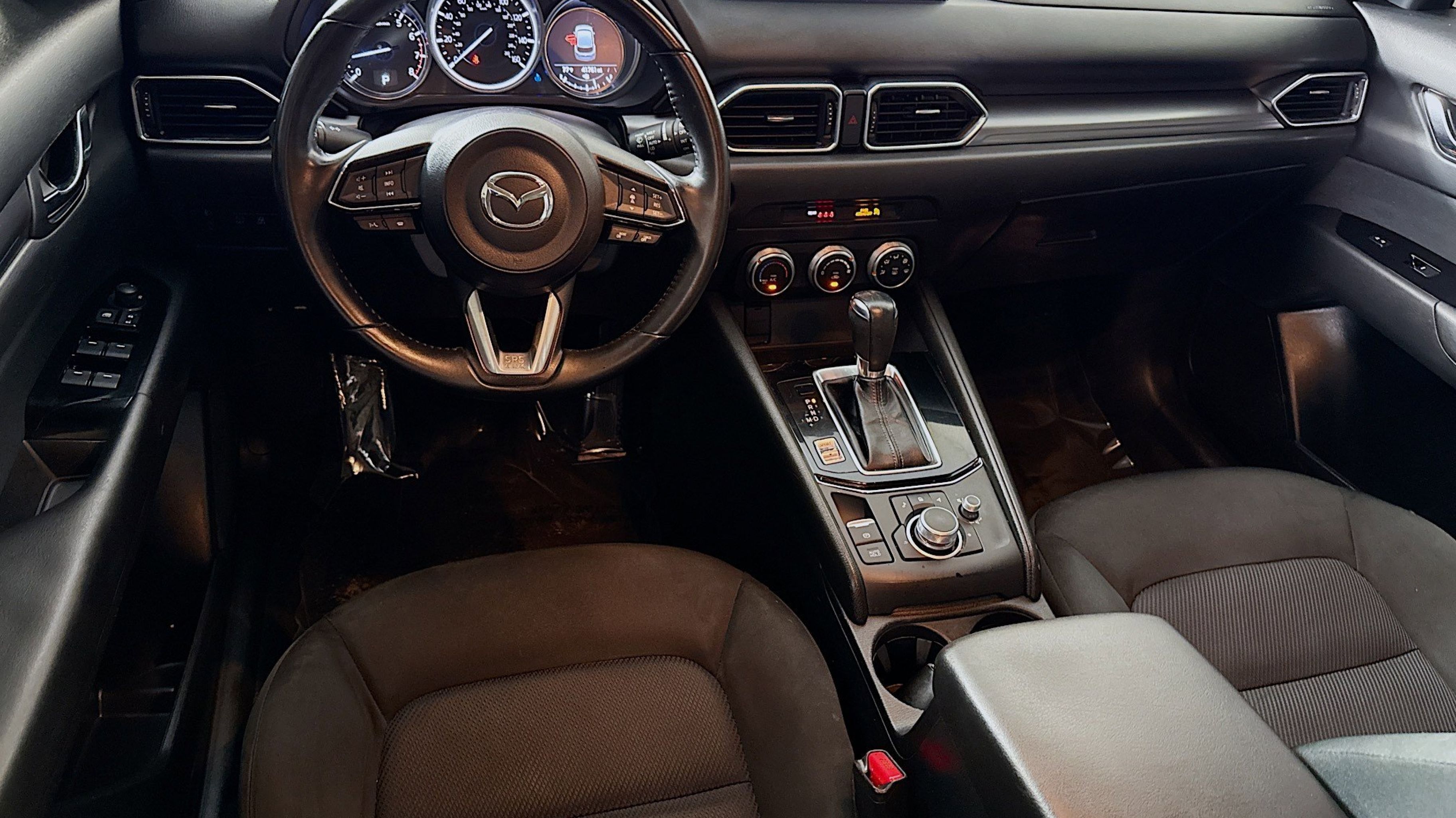Clean CARFAX. 4 Speakers, 4-Wheel Disc Brakes, 4.325 Axle Ratio, ABS brakes, Air Conditioning, Alloy wheels, AM/FM radio, AppLink/Apple CarPlay and Android Auto, Auto High-beam Headlights, Brake assist, Bumpers: body-color, Cloth Seat Trim, Delay-off headlights, Driver door bin, Driver vanity mirror, Dual front impact airbags, Dual front side impact airbags, Electronic Stability Control, Emergency communication system: MAZDA CONNECT, Exterior Parking Camera Rear, Four wheel independent suspension, Front anti-roll bar, Front Bucket Seats, Front Center Armrest, Front reading lights, Fully automatic headlights, Illuminated entry, Leather Shift Knob, Low tire pressure warning, Occupant sensing airbag, Outside temperature display, Overhead airbag, Overhead console, Panic alarm, Passenger door bin, Passenger vanity mirror, Power door mirrors, Power steering, Power windows, Radio data system, Radio: AM/FM/HD Audio System, Rain sensing wipers, Rear anti-roll bar, Rear reading lights, Rear window defroster, Rear window wiper, Remote keyless entry, Speed control, Speed-sensing steering, Split folding rear seat, Spoiler, Steering wheel mounted audio controls, Tachometer, Telescoping steering wheel, Tilt steering wheel, Traction control, Trip computer, Turn signal indicator mirrors, Variably intermittent wipers, Wheel Locks, Wheels: 17 x 7J Aluminum Alloy.