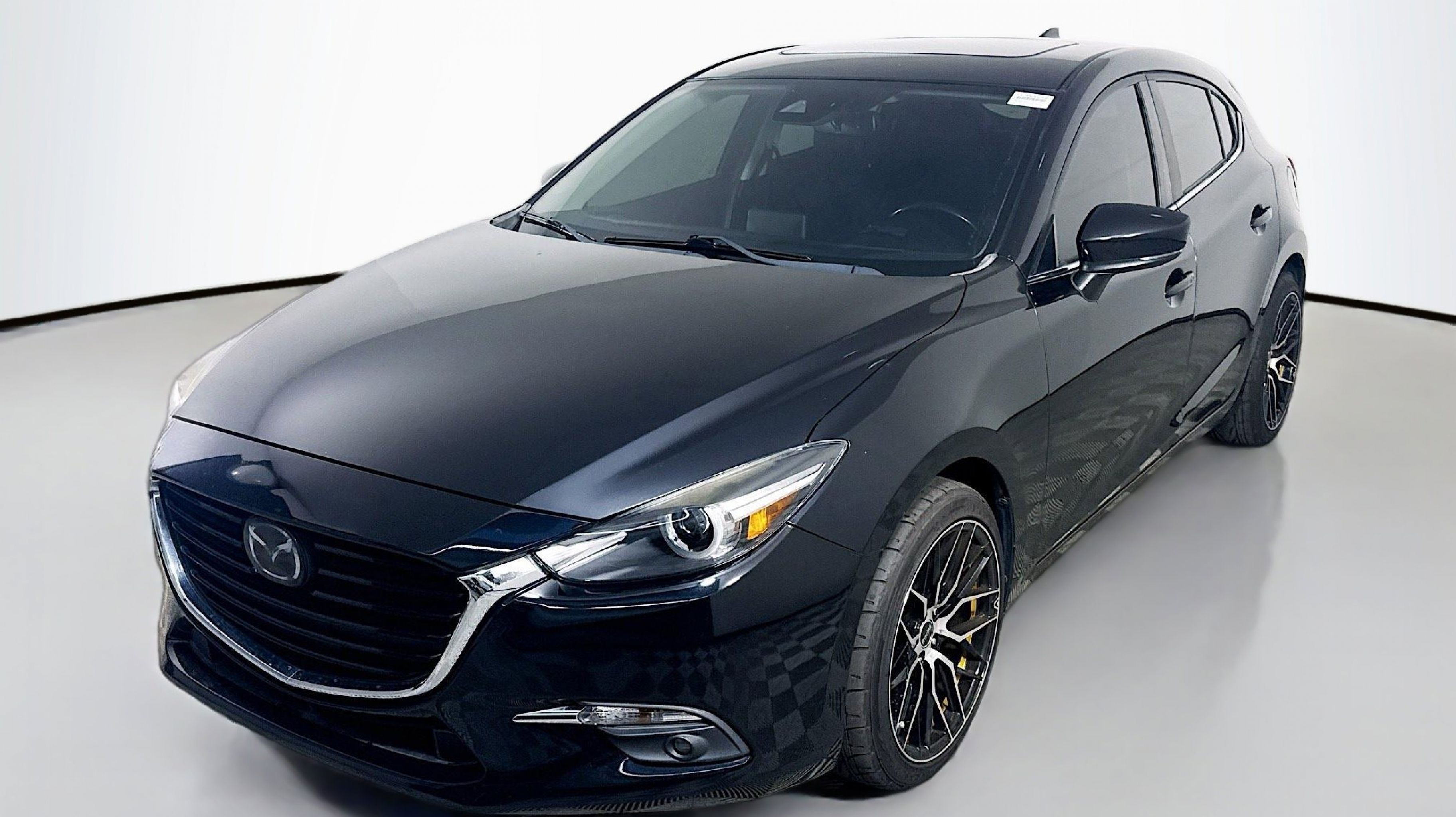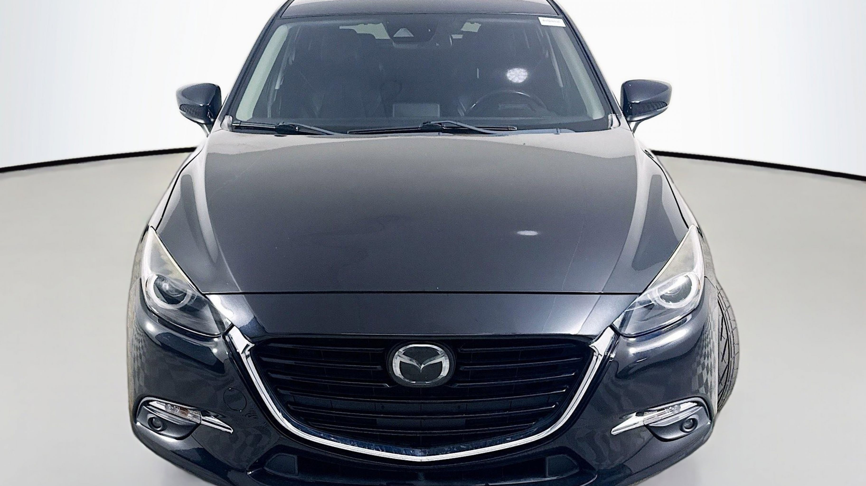 Jet Black Mica 2018 Mazda Mazda3 Grand Touring FWD 6-Speed Manual SKYACTIV® 2.5L 4-Cylinder DOHC 16V Auto-Dimming Interior Mirror w/HomeLink, Heated Steering Wheel, High Beam Control, Lane Departure Warning System, Lane Keep Assist, Mazda Navigation System, Mazda Radar Cruise Control, Pivoting Adaptive Front-Lighting System, Premium Equipment Package, Smart Brake Support, Traffic Sign Recognition, 4-Wheel Disc Brakes, 9 Speakers, ABS brakes, Air Conditioning, Alloy wheels, AM/FM radio: SiriusXM, Automatic temperature control, Bose 9 Speaker Surround Sound Audio System, Brake assist, Bumpers: body-color, Driver door bin, Driver vanity mirror, Dual front impact airbags, Dual front side impact airbags, Electronic Stability Control, Emergency communication system: MAZDA CONNECT, Exterior Parking Camera Rear, Four wheel independent suspension, Front anti-roll bar, Front Bucket Seats, Front Center Armrest, Front dual zone A/C, Front fog lights, Front reading lights, Fully automatic headlights, Heated door mirrors, Heated front seats, Illuminated entry, Leather Shift Knob, Low tire pressure warning, Occupant sensing airbag, Outside temperature display, Overhead airbag, Overhead console, Panic alarm, PANORAMA SUNROOF, Passenger door bin, Passenger vanity mirror, Perforated Leather Seat Trim, Power door mirrors, Power driver seat, Power steering, Power windows, Radio data system, Radio: AM/FM/HD Audio System, Rain sensing wipers, Rear anti-roll bar, Rear seat center armrest, Rear window defroster, Rear window wiper, Remote keyless entry, Speed control, Speed-sensing steering, Split folding rear seat, Spoiler, Steering wheel mounted audio controls, Tachometer, Telescoping steering wheel, Tilt steering wheel, Traction control, Trip computer, Turn signal indicator mirrors, Variable Heated Reclining Front Bucket Seats, Variably intermittent wipers, Wheel Locks, Wheels: 18 x 7.0J Dark Silver Finish Alloy, Auto-Dimming Interior Mirror w/HomeLink, Heated Steering Wheel, High Beam Control, Lane Departure Warning System, Lane Keep Assist, Mazda Navigation System, Mazda Radar Cruise Control, Pivoting Adaptive Front-Lighting System, Premium Equipment Package, Smart Brake Support, Traffic Sign Recognition.
