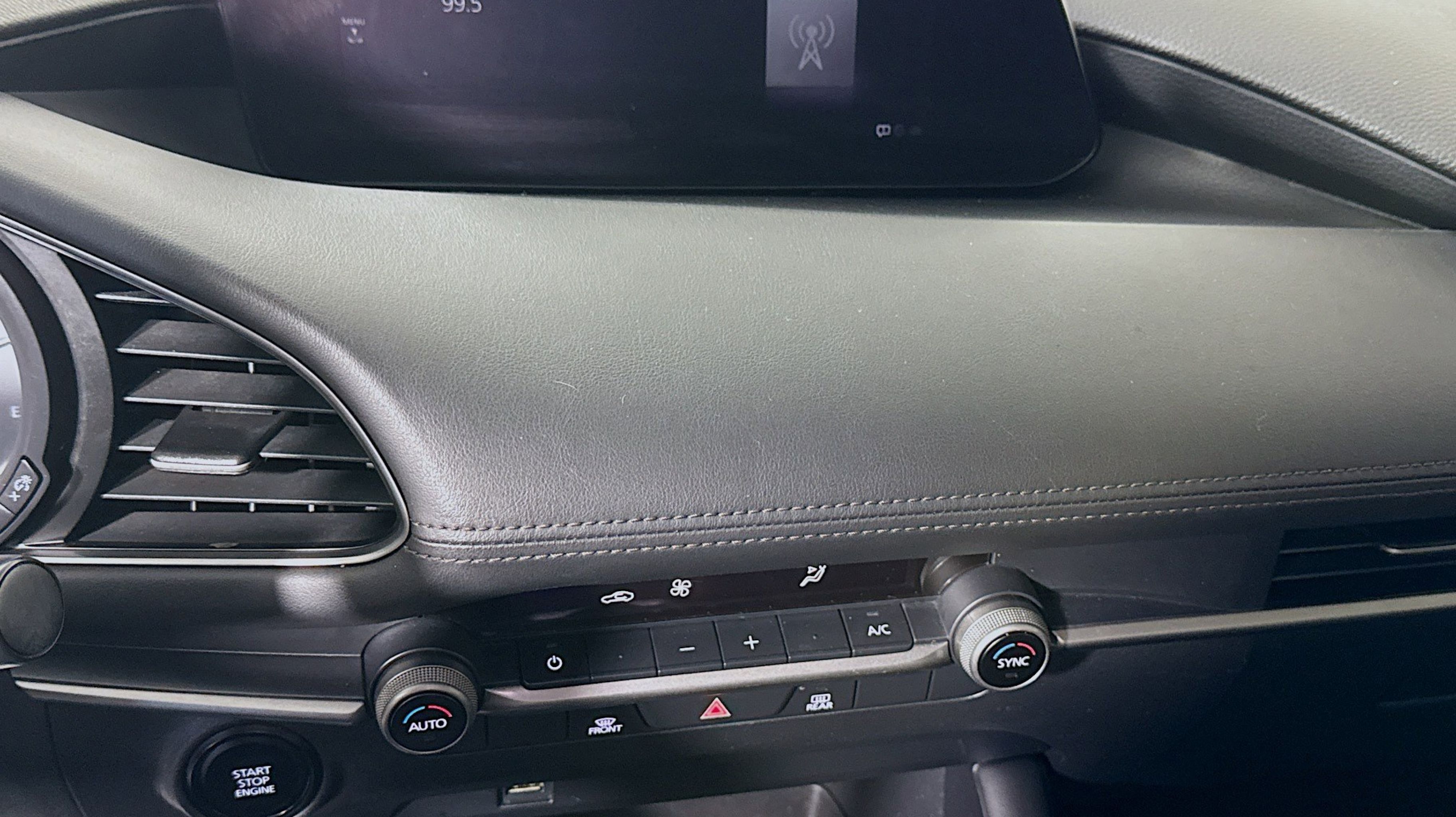 Blind Spot Monitoring w/Rear Cross Traffic Alert, Dual Zone Automatic Climate Control, Leather Steering Wheel & Shift Knob, Mazda Advanced Keyless Entry, Rear Armrest w/Cup Holders, Select Package, Side Mirror Turn Lamps, 18 x 7J Alloy Wheels, 4-Wheel Disc Brakes, 8 Speakers, ABS brakes, Air Conditioning, Alloy wheels, AM/FM radio, AppLink/Apple CarPlay and Android Auto, Auto High-beam Headlights, Automatic temperature control, Brake assist, Bumpers: body-color, Compass, Delay-off headlights, Driver door bin, Driver vanity mirror, Dual front impact airbags, Dual front side impact airbags, Electronic Stability Control, Emergency communication system: MAZDA CONNECT, Exterior Parking Camera Rear, Front anti-roll bar, Front Bucket Seats, Front Center Armrest, Front dual zone A/C, Front reading lights, Front wheel independent suspension, Fully automatic headlights, Illuminated entry, Knee airbag, Leather Shift Knob, Leatherette Seat Trim, Low tire pressure warning, Occupant sensing airbag, Outside temperature display, Overhead airbag, Overhead console, Panic alarm, Passenger door bin, Passenger vanity mirror, Power door mirrors, Power steering, Power windows, Radio data system, Radio: AM/FM Audio System, Rain sensing wipers, Rear seat center armrest, Rear window defroster, Remote keyless entry, Speed control, Speed-sensing steering, Split folding rear seat, Steering wheel mounted audio controls, Tachometer, Telescoping steering wheel, Tilt steering wheel, Traction control, Trip computer, Turn signal indicator mirrors, Variably intermittent wipers, Blind Spot Monitoring w/Rear Cross Traffic Alert, Dual Zone Automatic Climate Control, Leather Steering Wheel & Shift Knob, Mazda Advanced Keyless Entry, Rear Armrest w/Cup Holders, Select Package, Side Mirror Turn Lamps.
