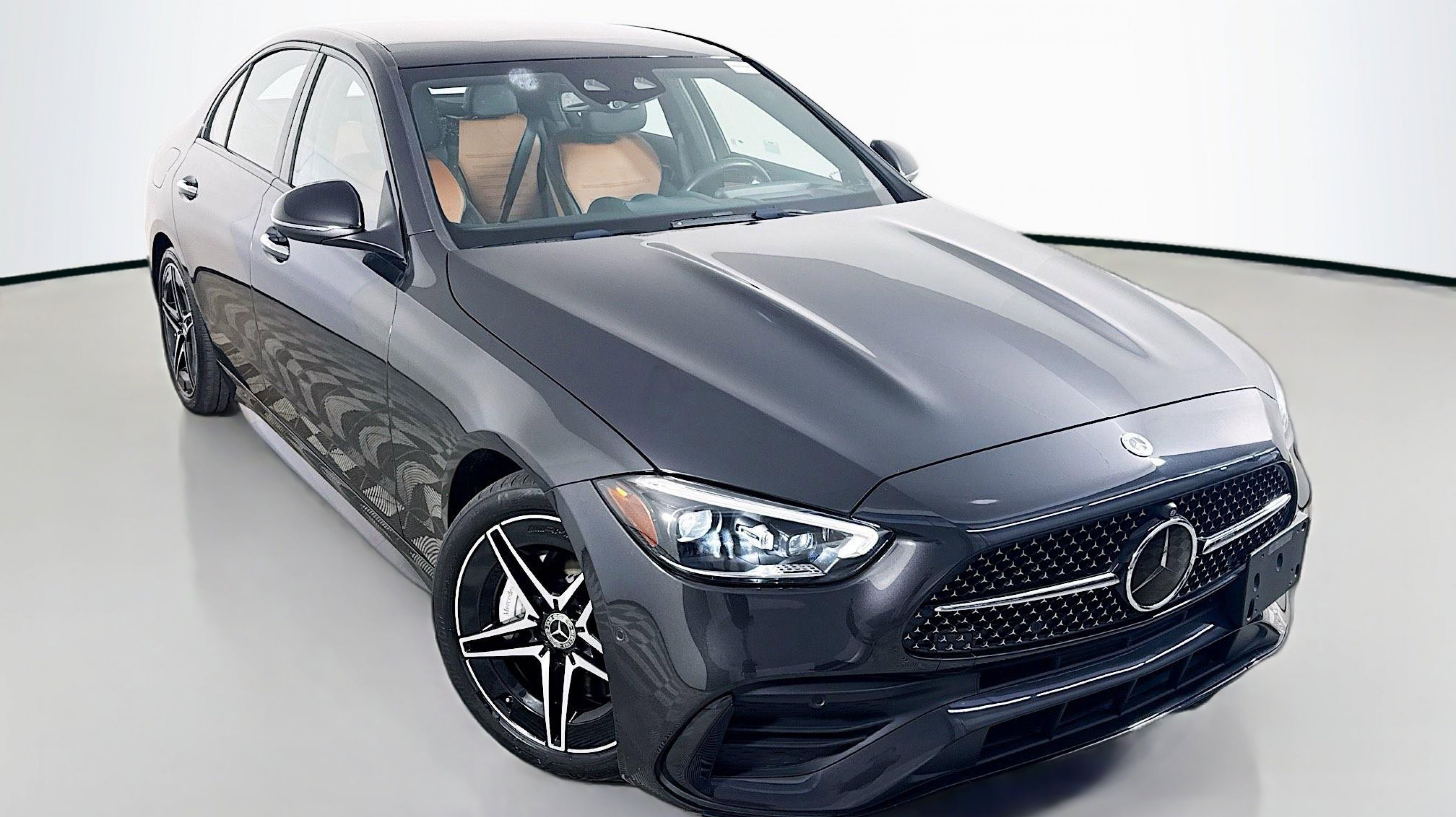Graphite Gray Metallic 2023 Mercedes-Benz C-Class C 300 4MATIC® 4MATIC® 9-Speed Automatic 2.0L I4 Turbocharged 4MATIC®, Active Blind Spot Assist, Active Brake Assist w/Cross-Traffic Function, Active Distance Assist DISTRONIC® w/Steering Assist, Active Emergency Stop Assist, Active Lane Change Assist, Active Lane Keeping Assist, Active Speed Limit Assist, Active Steering Assist, Active Stop-and-Go Assist, AMG® Body Styling, AMG® Line Exterior, AMG® Line w/Night Package, Digital Light Headlamps, DIGITAL LIGHT Package, Driver Assistance Package, Evasive Steering Assist, MB-Tex Dashboard, Perforated Brake Discs, PRE-SAFE® PLUS, Premium Trim Package, Route-Based Speed Adaptation, Sport Suspension w/Sport Steering System, Star Grille, 11.9 Center Touchscreen Display, 18 5-Spoke Wheels, 4-way Power Driver's Lumbar Support, 4-Wheel Disc Brakes, 5 Speakers, ABS brakes, Air Conditioning, Alloy wheels, AM/FM radio, Anti-whiplash front head restraints, Apple CarPlay®/Android Auto®, Auto High-beam Headlights, Auto tilt-away steering wheel, Auto-dimming door mirrors, Auto-dimming Rear-View mirror, Automatic temperature control, Brake assist, Bumpers: body-color, Child-Seat-Sensing Airbag, Compass, Delay-off headlights, Driver door bin, Driver vanity mirror, Dual front impact airbags, Dual front side impact airbags, Electronic Stability Control, Emergency communication system: Mercedes-Benz Emergency Call Service, Exterior Parking Camera Rear, Four wheel independent suspension, Front anti-roll bar, Front Bucket Seats, Front Center Armrest, Front dual zone A/C, Front reading lights, Fully automatic headlights, Garage door transmitter: HomeLink, Genuine wood dashboard insert, Head restraints memory, Heated door mirrors, Heated front seats, Illuminated entry, Knee airbag, Low tire pressure warning, MB-Tex Upholstery, Memory seat, Occupant sensing airbag, Outside temperature display, Overhead airbag, Overhead console, Panic alarm, PANORAMA SUNROOF, Passenger door bin, Passenger vanity mirror, Power adjustable front head restraints, Power door mirrors, Power driver seat, Power Heated Front Seats w/Memory, Power passenger seat, Power steering, Power windows, Premium audio system: MBUX, Radio data system, Radio: FrontBass 5-Speaker Audio System, Rain sensing wipers, Rear anti-roll bar, Rear fog lights, Rear reading lights, Rear seat center armrest, Rear window defroster, Remote keyless entry, Security system, Speed control, Speed-sensing steering, Split folding rear seat, Steering wheel memory, Steering wheel mounted audio controls, Tachometer, Telescoping steering wheel, Tilt steering wheel, Traction control, Trip computer, Turn signal indicator mirrors, Variably intermittent wipers, Weather band radio, 4MATIC®, Active Blind Spot Assist, Active Brake Assist w/Cross-Traffic Function, Active Distance Assist DISTRONIC® w/Steering Assist, Active Emergency Stop Assist, Active Lane Change Assist, Active Lane Keeping Assist, Active Speed Limit Assist, Active Steering Assist, Active Stop-and-Go Assist, AMG® Body Styling, AMG® Line Exterior, AMG® Line w/Night Package, Digital Light Headlamps, DIGITAL LIGHT Package, Driver Assistance Package, Evasive Steering Assist, MB-Tex Dashboard, Perforated Brake Discs, PRE-SAFE® PLUS, Premium Trim Package, Route-Based Speed Adaptation, Sport Suspension w/Sport Steering System, Star Grille.