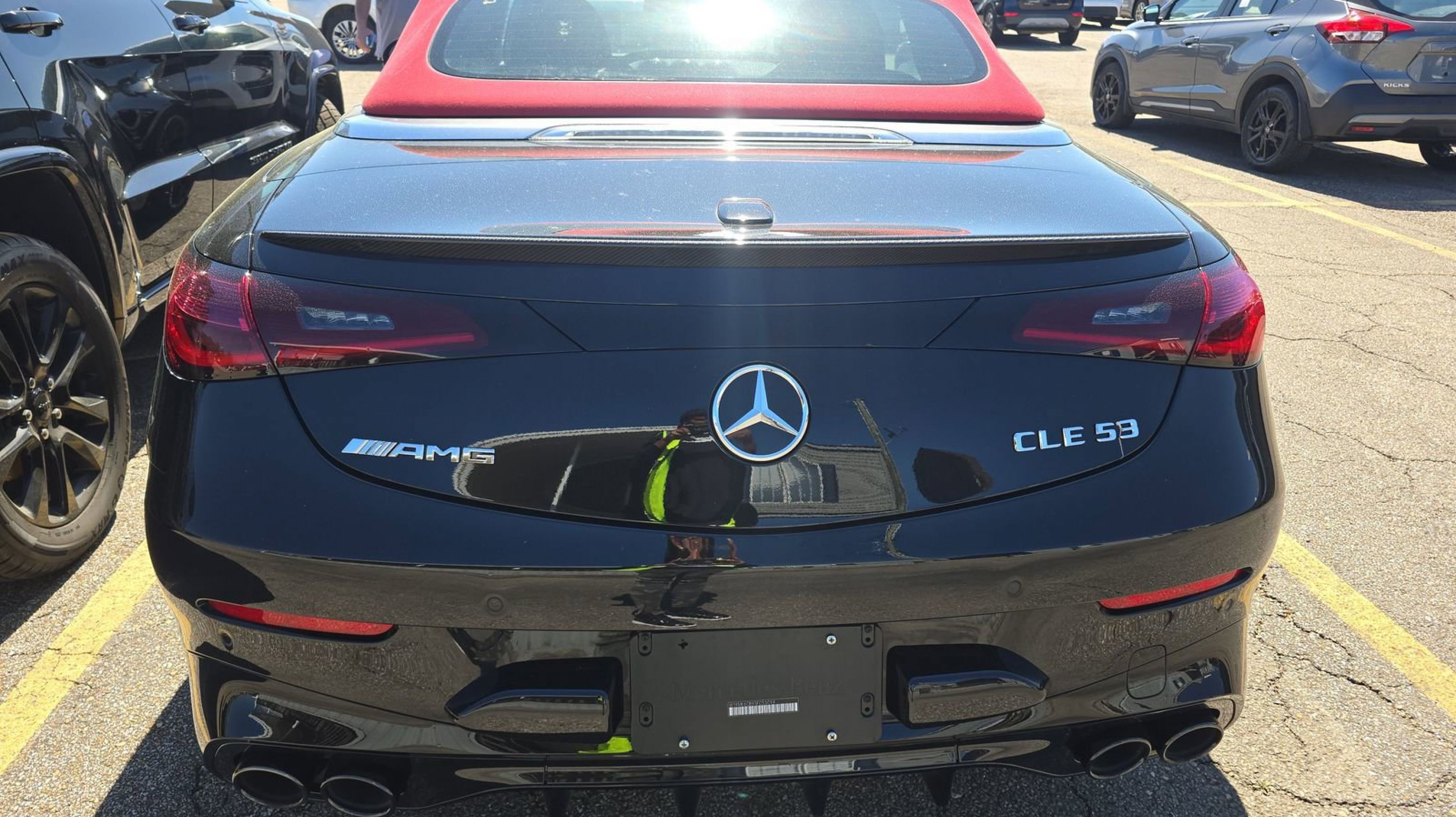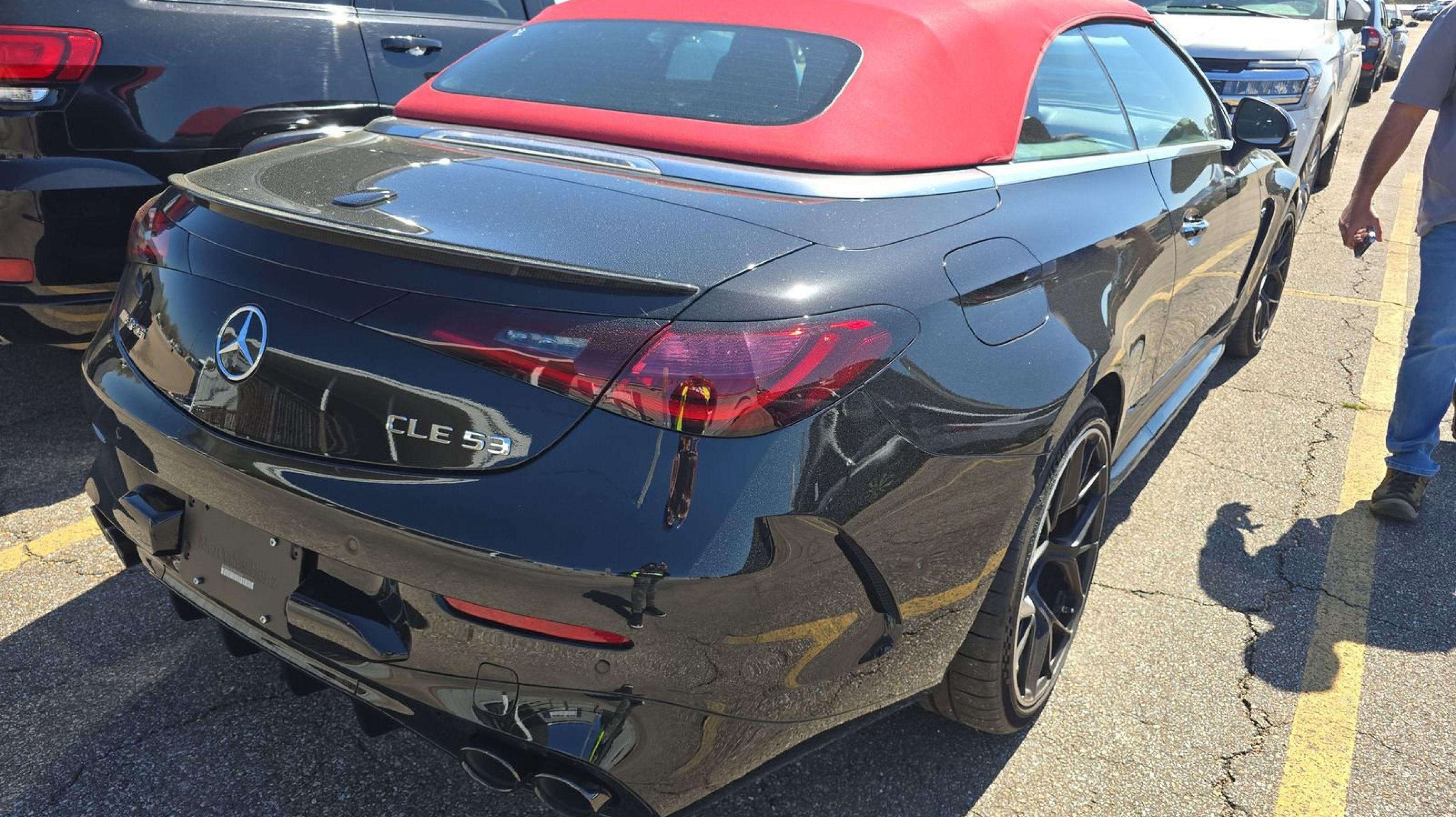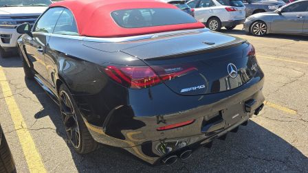 Obsidian Black Metallic 2025 Mercedes-Benz CLE CLE 53 AMG® 4MATIC® 4MATIC® 9-Speed Automatic 3.0L I6 Turbo 3.0L I6 Turbo, Active Lane Change Assist, Active Speed Limit Assist, AMG® Carbon Fiber Package II, AMG® DYNAMIC PLUS Package, AMG® Exterior Carbon Fiber Package II (B28), AMG® Night Package, BAS PLUS w/Cross-Traffic Assist, Carbon Fiber AMG® Spoiler Lip on Trunk Lid, DISTRONIC PLUS® w/Steering Assist & Stop & Go Assist, Driver Assistance Package, Driver Assistance Package Plus, Dynamic AMG® Engine Mounts, High-Gloss Black Elements, PRE-SAFE® Brake w/Pedestrian Recognition, PRE-SAFE® Impulse Side, PRE-SAFE® PLUS, Red-Painted Brake Calipers, Route-Based Speed Adaptation, 11.9 Center Touchscreen Display, 15 Speakers, 4-Wheel Disc Brakes, ABS brakes, Adaptive suspension, Air Conditioning, Alloy wheels, AM/FM Radio, AM/FM radio: SiriusXM w/360L, Apple CarPlay®/Android Auto®, Auto High-beam Headlights, Auto tilt-away steering wheel, Auto-dimming door mirrors, Auto-dimming Rear-View mirror, Automatic temperature control, Brake assist, Bumpers: body-color, Child-Seat-Sensing Airbag, Compass, Convertible roof lining, Convertible roof wind blocker, Delay-off headlights, Driver door bin, Driver vanity mirror, Dual front impact airbags, Dual front side impact airbags, Electronic Stability Control, Emergency communication system: Mercedes-Benz Emergency Call Service, Exterior Parking Camera Rear, Four wheel independent suspension, Front anti-roll bar, Front Bucket Seats, Front Center Armrest, Front dual zone A/C, Front reading lights, Fully automatic headlights, Garage door transmitter: HomeLink, Glass rear window, HD Radio, Head restraints memory, Heated door mirrors, Heated Front Seats, Heated front seats, Illuminated entry, Integrated roll-over protection, Knee airbag, Leather steering wheel, Low tire pressure warning, MB-Tex/Microfiber Upholstery w/Red Stitching, Memory seat, Navigation system: MBUX, Occupant sensing airbag, Outside temperature display, Overhead airbag, Overhead console, Panic alarm, Passenger door bin, Passenger vanity mirror, Piano Black Lacquer Center Console, Power adjustable front head restraints, Power convertible roof, Power door mirrors, Power driver seat, Power passenger seat, Power steering, Power windows, Radio data system, Rain sensing wipers, Rear anti-roll bar, Rear fog lights, Rear window defroster, Remote keyless entry, Security system, SiriusXM Satellite Radio, Speed control, Speed-sensing steering, Split folding rear seat, Spoiler, Sport steering wheel, Steering wheel memory, Steering wheel mounted audio controls, Tachometer, Telescoping steering wheel, Tilt steering wheel, Traction control, Trip computer, Turn signal indicator mirrors, Variably intermittent wipers, Wheels: 19 AMG® Multi-Spoke w/Black Accents, Wireless Android Auto®, Wireless Apple CarPlay®, 3.0L I6 Turbo, Active Lane Change Assist, Active Speed Limit Assist, AMG® Carbon Fiber Package II, AMG® DYNAMIC PLUS Package, AMG® Exterior Carbon Fiber Package II (B28), AMG® Night Package, BAS PLUS w/Cross-Traffic Assist, Carbon Fiber AMG® Spoiler Lip on Trunk Lid, DISTRONIC PLUS® w/Steering Assist & Stop & Go Assist, Driver Assistance Package, Driver Assistance Package Plus, Dynamic AMG® Engine Mounts, High-Gloss Black Elements, PRE-SAFE® Brake w/Pedestrian Recognition, PRE-SAFE® Impulse Side, PRE-SAFE® PLUS, Red-Painted Brake Calipers, Route-Based Speed Adaptation.