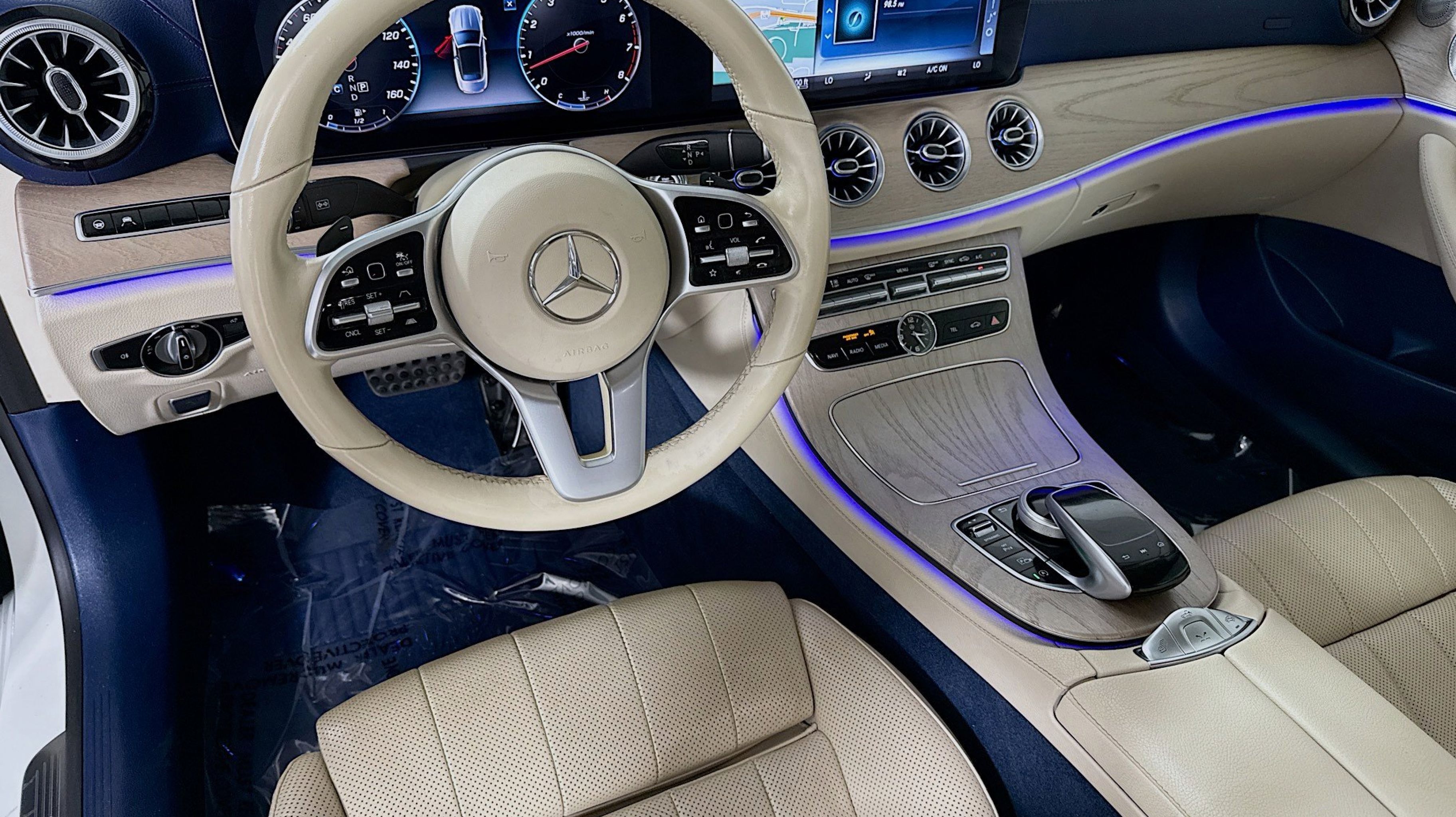Clean CARFAX. Active Lane Change Assist, Active Parking Assist, Active Steering Assist, Adaptive Highbeam Assist, AMG® Bodystyling, AMG® Line Exterior, AMG® Line Package, Burmester® Surround Sound System, DISTRONIC PLUS® w/PRESAFE Brake, Driver Assistance Package, Exterior Lighting Package, HANDS-FREE ACCESS, Heated Armrests, Heated Steering Wheel, Inductive Wireless Charging w/NFC Pairing, KEYLESS GO®, LED Intelligent Light System, Parking Assistance Package, Premium 1 Package, Rapid Heating Functionality for Front Seats, Route Based Speed Adaptation, SiriusXM Satellite Radio, Speed Limit Assist, Speed Limit Assist (546), Surround View Camera System, Warmth & Comfort Package, 12.3 Digital Instrument Cluster, 19 AMG® Twin 5-Spoke Wheels, 4-Way Lumbar Support, 4-Wheel Disc Brakes, 8 Speakers, ABS brakes, Air Conditioning, Alloy wheels, AM/FM radio, AMG® Floor Mats, Android Auto®, Anti-whiplash front head restraints, Apple CarPlay®, Apple CarPlay®/Android Auto®, Auto tilt-away steering wheel, Auto-dimming door mirrors, Auto-dimming Rear-View mirror, Automatic temperature control, Black Headliner, Black SoftTop, Brake assist, Bumpers: body-color, Center Console in Light Brown Sen Wood, Center Console in Natural Grain Light Elm Wood, Convertible roof lining, Convertible roof wind blocker, Delay-off headlights, Driver door bin, Driver vanity mirror, Dual front impact airbags, Dual front side impact airbags, DVD-Audio, Electronic Stability Control, Emergency communication system: mbrace2, Extended Mobility Tires, Exterior Parking Camera Rear, Four wheel independent suspension, Front anti-roll bar, Front Bucket Seats, Front Center Armrest, Front dual zone A/C, Front reading lights, Fully automatic headlights, Garage door transmitter: Homelink, Genuine wood console insert, Genuine wood dashboard insert, Genuine wood door panel insert, Glass rear window, HD Radio w/SIRIUS Satellite & Real-Time Traffic, Head restraints memory, Heated and Active Ventilated Front Seats, Heated door mirrors, Heated front seats, Illuminated Door Sills w/Mercedes-Benz Lettering, Illuminated entry, Integrated roll-over protection, Knee airbag, Leather Shift Knob, Leather Upholstery, Low tire pressure warning, Macchiato Beige Headliner, Memory seat, Navigation system: COMAND®, Occupant sensing airbag, Outside temperature display, Overhead airbag, Overhead console, Panic alarm, Passenger door bin, Passenger vanity mirror, Power adjustable front head restraints, Power convertible roof, Power door mirrors, Power driver seat, Power Front Seats w/Memory & Lumbar Support, Power passenger seat, Power Passenger Seat w/Memory, Power steering, Power windows, Premium audio system: COMAND®, Radio data system, Radio: COMAND® Navigation, Rain sensing wipers, Rear anti-roll bar, Rear Chrome Trim, Rear side impact airbag, Rear window defroster, Remote keyless entry, Security system, Smartphone Integration, Speed control, Speed-sensing steering, Split folding rear seat, Steering wheel memory, Steering wheel mounted audio controls, Tachometer, Telescoping steering wheel, Tilt steering wheel, Traction control, Trip computer, Turn signal indicator mirrors, Variably intermittent wipers, Weather band radio, Wheel Locks, Wheels: 18 Twin 5-Spoke, Active Lane Change Assist, Active Parking Assist, Active Steering Assist, Adaptive Highbeam Assist, AMG® Bodystyling, AMG® Line Exterior, AMG® Line Package, Burmester® Surround Sound System, DISTRONIC PLUS® w/PRES