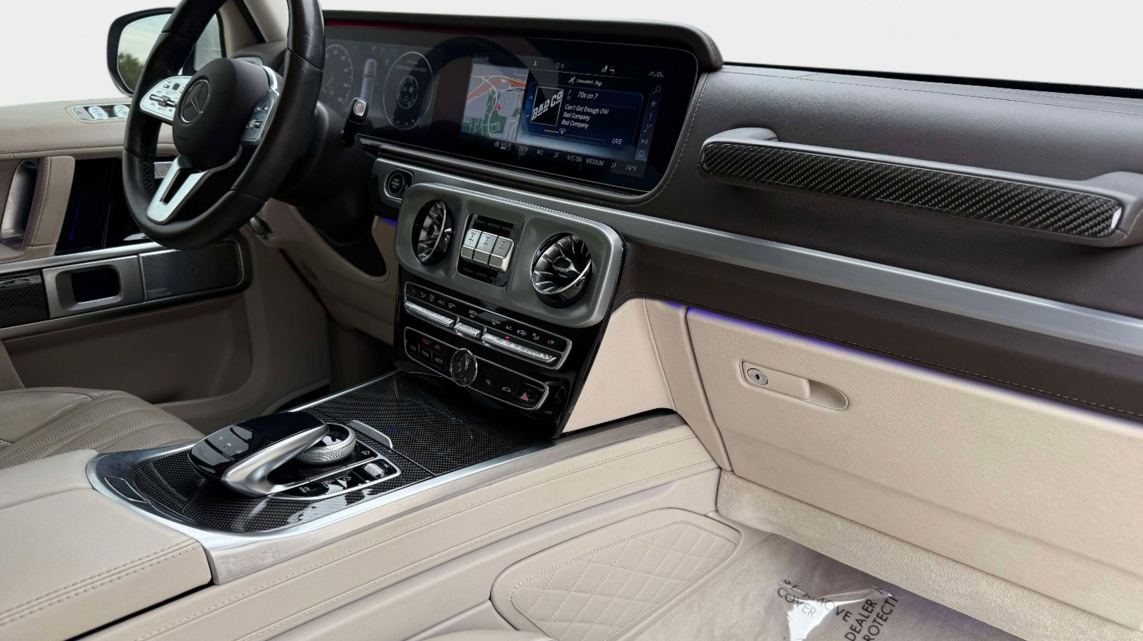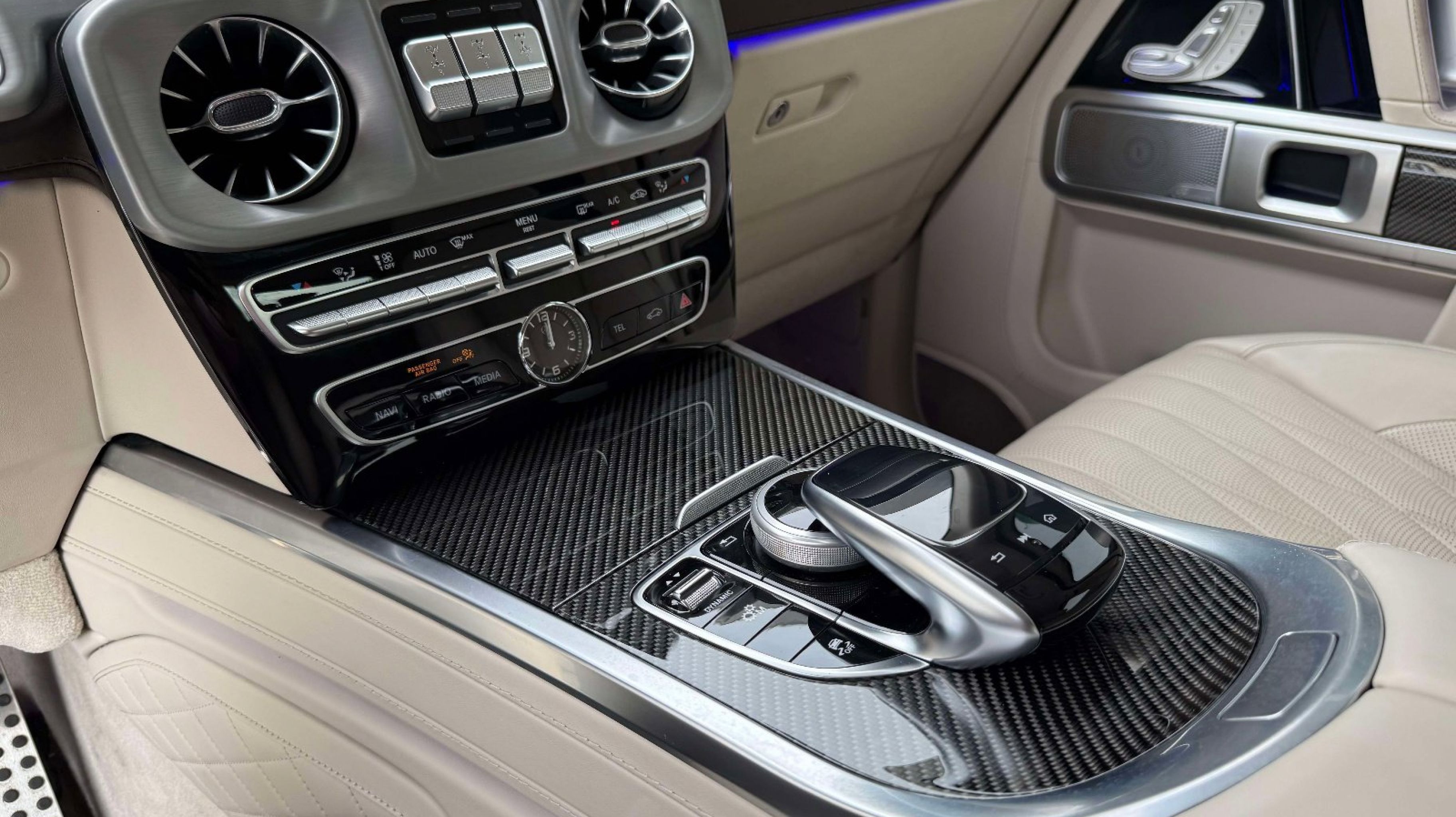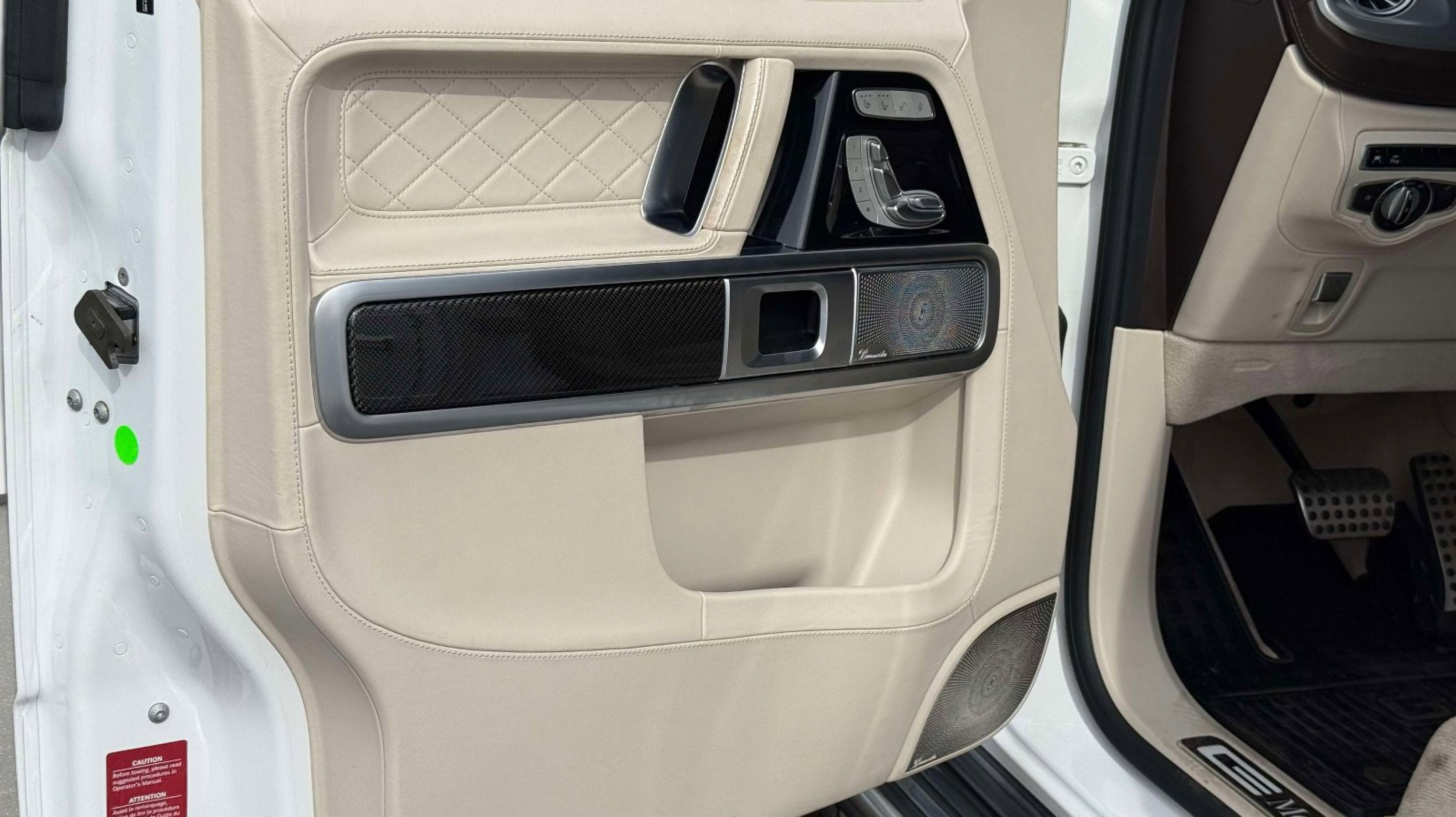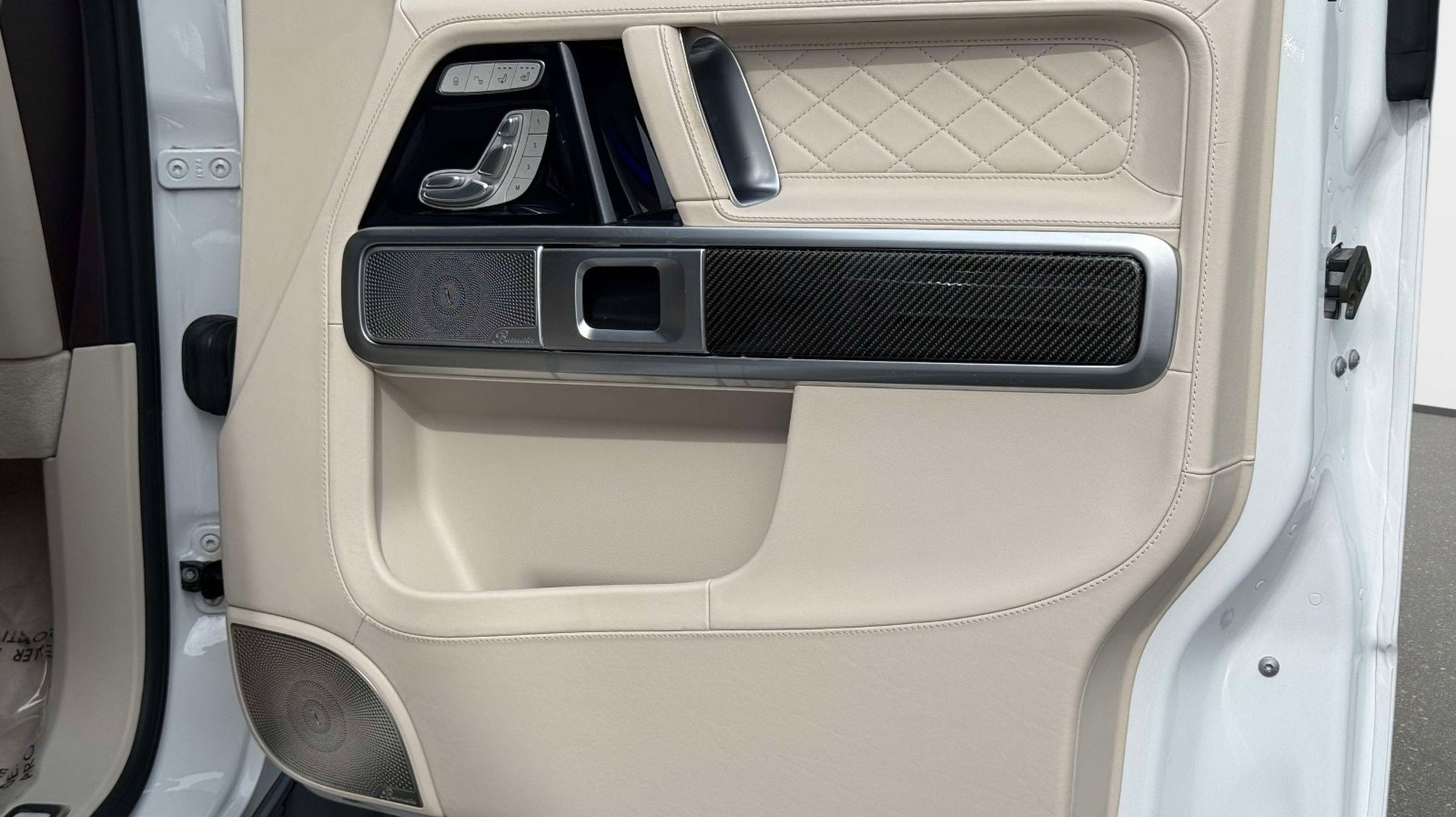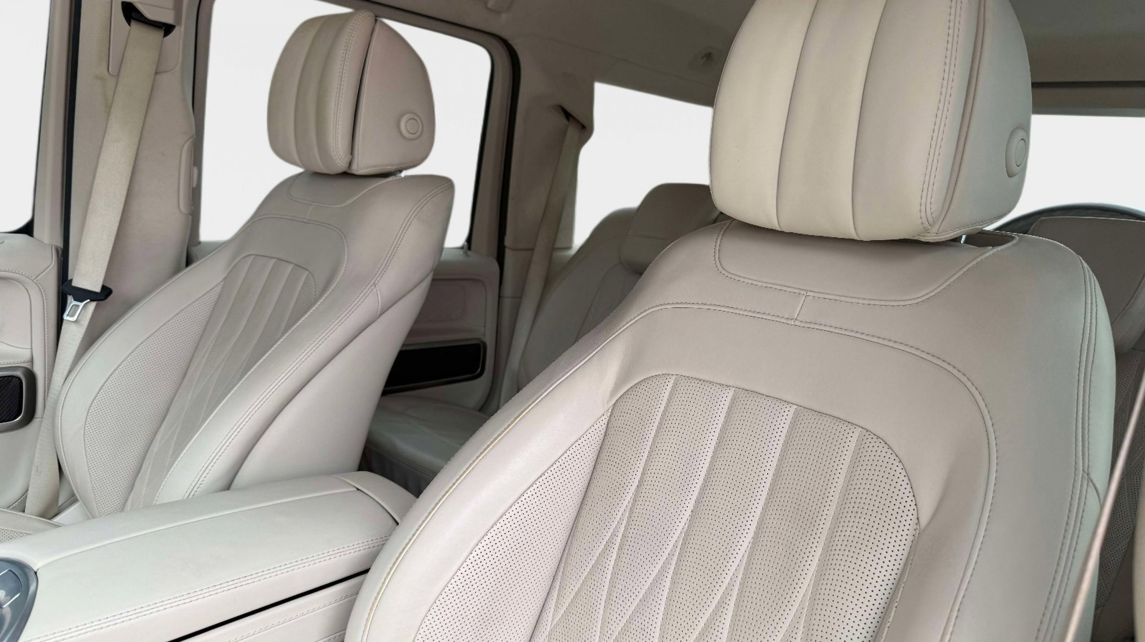 Inside, the cabin showcases handcrafted leather, premium materials, and advanced technology, including Burmester audio, ambient lighting, and intuitive infotainment controls. Finished in MANUFAKTUR Moonlight White Metallic over a Macchiato Beige and Espresso Brown interior, this G 550 offers a sophisticated and highly desirable specification that reflects Mercedes-Benz luxury at its finest.
