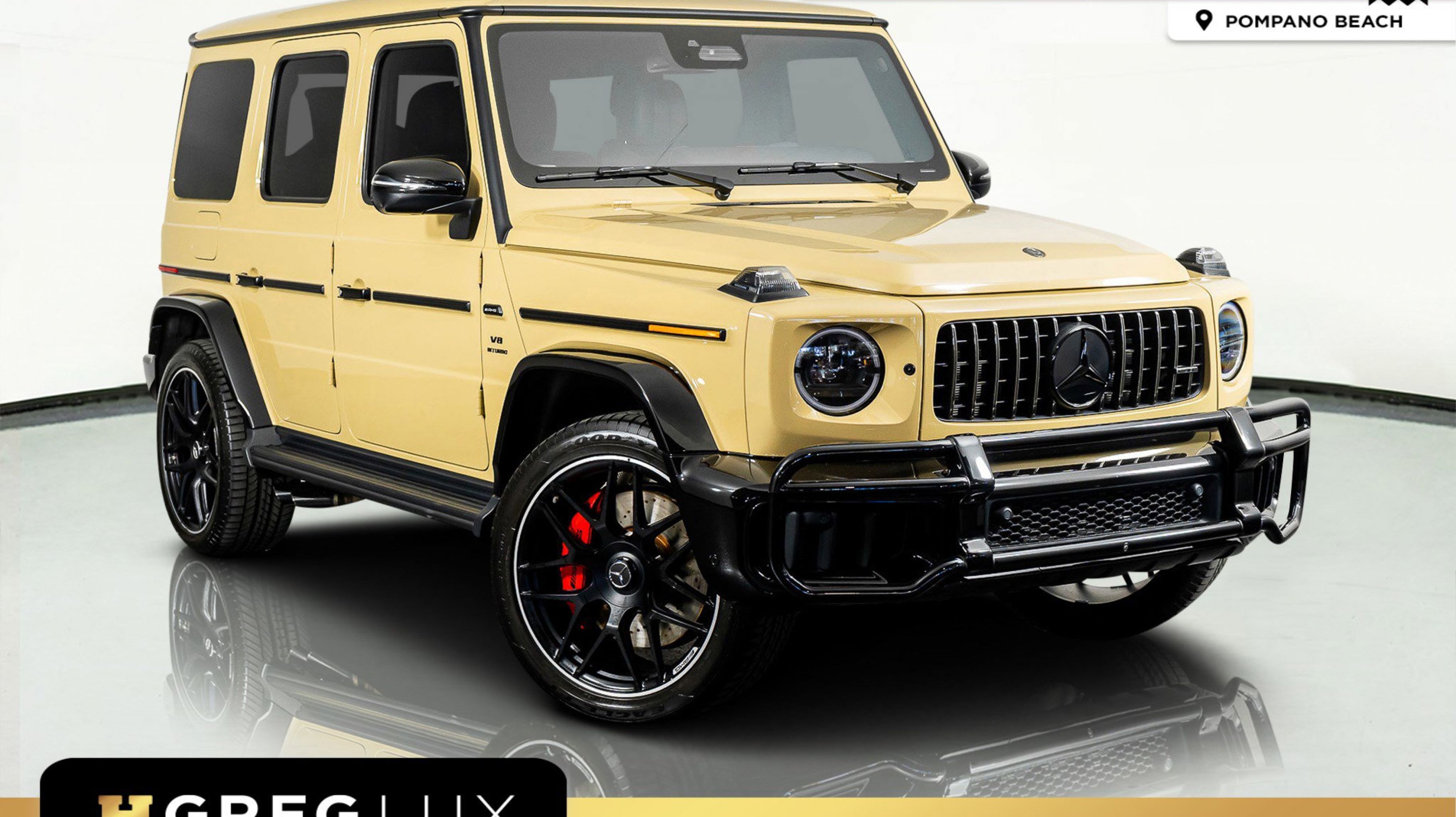 At HGREG LUX Pompano Beach, we proudly offer machines like the Mercedes-Benz AMG G 63 with iconic boxy design, hand-built V8 performance, and uncompromising luxury. Finished in rare MANUFAKTUR Desert Sand over a refined black interior, this G-Wagon delivers commanding presence with modern AMG engineering. Visit our five locations in Pompano Beach, Miami, West Palm Beach, Orlando, and Doral.
