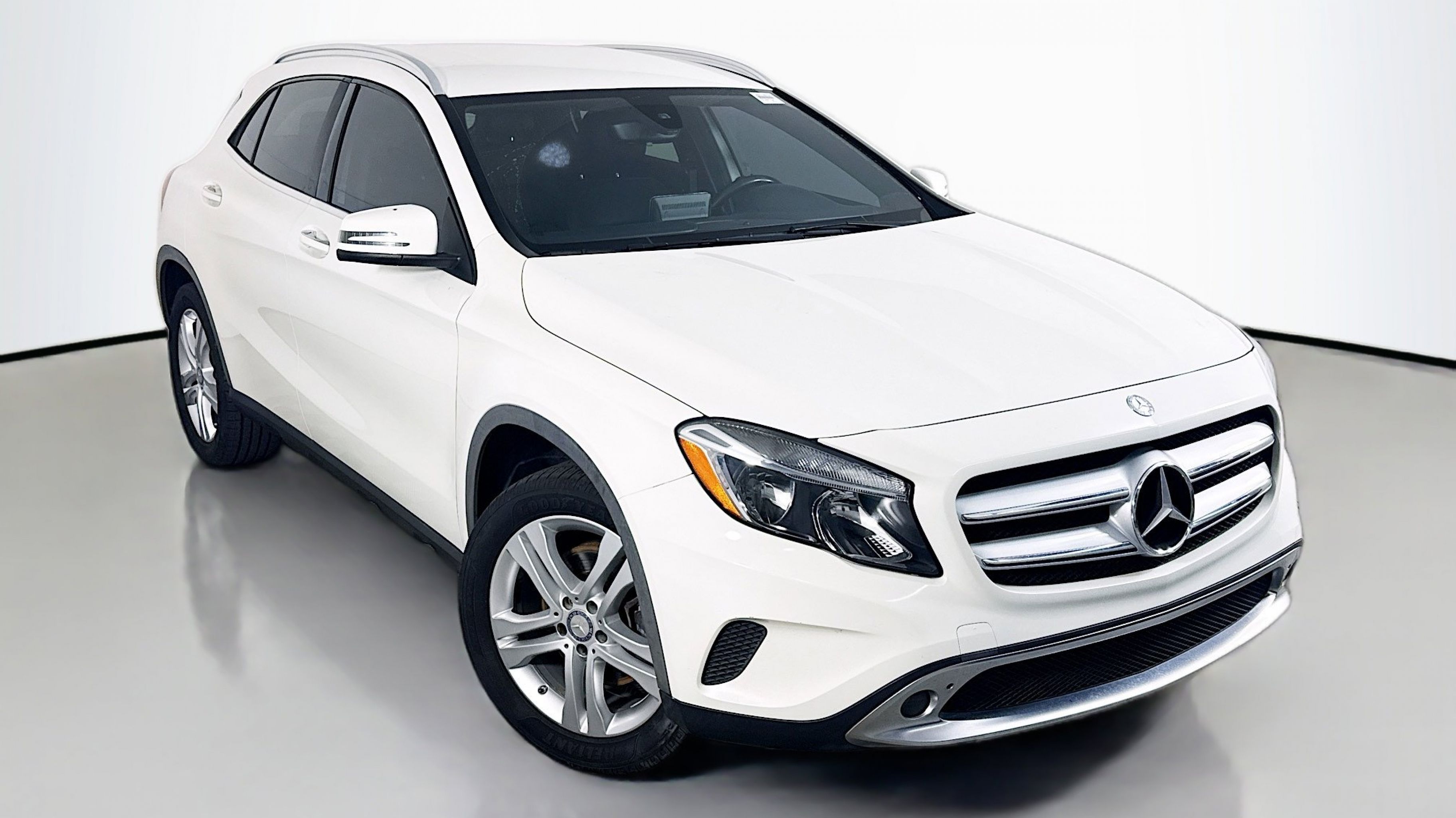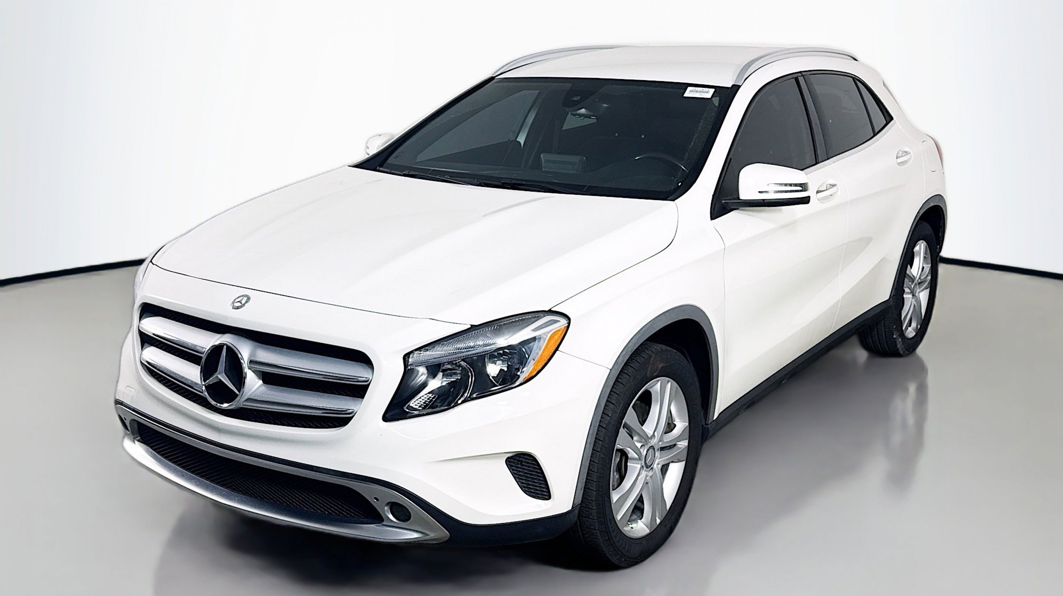 Cirrus White 2016 Mercedes-Benz GLA GLA 250 FWD 7-Speed Automatic 2.0L I4 DI Turbocharged 18 Twin 5-Spoke Alloy Wheels, 4-Wheel Disc Brakes, 4.60 Axle Ratio, 8 Speakers, ABS brakes, Air Conditioning, Alloy wheels, AM/FM radio, Automatic temperature control, Brake assist, Bumpers: body-color, CD player, Child-Seat-Sensing Airbag, Delay-off headlights, Driver door bin, Driver vanity mirror, Dual front impact airbags, Dual front side impact airbags, Electronic Stability Control, Emergency communication system, Four wheel independent suspension, Front anti-roll bar, Front Bucket Seats, Front Center Armrest, Front dual zone A/C, Front fog lights, Front Power Seats, Front reading lights, Fully automatic headlights, Heated door mirrors, Illuminated entry, Knee airbag, Low tire pressure warning, MB-Tex Upholstery, Memory seat, Occupant sensing airbag, Outside temperature display, Overhead airbag, Overhead console, Panic alarm, Passenger door bin, Passenger vanity mirror, Power door mirrors, Power driver seat, Power Liftgate, Power steering, Power windows, Premium audio system: COMAND®, Radio data system, Radio: Audio 20 CD w/Garmin Navigation Pre-Wiring, Rain sensing wipers, Rear anti-roll bar, Rear fog lights, Rear reading lights, Rear seat center armrest, Rear window defroster, Remote keyless entry, Roof rack: rails only, Security system, Speed control, Speed-sensing steering, Split folding rear seat, Spoiler, Steering wheel mounted audio controls, Tachometer, Telescoping steering wheel, Tilt steering wheel, Traction control, Trip computer, Turn signal indicator mirrors, Variably intermittent wipers, Weather band radio.