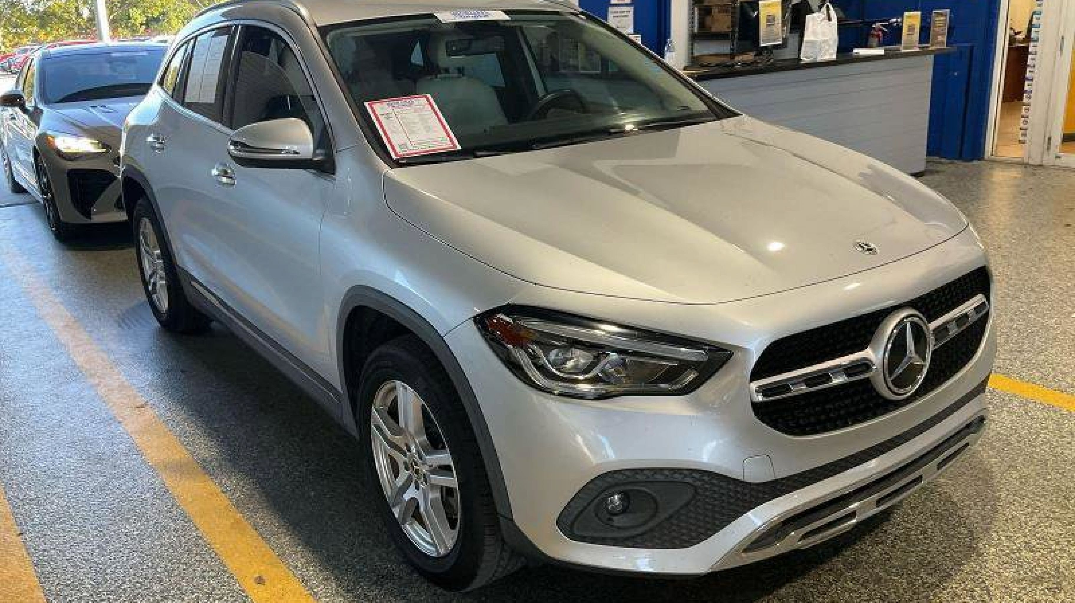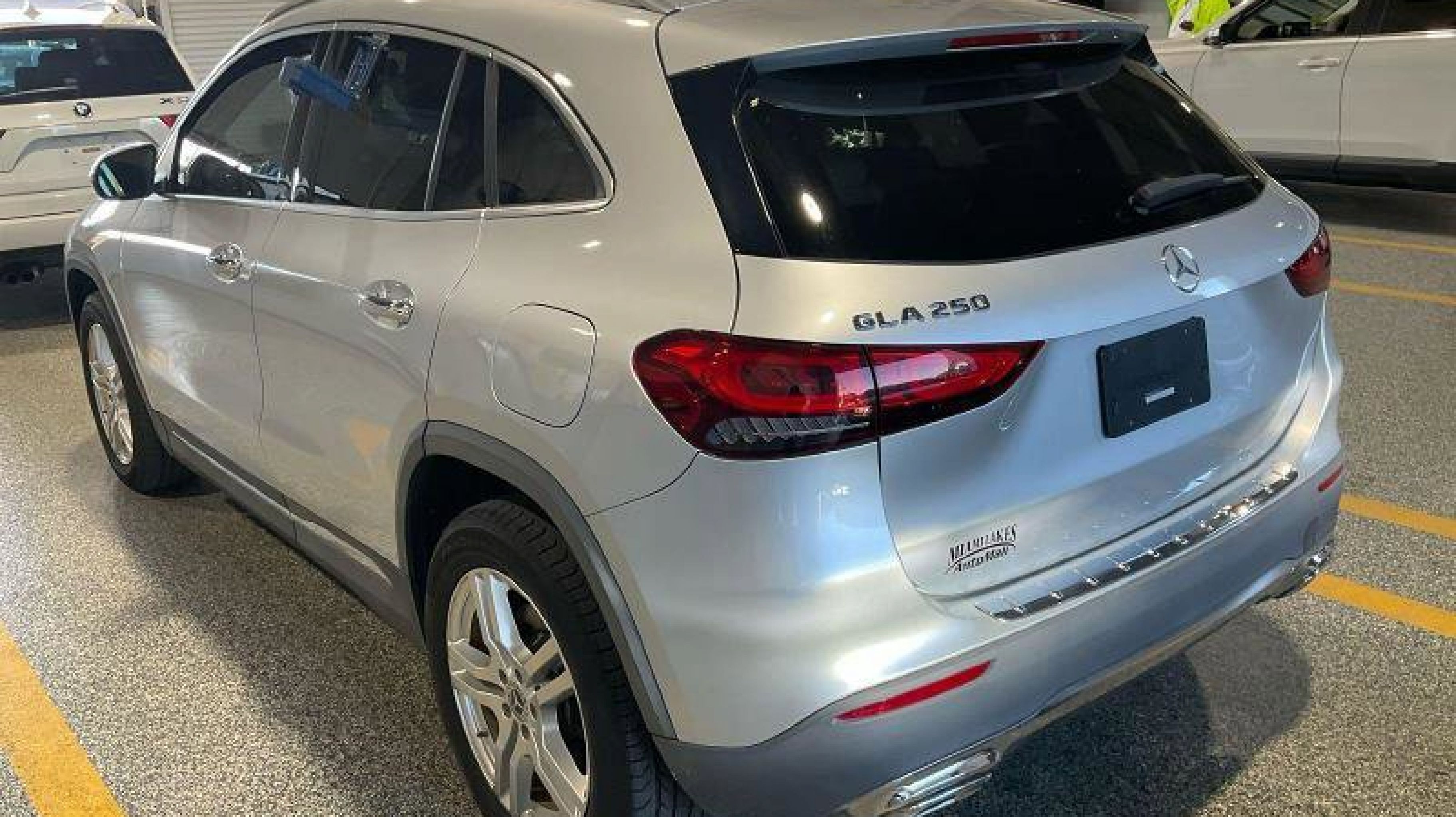 Iridium Silver Metallic 2021 Mercedes-Benz GLA GLA 250 FWD 8 Speed Dual Clutch 2.0L I4 Turbocharged 4-Wheel Disc Brakes, 6 Speakers, ABS brakes, Air Conditioning, Alloy wheels, AM/FM radio, Apple CarPlay®/Android Auto®, Automatic temperature control, Axle Ratio: TBD, Brake assist, Bumpers: body-color, Child-Seat-Sensing Airbag, Delay-off headlights, Driver door bin, Driver vanity mirror, Dual front impact airbags, Dual front side impact airbags, Electronic Stability Control, Emergency communication system: eCall Emergency System and Active Emergency Stop Assist, Exterior Parking Camera Rear, Four wheel independent suspension, Front anti-roll bar, Front Bucket Seats, Front Center Armrest, Front dual zone A/C, Front fog lights, Front Power Seats, Front reading lights, Fully automatic headlights, Heated door mirrors, Illuminated entry, Knee airbag, Low tire pressure warning, MB-Tex Upholstery, Memory seat, Occupant sensing airbag, Outside temperature display, Overhead airbag, Overhead console, Panic alarm, Passenger door bin, Passenger vanity mirror, Power door mirrors, Power driver seat, Power Liftgate, Power passenger seat, Power steering, Power windows, Radio data system, Radio: MBUX Multimedia System, Rain sensing wipers, Rear anti-roll bar, Rear fog lights, Rear reading lights, Rear window defroster, Rear window wiper, Remote keyless entry, Roof rack: rails only, Security system, Speed control, Speed-sensing steering, Split folding rear seat, Spoiler, Steering wheel mounted audio controls, Tachometer, Telescoping steering wheel, Tilt steering wheel, Traction control, Trip computer, Turn signal indicator mirrors, Variably intermittent wipers, Wheels: 18 Twin 5-Spoke.