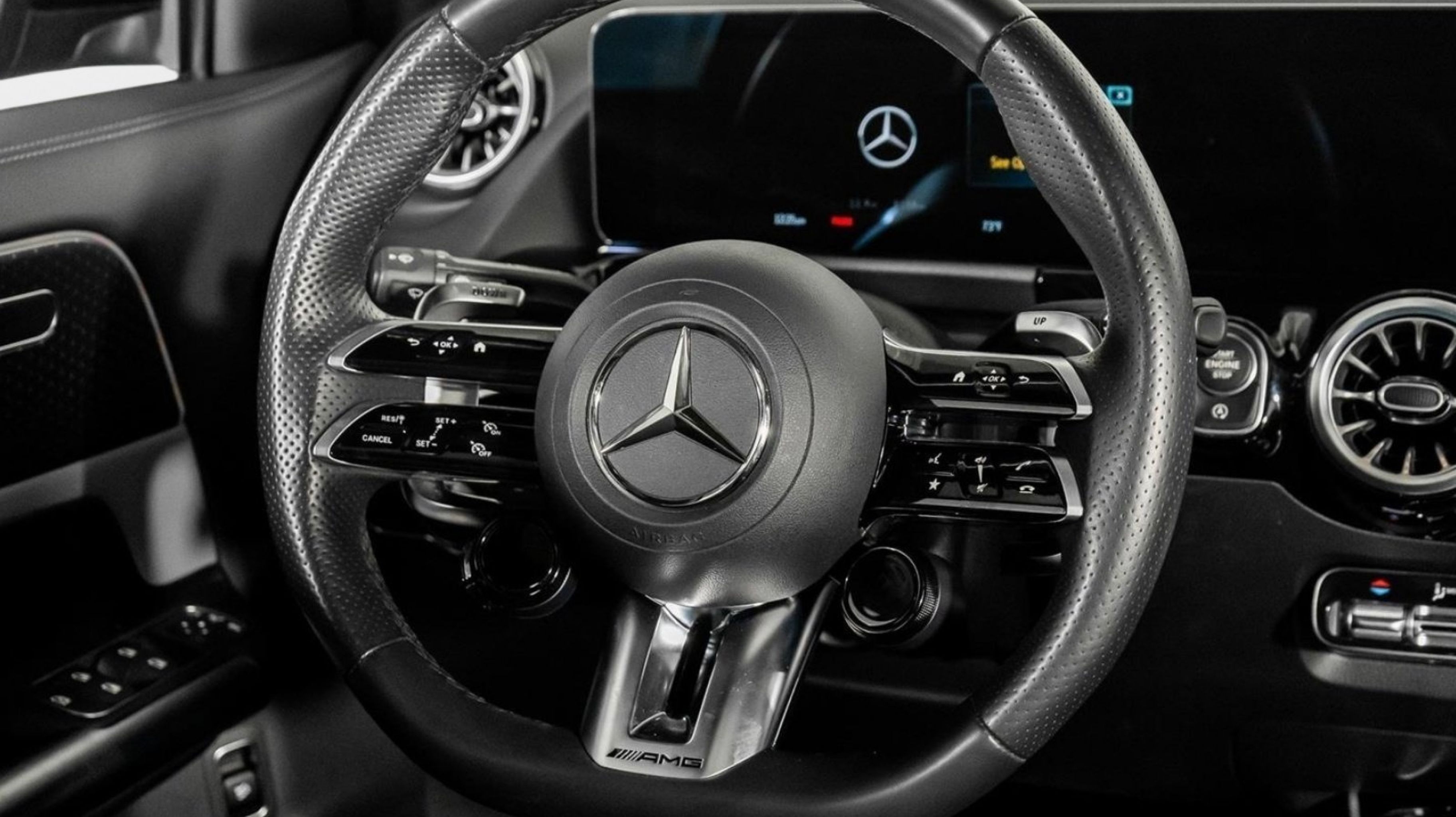 CARFAX One-Owner. Clean CARFAX. 2.0L I4 Turbocharged, Active LED Headlamps, AMG® Illuminated Door Sills, AMG® Night Package, Augmented Video for Navigation, Exclusive Package, Front Splitter & Trim in High-Gloss Black, MB Navigation, Traffic Sign Assist, 19 AMG® Twin 5-Spoke Wheels, 4-Wheel Disc Brakes, 6 Speakers, ABS brakes, Adaptive suspension, Air Conditioning, Alloy wheels, AM/FM radio: SiriusXM, Apple CarPlay®/Android Auto®, Auto High-beam Headlights, Auto-dimming Rear-View mirror, Automatic temperature control, Brake assist, Bumpers: body-color, Child-Seat-Sensing Airbag, Delay-off headlights, Driver door bin, Driver vanity mirror, Dual front impact airbags, Dual front side impact airbags, Electronic Stability Control, Emergency communication system: eCall Emergency System and Active Emergency Stop Assist, Extended Mobility Tires, Exterior Parking Camera Rear, Four wheel independent suspension, Front anti-roll bar, Front Bucket Seats, Front Center Armrest, Front dual zone A/C, Front reading lights, Fully automatic headlights, Garage door transmitter, Heated door mirrors, Heated front seats, Heated Front Sport Seats, Illuminated entry, Knee airbag, Leather steering wheel, Low tire pressure warning, MB-Tex/Microfiber Upholstery, Memory seat, Occupant sensing airbag, Outside temperature display, Overhead airbag, Overhead console, Panic alarm, Passenger door bin, Passenger vanity mirror, Power door mirrors, Power driver seat, Power Liftgate, Power moonroof, Power passenger seat, Power steering, Power windows, Premium audio system: MBUX, Radio data system, Radio: MBUX Multimedia System, Rain sensing wipers, Rear anti-roll bar, Rear fog lights, Rear reading lights, Rear window defroster, Rear window wiper, Remote keyless entry, Security system, Speed control, Speed-sensing steering, Split folding rear seat, Spoiler, Sport steering wheel, Steering wheel mounted audio controls, Tachometer, TBD Axle Ratio, Telescoping steering wheel, Tilt steering wheel, Traction control, Trip computer, Turn signal indicator mirrors, Variably intermittent wipers, 2.0L I4 Turbocharged, Active LED Headlamps, AMG® Illuminated Door Sills, AMG® Night Package, Augmented Video for Navigation, Exclusive Package, Front Splitter & Trim in High-Gloss Black, MB Navigation, Traffic Sign Assist. Odometer is 2563 miles below market average!