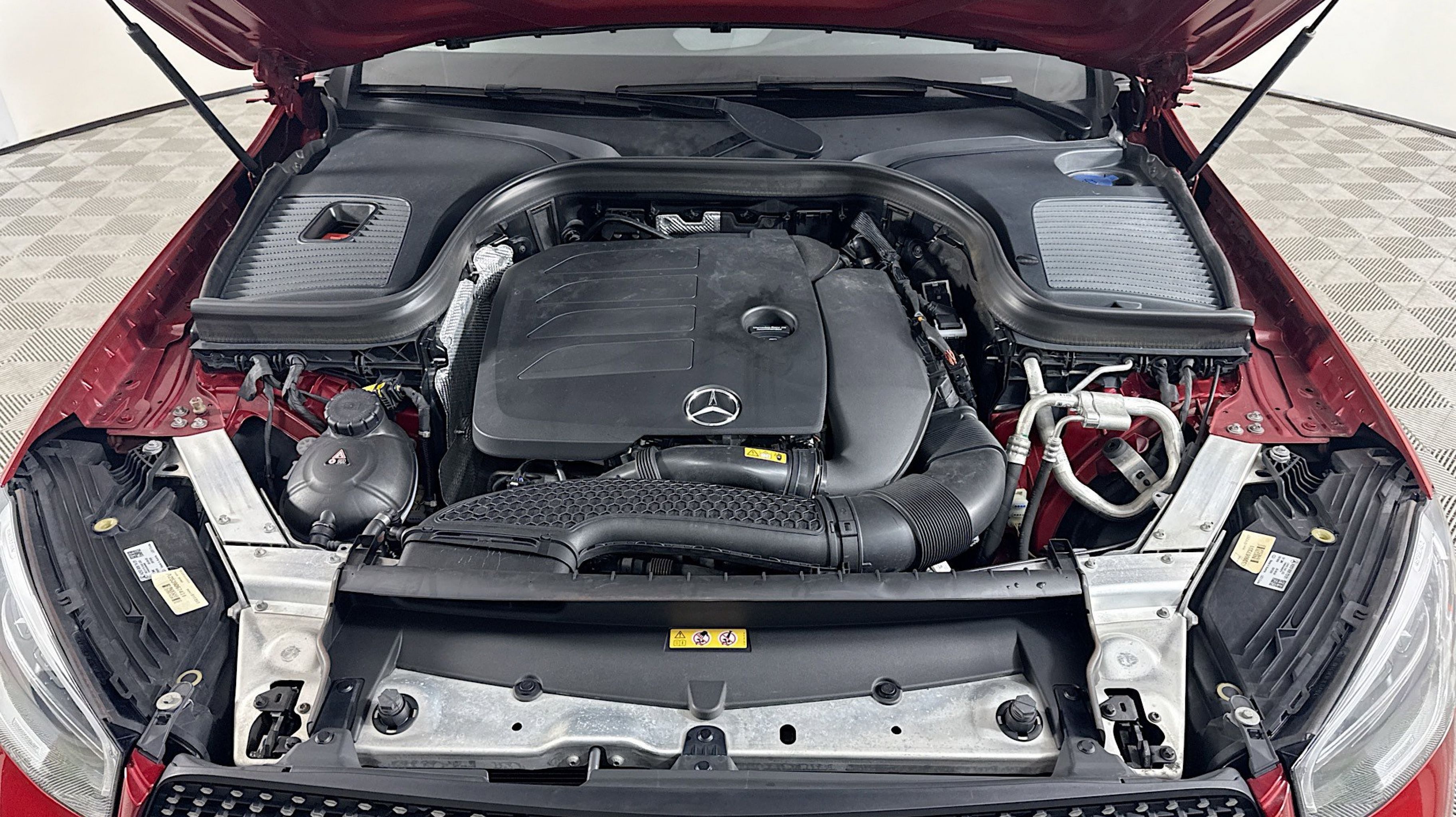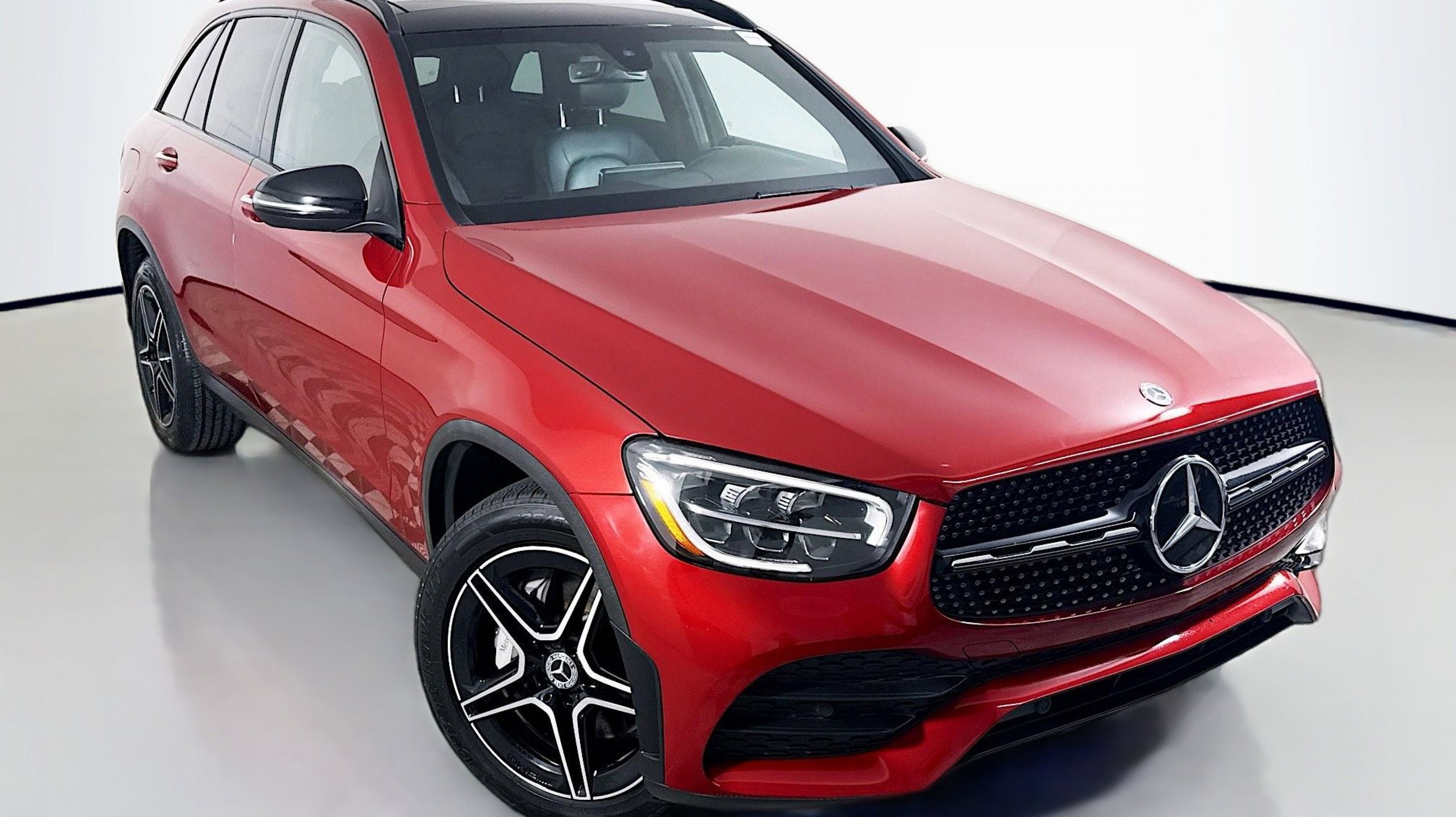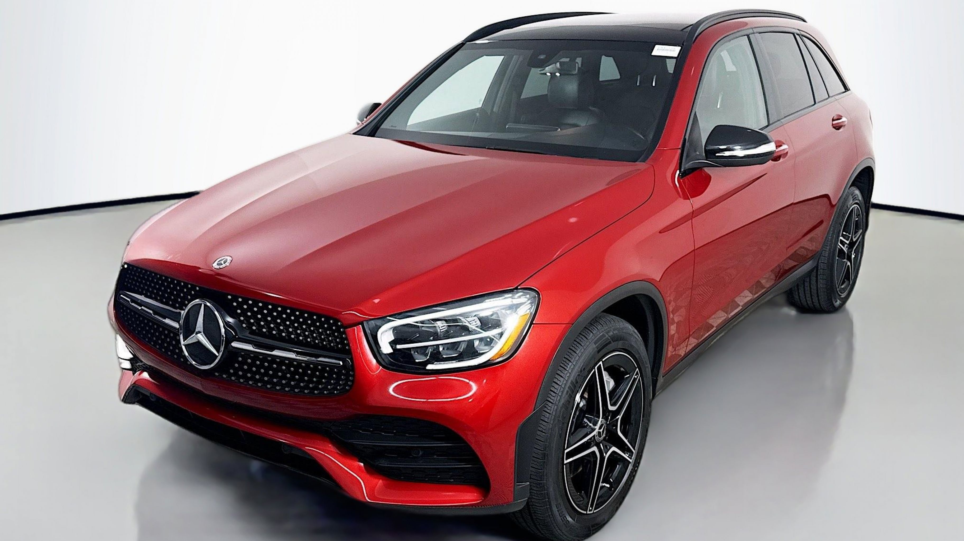 designo Cardinal Red Metallic 2020 Mercedes-Benz GLC GLC 300 4MATIC® 4MATIC® 9-Speed Automatic I4 10.25 Center Touchscreen Display, 3.27 Axle Ratio, 4-Way Lumbar Support, 4-Wheel Disc Brakes, 6 Speakers, ABS brakes, Air Conditioning, Alloy wheels, AM/FM radio, Android Auto®, Apple CarPlay®, Apple CarPlay®/Android Auto®, Auto tilt-away steering wheel, Auto-dimming door mirrors, Auto-dimming Rear-View mirror, Automatic temperature control, Brake assist, Bumpers: body-color, Child-Seat-Sensing Airbag, Delay-off headlights, Driver door bin, Driver vanity mirror, Dual front impact airbags, Dual front side impact airbags, Electrically Adjustable Passenger Seat, Electronic Stability Control, Emergency communication system: eCall Emergency System, Exterior Parking Camera Rear, Four wheel independent suspension, Front anti-roll bar, Front Bucket Seats, Front Center Armrest, Front dual zone A/C, Front reading lights, Fully automatic headlights, Garage door transmitter: Homelink, Genuine wood dashboard insert, Heated door mirrors, Heated Front Bucket Seats, Heated front seats, Illuminated entry, Knee airbag, Leather steering wheel, Low tire pressure warning, MB-Tex Upholstery, MBUX Voice Control, Memory seat, Occupant sensing airbag, Outside temperature display, Overhead airbag, Overhead console, Panic alarm, Passenger door bin, Passenger vanity mirror, Power door mirrors, Power driver seat, Power Liftgate, Power passenger seat, Power steering, Power windows, Radio data system, Radio: MBUX Multimedia System, Rain sensing wipers, Rear anti-roll bar, Rear fog lights, Rear reading lights, Rear seat center armrest, Rear window defroster, Rear window wiper, Remote keyless entry, Roof rack: rails only, Security system, Smartphone Integration, Speed control, Speed-sensing steering, Split folding rear seat, Spoiler, Steering wheel memory, Steering wheel mounted audio controls, Tachometer, Telescoping steering wheel, Tilt steering wheel, Traction control, Trip computer, Turn signal indicator mirrors, Variably intermittent wipers, Weather band radio, Wheels: 18 Split 5-Spoke.