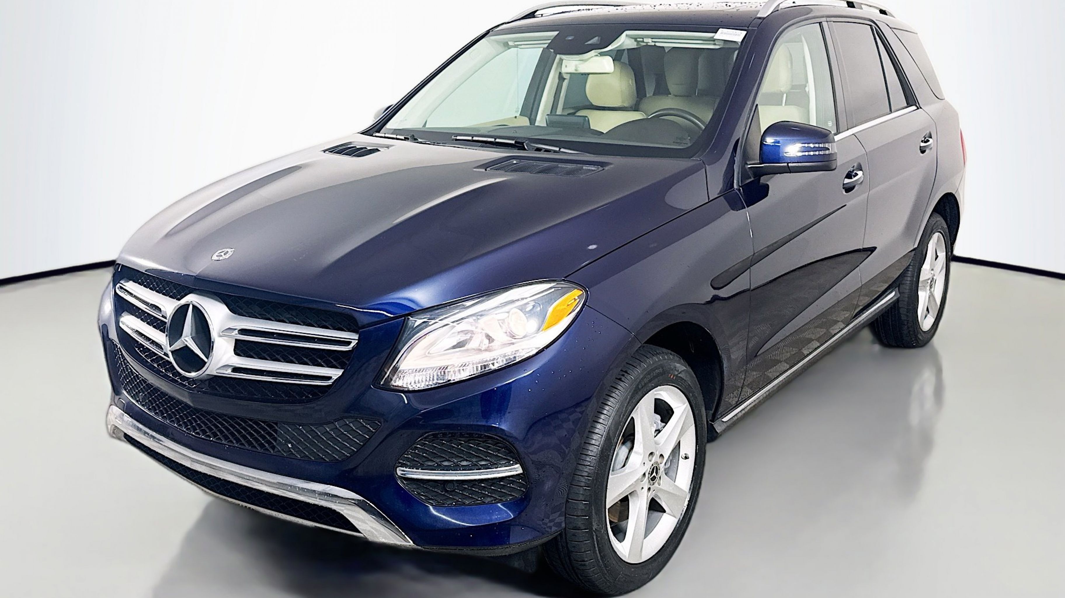 Lunar Blue Metallic 2018 Mercedes-Benz GLE GLE 350 RWD 7G-TRONIC 7-Speed Automatic 3.5L V6 DOHC 24V 19 5-Spoke Wheels, 4-Way Lumbar Support, 4-Wheel Disc Brakes, 8 Speakers, ABS brakes, Air Conditioning, Alloy wheels, AM/FM radio, Anti-whiplash front head restraints, Auto tilt-away steering wheel, Auto-dimming door mirrors, Auto-dimming Rear-View mirror, Automatic temperature control, Axle Ratio: 3.47, Brake assist, Bumpers: body-color, CD player, Compass, Delay-off headlights, Driver door bin, Driver vanity mirror, Dual front impact airbags, Dual front side impact airbags, DVD-Audio, eCall Emergency System, Electronic Stability Control, Emergency communication system: eCall Emergency System, Eucalyptus Wood Trim, Exterior Parking Camera Rear, Four wheel independent suspension, Front anti-roll bar, Front Bucket Seats, Front Center Armrest, Front dual zone A/C, Front reading lights, Fully automatic headlights, Garage door transmitter: Homelink, Genuine wood dashboard insert, Heated door mirrors, Heated Front Bucket Seats, Heated front seats, Illuminated entry, Knee airbag, Leather steering wheel, Low tire pressure warning, MB-Tex Leatherette Seat Trim, Memory seat, Occupant sensing airbag, Outside temperature display, Overhead airbag, Panic alarm, PANORAMA SUNROOF, Passenger door bin, Passenger vanity mirror, Power adjustable front head restraints, Power door mirrors, Power driver seat, Power Front Seats w/Driver Memory, Power Liftgate, Power passenger seat, Power steering, Power windows, Radio data system, Radio: Audio 20 AM/FM w/Single CD, Rain sensing wipers, Rear anti-roll bar, Rear fog lights, Rear reading lights, Rear seat center armrest, Rear window defroster, Rear window wiper, Remote keyless entry, Roof rack: rails only, Security system, Speed control, Speed-Sensitive Wipers, Split folding rear seat, Spoiler, Steering wheel memory, Steering wheel mounted audio controls, Tachometer, Telescoping steering wheel, Tilt steering wheel, Traction control, Trip computer, Turn signal indicator mirrors, Weather band radio.