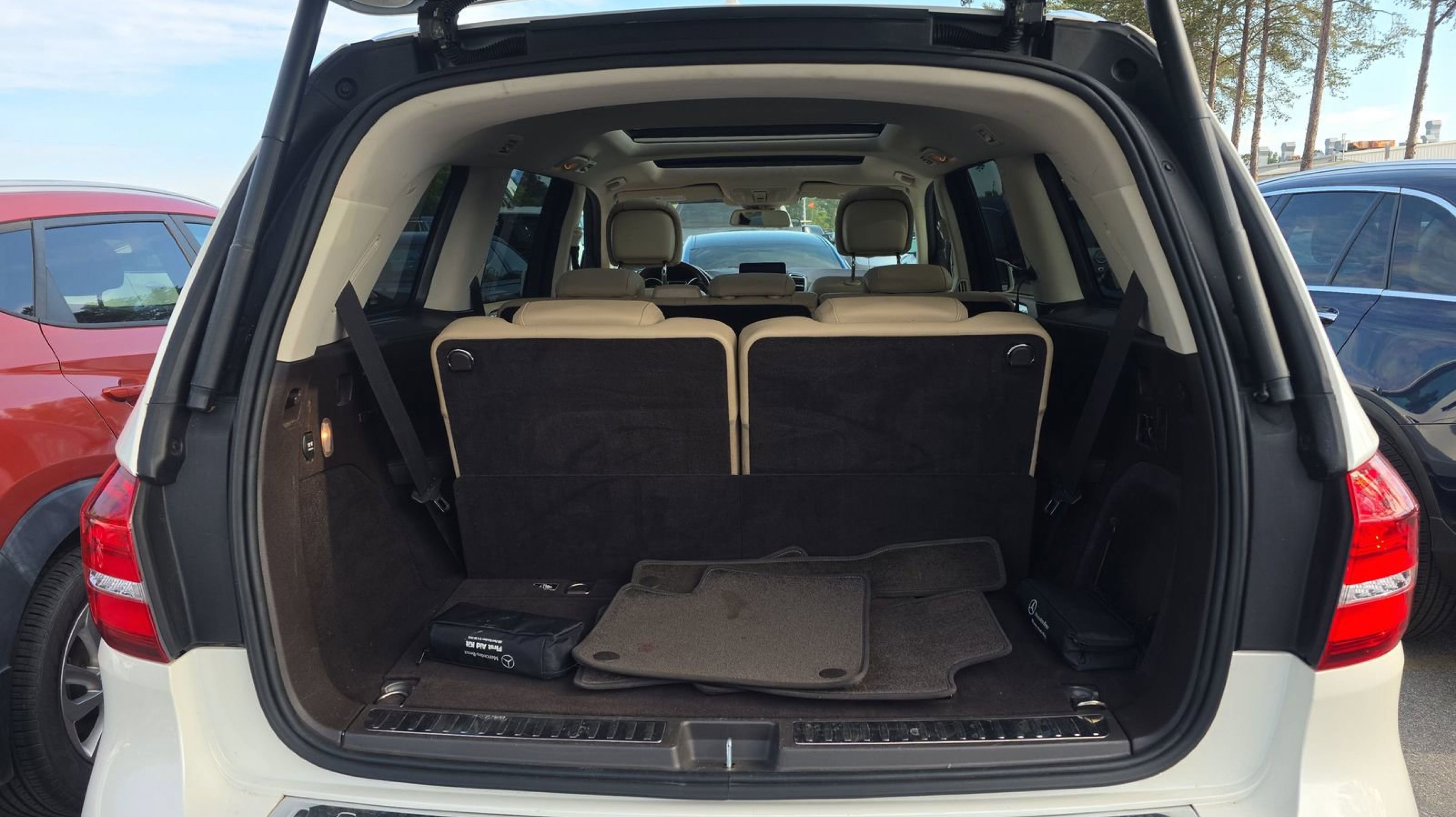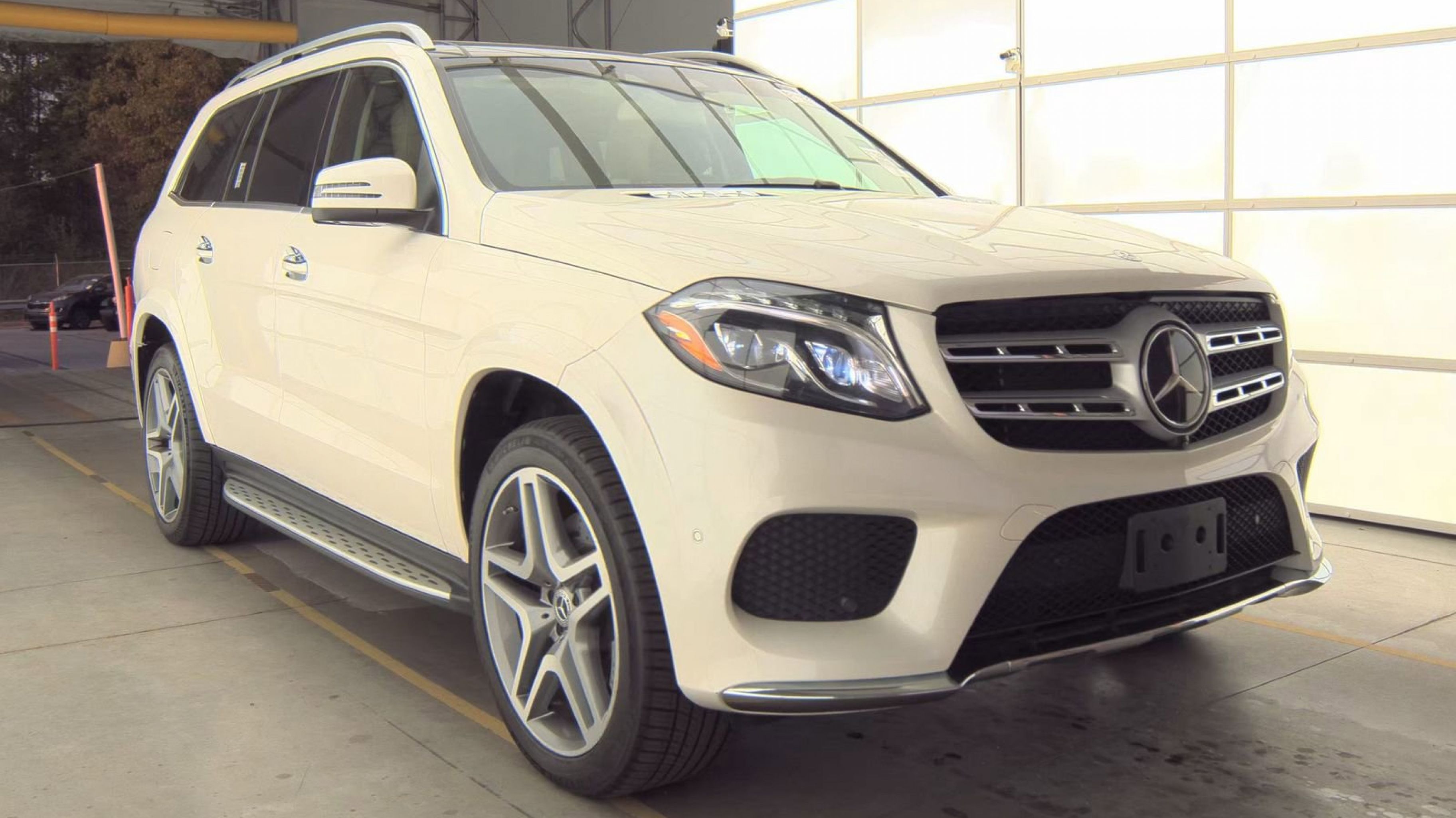 designo Diamond White Metallic 2018 Mercedes-Benz GLS GLS 550 4MATIC® 4MATIC® 9-Speed Automatic 4.7L V8 BiTurbo Accessory Chrome Package, Active Blind Spot Assist, Active Lane Keeping Assist, BAS PLUS w/Cross-Traffic Assist, Chrome Door Handle Inserts, DISTRONIC PLUS® w/Steering Assist, Driver Assistance Package, Hood Fin Covers, PRESAFE® PLUS, Speed Limit Assist, 14 Speakers, 3.27 Axle Ratio, 3rd row seats: split-bench, 4-Way Driver Lumbar Support, 4-Wheel Disc Brakes, 8-Way Power Front Seats, 8 Color Display Upgrade, ABS brakes, Air Conditioning, Alloy wheels, AM/FM radio: SiriusXM, AM/FM/CD Radio, Anti-whiplash front head restraints, Apple CarPlay®/Android Auto®, Auto High-beam Headlights, Auto tilt-away steering wheel, Auto-dimming door mirrors, Auto-dimming Rear-View mirror, Auto-leveling suspension, Automatic temperature control, Bodyside moldings, Brake assist, Bumpers: body-color, Burl Walnut Wood Trim, CD player, Child-Seat-Sensing Airbag, Compass, Delay-off headlights, Door auto-latch, Driver door bin, Driver vanity mirror, Dual front impact airbags, Dual front side impact airbags, DVD-Audio, Electronic Stability Control, Emergency communication system: mbrace2, Exterior Parking Camera Rear, Four wheel independent suspension, Front anti-roll bar, Front Bucket Seats, Front Center Armrest w/Storage, Front dual zone A/C, Front reading lights, Fully automatic headlights, Garage door transmitter: Homelink, Genuine wood console insert, Genuine wood dashboard insert, Genuine wood door panel insert, harman/kardon® Speakers, Heated door mirrors, Heated Front Seats, Heated front seats, Illuminated entry, Illuminated running boards, Knee airbag, Leather steering wheel, Leather Upholstery, Low tire pressure warning, Memory seat, Navigation system: COMAND®, Occupant sensing airbag, Outside temperature display, Overhead airbag, Overhead console, Panic alarm, PANORAMA SUNROOF, Passenger door bin, Passenger vanity mirror, Power adjustable front head restraints, Power door mirrors, Power driver seat, Power Front Seats w/Driver Memory, Power Liftgate, Power passenger seat, Power steering, Power windows, Premium audio system: COMAND®, Rain sensing wipers, Rear air conditioning, Rear anti-roll bar, Rear fog lights, Rear reading lights, Rear seat center armrest, Rear window defroster, Rear window wiper, Remote keyless entry, Roof rack: rails only, Security system, Single CD Player, Speed control, Speed-sensing steering, Speed-Sensitive Wipers, Split folding rear seat, Spoiler, Steering wheel memory, Steering wheel mounted audio controls, Tachometer, Telescoping steering wheel, Tilt steering wheel, Traction control, Trip computer, Turn signal indicator mirrors, Variably intermittent wipers, Ventilated front seats, Weather band radio, Wheels: 21 5-Spoke Light Alloy, Accessory Chrome Package, Active Blind Spot Assist, Active Lane Keeping Assist, BAS PLUS w/Cross-Traffic Assist, Chrome Door Handle Inserts, DISTRONIC PLUS® w/Steering Assist, Driver Assistance Package, Hood Fin Covers, PRESAFE® PLUS, Speed Limit Assist.