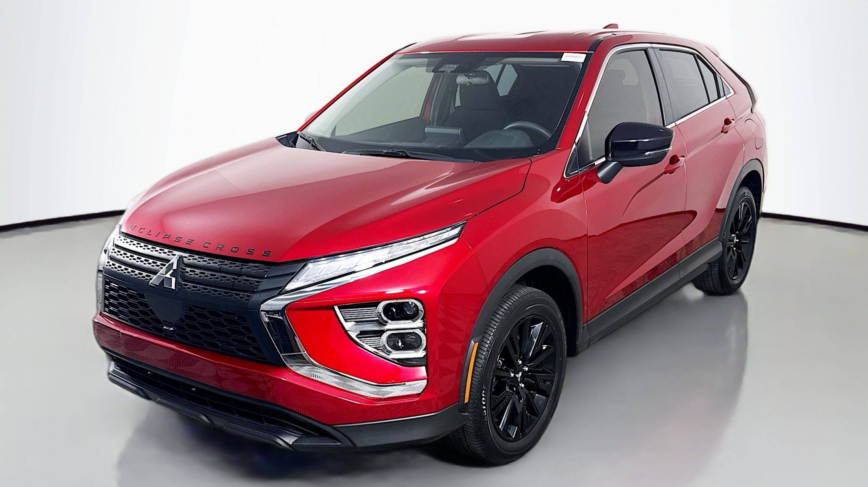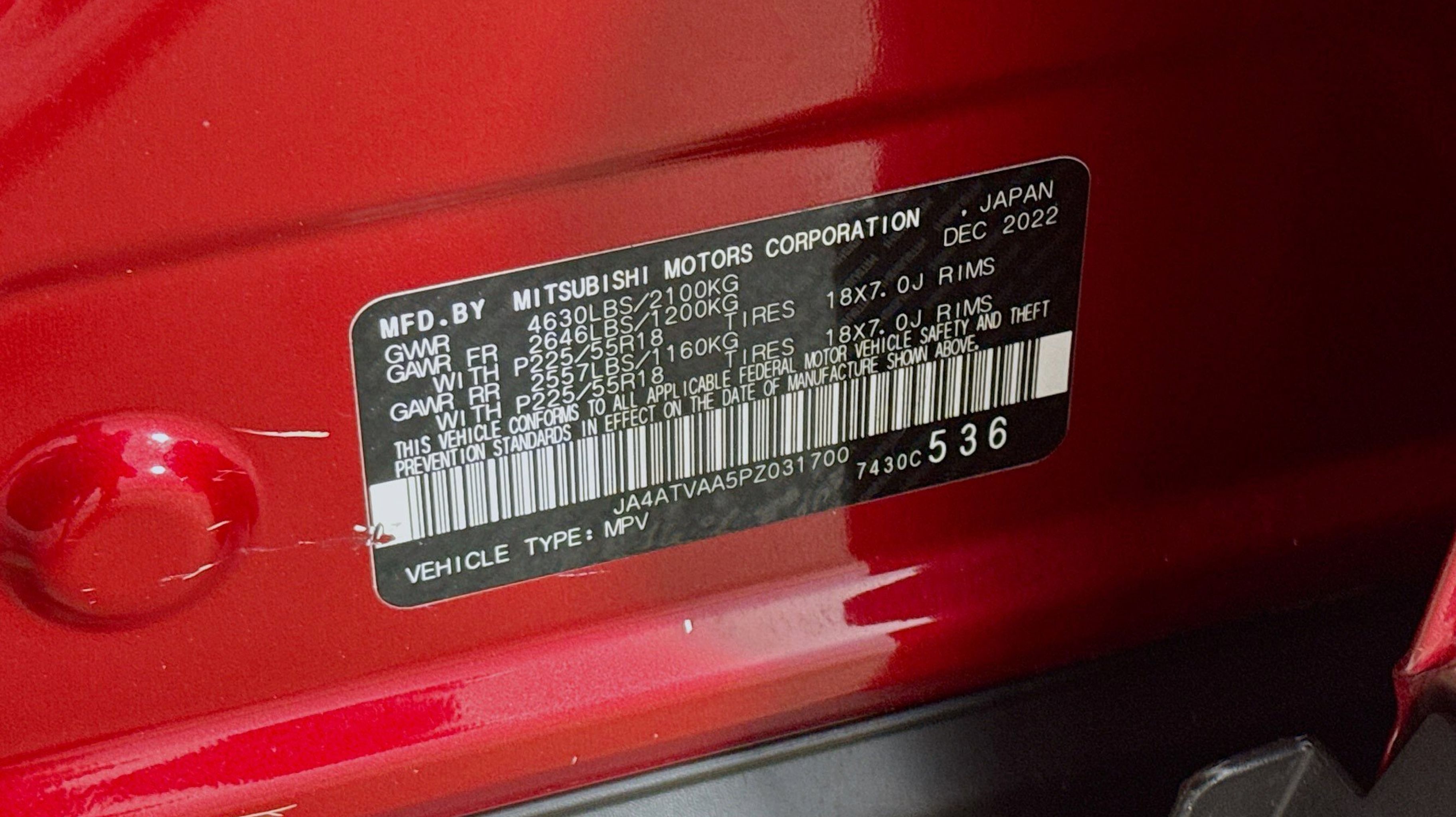 Red Diamond 2023 Mitsubishi Eclipse Cross LE 4WD CVT 1.5L I4 DI Turbocharged DOHC 16V LEV3-ULEV70 152hp 4 Speakers, 4-Wheel Disc Brakes, 6.39 Axle Ratio, ABS brakes, Air Conditioning, Alloy wheels, AM/FM radio: SiriusXM, Android Auto & Apple CarPlay, Auto High-beam Headlights, Automatic temperature control, Brake assist, Bumpers: body-color, Cloth Fabric Seating Surfaces, Driver door bin, Driver vanity mirror, Dual front impact airbags, Dual front side impact airbags, Electronic Stability Control, Exterior Parking Camera Rear, Four wheel independent suspension, Front anti-roll bar, Front Bucket Seats, Front Center Armrest, Front fog lights, Front reading lights, Heated door mirrors, Heated Front Bucket Seats, Heated front seats, Illuminated entry, Knee airbag, Low tire pressure warning, Occupant sensing airbag, Outside temperature display, Overhead airbag, Overhead console, Panic alarm, Passenger door bin, Passenger vanity mirror, Power door mirrors, Power steering, Power windows, Radio data system, Radio: AM/FM 8.0 Smartphone-Link Display Audio, Rear anti-roll bar, Rear seat center armrest, Rear window defroster, Rear window wiper, Remote keyless entry, Security system, Speed control, Speed-sensing steering, Split folding rear seat, Spoiler, Steering wheel mounted audio controls, Tachometer, Telescoping steering wheel, Tilt steering wheel, Traction control, Trip computer, Turn signal indicator mirrors, Variably intermittent wipers, Wheels: 18 Black Painted Alloy.