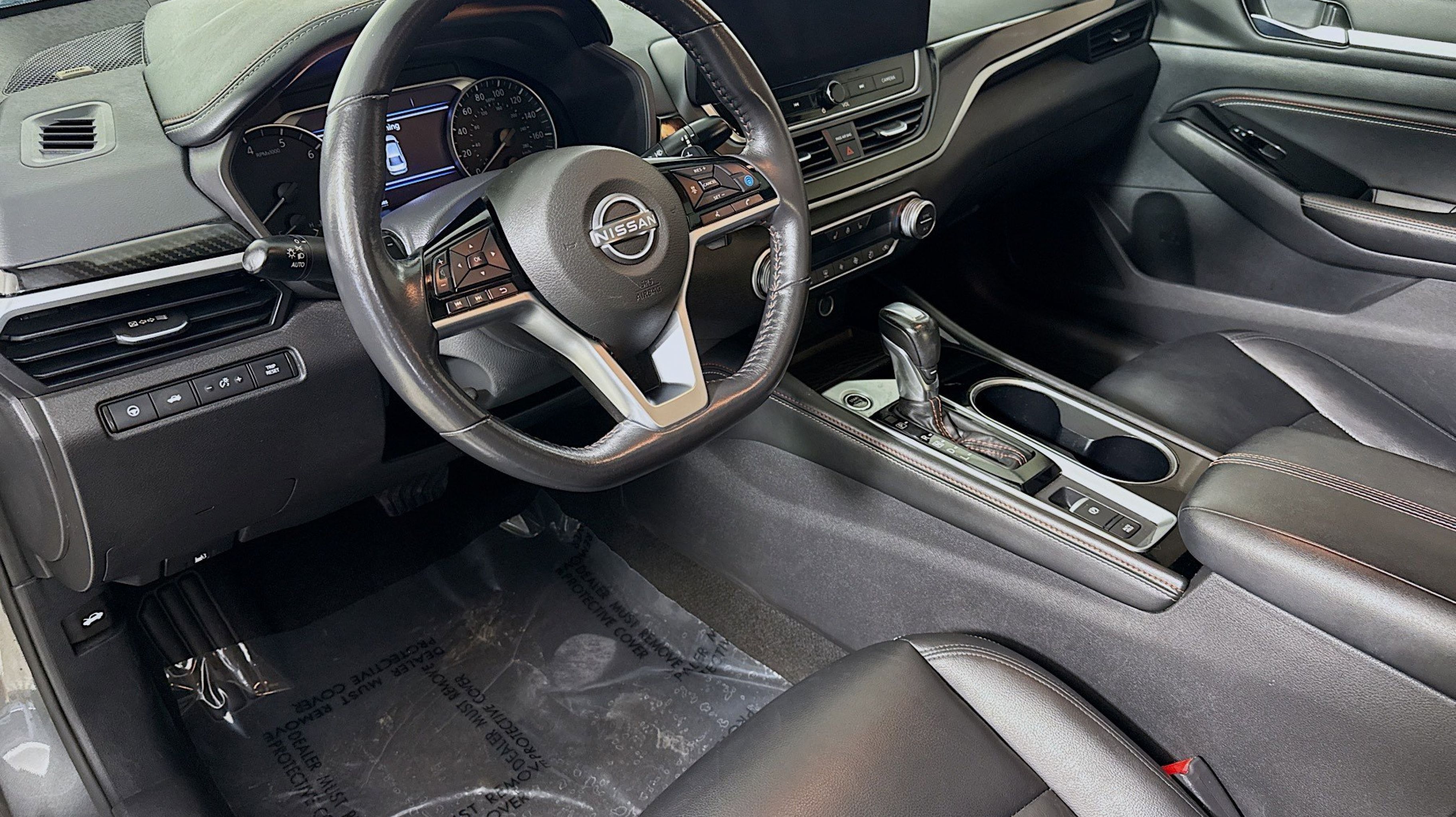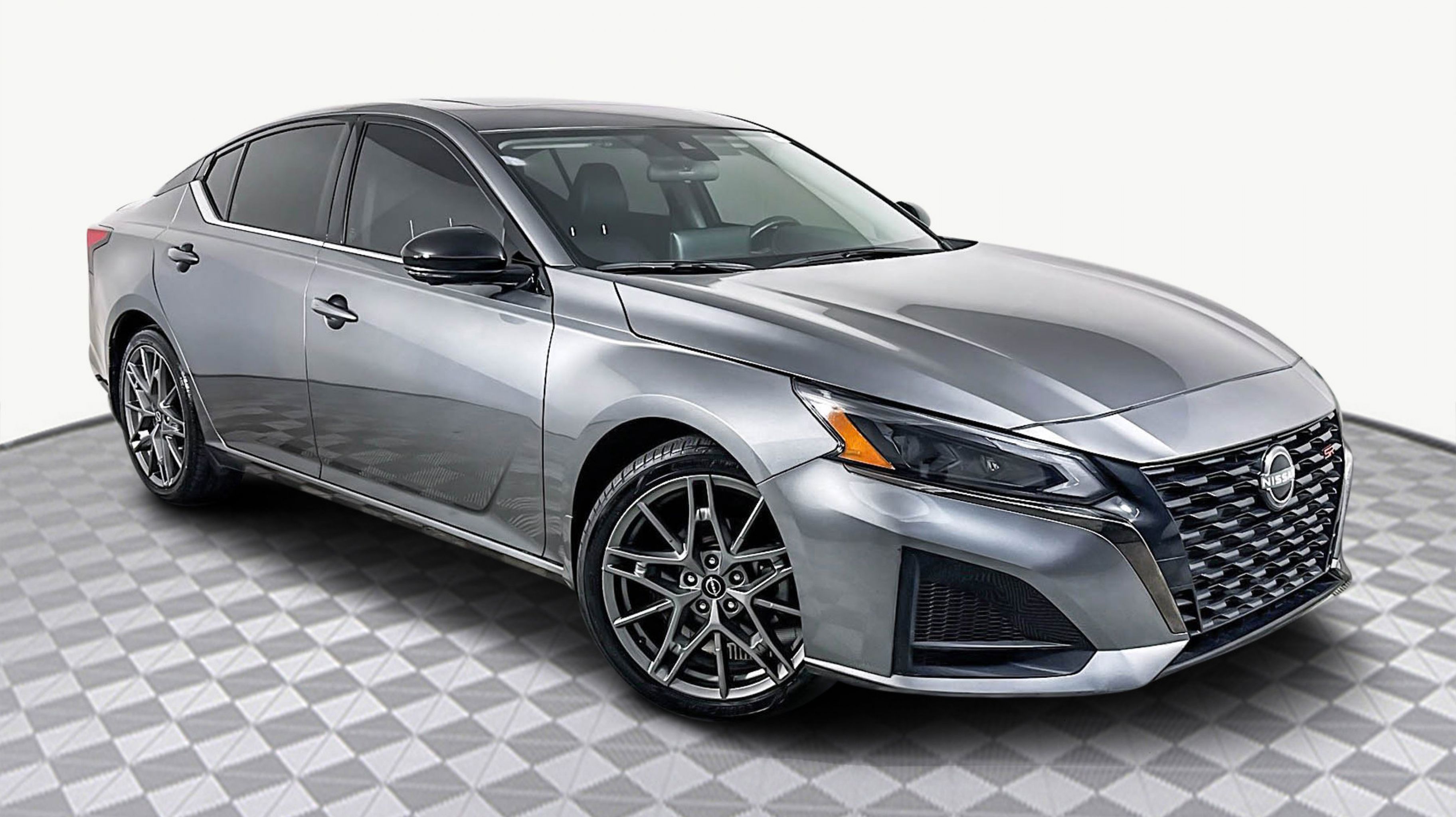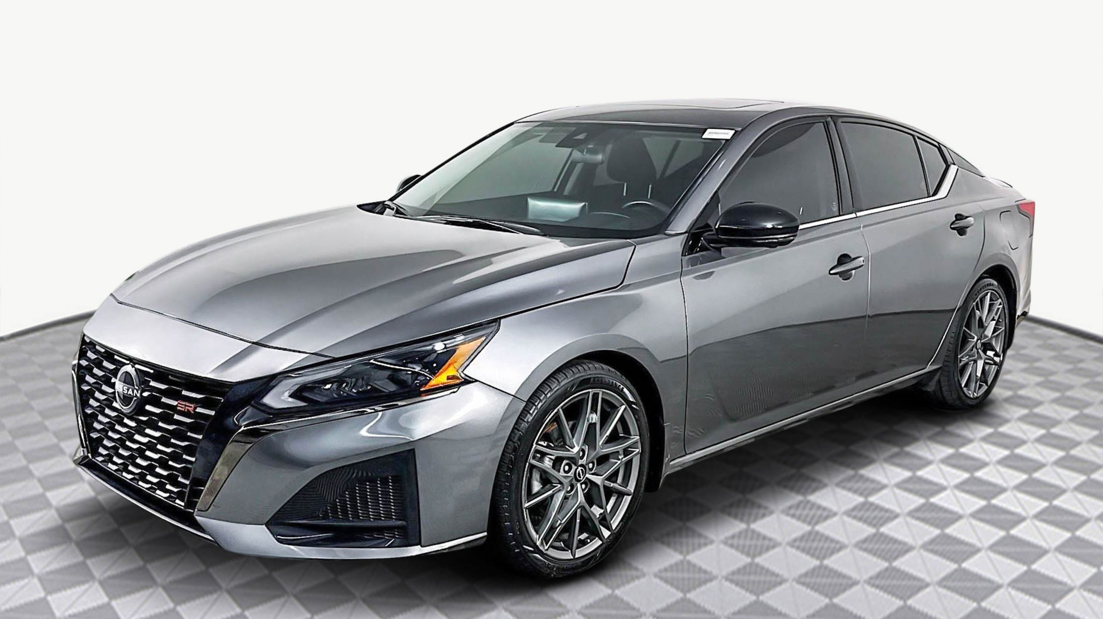 Gun Metallic 2023 Nissan Altima 2.0 SR FWD CVT with Xtronic 2.0L I4 PDI Turbocharged DOHC 16V LEV3-ULEV70 236hp CVT with Xtronic, 19 Aluminum Alloy Wheels, 4-Wheel Disc Brakes, 9 Speakers, ABS brakes, Air Conditioning, Alloy wheels, AM/FM radio: SiriusXM, Auto High-beam Headlights, Automatic temperature control, Blind Spot Warning, Body-Colored Splash Guards, Brake assist, Bumpers: body-color, Chrome Bumper Protector, Compass, Delay-off headlights, Driver door bin, Driver vanity mirror, Dual front impact airbags, Dual front side impact airbags, Electronic Stability Control, Emergency communication system: NissanConnect Services, Four wheel independent suspension, Front anti-roll bar, Front Bucket Seats, Front Center Armrest, Front dual zone A/C, Front reading lights, Fully automatic headlights, Heated door mirrors, Heated front seats, Heated Front Sport Seats, Heated steering wheel, Illuminated entry, Knee airbag, Leather Shift Knob, Leather-Appointed Seat Trim, Low tire pressure warning, Navigation System, Occupant sensing airbag, Outside temperature display, Overhead airbag, Overhead console, Panic alarm, PANORAMA SUNROOF, Passenger door bin, Passenger vanity mirror, Power door mirrors, Power driver seat, Power passenger seat, Power steering, Power windows, Radio data system, Radio: AM/FM Audio System, Rear anti-roll bar, Rear Parking Sensors, Rear reading lights, Rear seat center armrest, Rear side impact airbag, Rear window defroster, Remote keyless entry, Security system, Speed control, Speed-sensing steering, Speed-Sensitive Wipers, Split folding rear seat, Spoiler, SR Floor Mats/Trunk Mat/Hideaway Nets, Steering wheel mounted audio controls, Tachometer, Telescoping steering wheel, Tilt steering wheel, Traction control, Trip computer, Trunk Organizer Tray, Turn signal indicator mirrors, Variably intermittent wipers, VC-T Rear Spoiler, Wheels: 19 Unique Sport Alloy, CVT with Xtronic.