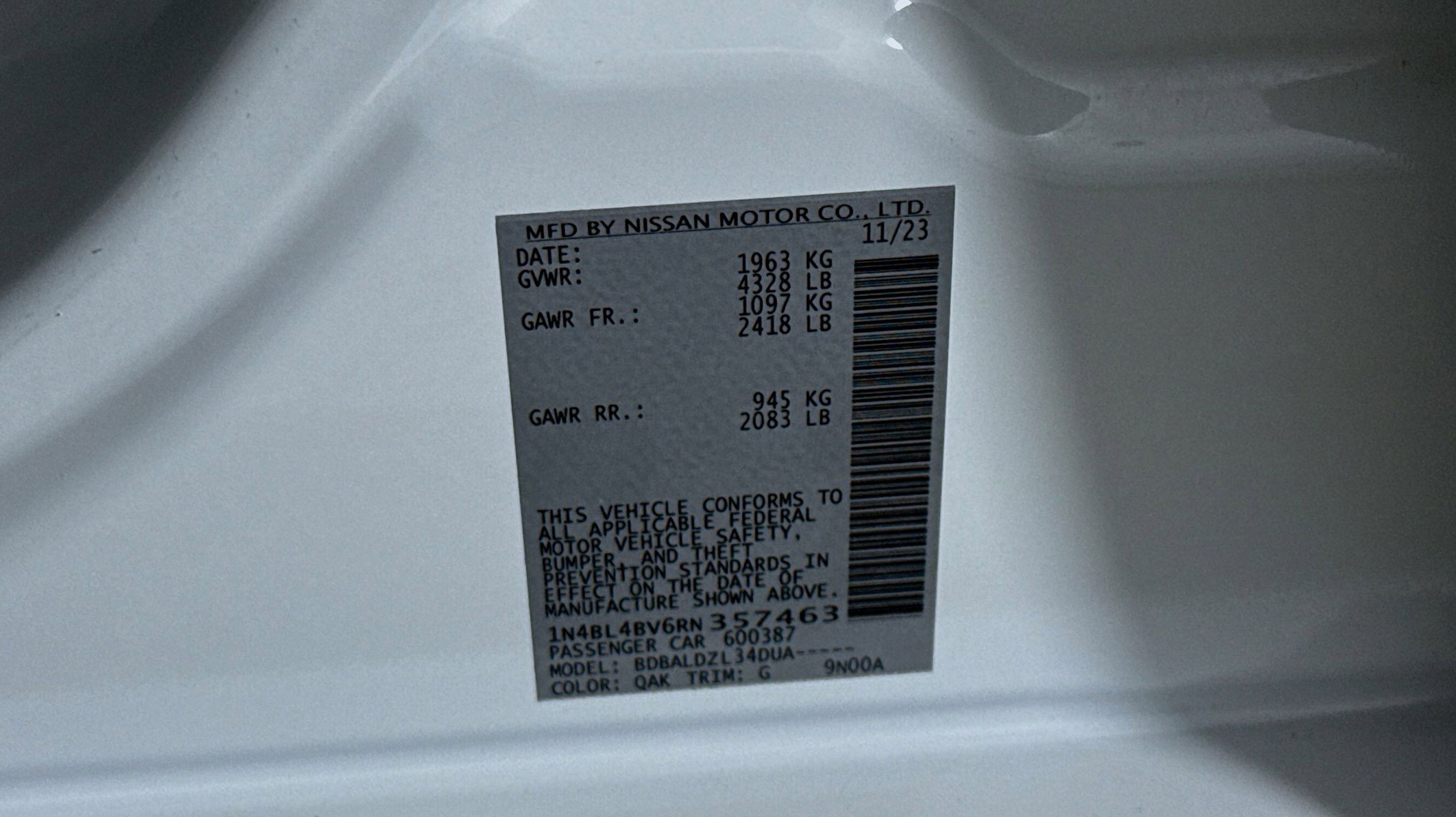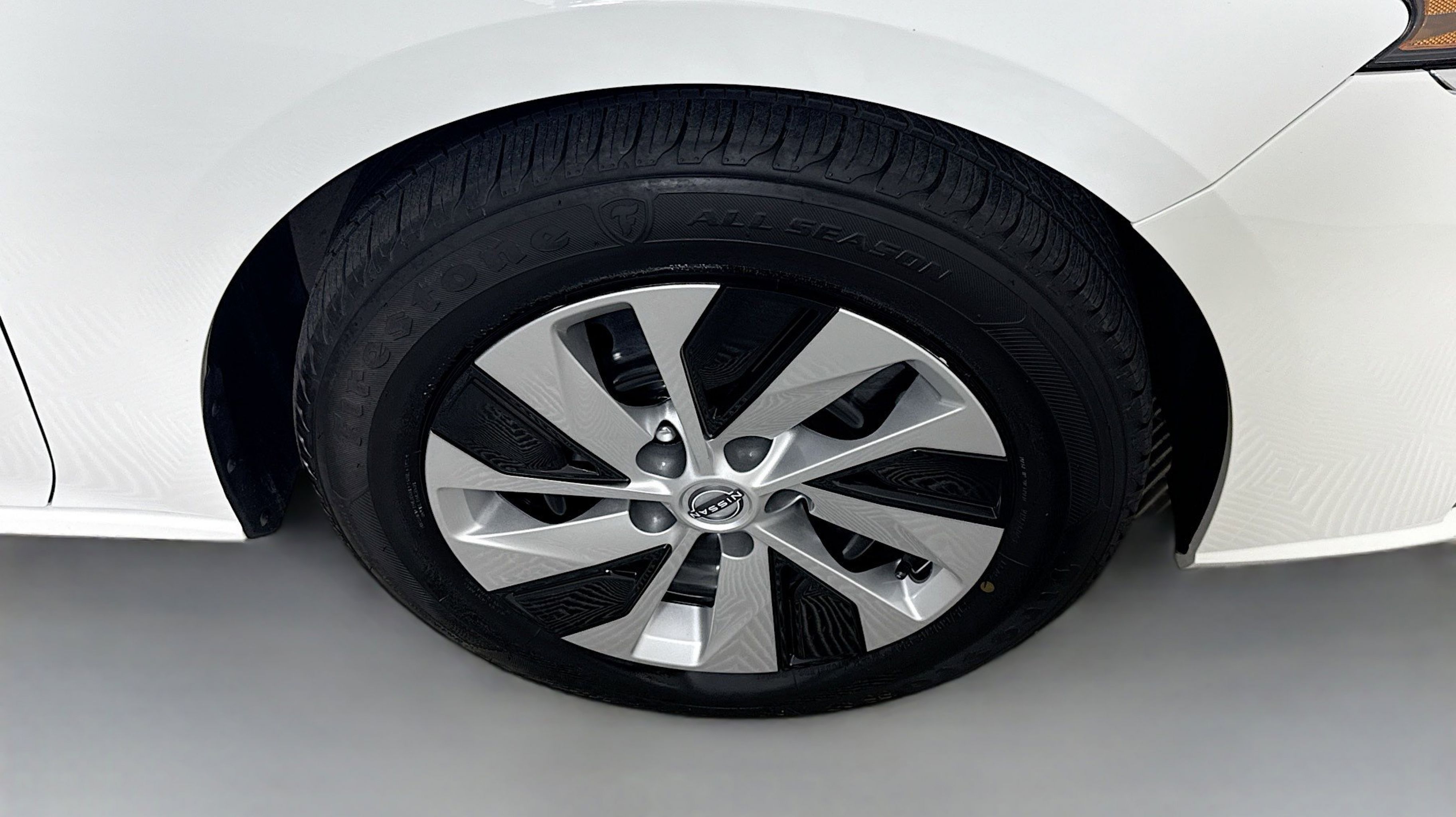 Glacier White 2024 Nissan Altima 2.5 S FWD CVT with Xtronic 2.5L 4-Cylinder DOHC 16V CVT with Xtronic, 4-Wheel Disc Brakes, 6 Speakers, ABS brakes, Air Conditioning, AM/FM radio, Auto High-beam Headlights, Blind Spot Warning, Brake assist, Bumpers: body-color, Cloth Seat Trim, Delay-off headlights, Driver door bin, Driver vanity mirror, Dual front impact airbags, Dual front side impact airbags, Electronic Stability Control, Four wheel independent suspension, Front anti-roll bar, Front Bucket Seats, Front Center Armrest, Front reading lights, Fully automatic headlights, Illuminated entry, Knee airbag, Low tire pressure warning, Occupant sensing airbag, Outside temperature display, Overhead airbag, Overhead console, Panic alarm, Passenger door bin, Passenger vanity mirror, Power door mirrors, Power steering, Power windows, Radio data system, Radio: AM/FM Audio System, Rear anti-roll bar, Rear Parking Sensors, Rear reading lights, Rear seat center armrest, Rear side impact airbag, Rear window defroster, Remote keyless entry, Security system, Speed control, Speed-sensing steering, Speed-Sensitive Wipers, Split folding rear seat, Steering wheel mounted audio controls, Tachometer, Telescoping steering wheel, Tilt steering wheel, Traction control, Trip computer, Variably intermittent wipers, Wheels: 16 x 7 Steel w/Full Wheel Covers, CVT with Xtronic.