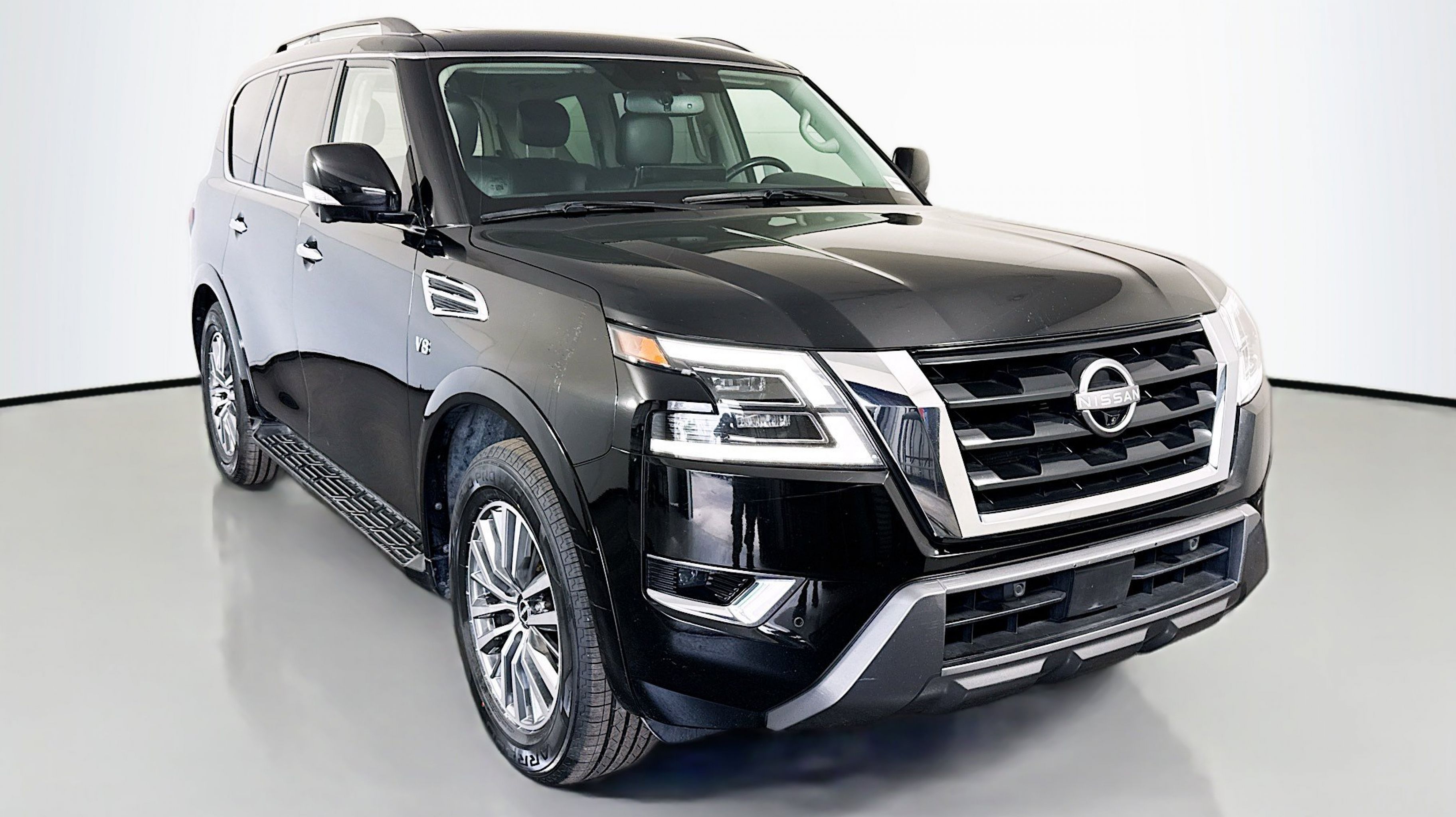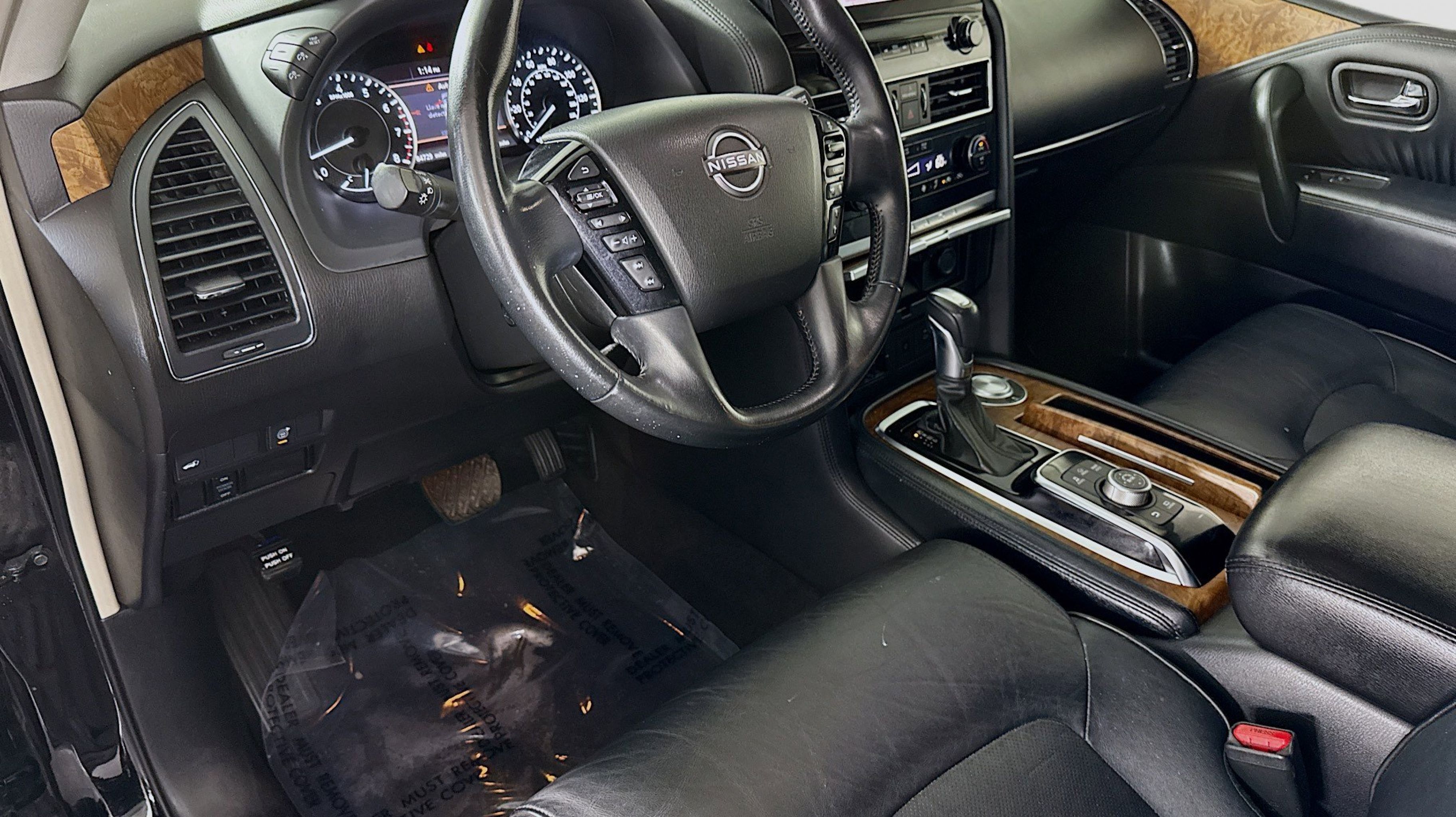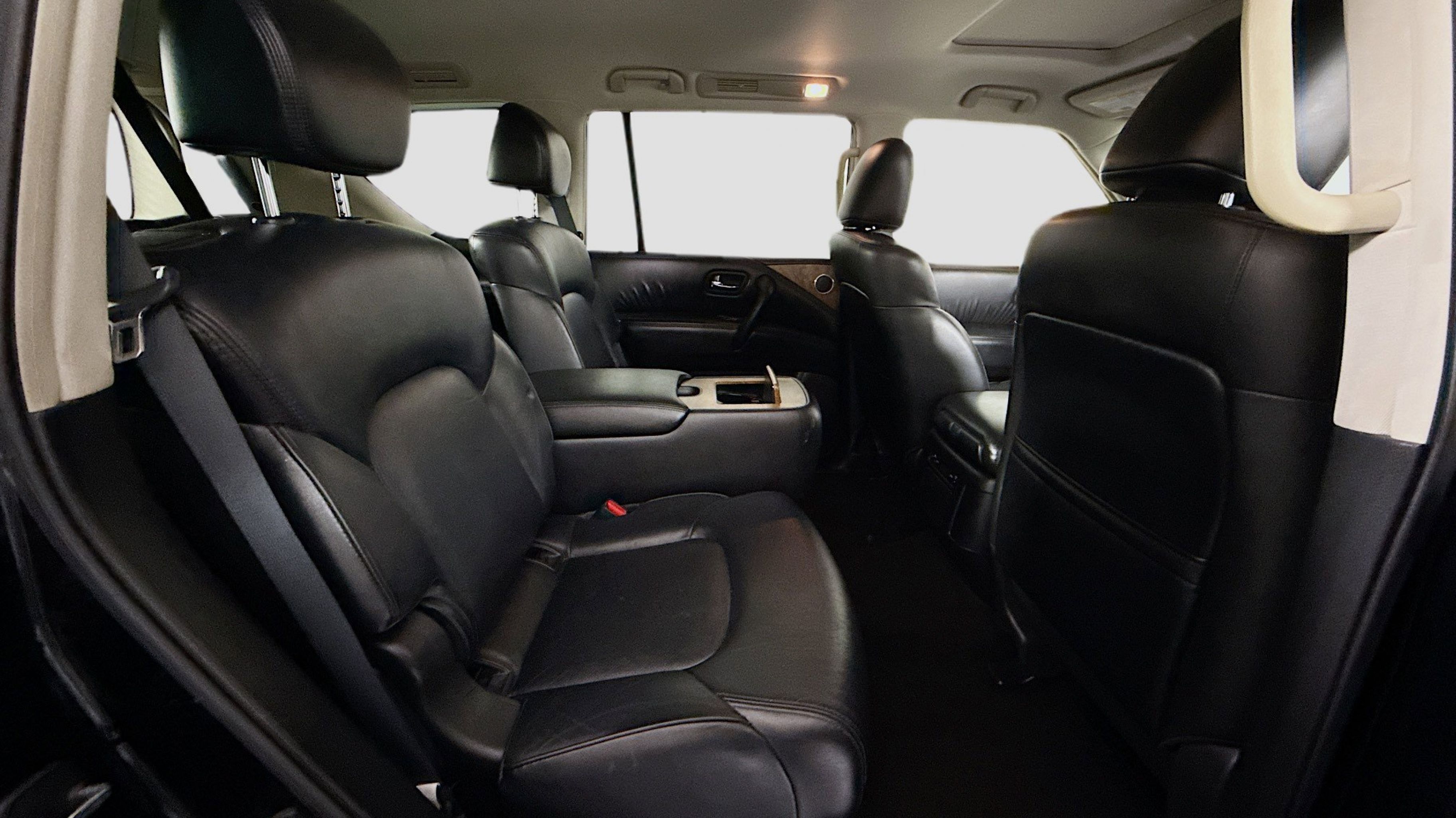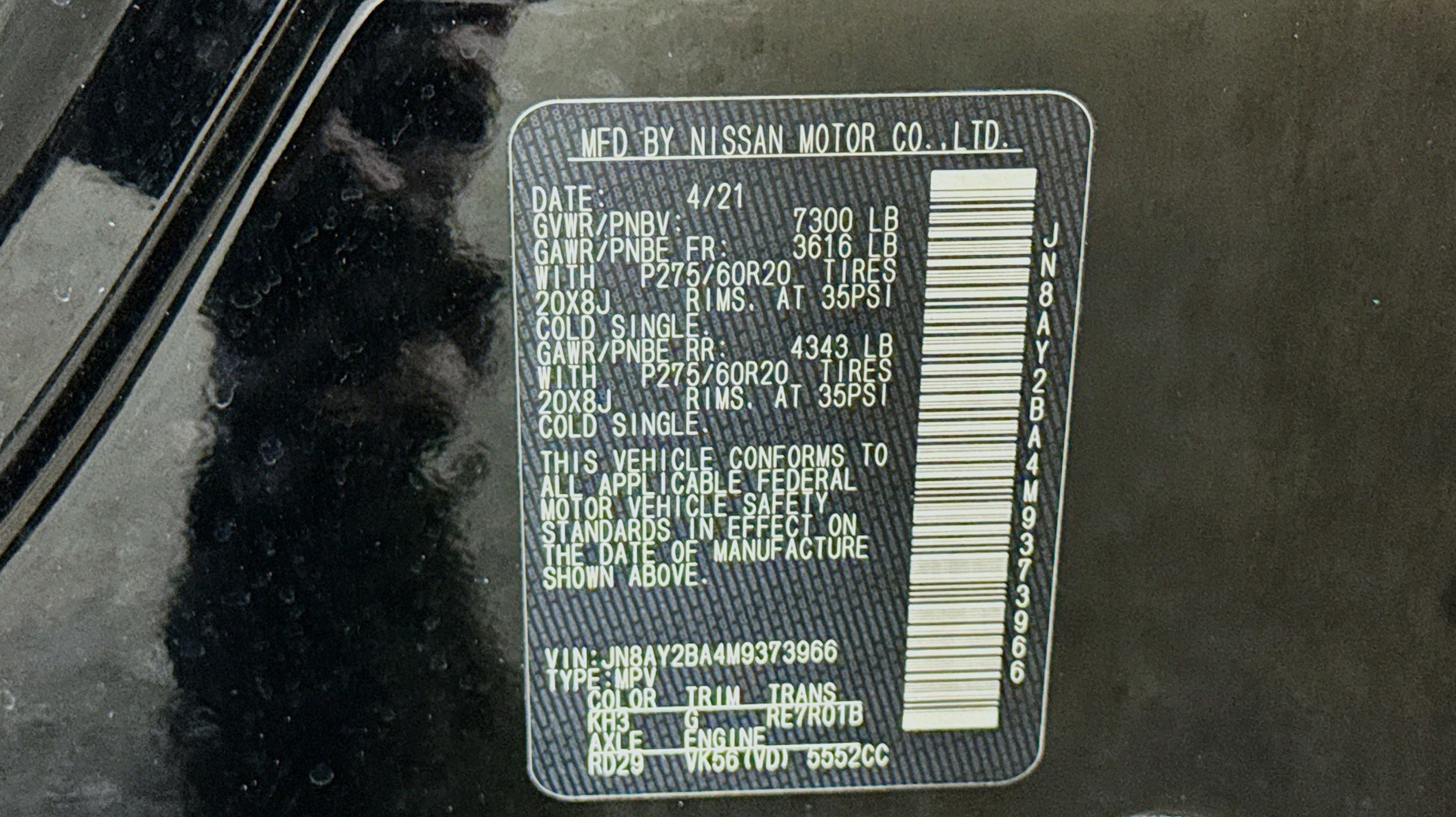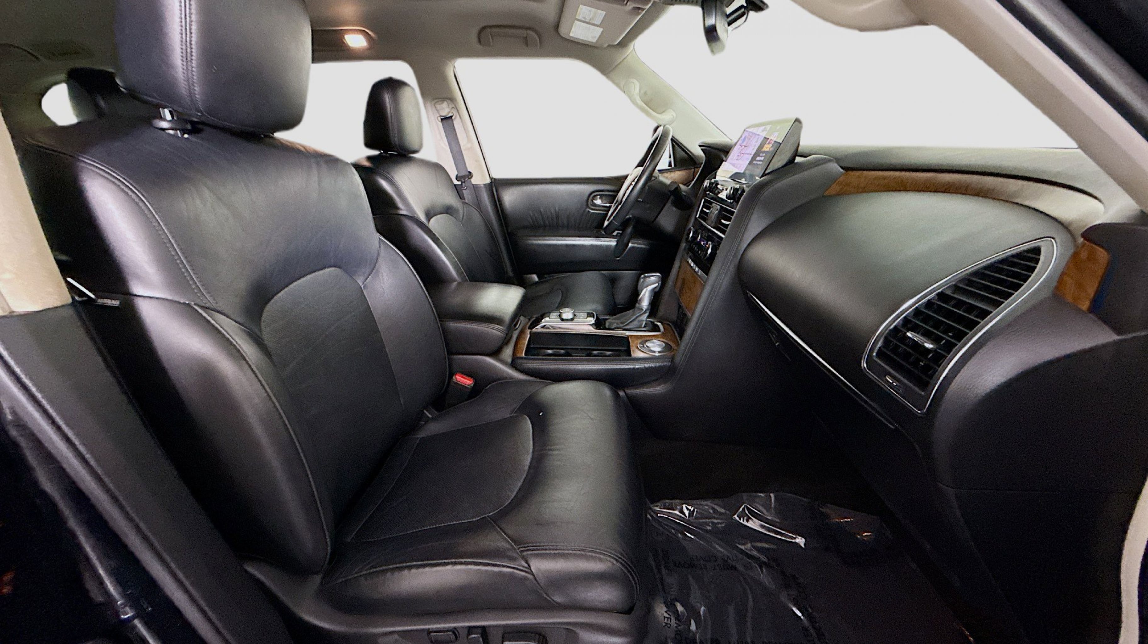 2nd Row Captain's Chairs, 2nd Row Center Console w/Padded Armrest, Captain's Chairs Package, 13 Speakers, 2.94 Axle Ratio, 20 Painted Alloy Wheels, 3rd Row Carpeted Floor Mats - Captain Seat, 3rd row seats: split-bench, 4-Wheel Disc Brakes, ABS brakes, Air Conditioning, Alloy wheels, AM/FM radio: SiriusXM, Anti-whiplash front head restraints, Auto High-beam Headlights, Auto tilt-away steering wheel, Auto-dimming door mirrors, Auto-dimming Rear-View mirror, Auto-leveling suspension, Automatic temperature control, Brake assist, Bumpers: body-color, Delay-off headlights, Driver door bin, Driver vanity mirror, Dual front impact airbags, Dual front side impact airbags, Electronic Stability Control, Emergency communication system: NissanConnect Services, Exterior Parking Camera Rear, Four wheel independent suspension, Front anti-roll bar, Front Bucket Seats, Front Center Armrest, Front dual zone A/C, Front fog lights, Front reading lights, Fully automatic headlights, Garage door transmitter: HomeLink, Heated door mirrors, Heated Front Bucket Seats, Heated front seats, Illuminated entry, Leather Seat Trim, Leather Shift Knob, Low tire pressure warning, Memory seat, Navigation System, NissanConnect featuring Apple CarPlay and Android Auto, Occupant sensing airbag, Outside temperature display, Overhead airbag, Overhead console, Panic alarm, Passenger door bin, Passenger vanity mirror, Power door mirrors, Power driver seat, Power Liftgate, Power moonroof, Power passenger seat, Power steering, Power windows, Radio: NissanConnect w/SiriusXM, Rear air conditioning, Rear anti-roll bar, Rear reading lights, Rear seat center armrest, Rear window defroster, Rear window wiper, Reclining 3rd row seat, Remote keyless entry, Security system, Speed control, Speed-sensing steering, Speed-Sensitive Wipers, Split folding rear seat, Spoiler, Steering wheel memory, Steering wheel mounted audio controls, Tachometer, Telescoping steering wheel, Tilt steering wheel, Traction control, Trip computer, Turn signal indicator mirrors, Variably intermittent wipers, Voltmeter, 2nd Row Captain's Chairs, 2nd Row Center Console w/Padded Armrest, Captain's Chairs Package. Odometer is 16529 miles below market average!