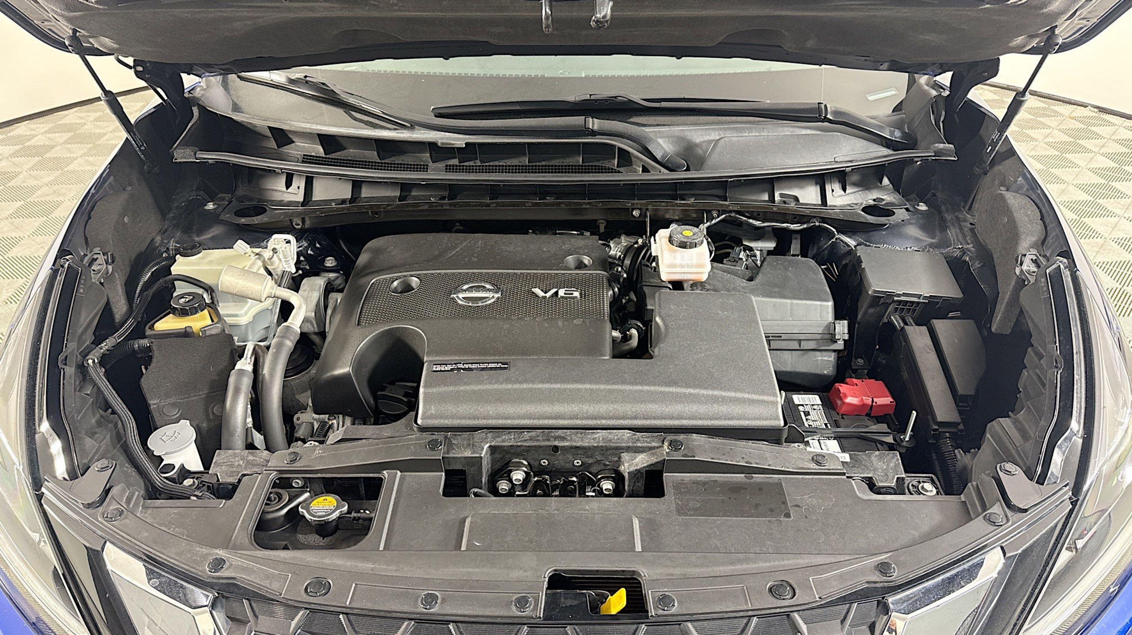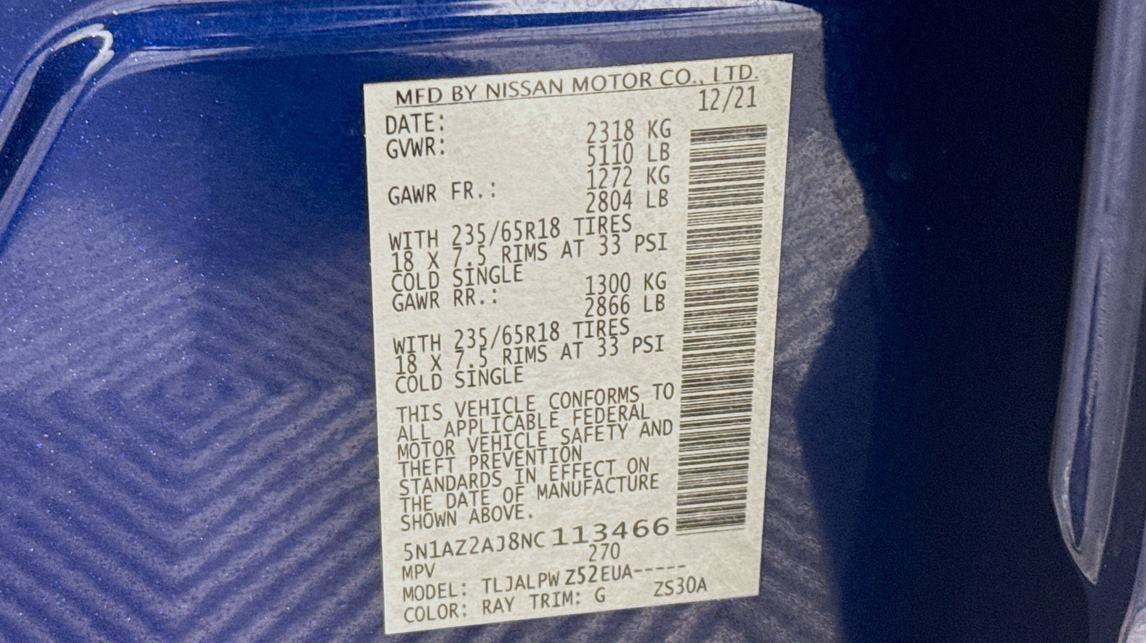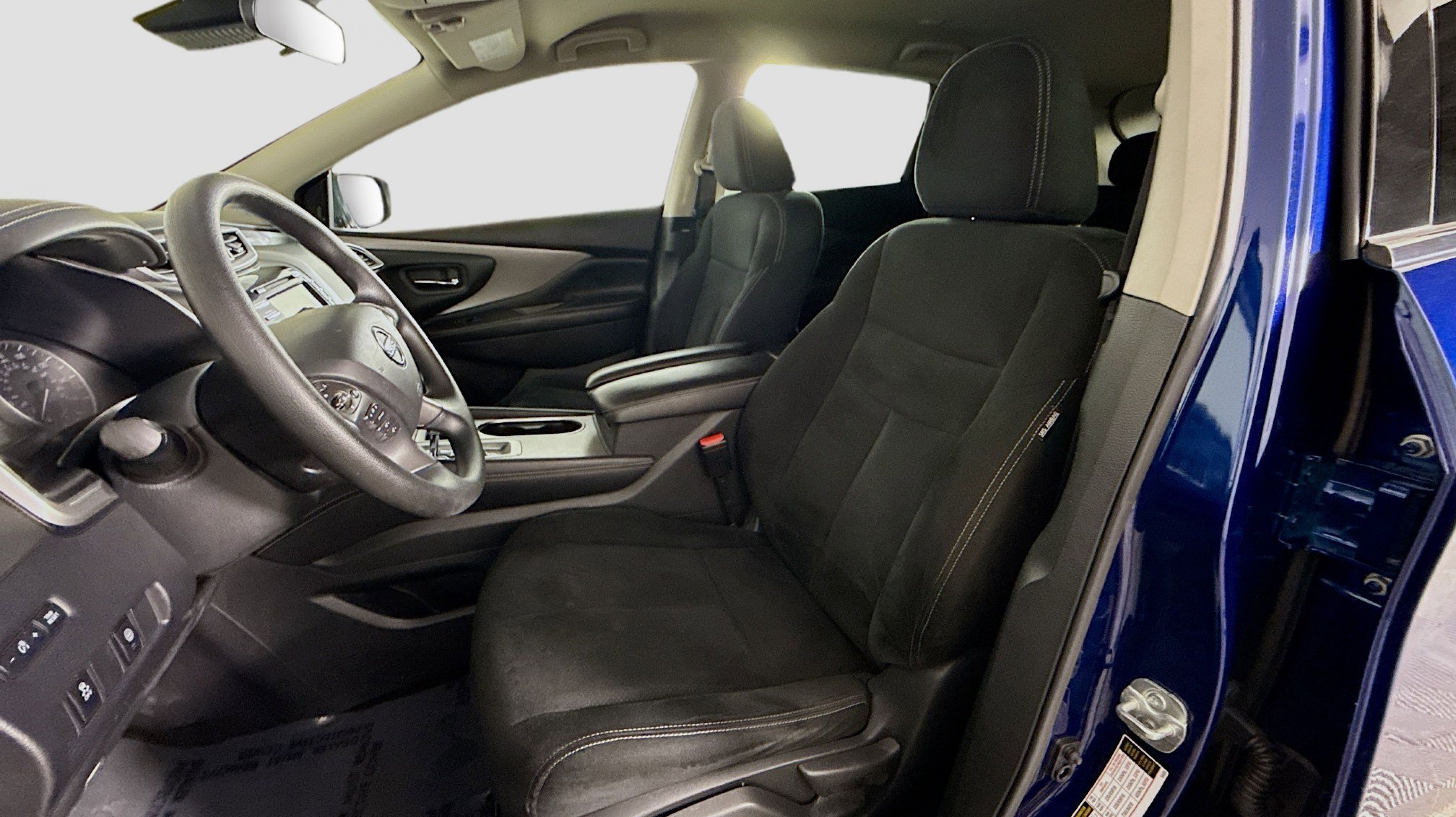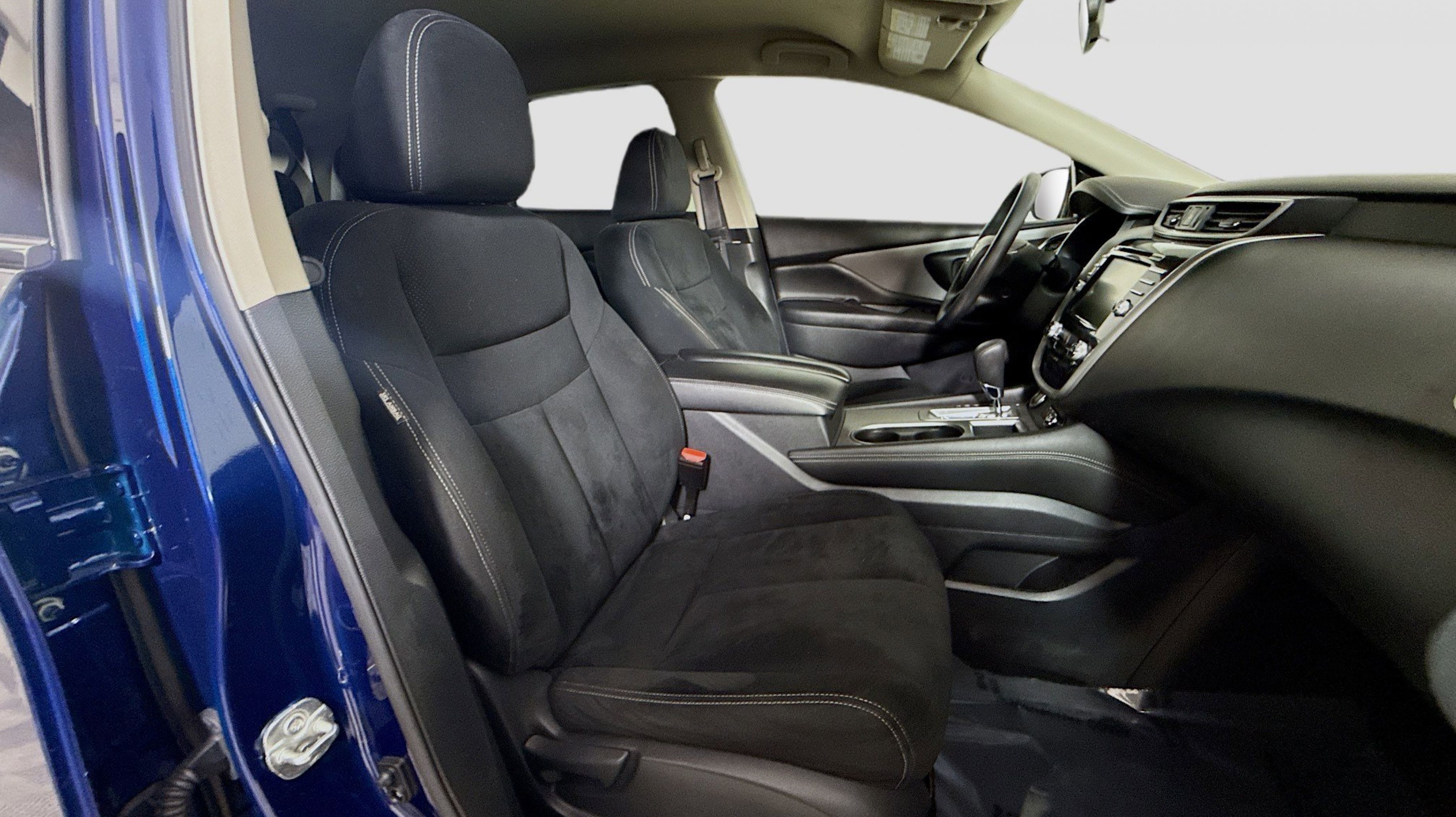 Deep Blue Pearl 2022 Nissan Murano S FWD CVT with Xtronic 3.5L V6 DOHC 24V CVT with Xtronic, 4-Wheel Disc Brakes, 4.667 Axle Ratio, 6 Speakers, ABS brakes, Air Conditioning, Alloy wheels, AM/FM radio: SiriusXM, AM/FM/CD/MP3/WMA Audio System, Auto High-beam Headlights, Automatic temperature control, Blind Spot Warning, Brake assist, Bumpers: body-color, Carpeted Floor Mats & Carpeted Cargo Mat, CD player, Child-Seat-Sensing Airbag, Cloth Seat Trim, Delay-off headlights, Driver door bin, Driver vanity mirror, Dual front impact airbags, Dual front side impact airbags, Electronic Stability Control, Four wheel independent suspension, Front anti-roll bar, Front Bucket Seats, Front Center Armrest, Front dual zone A/C, Front reading lights, Fully automatic headlights, Illuminated entry, Knee airbag, Low tire pressure warning, NissanConnect featuring Apple CarPlay and Android Auto, Occupant sensing airbag, Outside temperature display, Overhead airbag, Overhead console, Panic alarm, Passenger door bin, Passenger vanity mirror, Power door mirrors, Power steering, Power windows, Radio data system, Rear anti-roll bar, Rear Bumper Protector, Rear Parking Sensors, Rear reading lights, Rear seat center armrest, Rear side impact airbag, Rear window defroster, Rear window wiper, Remote keyless entry, Security system, Speed control, Speed-sensing steering, Splash Guards (B92), Split folding rear seat, Spoiler, Steering wheel mounted audio controls, Tachometer, Telescoping steering wheel, Tilt steering wheel, Traction control, Trip computer, Variably intermittent wipers, Wheels: 18 Machined Aluminum-Alloy, CVT with Xtronic.