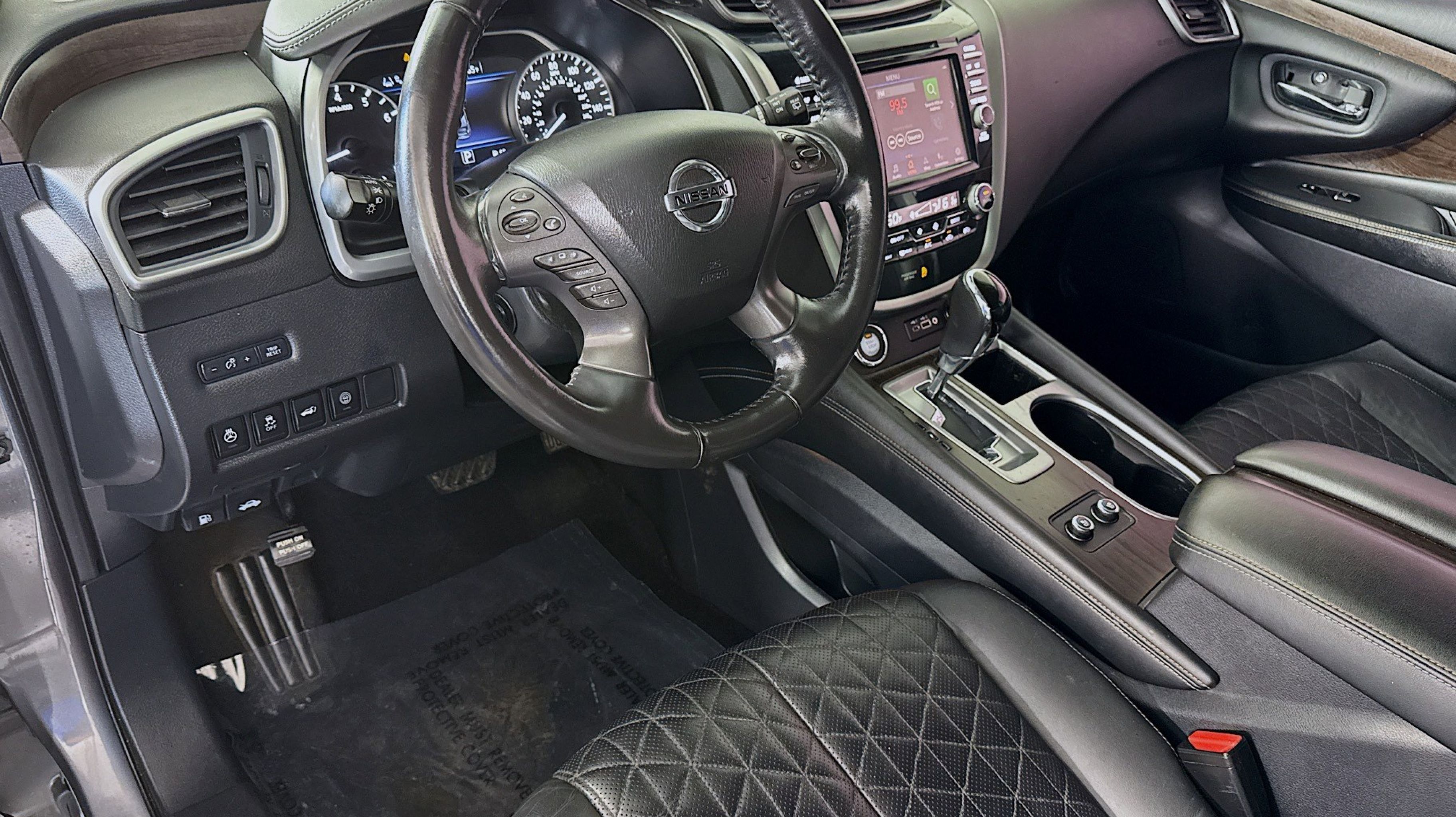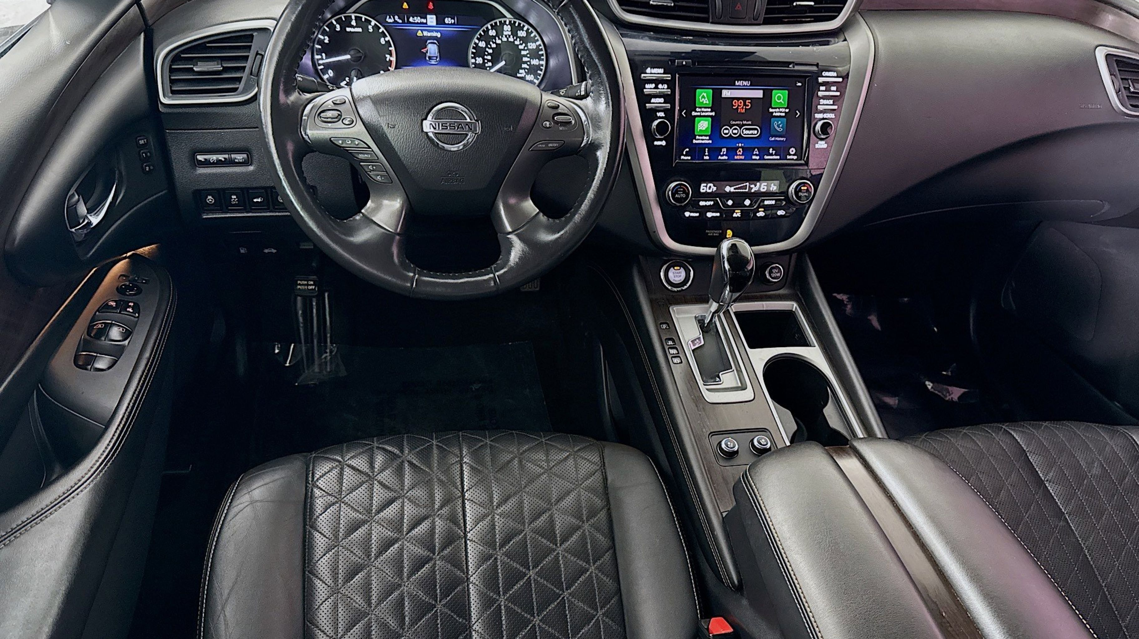 Clean CARFAX. CVT with Xtronic, AWD, Cargo Area Protector, Cargo Net, Cargo Package, First Aid Kit, Retractable Cargo Cover, 11 Speakers, 4-Wheel Disc Brakes, 4.667 Axle Ratio, ABS brakes, Air Conditioning, Alloy wheels, AM/FM radio: SiriusXM, AM/FM/CD/MP3/WMA Audio System, Auto High-beam Headlights, Auto tilt-away steering wheel, Auto-dimming Rear-View mirror, Automatic temperature control, Blind Spot Warning, Brake assist, Bumpers: body-color, Carpeted Floor Mats & Carpeted Cargo Mat, CD player, Child-Seat-Sensing Airbag, Delay-off headlights, Driver door bin, Driver vanity mirror, Dual front impact airbags, Dual front side impact airbags, Electronic Stability Control, Emergency communication system: NissanConnect Services (first 6 months included), Exterior Parking Camera Rear, Four wheel independent suspension, Front anti-roll bar, Front Bucket Seats, Front Center Armrest, Front dual zone A/C, Front fog lights, Front reading lights, Fully automatic headlights, Garage door transmitter: HomeLink, Heated & Ventilated Front Bucket Seats, Heated door mirrors, Heated front seats, Heated rear seats, Heated steering wheel, Illuminated entry, Illuminated Kick Plates, Illuminated Kick Plates (PIO), Knee airbag, Low tire pressure warning, Memory seat, Navigation system: NissanConnect Navigation, NissanConnect featuring Apple CarPlay and Android Auto, NissanConnect Services Powered By SiriusXM, Occupant sensing airbag, Outside temperature display, Overhead airbag, Overhead console, Panic alarm, Passenger door bin, Passenger vanity mirror, Power door mirrors, Power driver seat, Power Liftgate, Power moonroof, Power passenger seat, Power steering, Power windows, Premium audio system: Bose, Radio data system, Rear anti-roll bar, Rear Bumper Protector, Rear reading lights, Rear seat center armrest, Rear side impact airbag, Rear window defroster, Rear window wiper, Remote keyless entry, Roof rack: rails only, Security system, Semi-Aniline Leather-Appointed Seat Trim, Speed control, Speed-sensing steering, Speed-Sensitive Wipers, Splash Guards (B92), Split folding rear seat, Spoiler, Steering wheel memory, Steering wheel mounted audio controls, Tachometer, Telescoping steering wheel, Tilt steering wheel, Traction control, Trip computer, Turn signal indicator mirrors, Variably intermittent wipers, Ventilated front seats, Wheels: 20 Unique Dark Hyper Silver, CVT with Xtronic, AWD, Cargo Area Protector, Cargo Net, Cargo Package, First Aid Kit, Retractable Cargo Cover.