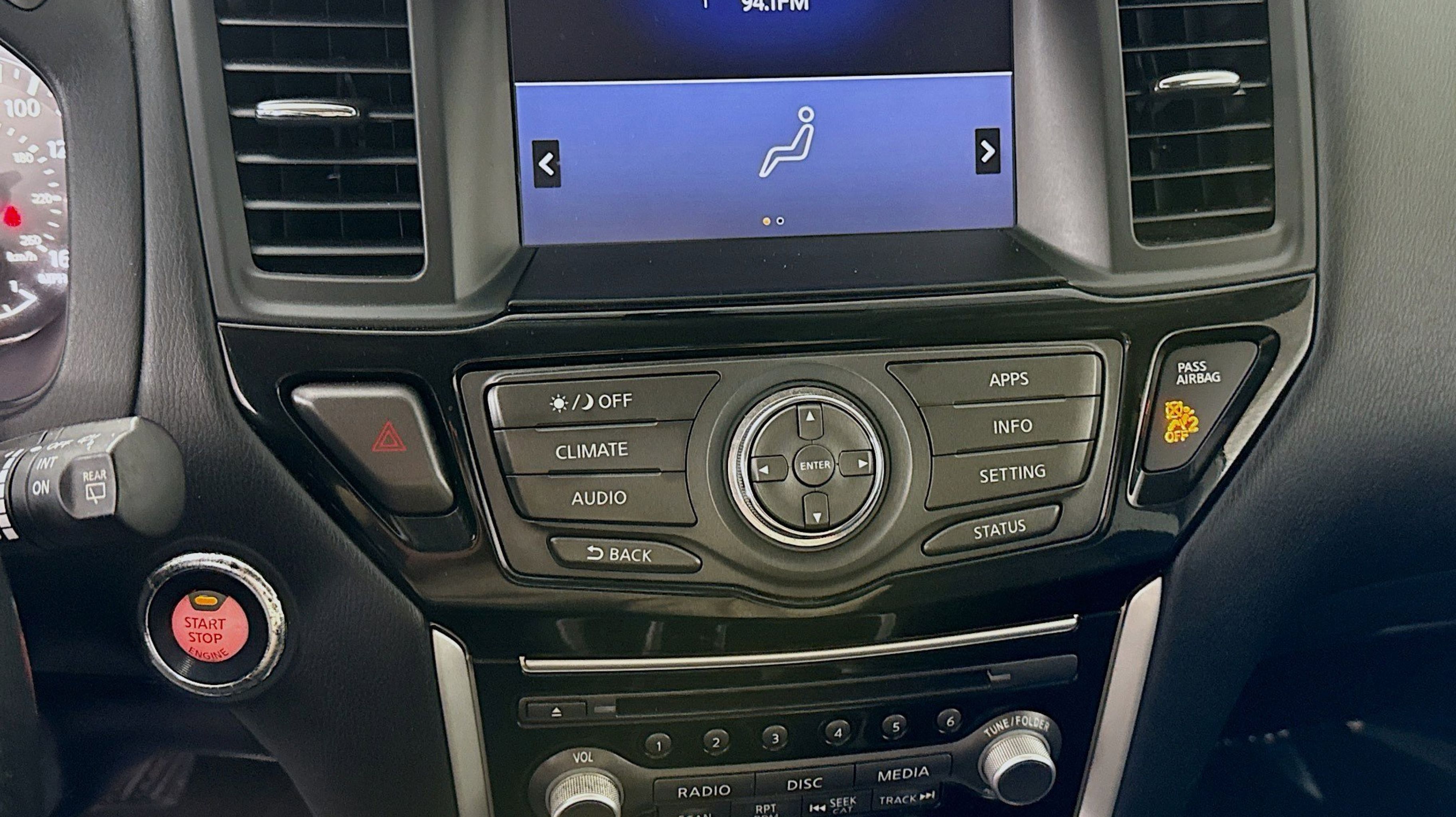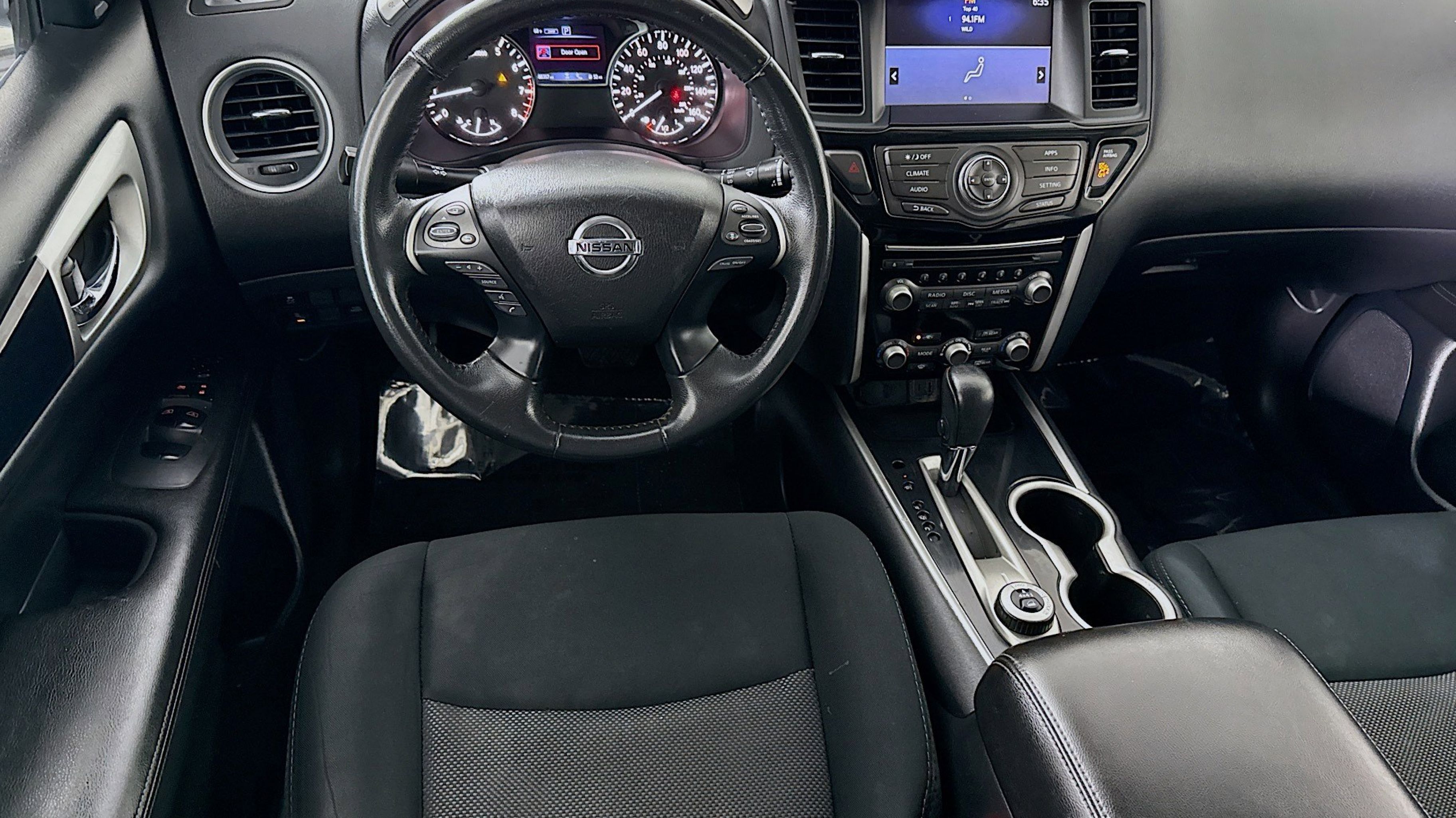 4WD, 3rd row seats: bench, 4-Wheel Disc Brakes, 5.25 Axle Ratio, 6 Speakers, 6-Speaker Audio System, ABS brakes, Air Conditioning, Alloy wheels, AM/FM radio: SiriusXM, Auto-dimming Rear-View mirror, Automatic temperature control, Blind Spot Warning, Brake assist, Bumpers: body-color, Carpeted Floor Mats (4-pc Set), CD player, Cloth Seating Surfaces, Compass, Delay-off headlights, Driver door bin, Driver vanity mirror, Dual front impact airbags, Dual front side impact airbags, Electronic Stability Control, Four wheel independent suspension, Front anti-roll bar, Front Bucket Seats, Front Center Armrest, Front dual zone A/C, Front fog lights, Front reading lights, Fully automatic headlights, Garage door transmitter: HomeLink, Illuminated entry, Leather Shift Knob, Leather steering wheel, Low tire pressure warning, NissanConnect w/Navigation & Services, Occupant sensing airbag, Outside temperature display, Overhead airbag, Overhead console, Panic alarm, Passenger door bin, Passenger vanity mirror, Power door mirrors, Power driver seat, Power steering, Power windows, Radio data system, Radio: AM/FM/CD Audio System w/NissanConnect, Rear air conditioning, Rear anti-roll bar, Rear Parking Sensors, Rear reading lights, Rear seat center armrest, Rear window defroster, Rear window wiper, Reclining 3rd row seat, Remote keyless entry, Roof rack: rails only, Security system, SiriusXM Traffic, Speed control, Speed-sensing steering, Speed-Sensitive Wipers, Split folding rear seat, Spoiler, Steering wheel mounted audio controls, Tachometer, Telescoping steering wheel, Tilt steering wheel, Traction control, Trip computer, Turn signal indicator mirrors, Variably intermittent wipers, Wheels: 18 x 7.5 J Machined Aluminum-Alloy, 4WD.