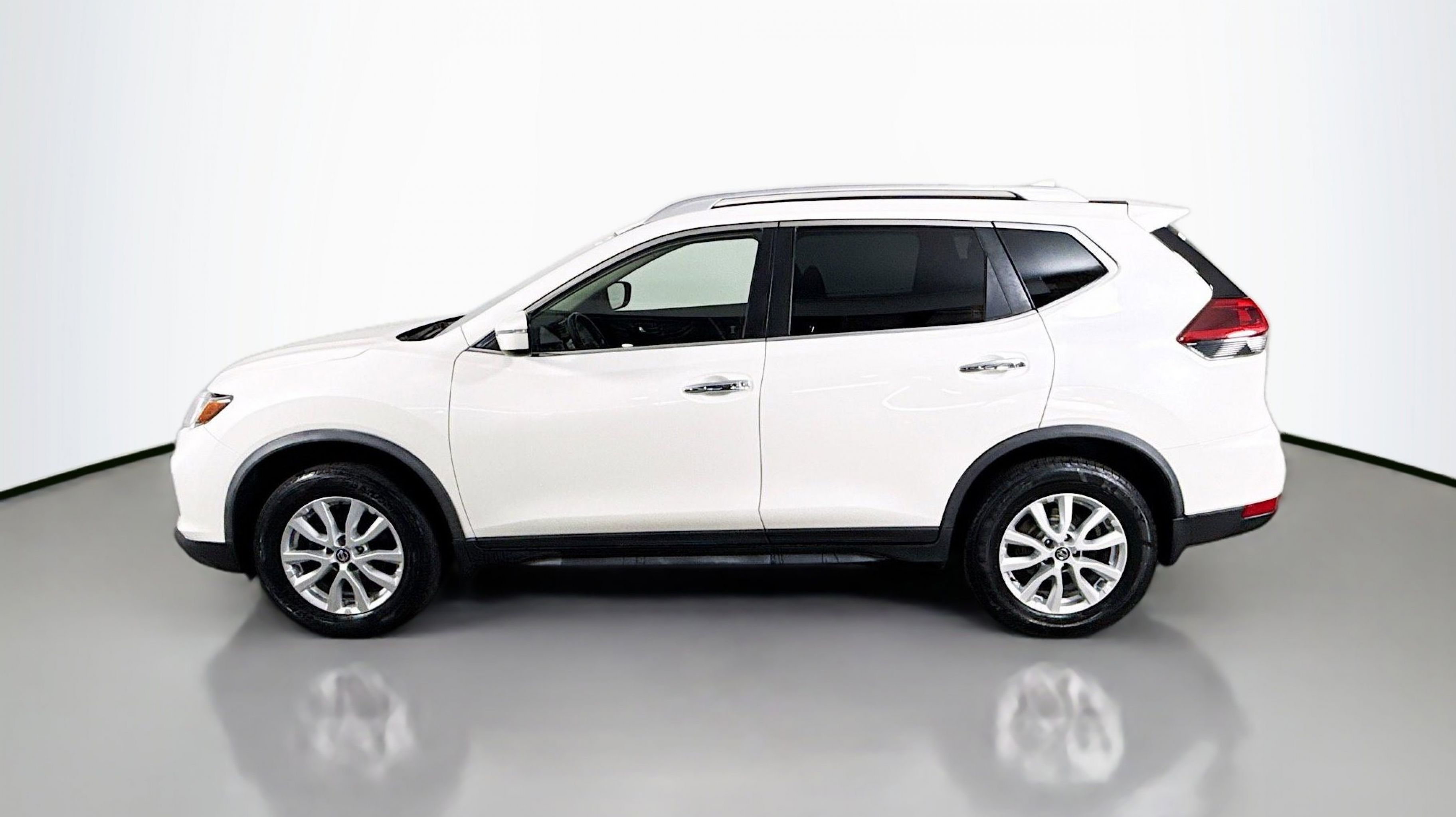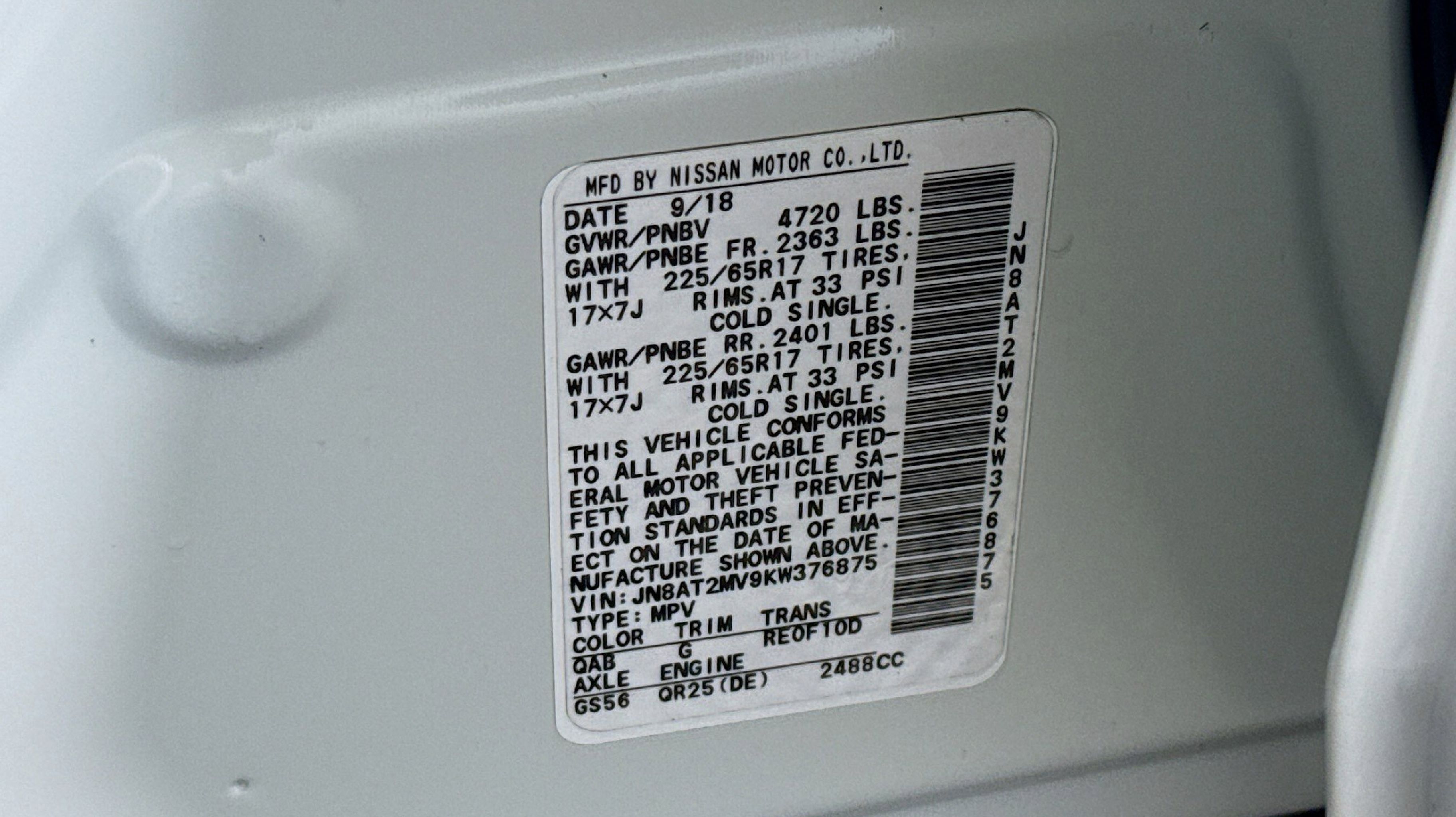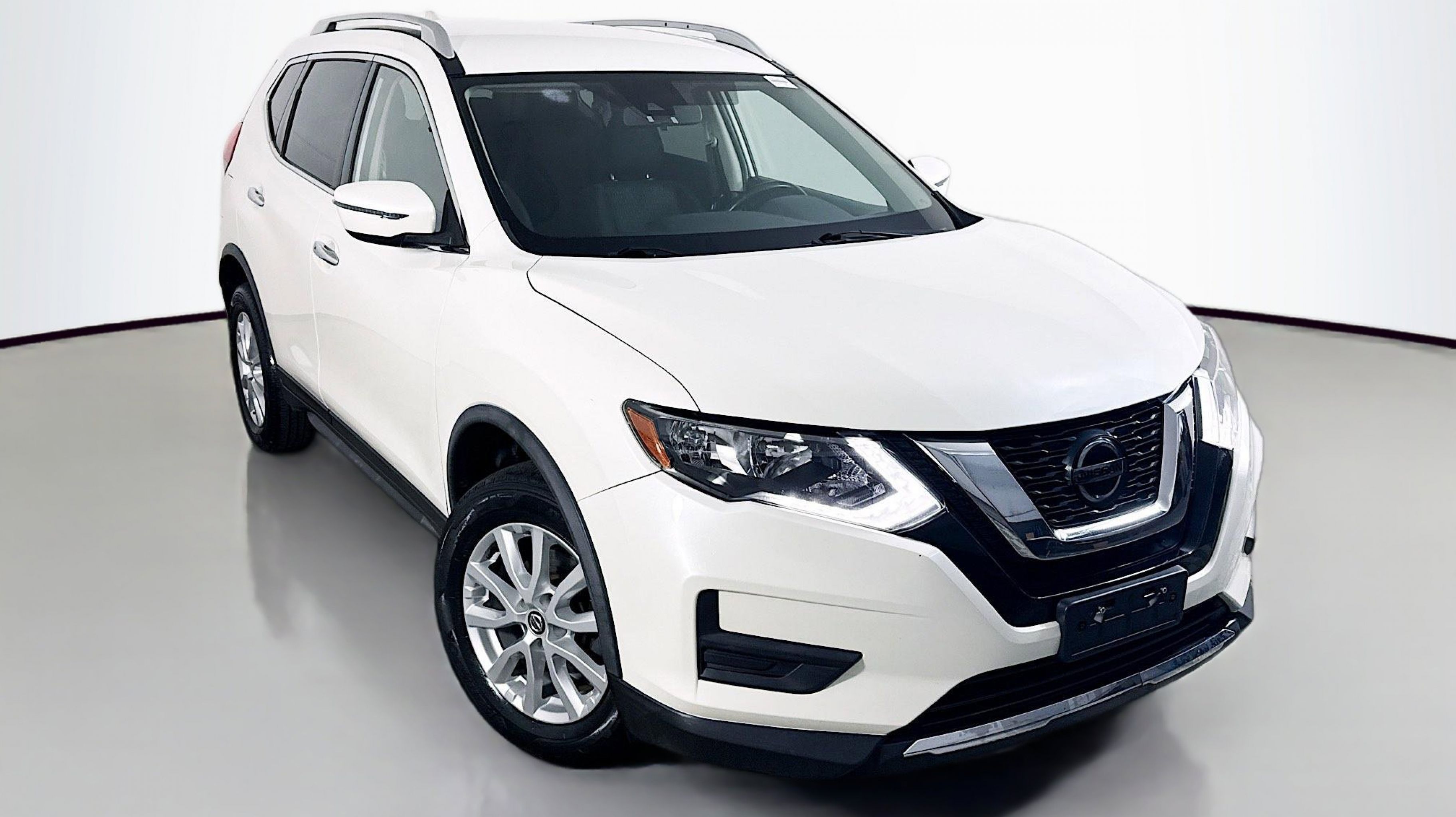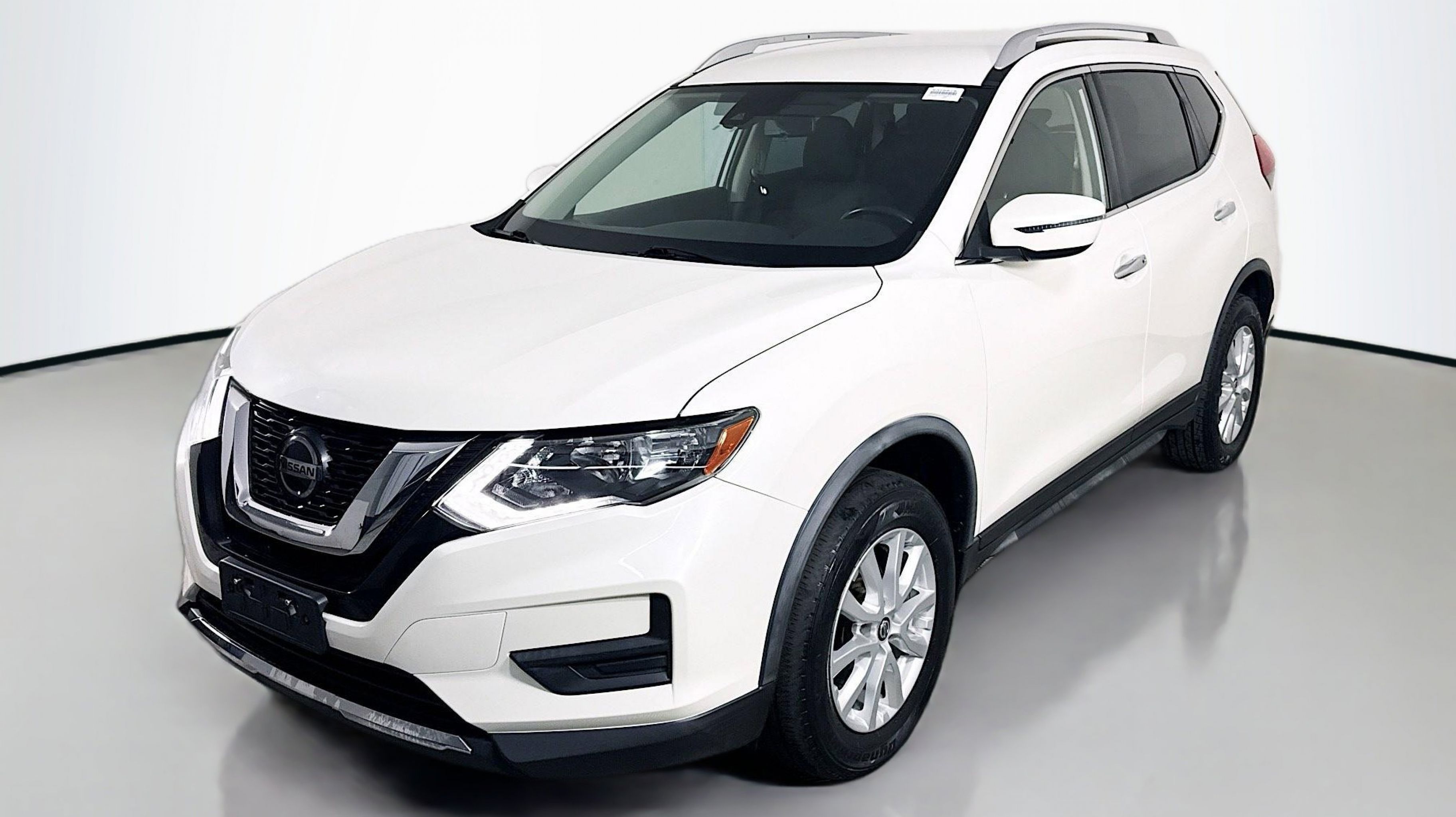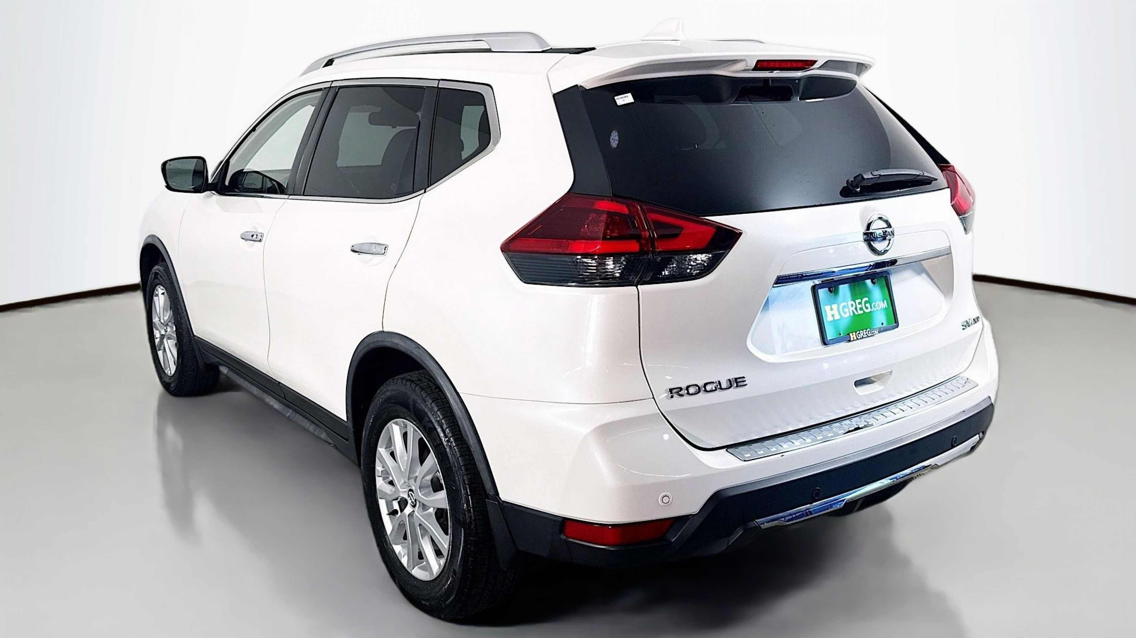 Pearl White Tricoat 2019 Nissan Rogue SV AWD CVT with Xtronic 2.5L I4 DOHC 16V AWD, 17 Aluminum Alloy Wheels, 4-Wheel Disc Brakes, 6 Speakers, 6.386 Axle Ratio, ABS brakes, Air Conditioning, Alloy wheels, AM/FM radio: SiriusXM, Anti-whiplash front head restraints, Auto High-beam Headlights, Automatic temperature control, Black Splash Guards (Set of 4), Blind Spot Warning, Brake assist, Bumpers: body-color, CD player, Chrome Rear Bumper Protector, Cloth Seat Trim, Delay-off headlights, Driver door bin, Driver vanity mirror, Dual front impact airbags, Dual front side impact airbags, Electronic Stability Control, First Aid Kit, Floor Mats & 2-PC Cargo Area Protector, Four wheel independent suspension, Front anti-roll bar, Front Bucket Seats, Front Center Armrest w/Storage, Front dual zone A/C, Front reading lights, Fully automatic headlights, Heated door mirrors, Heated Front Bucket Seats, Heated front seats, Illuminated entry, Leather Shift Knob, Low tire pressure warning, NissanConnect featuring Apple CarPlay and Android Auto, Occupant sensing airbag, Outside temperature display, Overhead airbag, Overhead console, Panic alarm, Passenger door bin, Passenger vanity mirror, Power door mirrors, Power driver seat, Power Liftgate, Power steering, Power windows, Radio data system, Radio: AM/FM/CD/AUX, Radio: AM/FM/CD/AUX NissanConnect w/Navigation, Rear anti-roll bar, Rear Parking Sensors, Rear seat center armrest, Rear window defroster, Rear window wiper, Remote keyless entry, Roof rack: rails only, Security system, Speed control, Speed-sensing steering, Split folding rear seat, Spoiler, Steering wheel mounted audio controls, Tachometer, Telescoping steering wheel, Tilt steering wheel, Traction control, Trip computer, Turn signal indicator mirrors, Variably intermittent wipers, AWD.