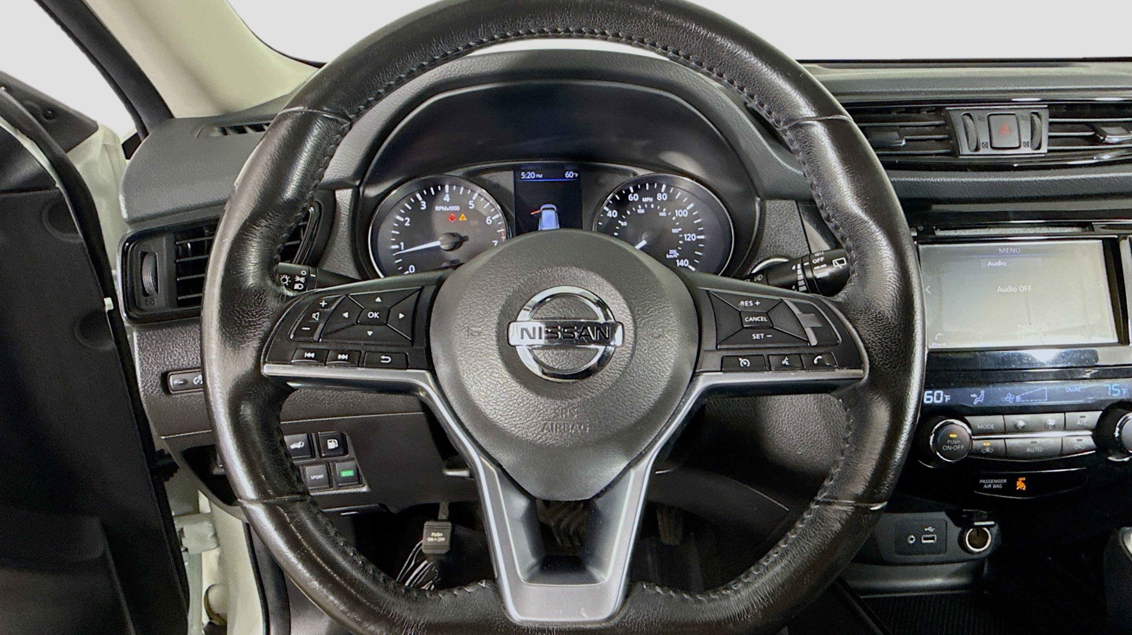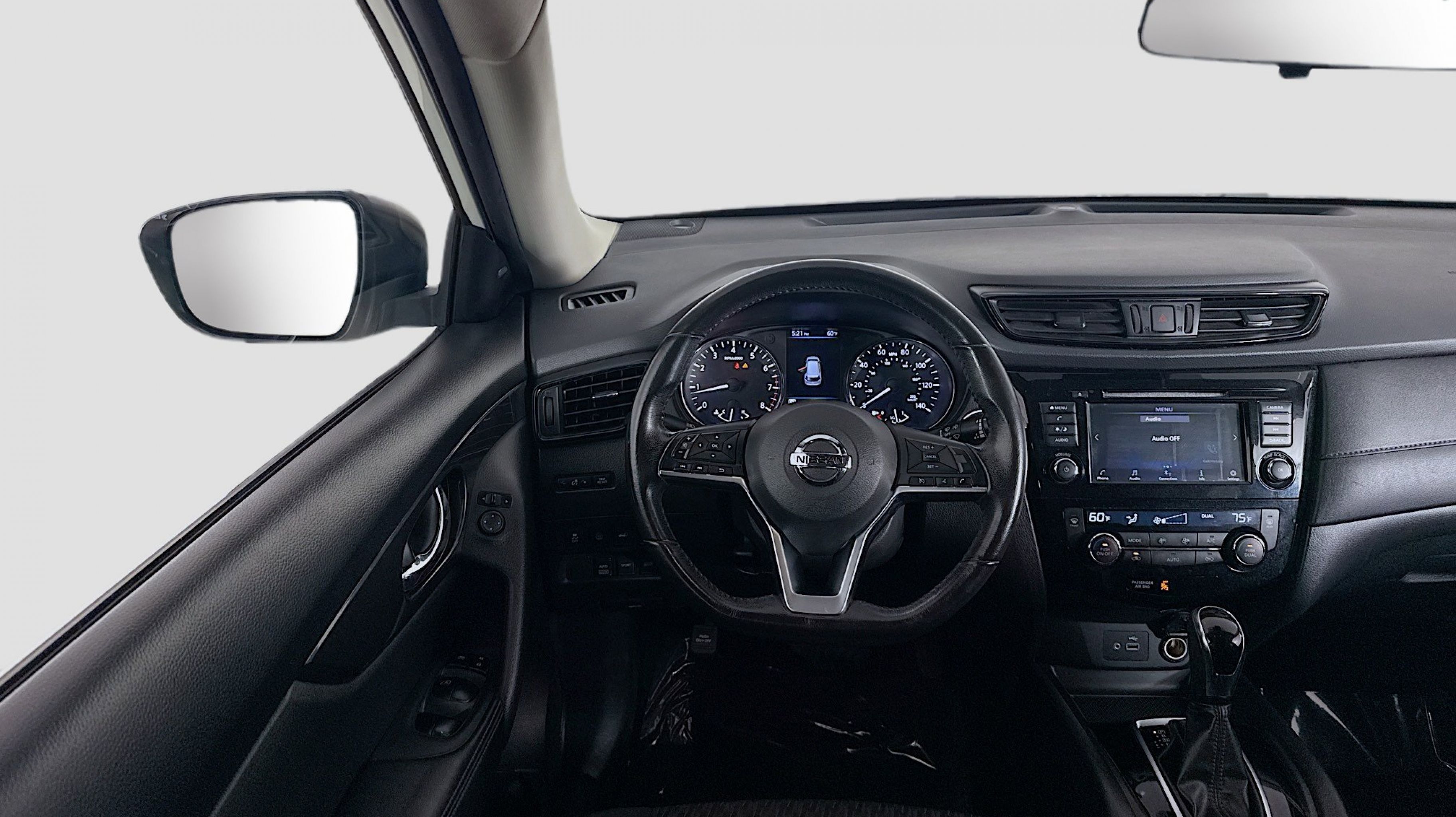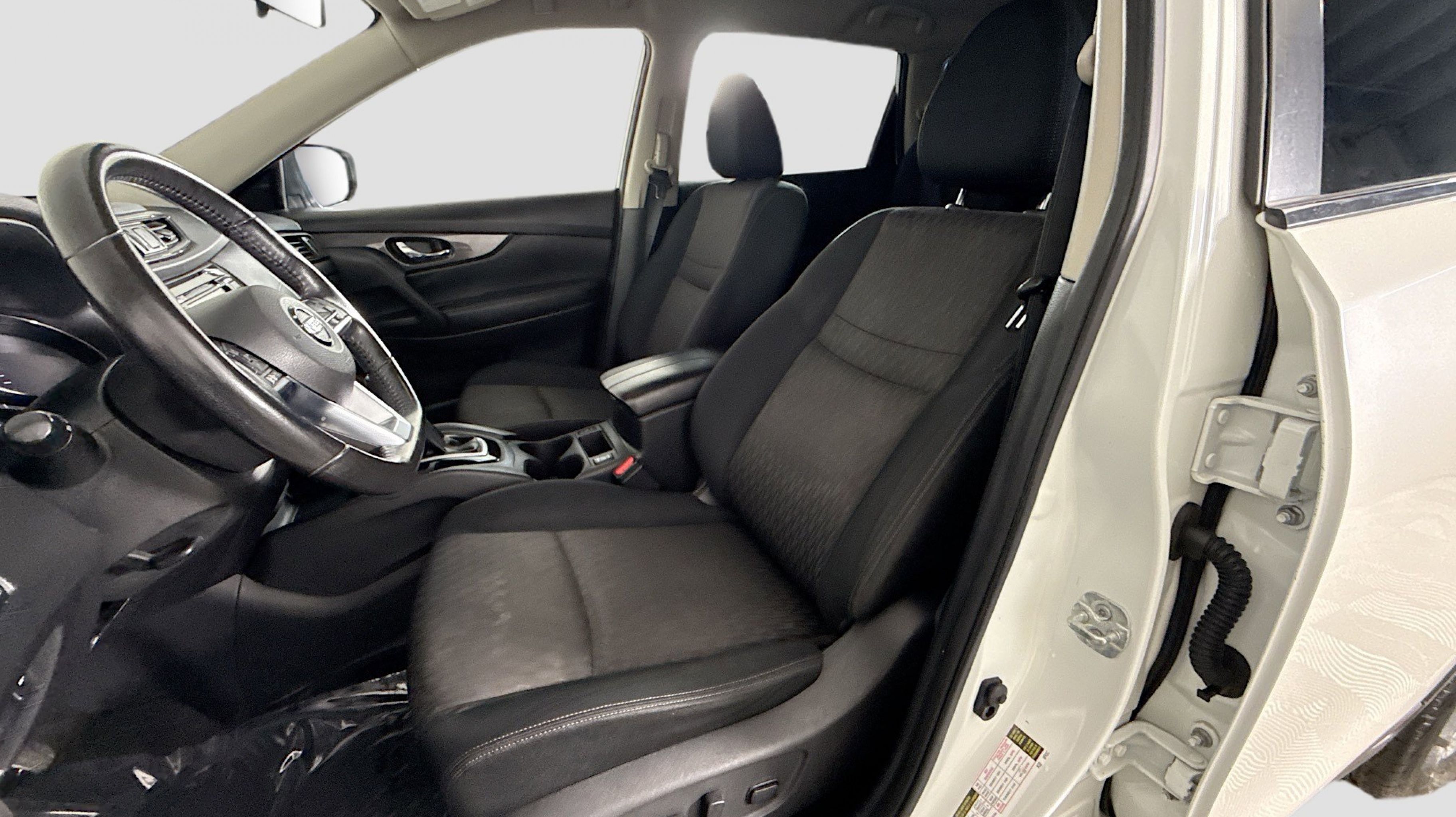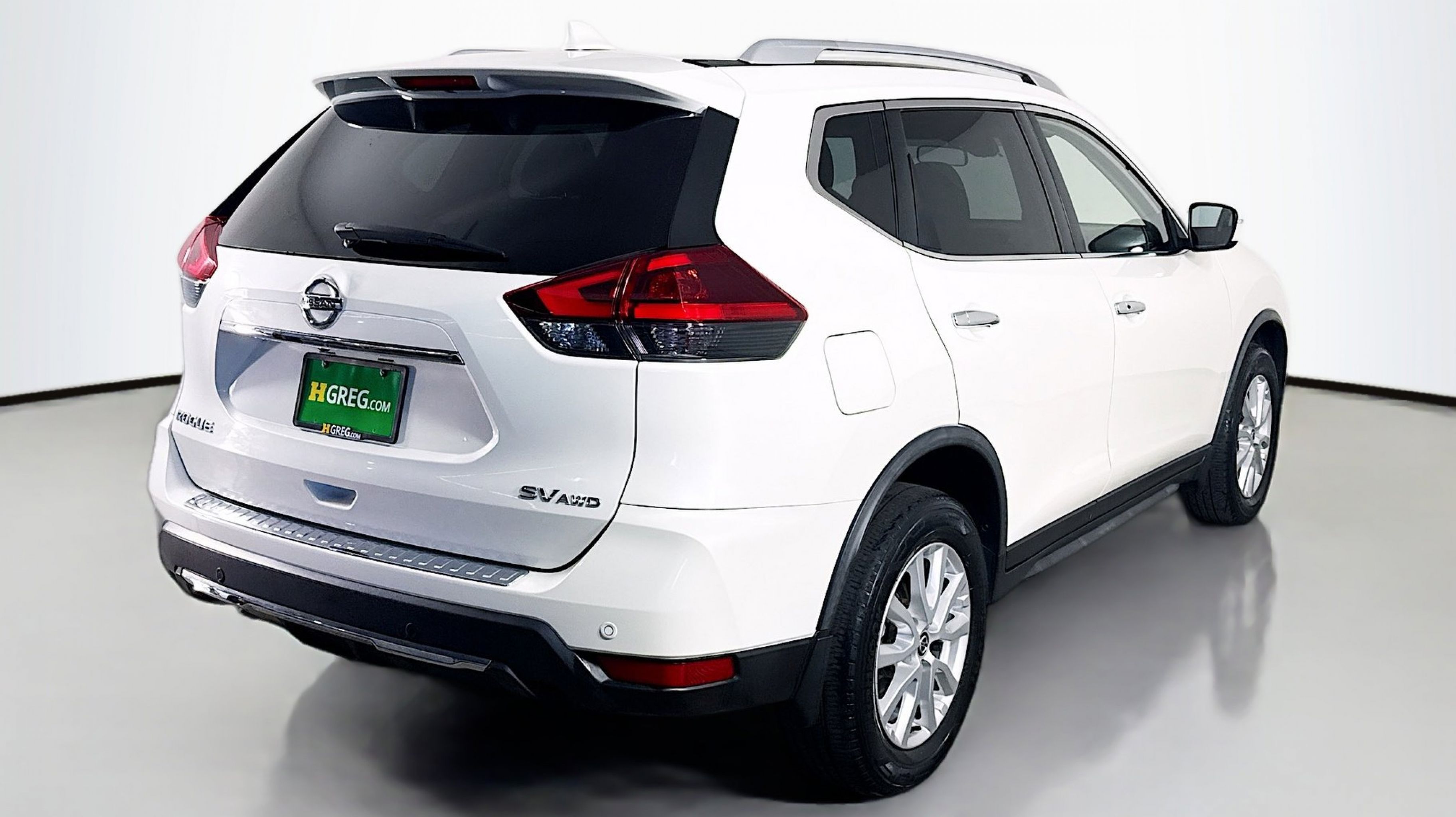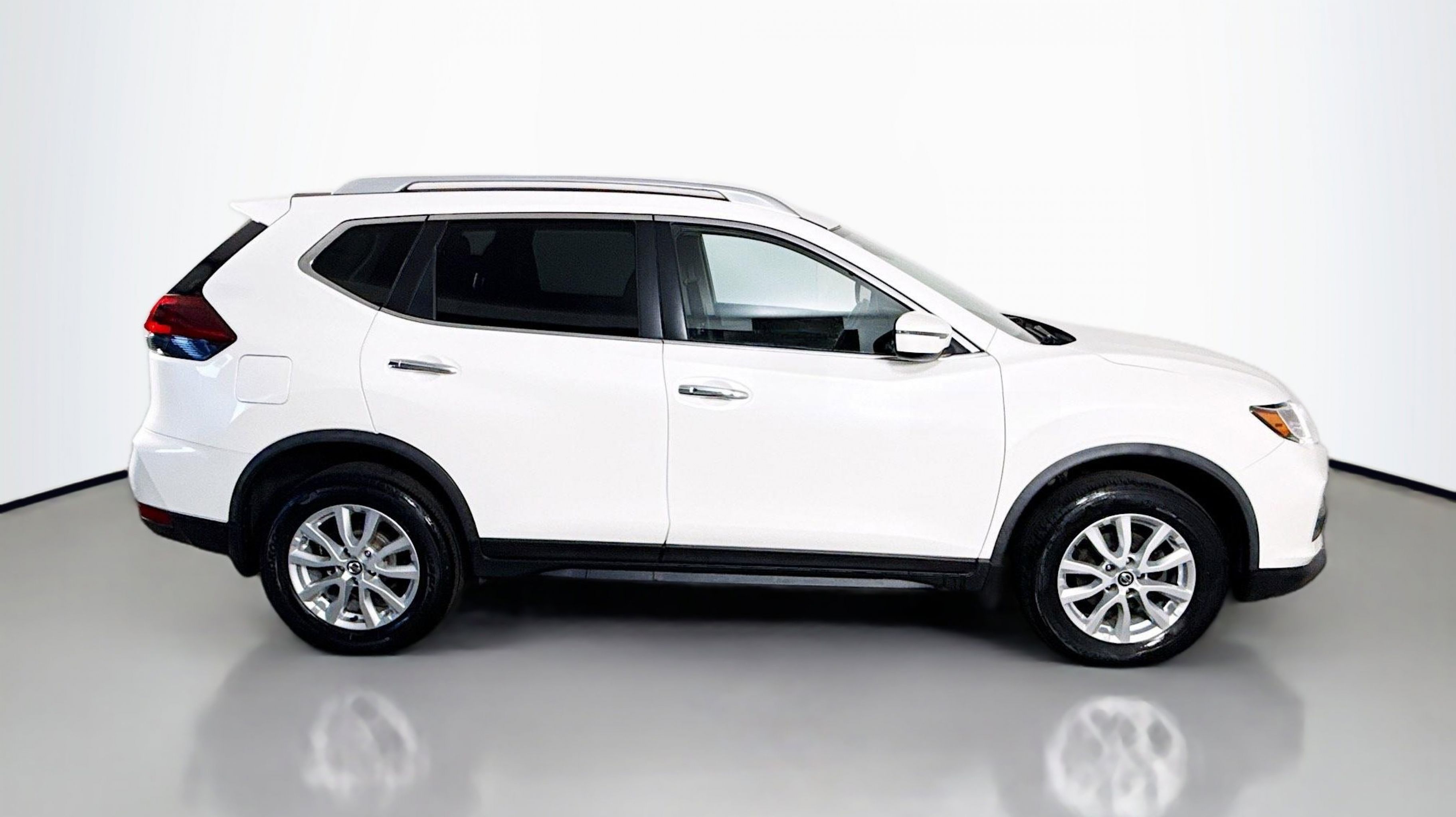 Pearl White Tricoat 2019 Nissan Rogue SV AWD CVT with Xtronic 2.5L I4 DOHC 16V AWD, 17 Aluminum Alloy Wheels, 4-Wheel Disc Brakes, 6 Speakers, 6.386 Axle Ratio, ABS brakes, Air Conditioning, Alloy wheels, AM/FM radio: SiriusXM, Anti-whiplash front head restraints, Auto High-beam Headlights, Automatic temperature control, Black Splash Guards (Set of 4), Blind Spot Warning, Brake assist, Bumpers: body-color, CD player, Chrome Rear Bumper Protector, Cloth Seat Trim, Delay-off headlights, Driver door bin, Driver vanity mirror, Dual front impact airbags, Dual front side impact airbags, Electronic Stability Control, First Aid Kit, Floor Mats & 2-PC Cargo Area Protector, Four wheel independent suspension, Front anti-roll bar, Front Bucket Seats, Front Center Armrest w/Storage, Front dual zone A/C, Front reading lights, Fully automatic headlights, Heated door mirrors, Heated Front Bucket Seats, Heated front seats, Illuminated entry, Leather Shift Knob, Low tire pressure warning, NissanConnect featuring Apple CarPlay and Android Auto, Occupant sensing airbag, Outside temperature display, Overhead airbag, Overhead console, Panic alarm, Passenger door bin, Passenger vanity mirror, Power door mirrors, Power driver seat, Power Liftgate, Power steering, Power windows, Radio data system, Radio: AM/FM/CD/AUX, Radio: AM/FM/CD/AUX NissanConnect w/Navigation, Rear anti-roll bar, Rear Parking Sensors, Rear seat center armrest, Rear window defroster, Rear window wiper, Remote keyless entry, Roof rack: rails only, Security system, Speed control, Speed-sensing steering, Split folding rear seat, Spoiler, Steering wheel mounted audio controls, Tachometer, Telescoping steering wheel, Tilt steering wheel, Traction control, Trip computer, Turn signal indicator mirrors, Variably intermittent wipers, AWD.