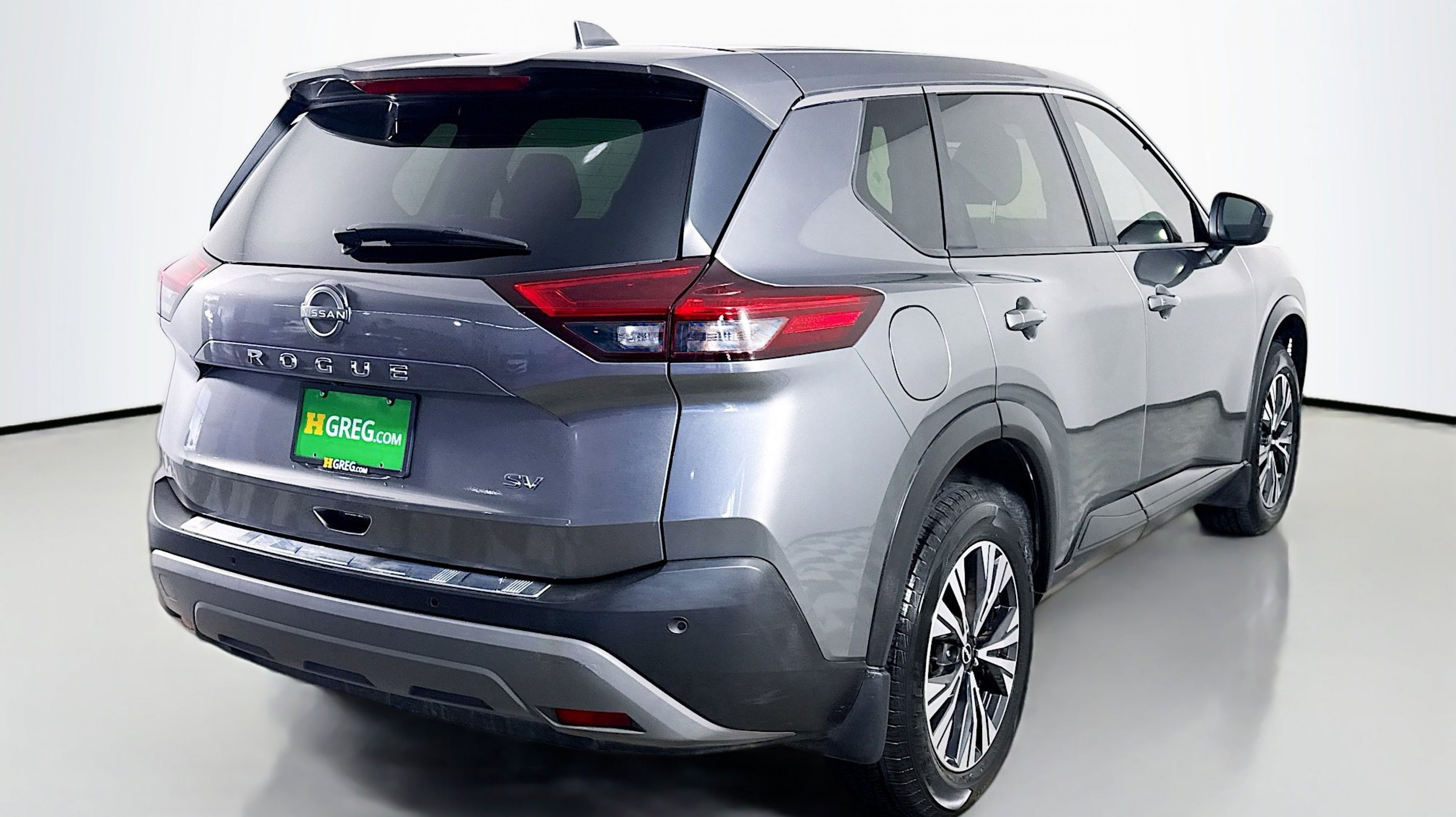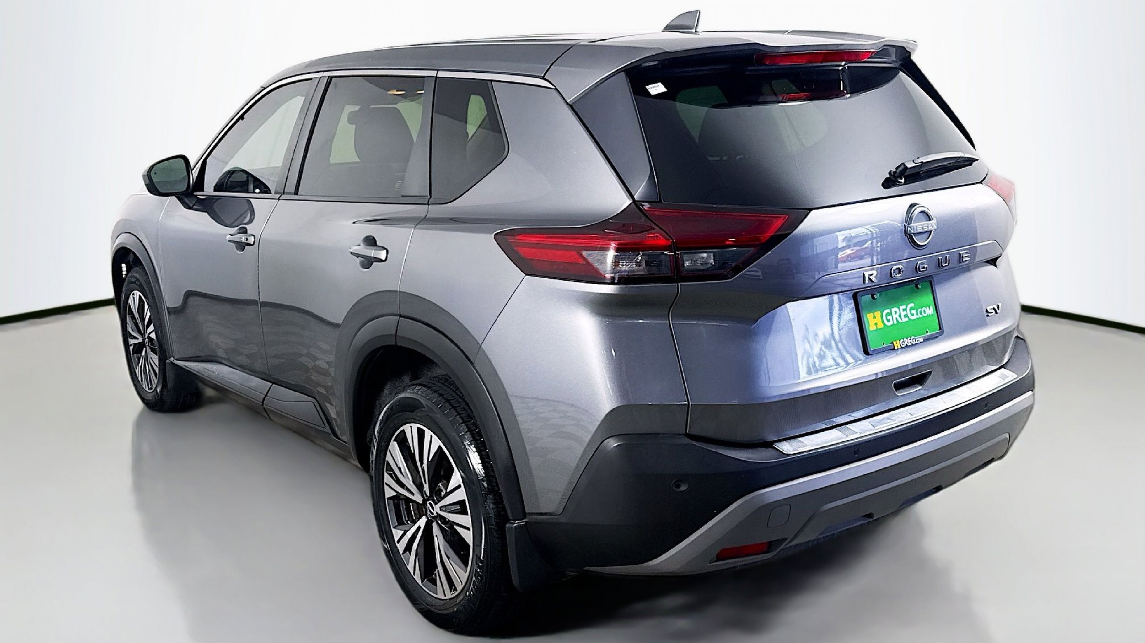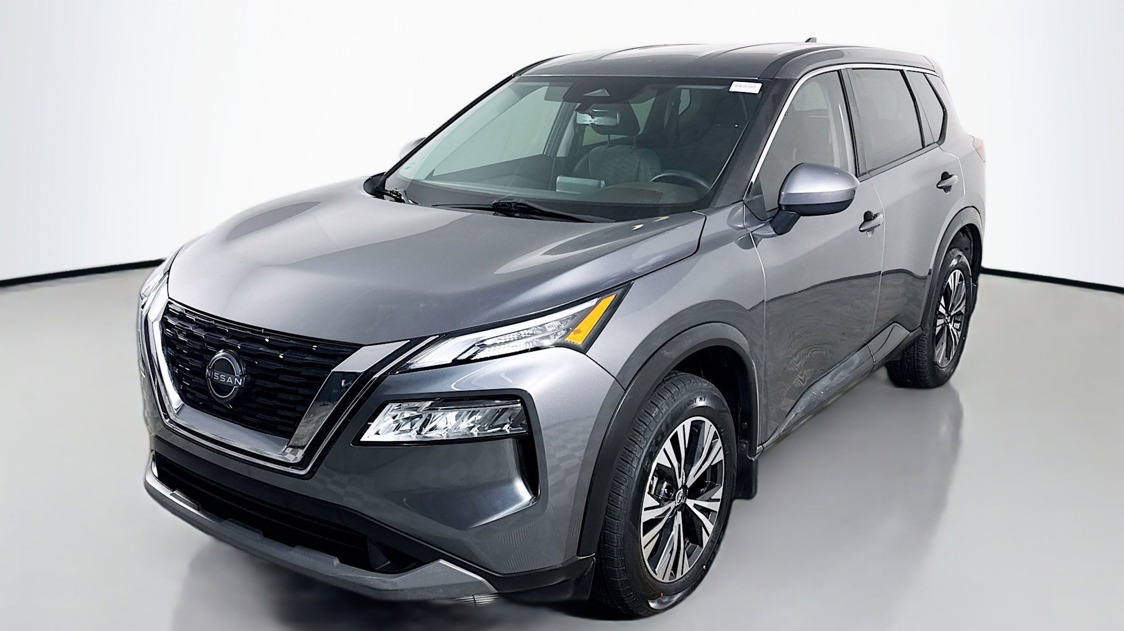 Gun Metallic 2023 Nissan Rogue SV FWD CVT with Xtronic 1.5L I3 Turbocharged DOHC 12V LEV3-ULEV50 201hp 18 Aluminum Alloy Wheels, 4-Wheel Disc Brakes, 5.604 Axle Ratio, 6 Speakers, ABS brakes, Air Conditioning, Alloy wheels, AM/FM Radio, AM/FM radio: SiriusXM, Auto High-beam Headlights, Automatic temperature control, Black Splash Guards (Set of 4), Brake assist, Bumpers: body-color, Chrome Rear Bumper Protector, Cloth Seat Trim, Delay-off headlights, Driver door bin, Driver vanity mirror, Dual front impact airbags, Dual front side impact airbags, Electronic Stability Control, Emergency communication system: NissanConnect Services, Floor Mats w/1-Piece Cargo Area Protector, Four wheel independent suspension, Front anti-roll bar, Front Bucket Seats, Front Center Armrest, Front dual zone A/C, Front reading lights, Fully automatic headlights, Heated door mirrors, Illuminated entry, Knee airbag, Low tire pressure warning, NissanConnect featuring Apple CarPlay and Android Auto, Occupant sensing airbag, Outside temperature display, Overhead airbag, Overhead console, Panic alarm, Passenger door bin, Passenger vanity mirror, Power door mirrors, Power driver seat, Power steering, Power windows, Radio data system, Rear anti-roll bar, Rear Parking Sensors, Rear seat center armrest, Rear side impact airbag, Rear window defroster, Rear window wiper, Remote keyless entry, Retractable Cargo Cover, Speed control, Speed-Sensitive Wipers, Split folding rear seat, Spoiler, Steering wheel mounted audio controls, Tachometer, Telescoping steering wheel, Tilt steering wheel, Traction control, Trip computer, Variably intermittent wipers.