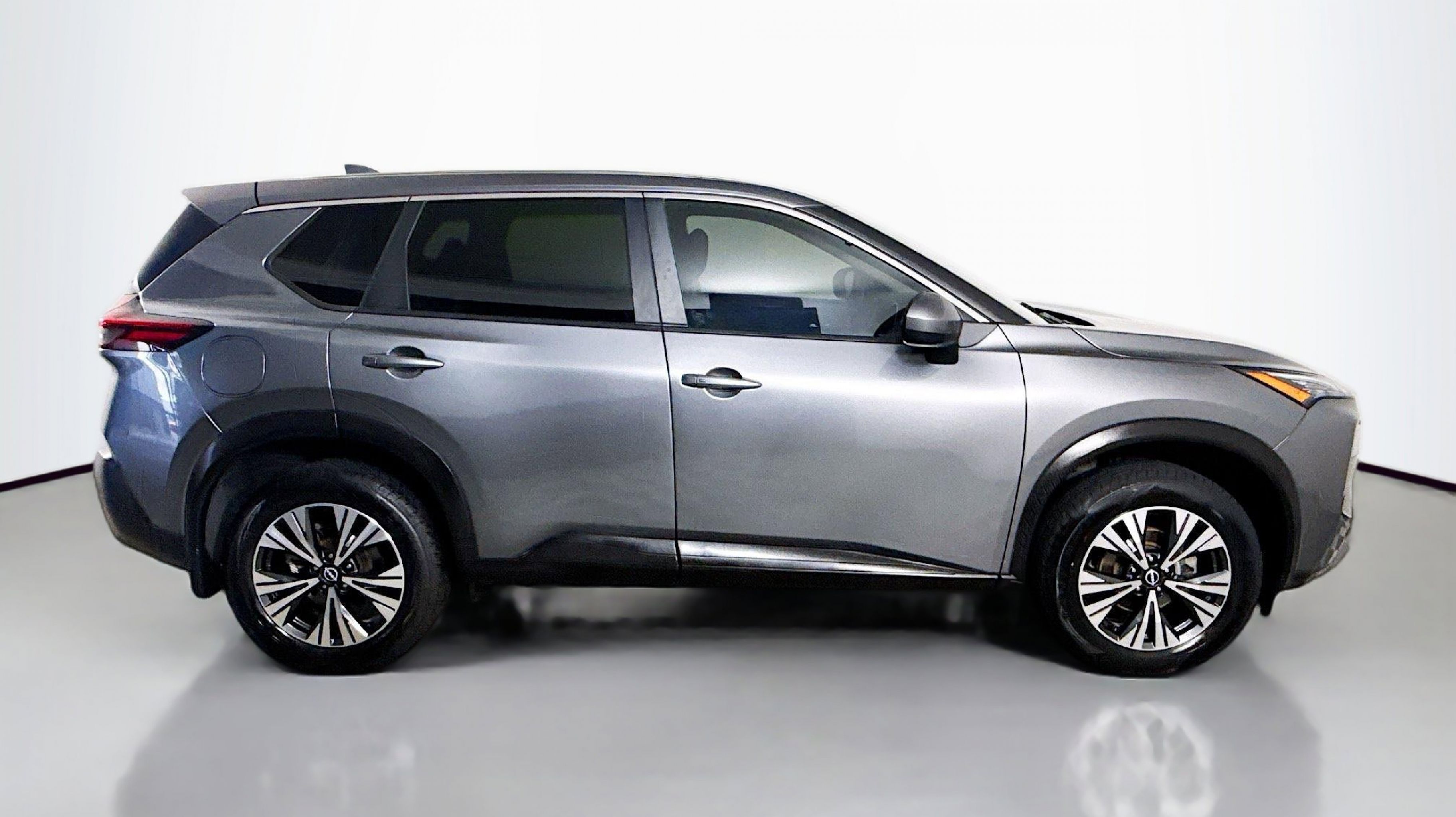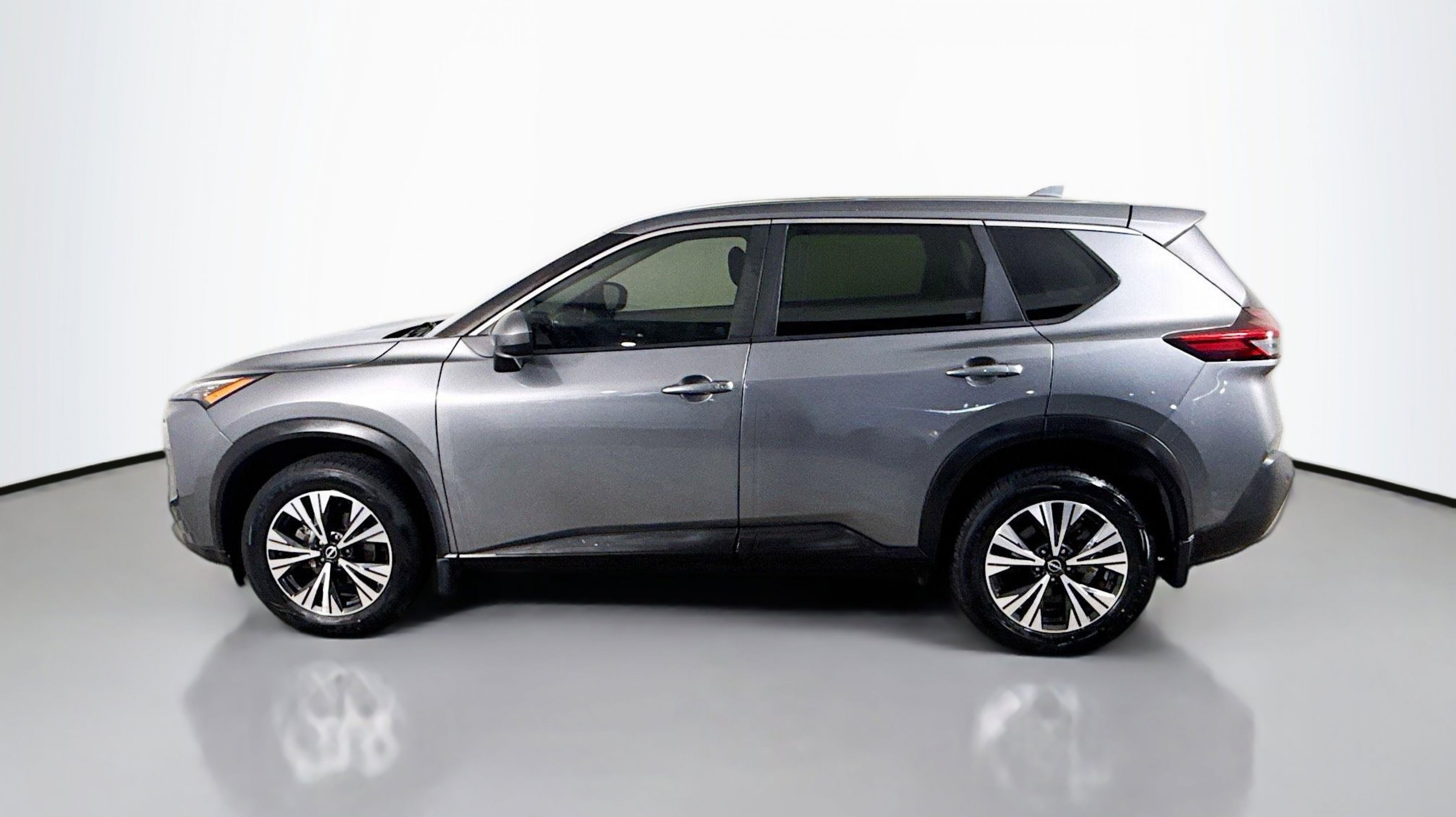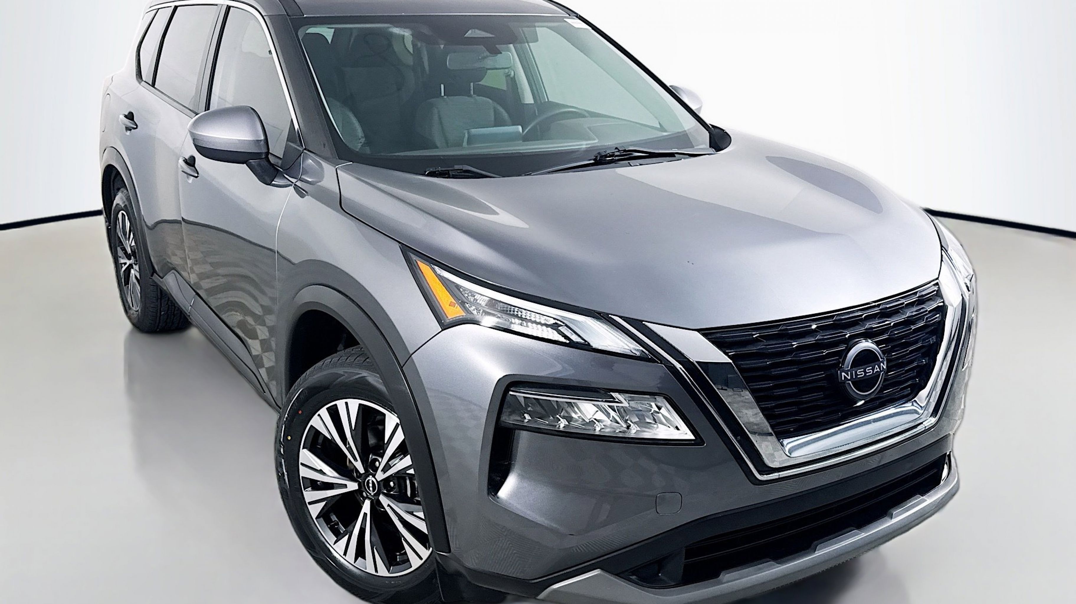 Gun Metallic 2023 Nissan Rogue SV FWD CVT with Xtronic 1.5L I3 Turbocharged DOHC 12V LEV3-ULEV50 201hp 18 Aluminum Alloy Wheels, 4-Wheel Disc Brakes, 5.604 Axle Ratio, 6 Speakers, ABS brakes, Air Conditioning, Alloy wheels, AM/FM Radio, AM/FM radio: SiriusXM, Auto High-beam Headlights, Automatic temperature control, Black Splash Guards (Set of 4), Brake assist, Bumpers: body-color, Chrome Rear Bumper Protector, Cloth Seat Trim, Delay-off headlights, Driver door bin, Driver vanity mirror, Dual front impact airbags, Dual front side impact airbags, Electronic Stability Control, Emergency communication system: NissanConnect Services, Floor Mats w/1-Piece Cargo Area Protector, Four wheel independent suspension, Front anti-roll bar, Front Bucket Seats, Front Center Armrest, Front dual zone A/C, Front reading lights, Fully automatic headlights, Heated door mirrors, Illuminated entry, Knee airbag, Low tire pressure warning, NissanConnect featuring Apple CarPlay and Android Auto, Occupant sensing airbag, Outside temperature display, Overhead airbag, Overhead console, Panic alarm, Passenger door bin, Passenger vanity mirror, Power door mirrors, Power driver seat, Power steering, Power windows, Radio data system, Rear anti-roll bar, Rear Parking Sensors, Rear seat center armrest, Rear side impact airbag, Rear window defroster, Rear window wiper, Remote keyless entry, Retractable Cargo Cover, Speed control, Speed-Sensitive Wipers, Split folding rear seat, Spoiler, Steering wheel mounted audio controls, Tachometer, Telescoping steering wheel, Tilt steering wheel, Traction control, Trip computer, Variably intermittent wipers.
