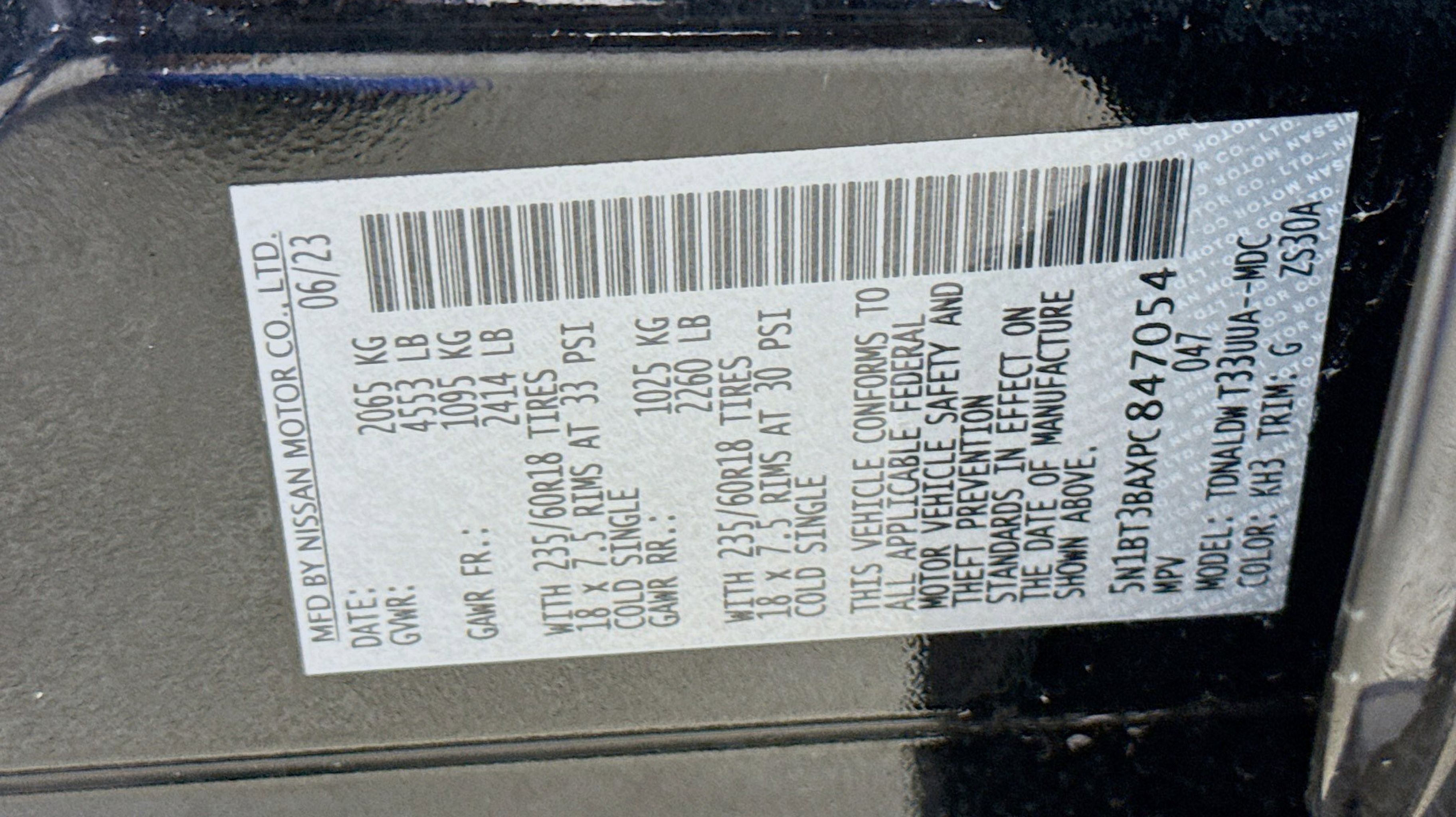 CARFAX One-Owner. 18 Aluminum Alloy Wheels, 4-Wheel Disc Brakes, 5.604 Axle Ratio, 6 Speakers, ABS brakes, Air Conditioning, Alloy wheels, AM/FM Radio, AM/FM radio: SiriusXM, Auto High-beam Headlights, Automatic temperature control, Brake assist, Bumpers: body-color, Cloth Seat Trim, Delay-off headlights, Driver door bin, Driver vanity mirror, Dual front impact airbags, Dual front side impact airbags, Electronic Stability Control, Emergency communication system: NissanConnect Services, Floor Mats w/1-Piece Cargo Area Protector, Four wheel independent suspension, Front anti-roll bar, Front Bucket Seats, Front Center Armrest, Front dual zone A/C, Front reading lights, Fully automatic headlights, Heated door mirrors, Illuminated entry, Knee airbag, Low tire pressure warning, NissanConnect featuring Apple CarPlay and Android Auto, Occupant sensing airbag, Outside temperature display, Overhead airbag, Overhead console, Panic alarm, Passenger door bin, Passenger vanity mirror, Power door mirrors, Power driver seat, Power steering, Power windows, Radio data system, Rear anti-roll bar, Rear Parking Sensors, Rear seat center armrest, Rear side impact airbag, Rear window defroster, Rear window wiper, Remote keyless entry, Speed control, Speed-Sensitive Wipers, Split folding rear seat, Spoiler, Steering wheel mounted audio controls, Tachometer, Telescoping steering wheel, Tilt steering wheel, Traction control, Trip computer, Variably intermittent wipers.